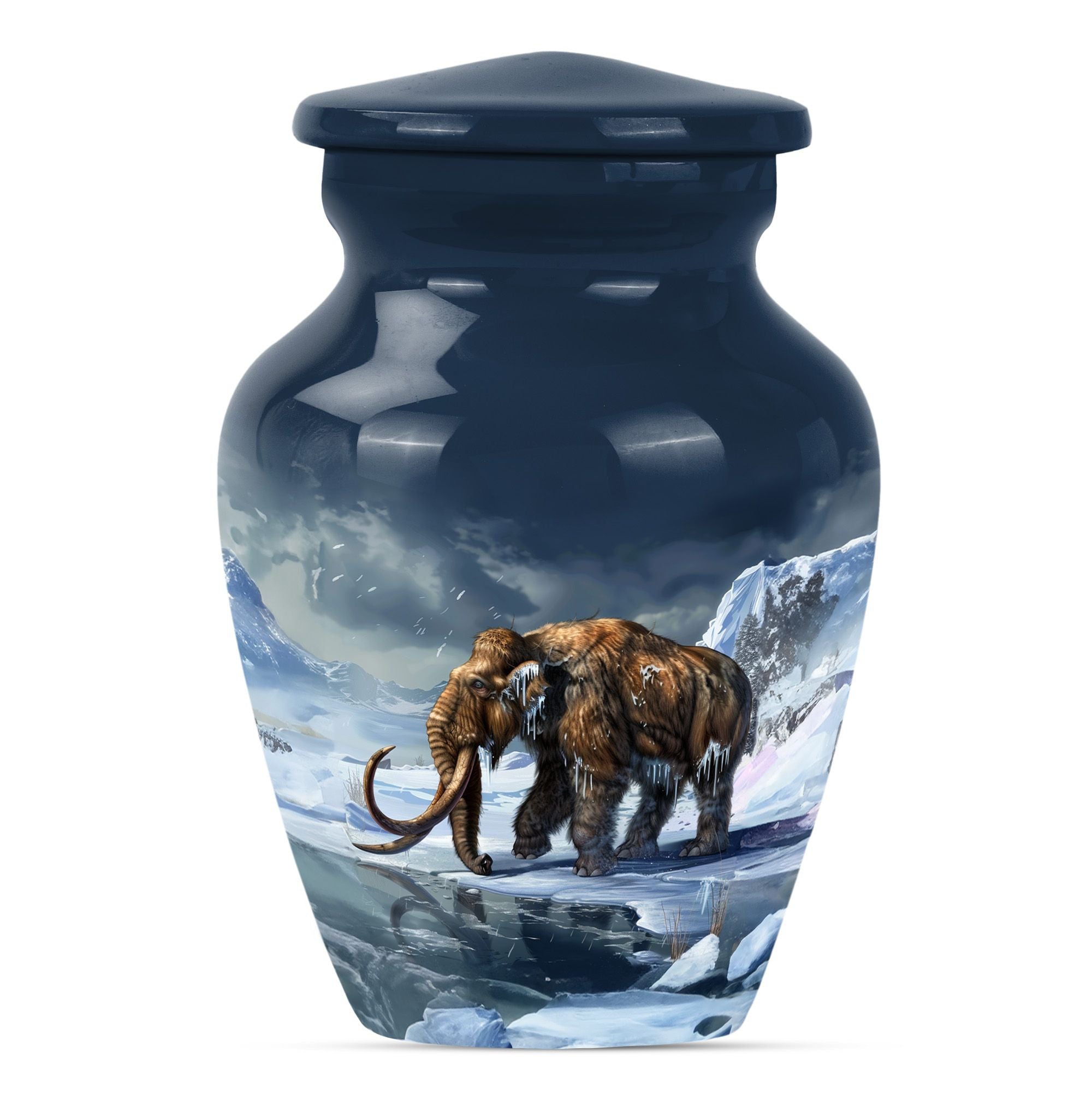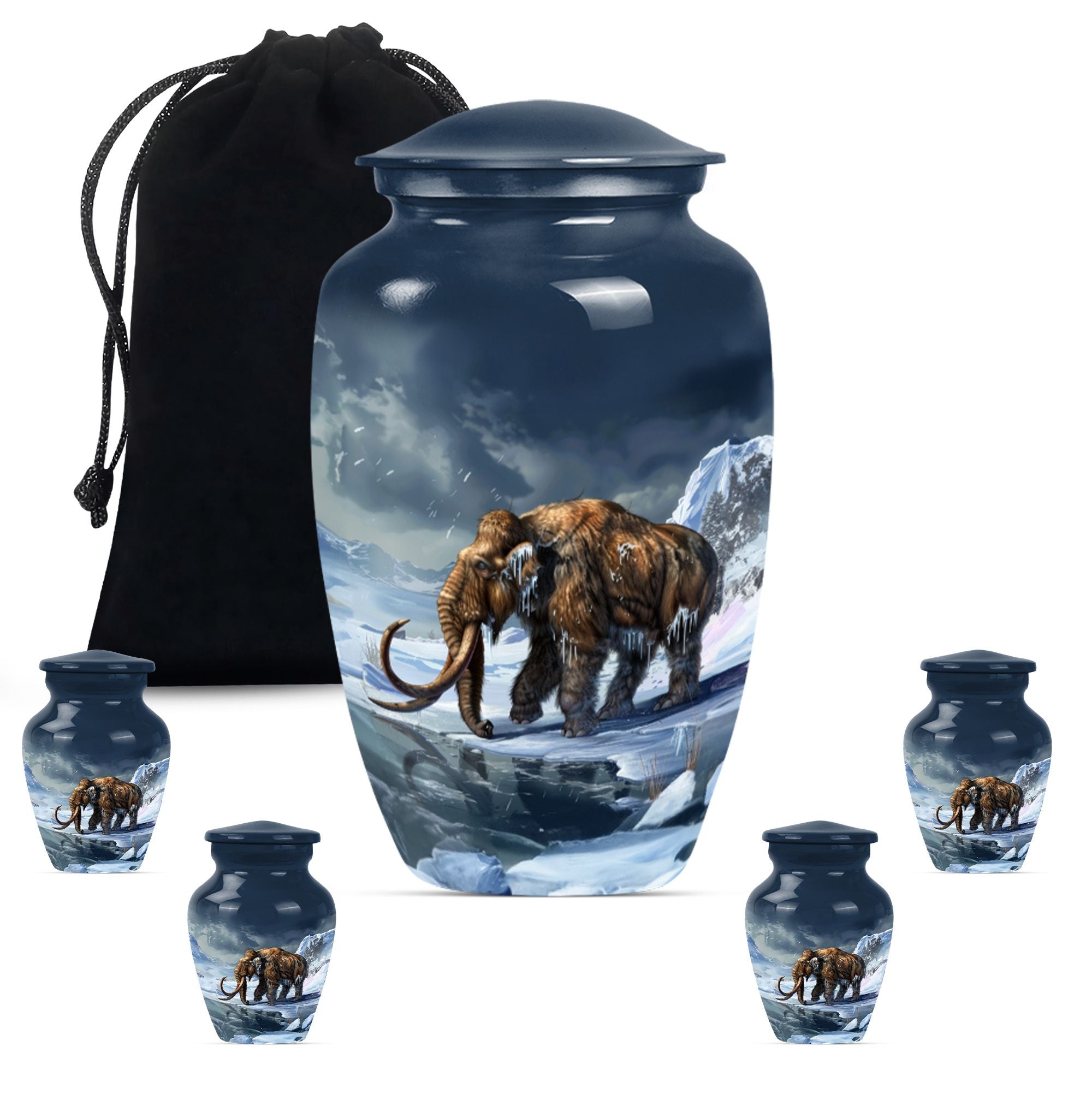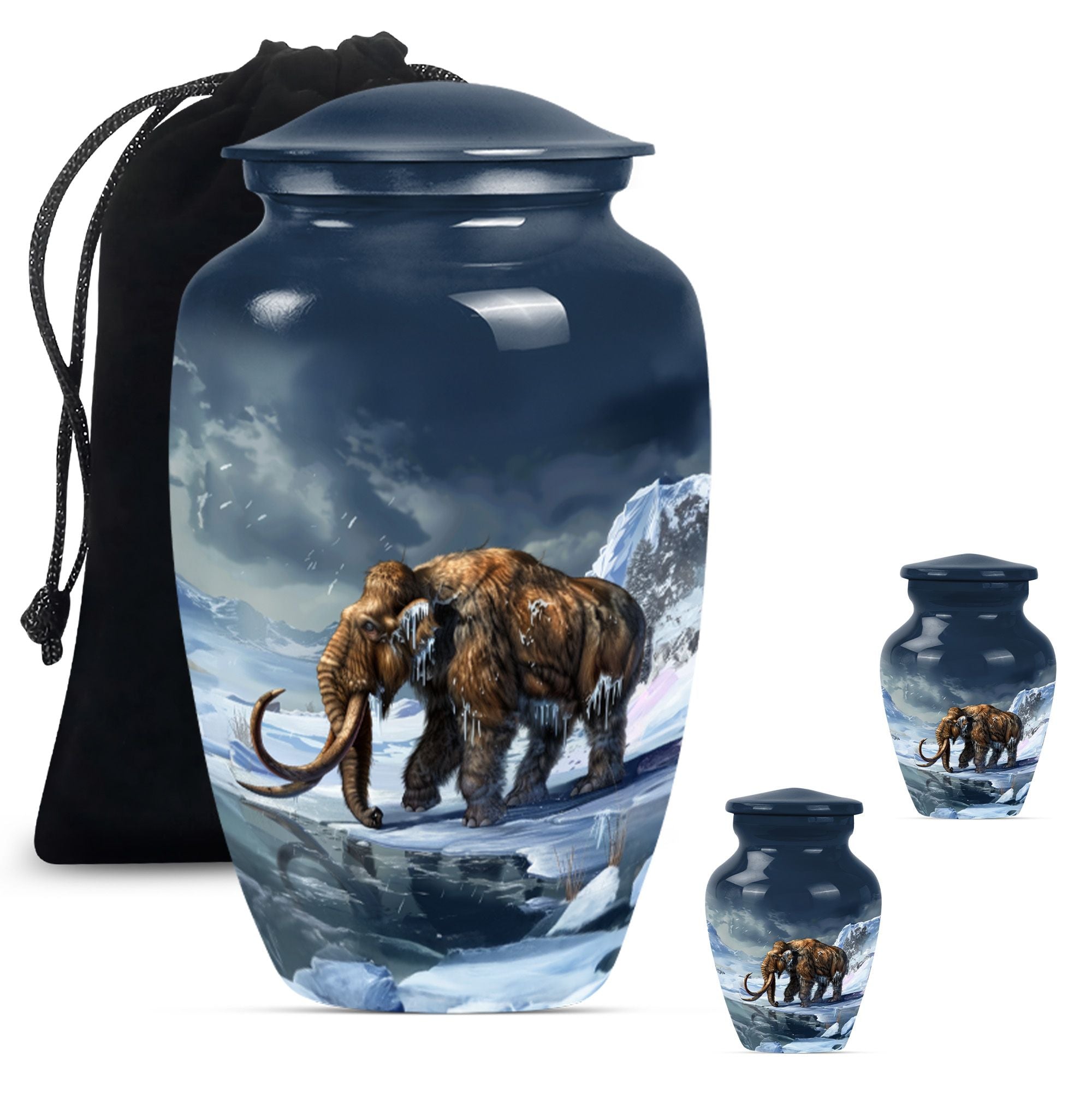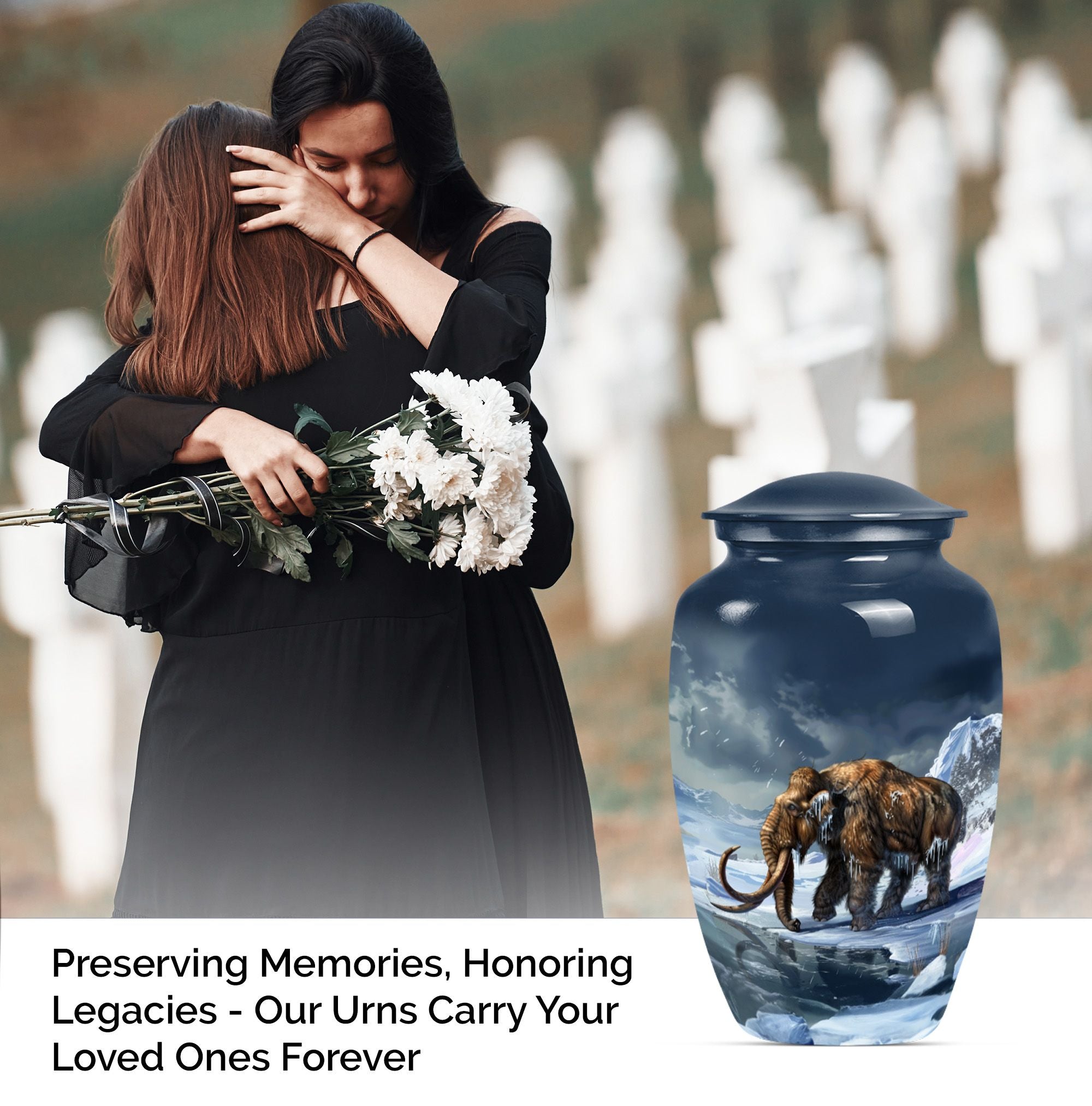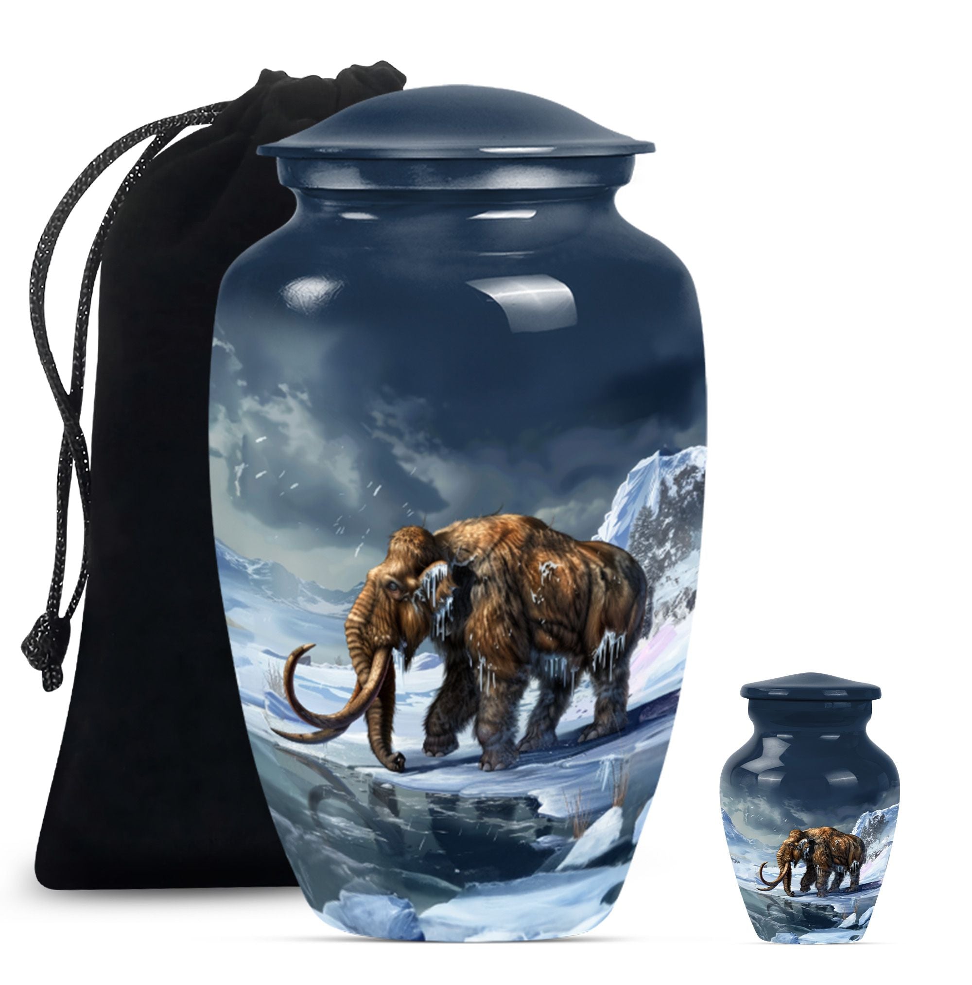 Carry the dearly departed's memory forward with our dignified mammoth Urn, a peaceful dwelling for funeral ashes. This cremation urn, standing at 10 inches, is unique in its kind. It provides a capacious 200 cubic inches space to safely enshrine the remains of your precious seniors. Made from high-grade aluminium, it brings weight and durability — 3.3 pounds of long-lasting peace. This large urn features a floral theme, a touching tribute to life's perennial renewal amidst impermanence. Its classic appeal is amplified by the ability to personalize; we invite you to engrave names and transform it into an eternally cherished memorial. Included in the package is a velvet pouch for the empathetic containment of ashes, ensuring your tokens of love and respect have the grace they deserve. A singular blend of elegance and solace, such metal urns for adult human ashes are uncommon pieces of art. Incredible, isn't it? This urn is much more than a box; it's a remarkable symbol of remembrance, a gentle whisper of eternal love.