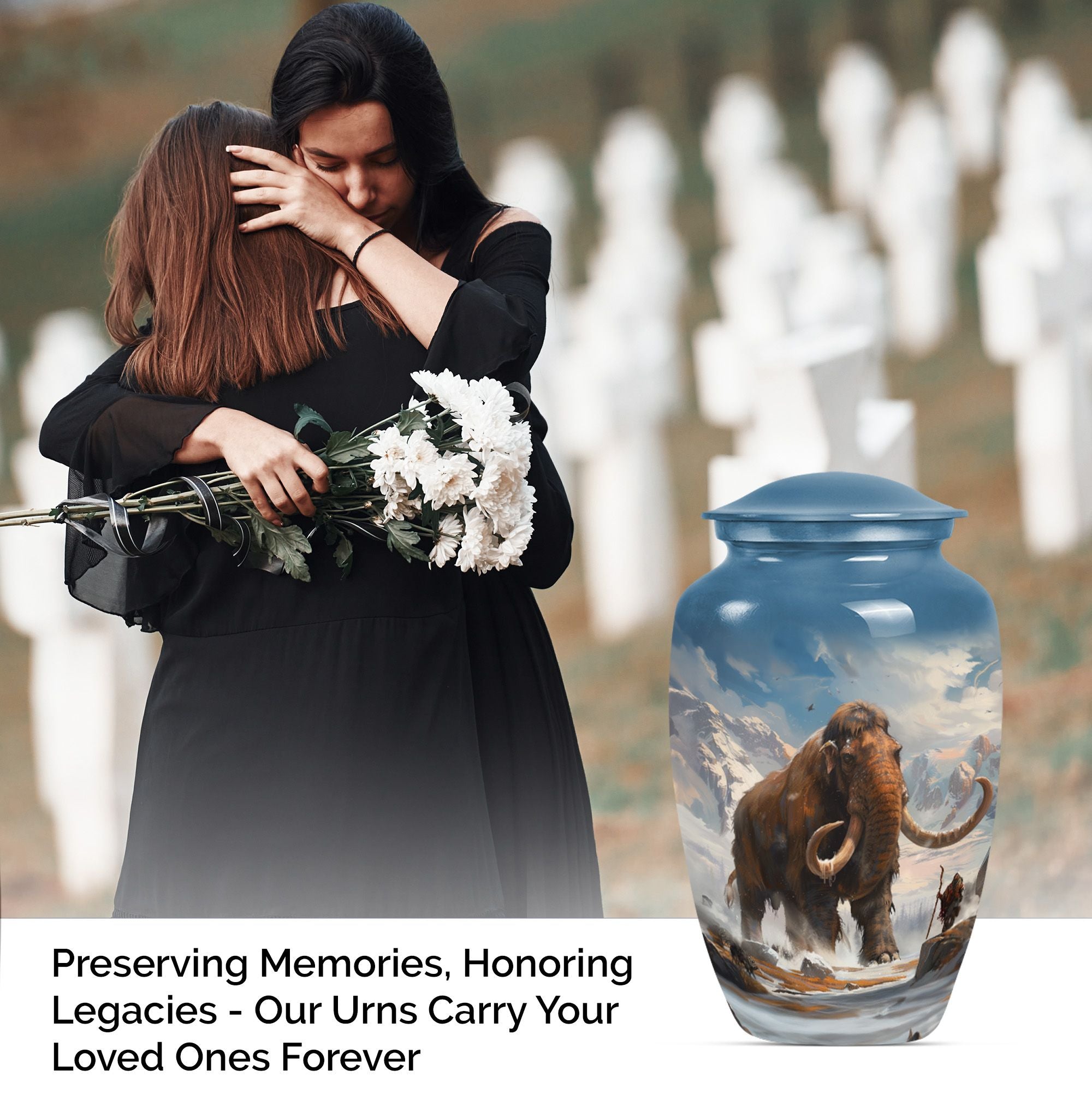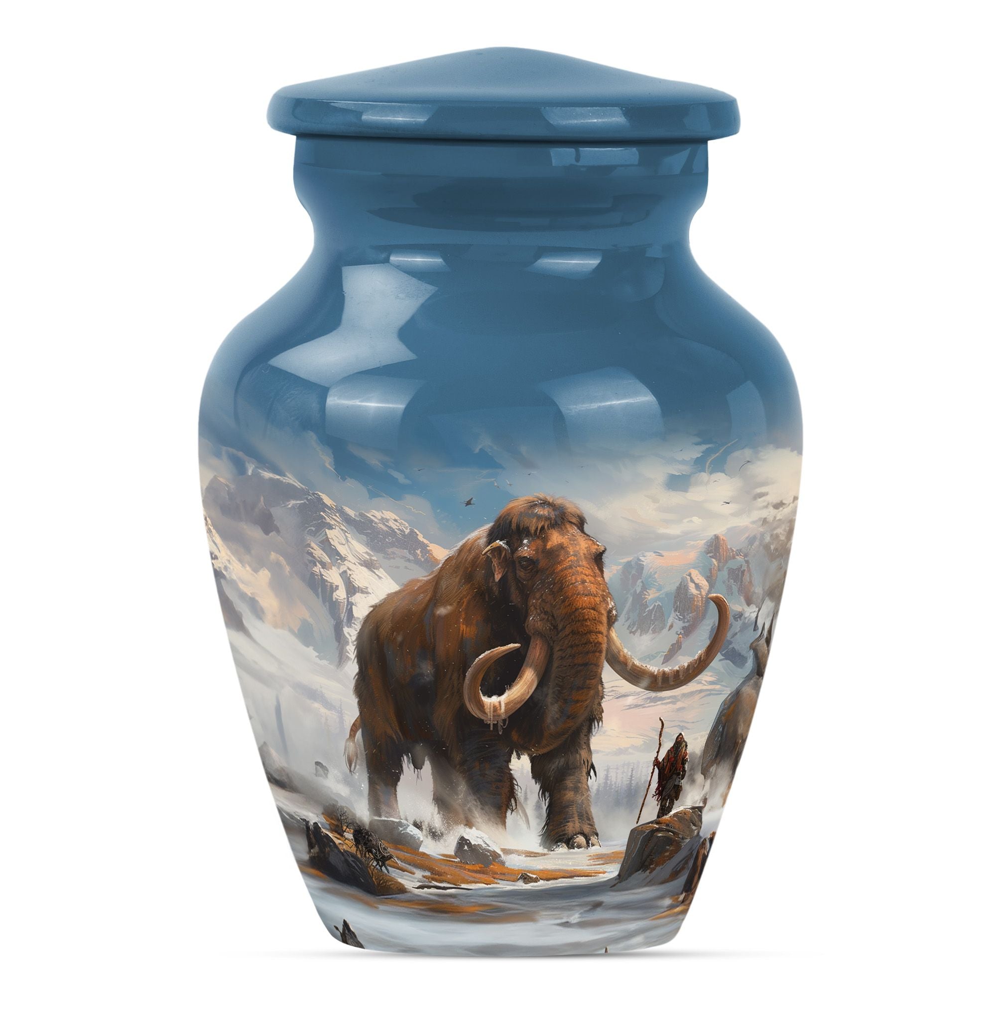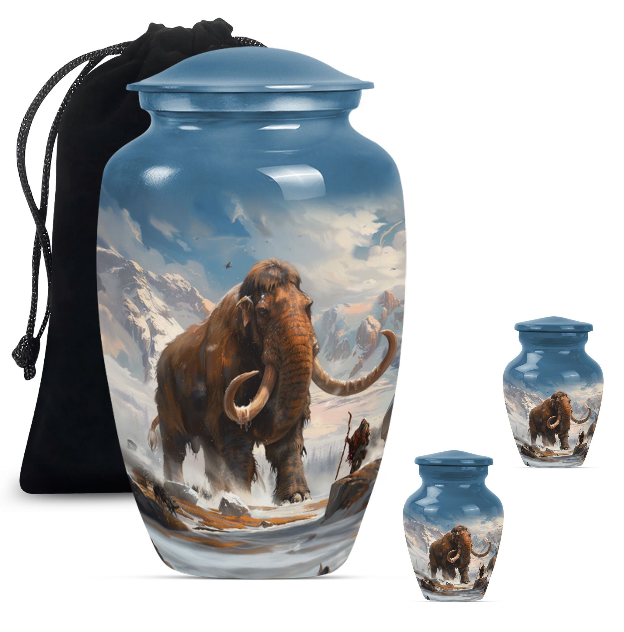 Discover a timeless way to honor your loved one with this exquisite mammoth urn. This large urn, measuring 10 inches in height, is delicately crafted from sturdy, high-quality aluminium, giving it a substantial weight of 3.3 pounds. Thanks to its capacity of 200 cubic inches, this cremation urn can respectfully contain a substantial amount of ashes. The package includes a velvet pouch, providing a soft, dignified containment for the ashes. Further adding to its uniqueness, this urn offers the option to personalize, with space for engraved names. Its theme features delicate flowers, stirring a sense of calm serenity, an invocation of the eternal cycle of life. Often sought after in the burial funeral cremation urns sphere, this cremation urn is an excellent choice for human ashes, be it adult male or female. Laden with elegance and solemn beauty, it can also serve as a decorative piece in your home. Experience a unique blend of reverence and art with this cherished keepsake.