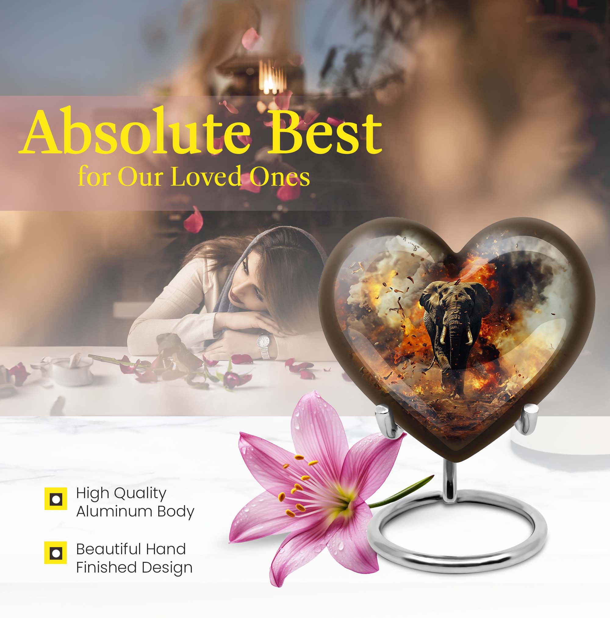 Cherish a lifetime of memories with our finely-crafted Heart Urn, a large urn that serves as a dignified resting place for your loved one's ashes. This mammoth urn for human ashes brings the symbolic theme of flowers to the forefront - a delicate touch giving tribute to the beauty of life. Measuring 10 inches in height and with a capacity of 200 cubic inches, it is meticulously designed for an adult's ashes, male or female. Engagingly lightweight yet sturdy with its 3.3 pounds construction, the urn is made of high-quality aluminium. Adding an unparalleled degree of customization, this cremation urn allows you to personalize it with engraved names, instilling more personal depth and significance. To keep the ashes secured and safe, each urn is complemented with a velvet pouch. An enduring choice for cremation urns for adult ashes, this funeral urn stands as a symbol of the heart's resilience and eternal love. Keywords: Burial medium size urns, urn human ash cremation urn, adult size urns.