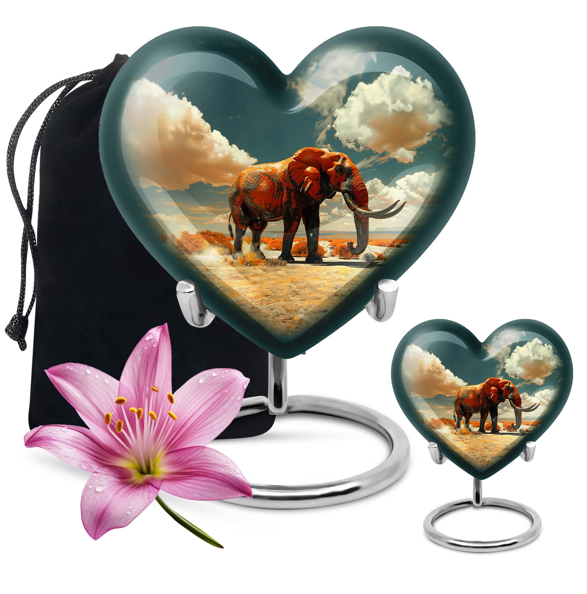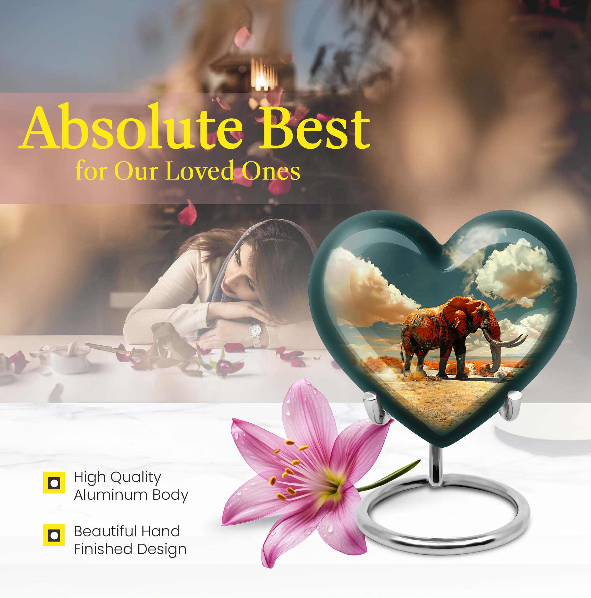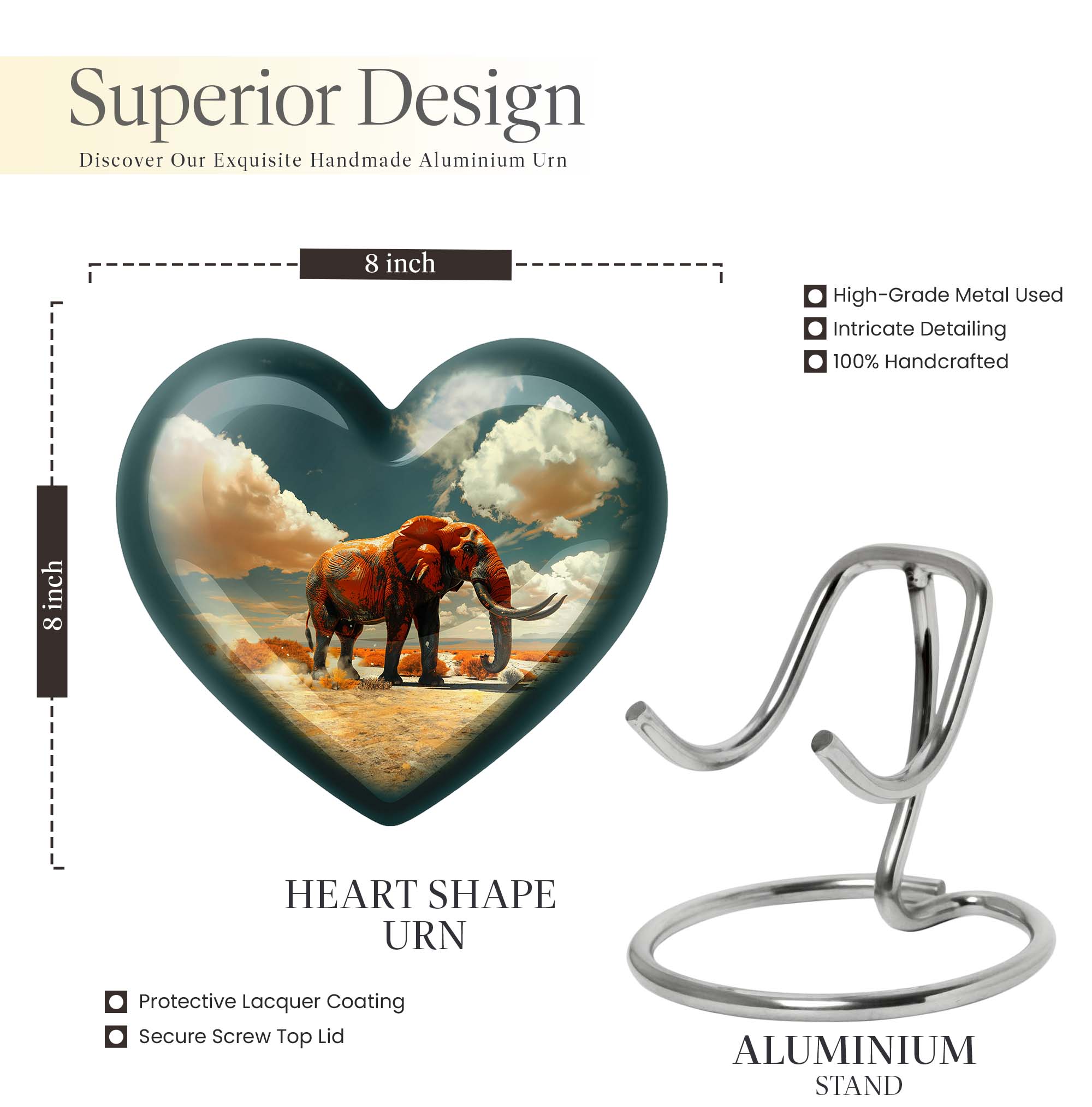 Housing memories in a timeless manner, this majestic 'Mammoth Urn' honours your departed loved one with reverence. With a sturdy make of high-grade aluminium, this 10-inch funeral urn symbolizes resilient love that transcends time. Its weight, a solid 3.3 pounds, assures its sturdiness and stability. Designed especially for adults, the urn accommodates 200 cubic inches of ashes, its thoughtfully included velvet pouch protecting them discreetly. Its captivating heart contour speaks volumes of your affection, where radiant flower motifs add a touch of aesthetic grace. The customization option lets you etch a cherished name, making the urn even more personal. This heart urn inhabits a world where memories last an eternity, swiftly becoming a memorial forever urn. Typical searches like 'human cremation urn' or 'urns metal' hardly capture its essence – it’s much more than a large urn for human ashes. It’s a reminder, a memorial, a tribute to a life lived with love.