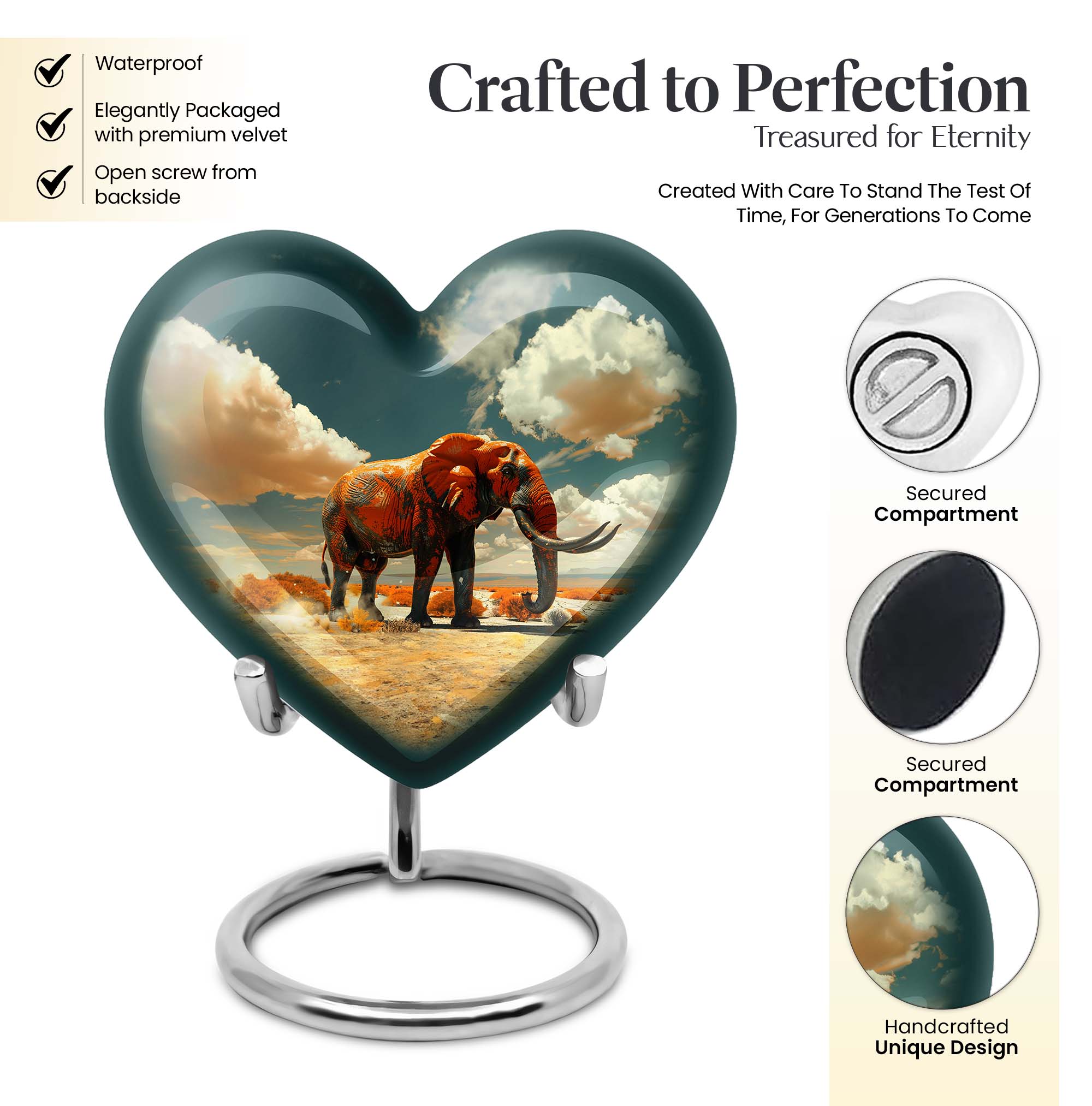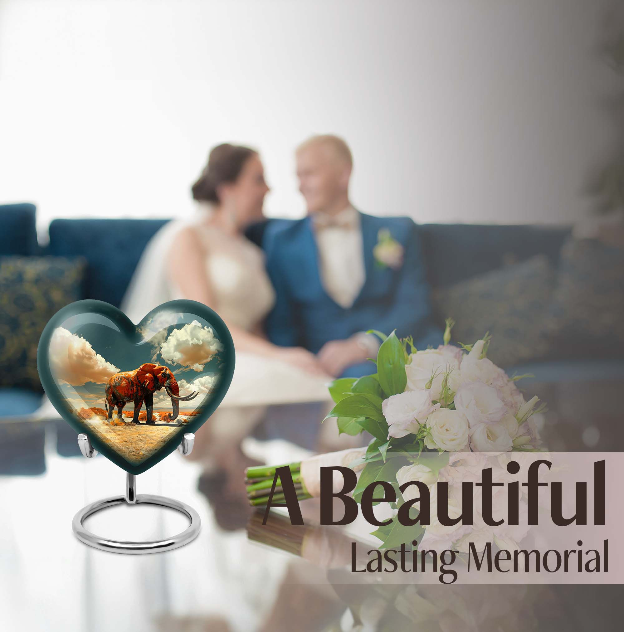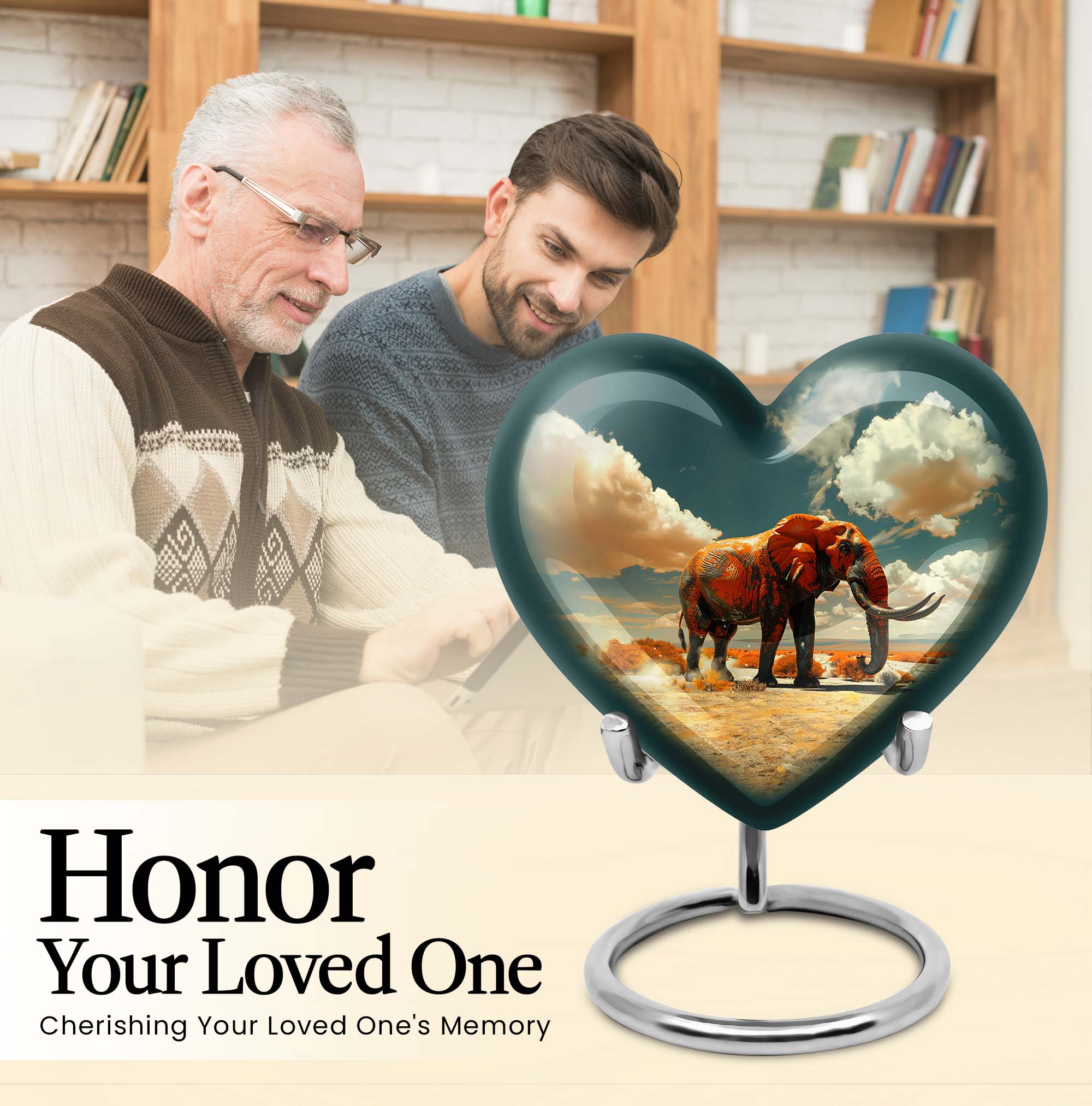 Housing memories in a timeless manner, this majestic 'Mammoth Urn' honours your departed loved one with reverence. With a sturdy make of high-grade aluminium, this 10-inch funeral urn symbolizes resilient love that transcends time. Its weight, a solid 3.3 pounds, assures its sturdiness and stability. Designed especially for adults, the urn accommodates 200 cubic inches of ashes, its thoughtfully included velvet pouch protecting them discreetly. Its captivating heart contour speaks volumes of your affection, where radiant flower motifs add a touch of aesthetic grace. The customization option lets you etch a cherished name, making the urn even more personal. This heart urn inhabits a world where memories last an eternity, swiftly becoming a memorial forever urn. Typical searches like 'human cremation urn' or 'urns metal' hardly capture its essence – it’s much more than a large urn for human ashes. It’s a reminder, a memorial, a tribute to a life lived with love.