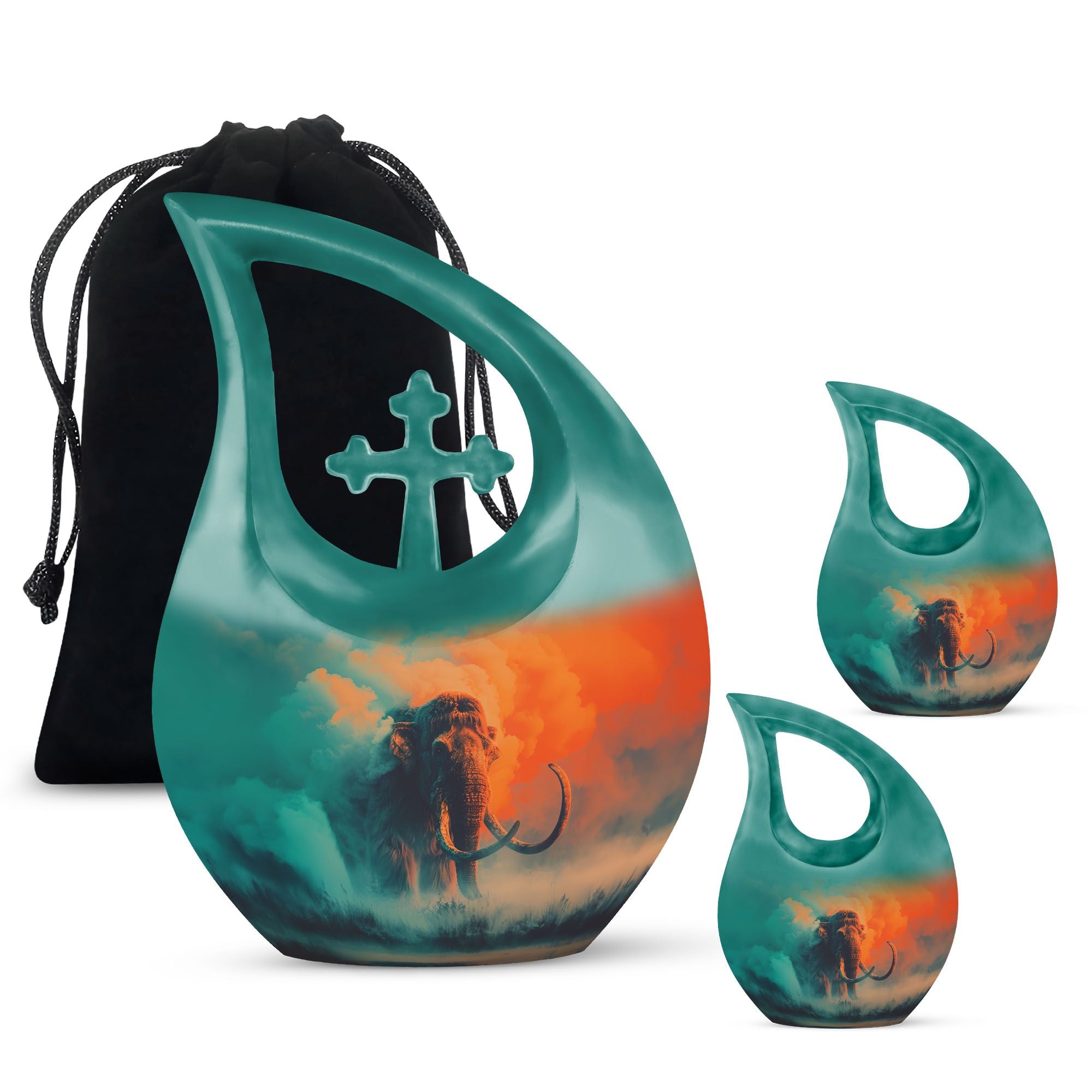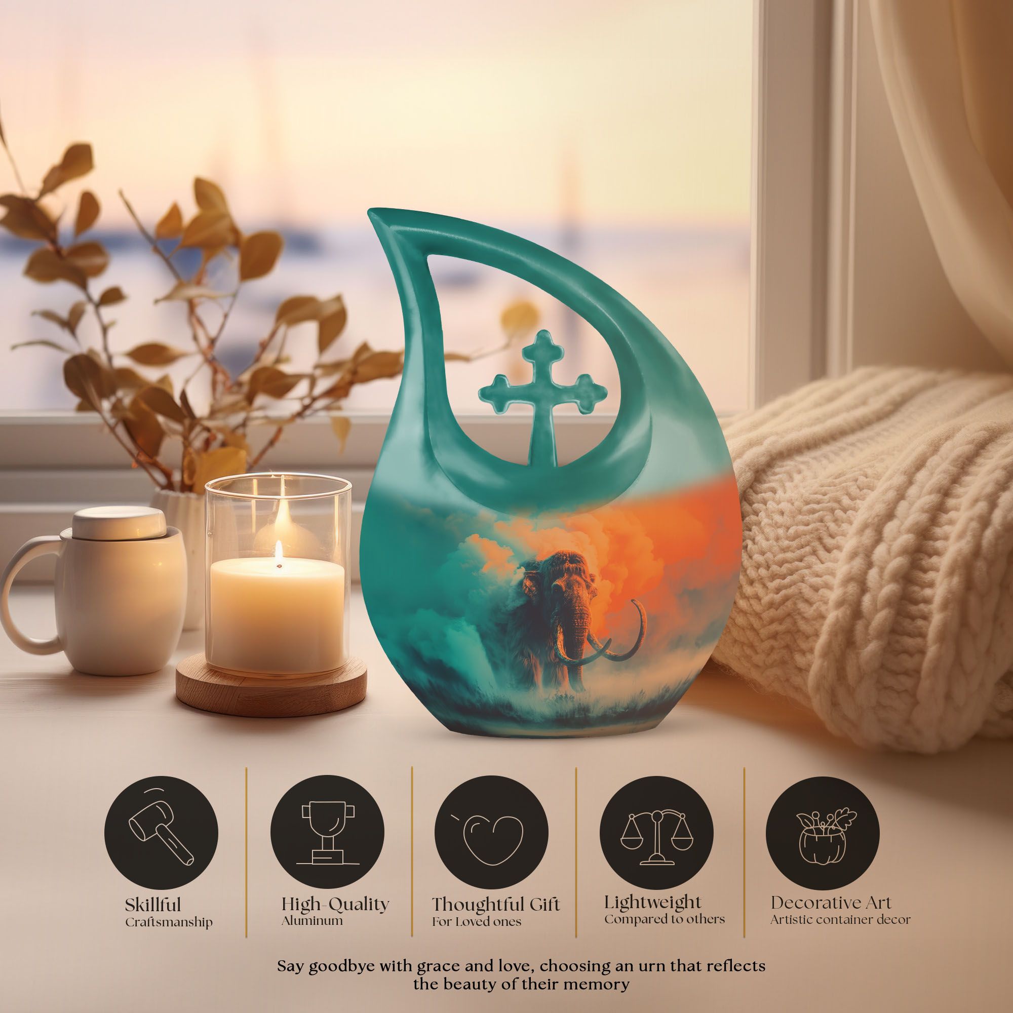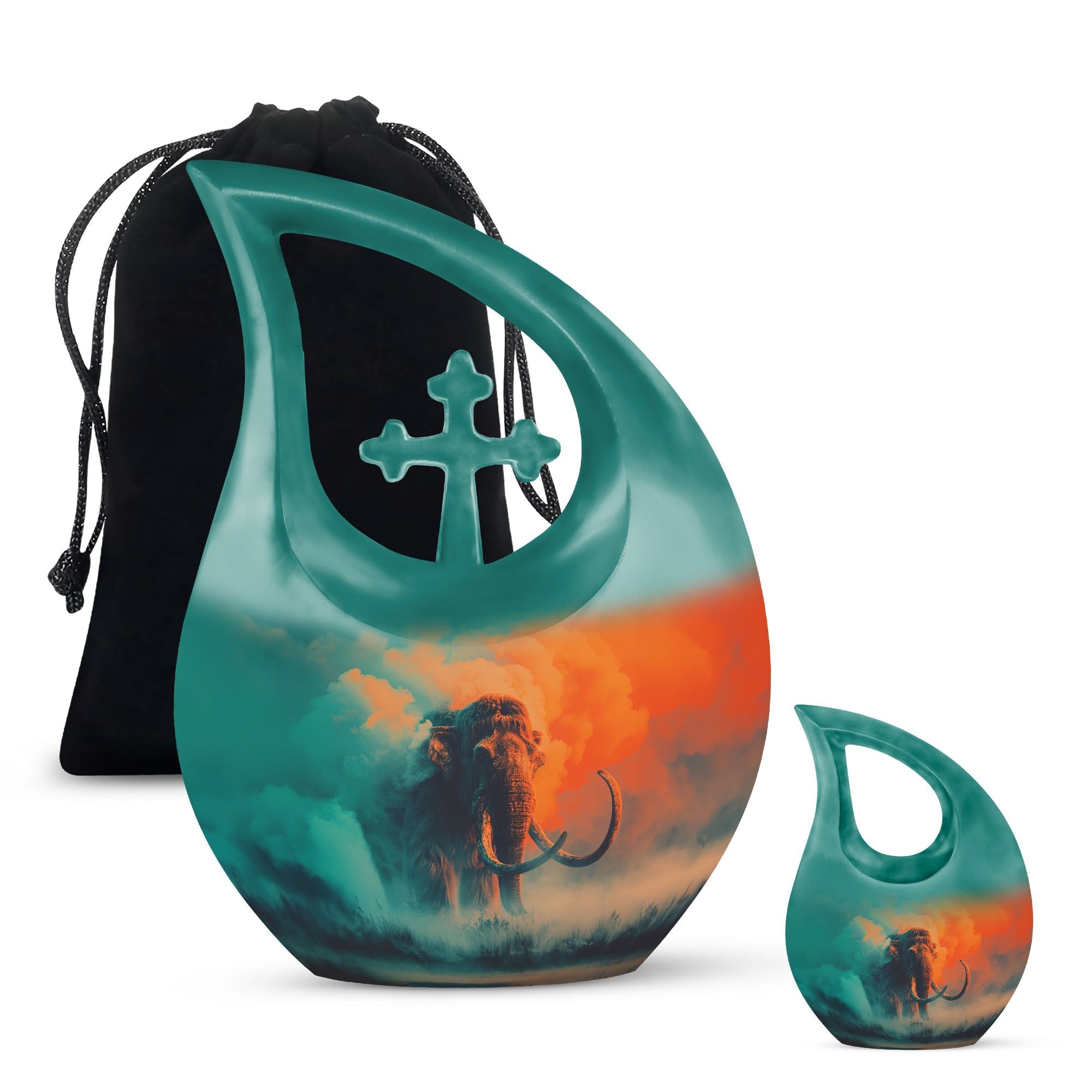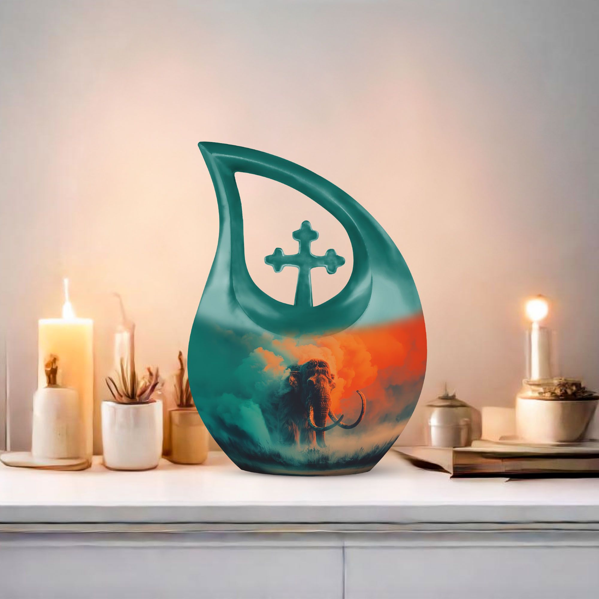 Discover the symbolism and deep respect for life encapsulated in our Mamoth Urn. This stand-out memorial urn for ashes is an elegant final resting place for your loved ones. Crafted from robust aluminium, the urn features a distinctive 'Cross Drop' emblem, leaving a profound, spiritual impression. With its 10-inch dimension and weighing just 3.3 pounds, this remarkable piece is both portable and sturdy. It boasts an ample capacity of 200 cubic inches, making it suitable for use as a large urn. To give it a personal touch, each urn can be customized with engraved names. Our Mamoth Urn defies the ordinary, embracing the profound and the personal. Adding to this, each purchase includes a velvet pouch, providing a delicate containment for the ashes. The urn truly embodies the spirit of memorial urns, serving as a precious keepsake to cherish and hold close to your heart. Keywords: Urns for Ashes, Custom Urns, Keepsake Urns, Custom Urns for Ashes.