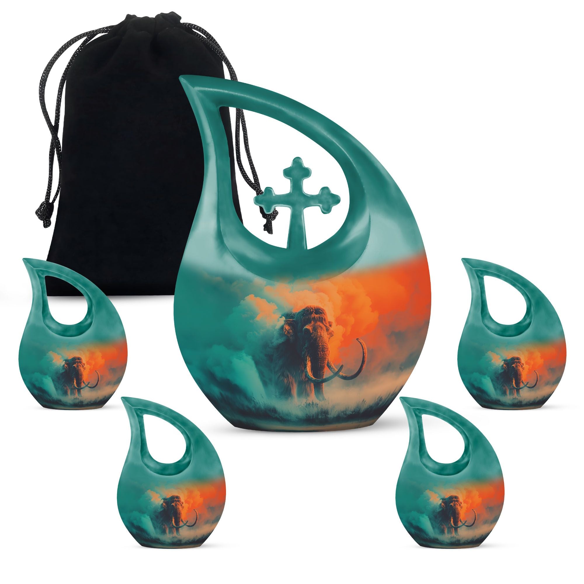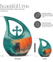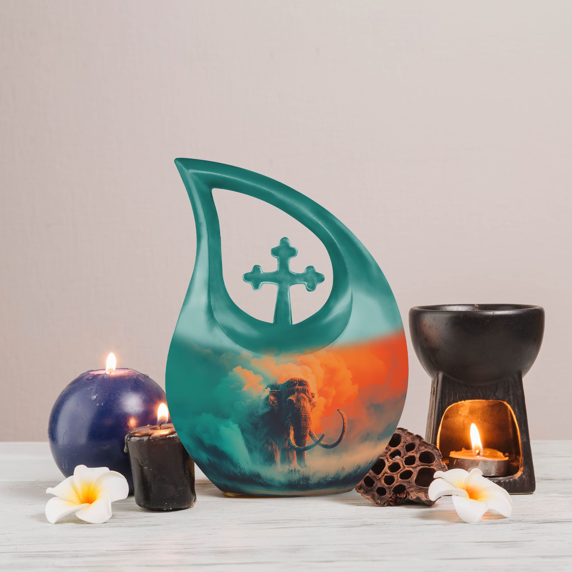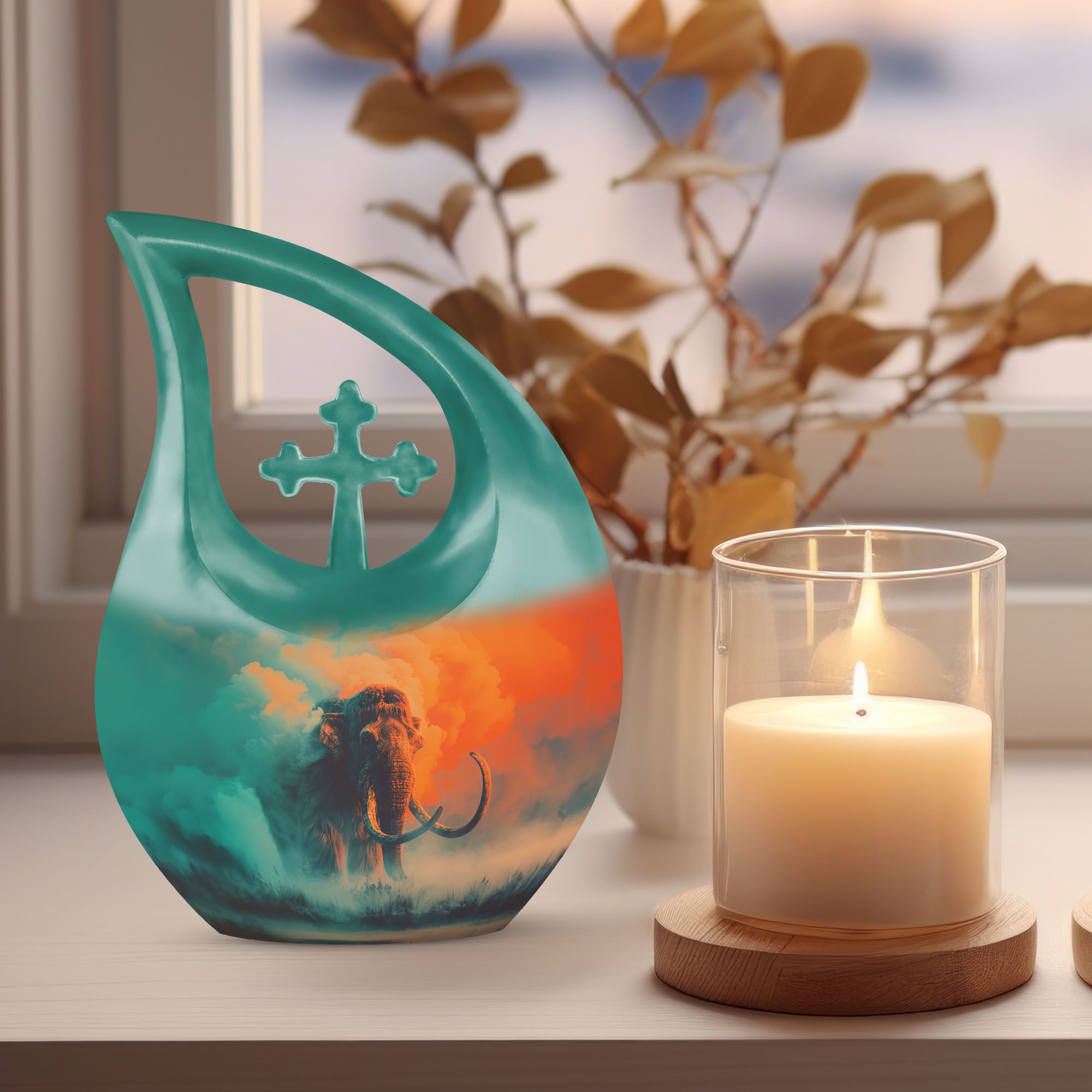 Discover the symbolism and deep respect for life encapsulated in our Mamoth Urn. This stand-out memorial urn for ashes is an elegant final resting place for your loved ones. Crafted from robust aluminium, the urn features a distinctive 'Cross Drop' emblem, leaving a profound, spiritual impression. With its 10-inch dimension and weighing just 3.3 pounds, this remarkable piece is both portable and sturdy. It boasts an ample capacity of 200 cubic inches, making it suitable for use as a large urn. To give it a personal touch, each urn can be customized with engraved names. Our Mamoth Urn defies the ordinary, embracing the profound and the personal. Adding to this, each purchase includes a velvet pouch, providing a delicate containment for the ashes. The urn truly embodies the spirit of memorial urns, serving as a precious keepsake to cherish and hold close to your heart. Keywords: Urns for Ashes, Custom Urns, Keepsake Urns, Custom Urns for Ashes.