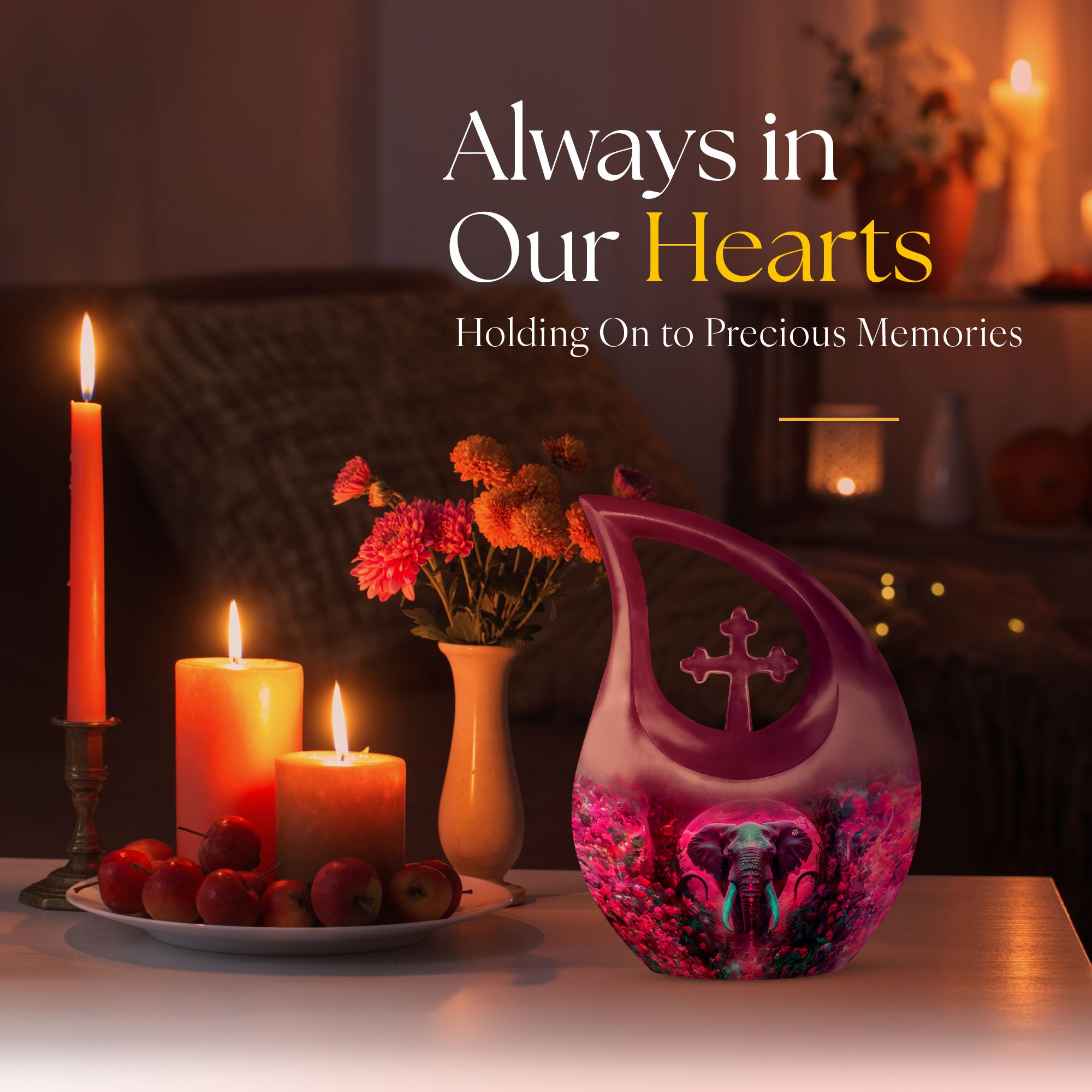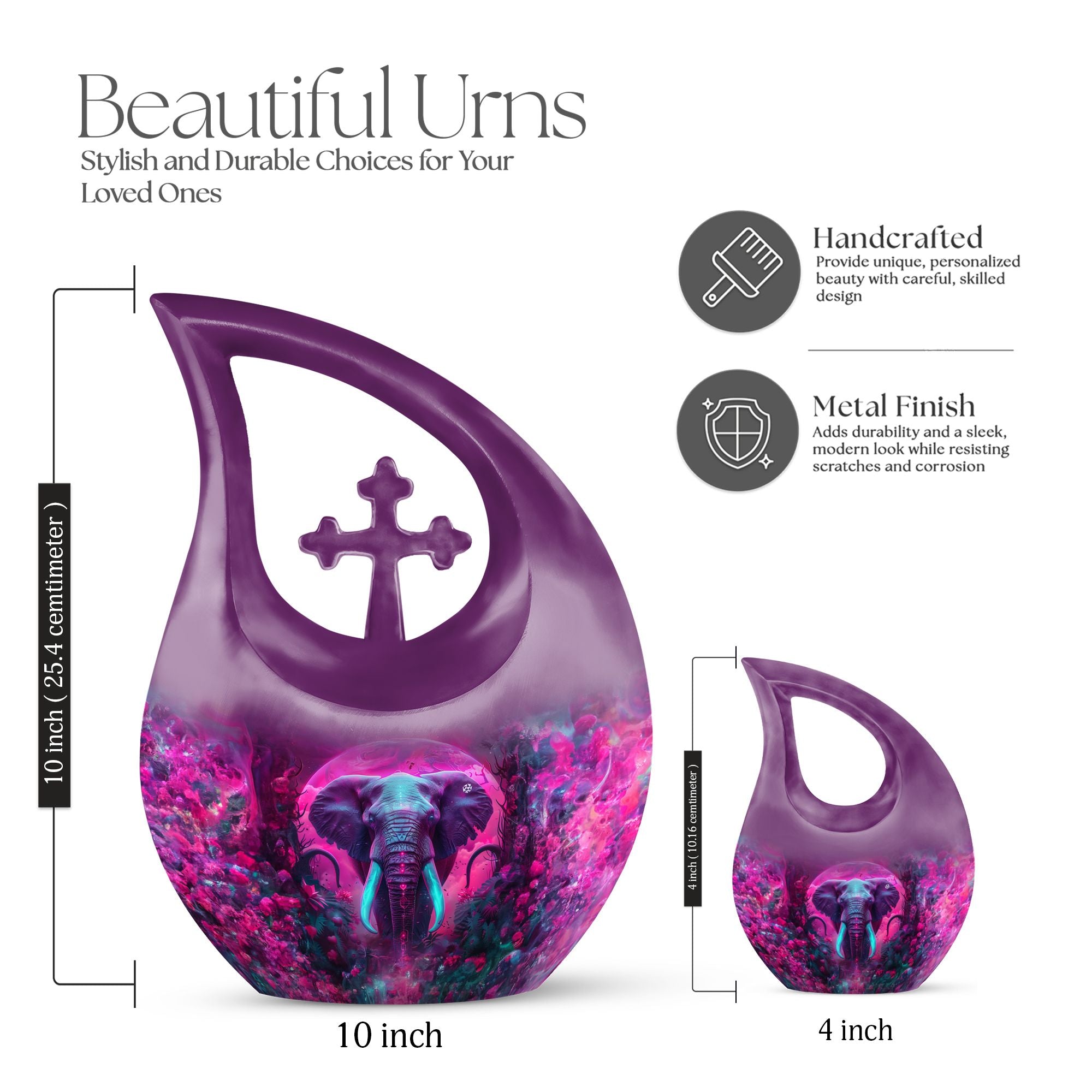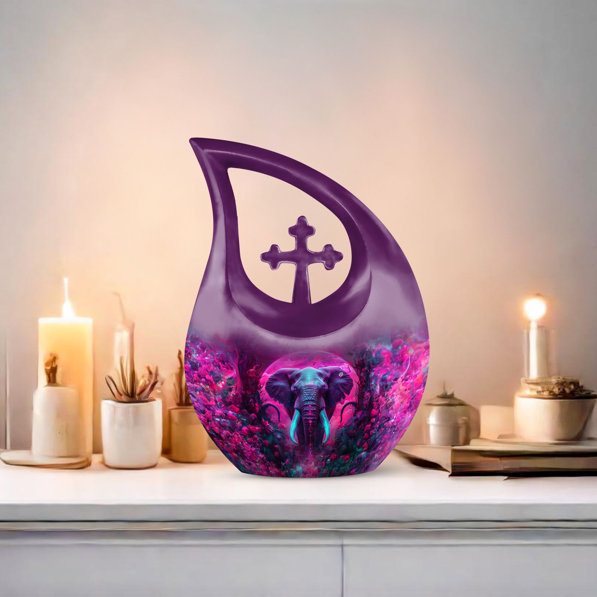 Experience a unique blend of beauty and serenity with our 'Mammoth' inspired 'Memorial Urn', a perfect choice for those seeking funeral urns for ashes. With a standout 'Cross Drop' theme, this aluminium-crafted large urn makes an elegant statement while keeping the essence of your loved ones intact. The urn measures at a respectable size of 10 inches and weighs 3.3 pounds. Its substantial capacity of 200 cubic inches ensures adequate space for adults and seniors. Moreover, our package comes with a velvet pouch providing a loving containment for ashes. One of the special features of this urn is the opportunity for customization. Personalize the urn with engraved names to keep the memories alive. This urn gracefully complements various funeral options and works exceptionally well as a double urn or an urn for mom. Replace the typical with our decorative urns for ashes and ensure your loved one rests in a place as unique as they were.