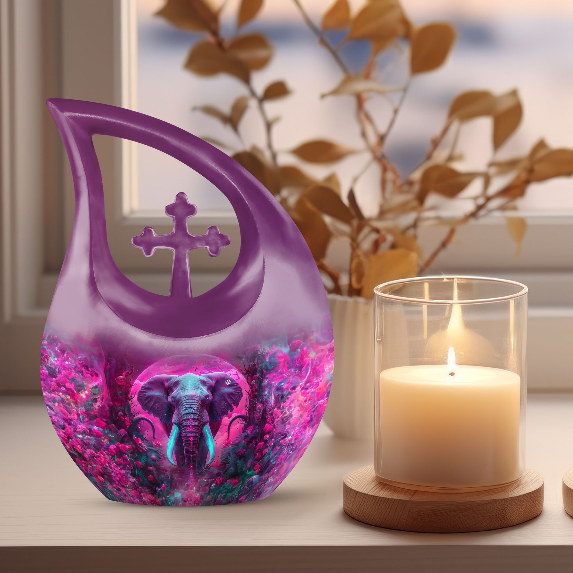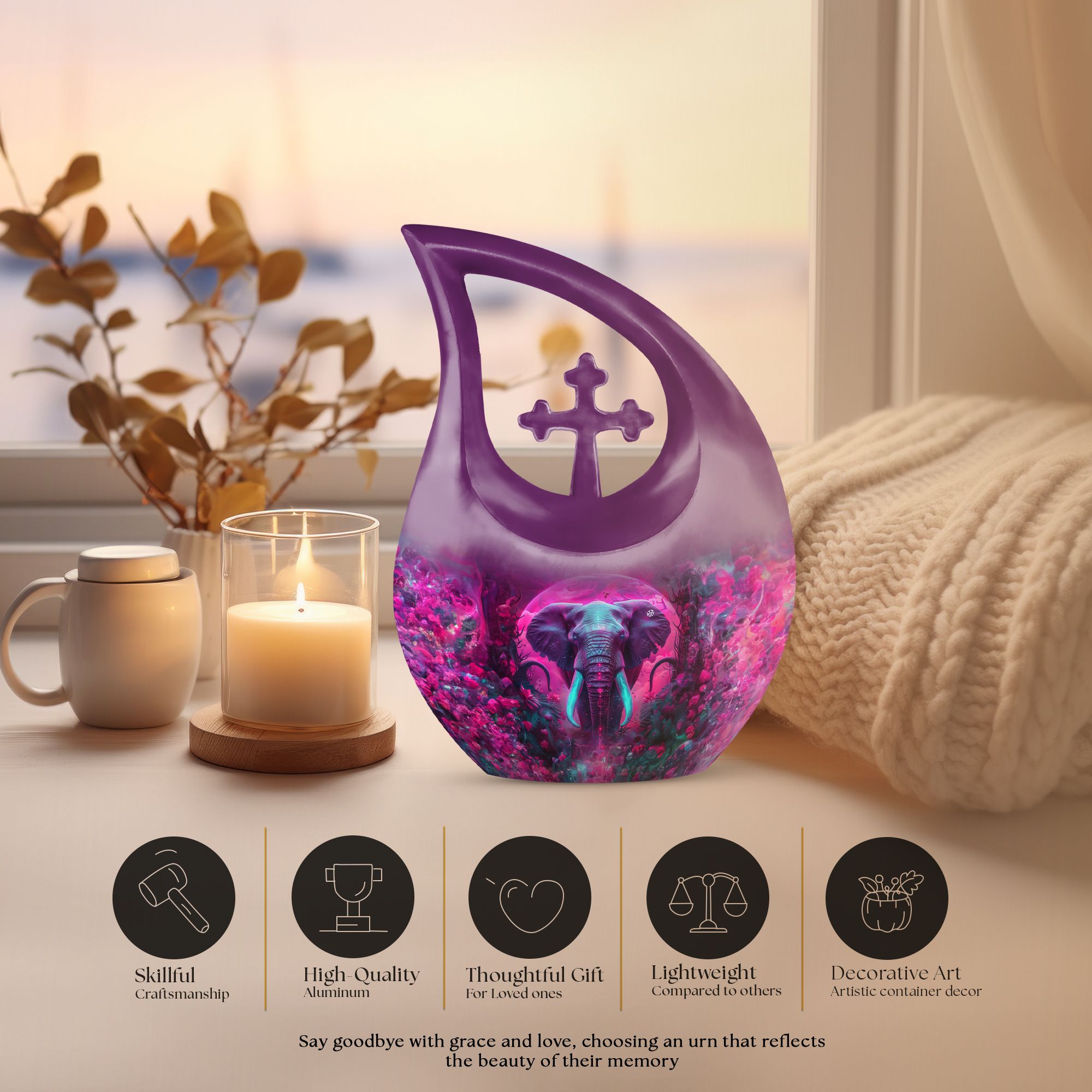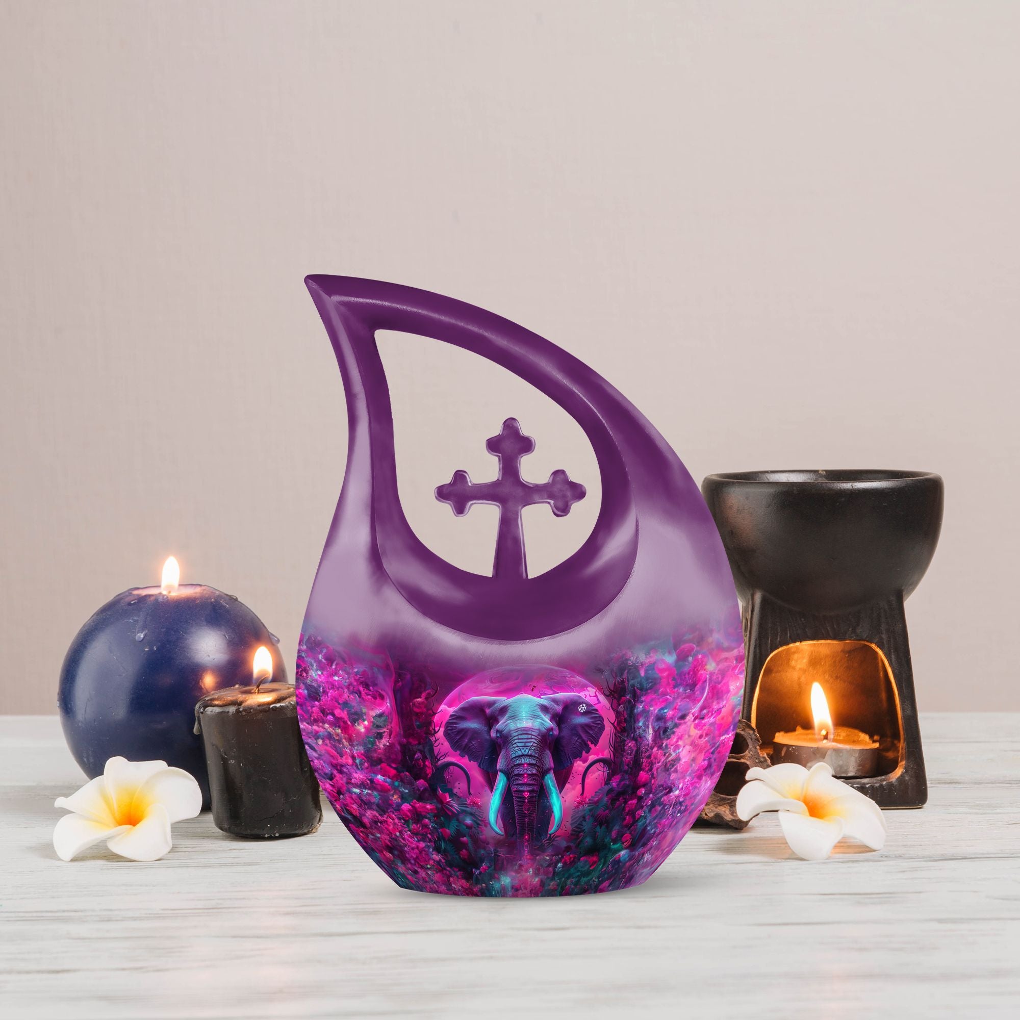Experience a unique blend of beauty and serenity with our 'Mammoth' inspired 'Memorial Urn', a perfect choice for those seeking funeral urns for ashes. With a standout 'Cross Drop' theme, this aluminium-crafted large urn makes an elegant statement while keeping the essence of your loved ones intact. The urn measures at a respectable size of 10 inches and weighs 3.3 pounds. Its substantial capacity of 200 cubic inches ensures adequate space for adults and seniors. Moreover, our package comes with a velvet pouch providing a loving containment for ashes. One of the special features of this urn is the opportunity for customization. Personalize the urn with engraved names to keep the memories alive. This urn gracefully complements various funeral options and works exceptionally well as a double urn or an urn for mom. Replace the typical with our decorative urns for ashes and ensure your loved one rests in a place as unique as they were.