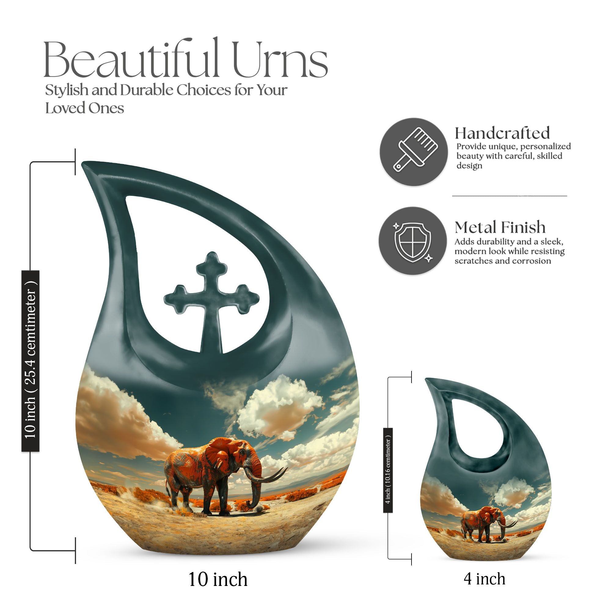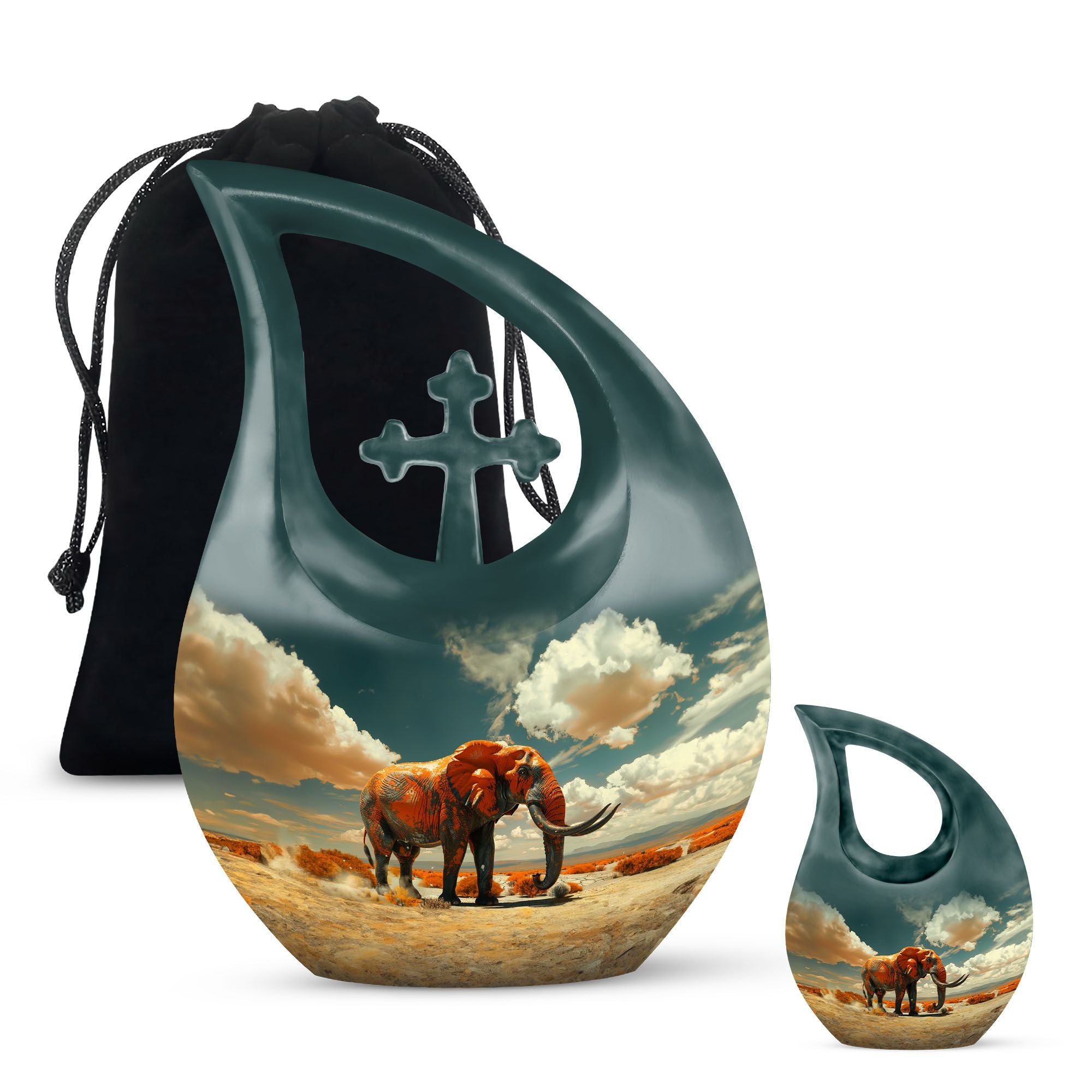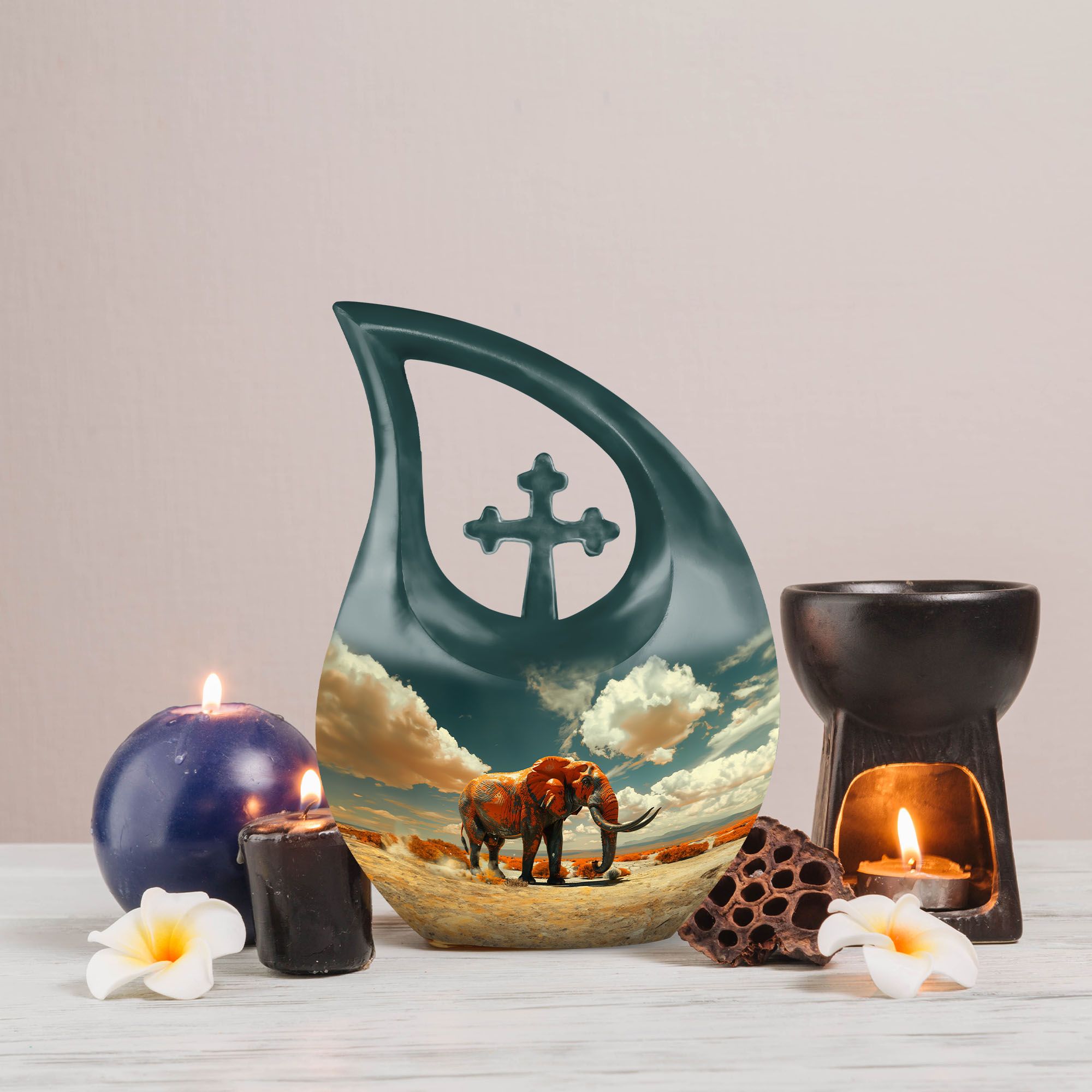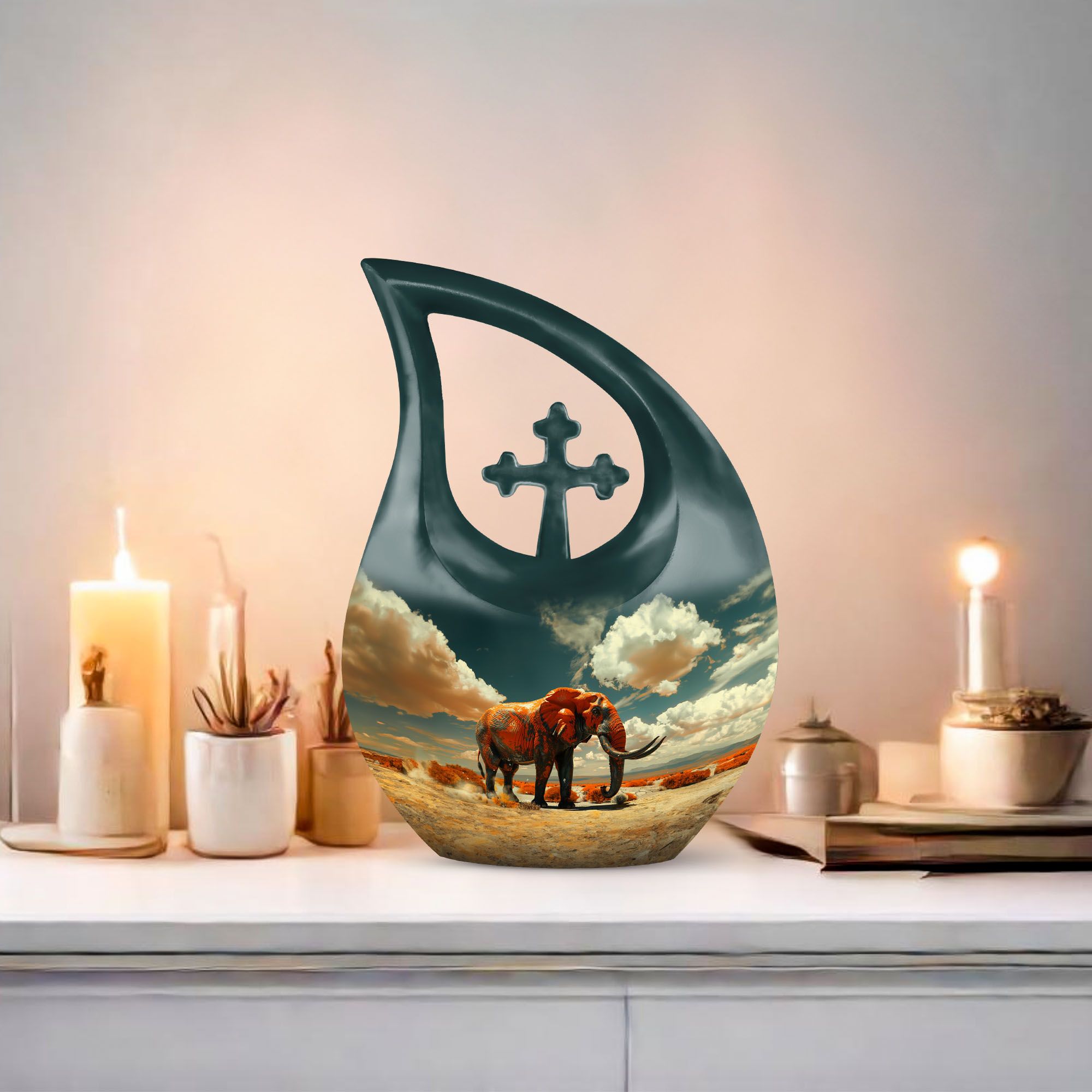 Find solace with our Mammoth Cross-Drop Large Urn, a respectful resting place for your loved one. Crafted delicately from aluminium, this sizeable 10-inch urn illustrates a solemn yet elegant representation of your cherished memories. Weighing 3.3 pounds and encompassing up to 200 cubic inches, it serves as an embracing sanctuary for adult human ashes. Our Urn is not only a part of the Memorial Ceremony Supplies but also a reflection of your personal touch with its customizable feature that allows engraved names for a more profound connection. It comes accompanied by a velvet pouch to contain the ashes in a subtle and dignified manner. The keywords 'Modern Urns For Human Ashes, Cremation Urns For Adults, Unique Urns For Human Ashes, Cremation Caskets,' imply its affinity for contemporary design. Our Keepsake urn perfectly aligns with searches involving 'memorial urns' by our clientele seeking a heartfelt and sacred memento of their departed ones. Embrace an emblem of undying love with our Mammoth Cross-Drop Urn.