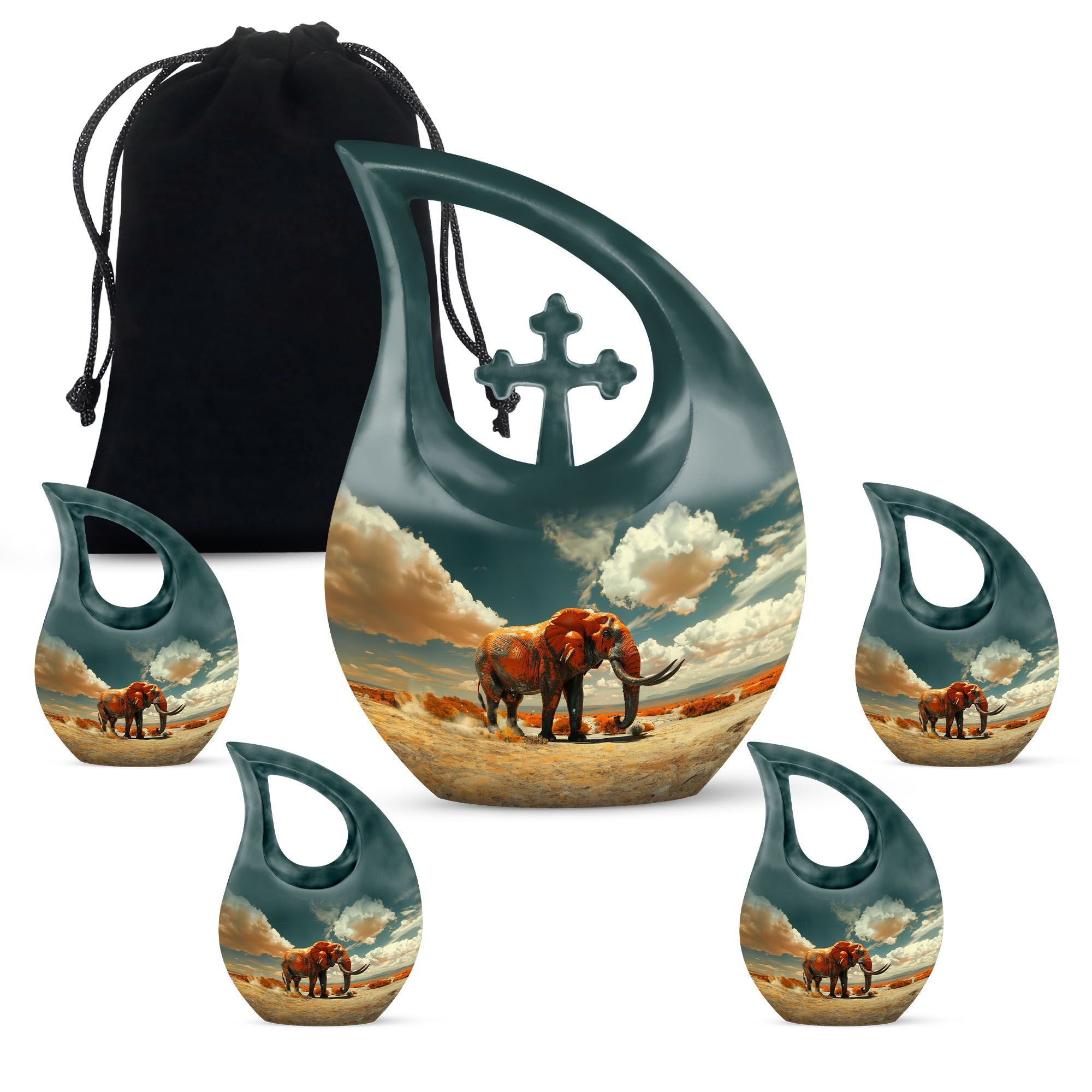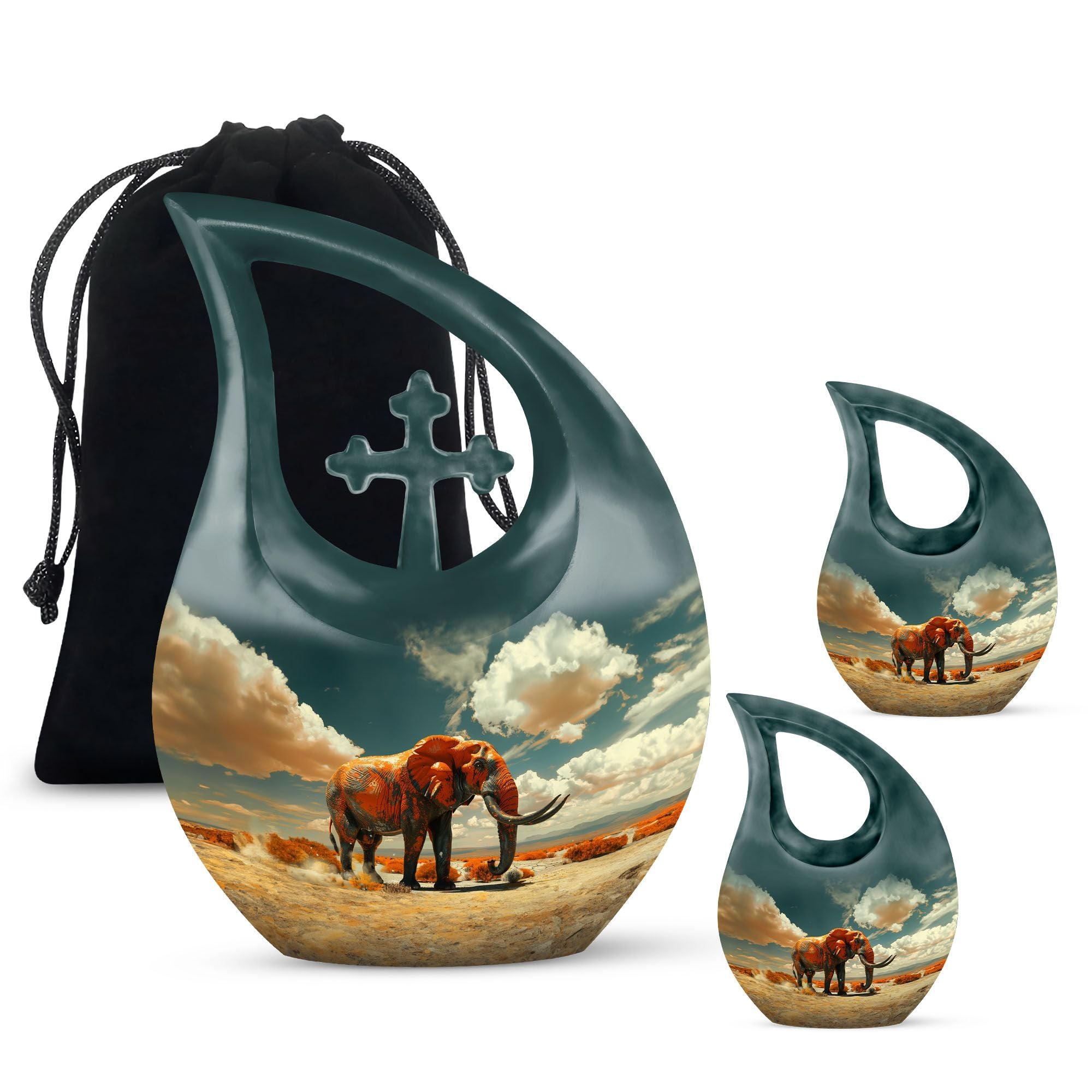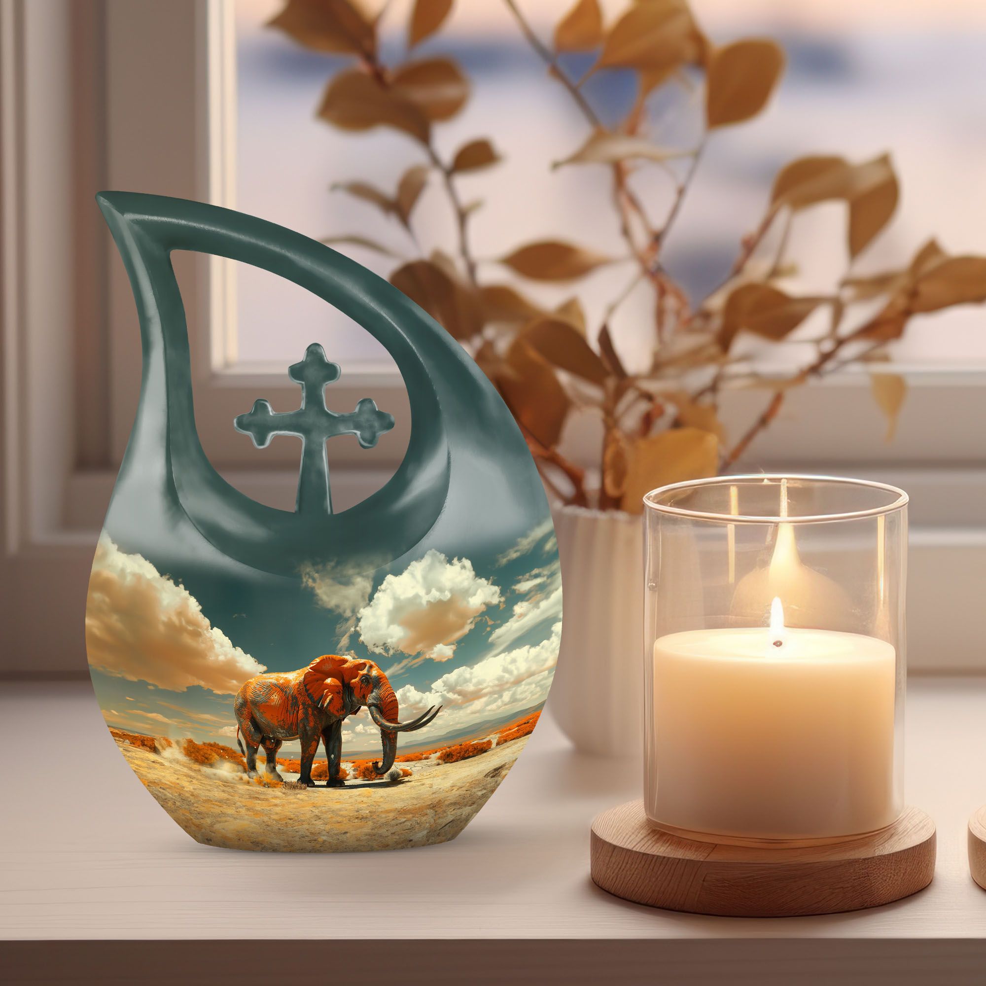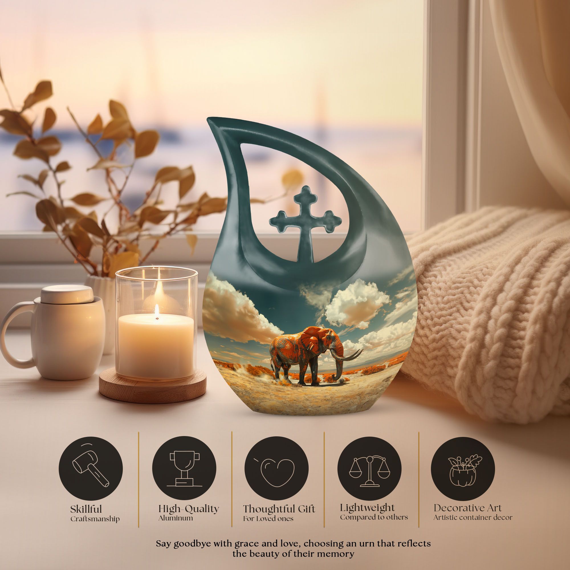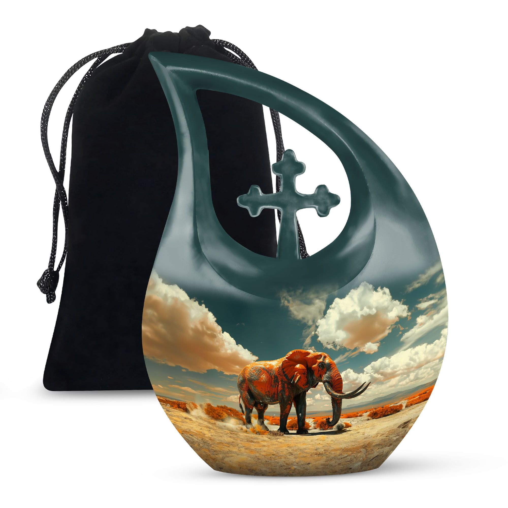 Find solace with our Mammoth Cross-Drop Large Urn, a respectful resting place for your loved one. Crafted delicately from aluminium, this sizeable 10-inch urn illustrates a solemn yet elegant representation of your cherished memories. Weighing 3.3 pounds and encompassing up to 200 cubic inches, it serves as an embracing sanctuary for adult human ashes. Our Urn is not only a part of the Memorial Ceremony Supplies but also a reflection of your personal touch with its customizable feature that allows engraved names for a more profound connection. It comes accompanied by a velvet pouch to contain the ashes in a subtle and dignified manner. The keywords 'Modern Urns For Human Ashes, Cremation Urns For Adults, Unique Urns For Human Ashes, Cremation Caskets,' imply its affinity for contemporary design. Our Keepsake urn perfectly aligns with searches involving 'memorial urns' by our clientele seeking a heartfelt and sacred memento of their departed ones. Embrace an emblem of undying love with our Mammoth Cross-Drop Urn.