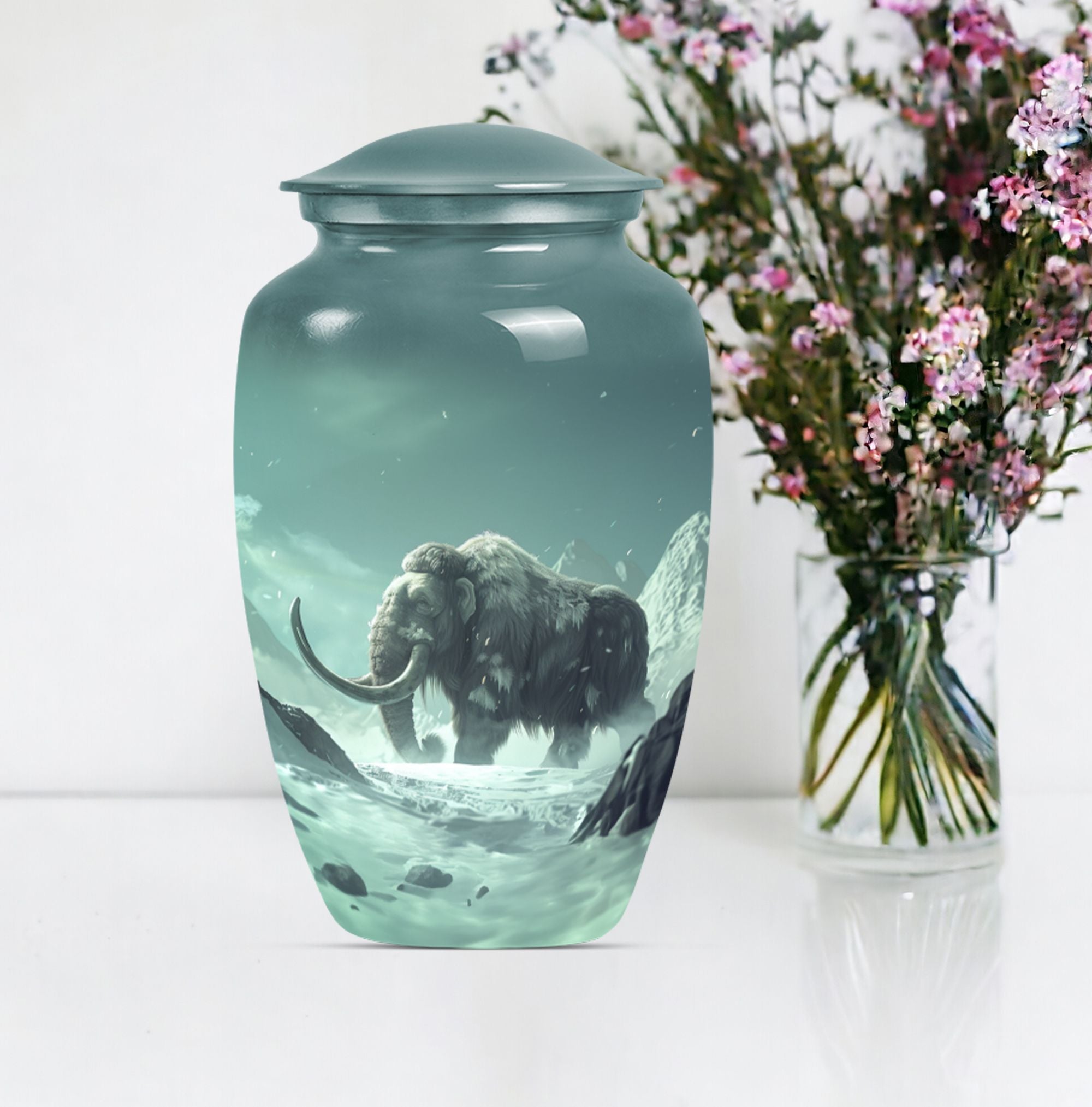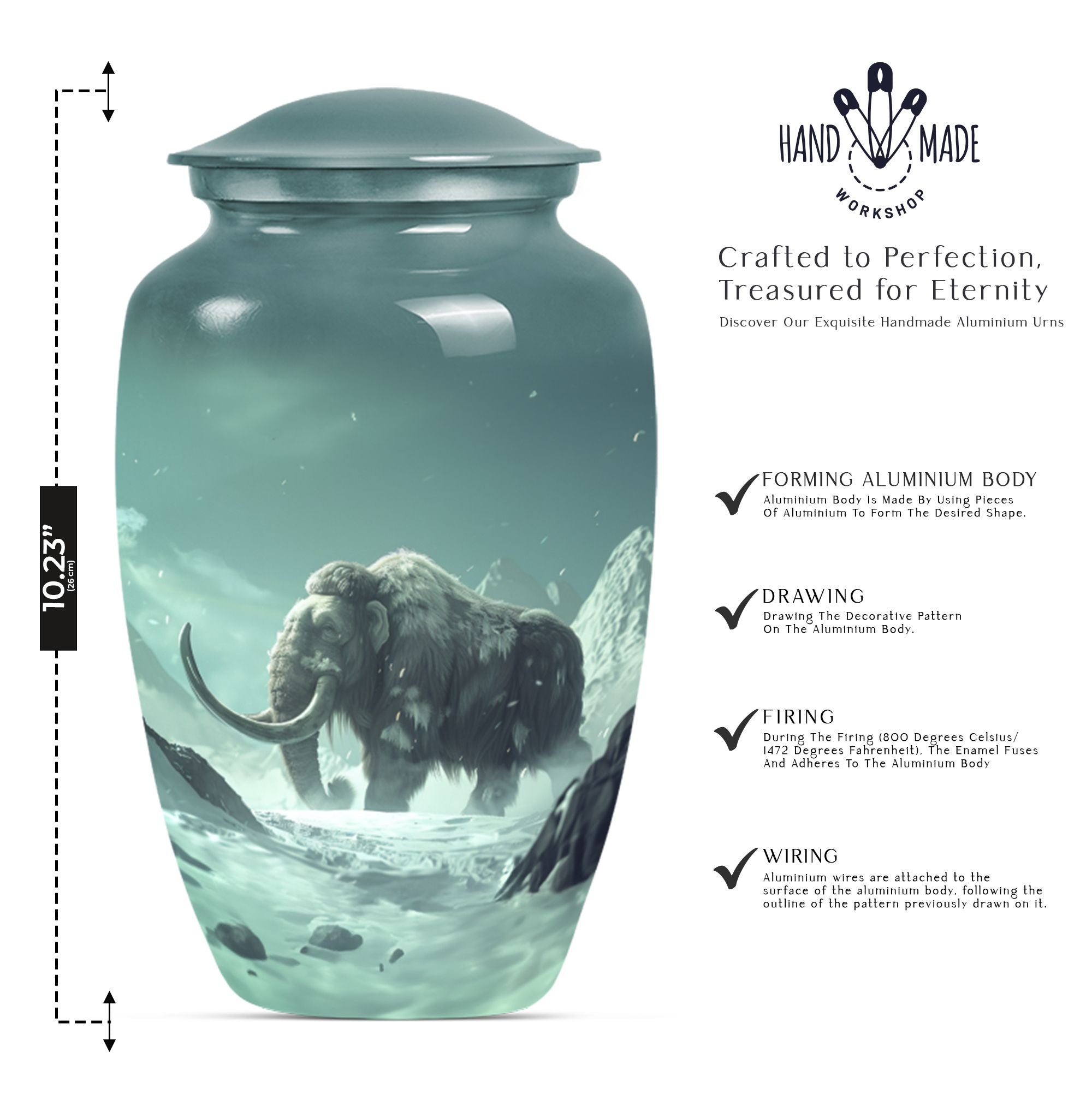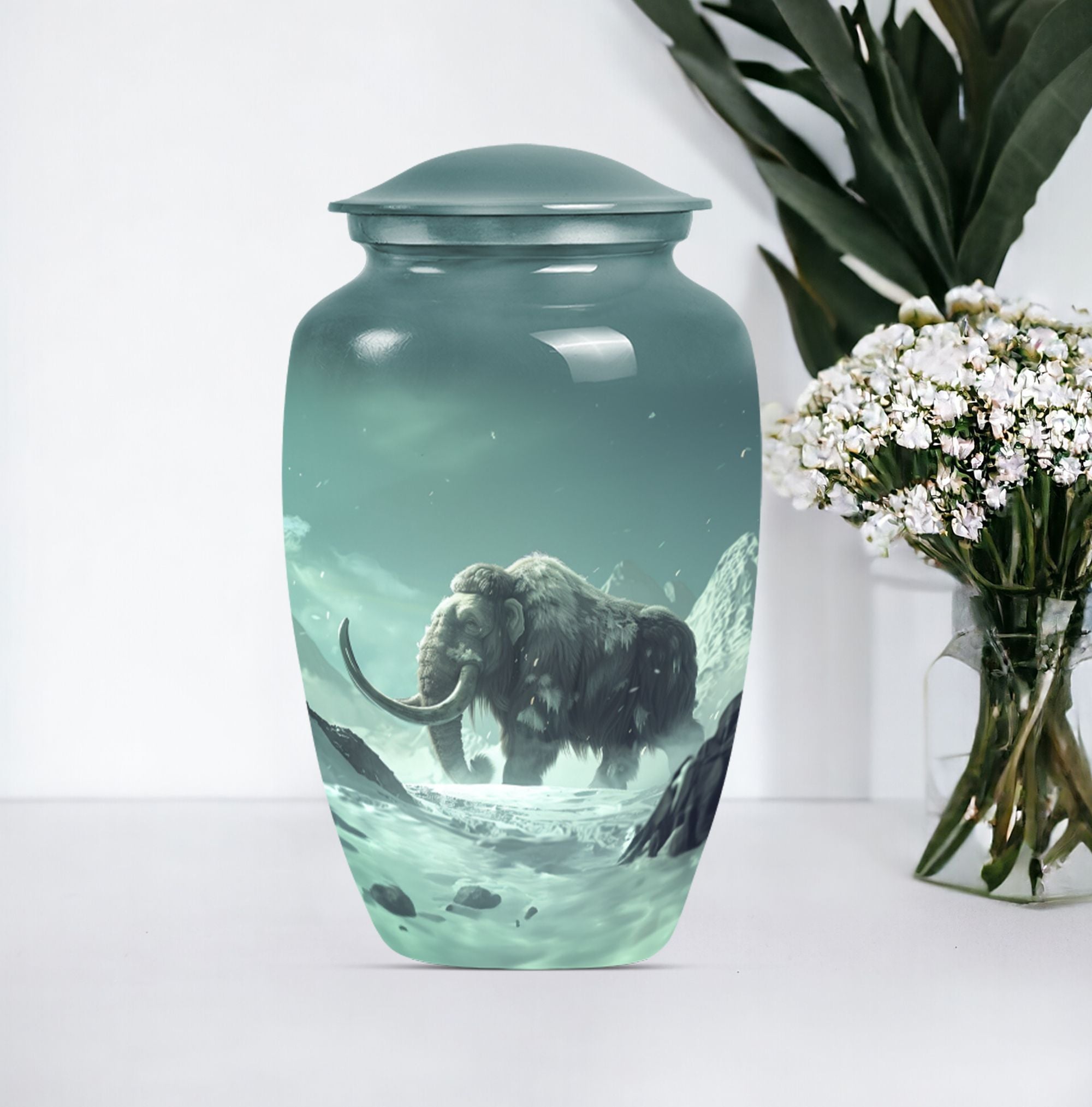 Pay tribute and honor your departed loved one with our exquisite Mammoth Urn. This 10-inch urn is a prime selection under the Memorial Ceremony Supplies. It's not merely an urn - it's a large, delicate butterfly-themed shrine intricately crafted from enduring aluminium, capable of holding up to 200 cubic inches of ashes. Weighing a sturdy 3.3 pounds, this cremation urn is constructed with scrupulous attention to details and quality. Your purchase includes a sophisticated velvet pouch providing containment and added security for your loved one's ashes. Personalized engravings offer character to the urn, making it more than just a ceremonial item but a cherished keepsake. Reflect on their unending spirit and keep their memory alive with our cremation medium urns. Highly regarded amongst burial urns for adult human ashes, it is a fitting homage for adult female or male and can also serve as companion cremation urns. Remember, it's not just about the goodbye but about cherishing their lingering presence. Place your order today for this unique butterfly-themed mammoth urn.