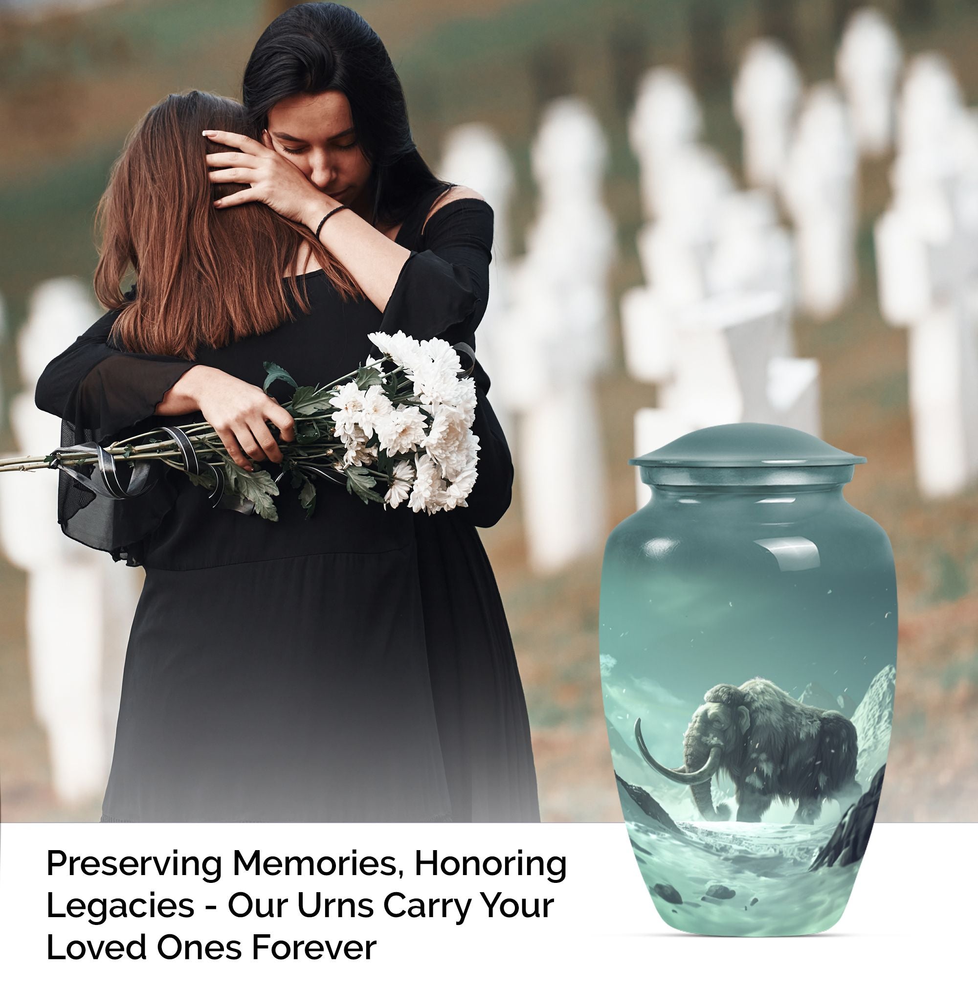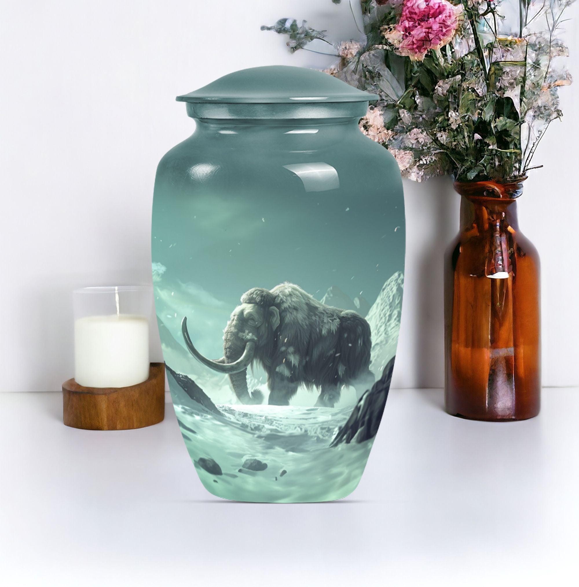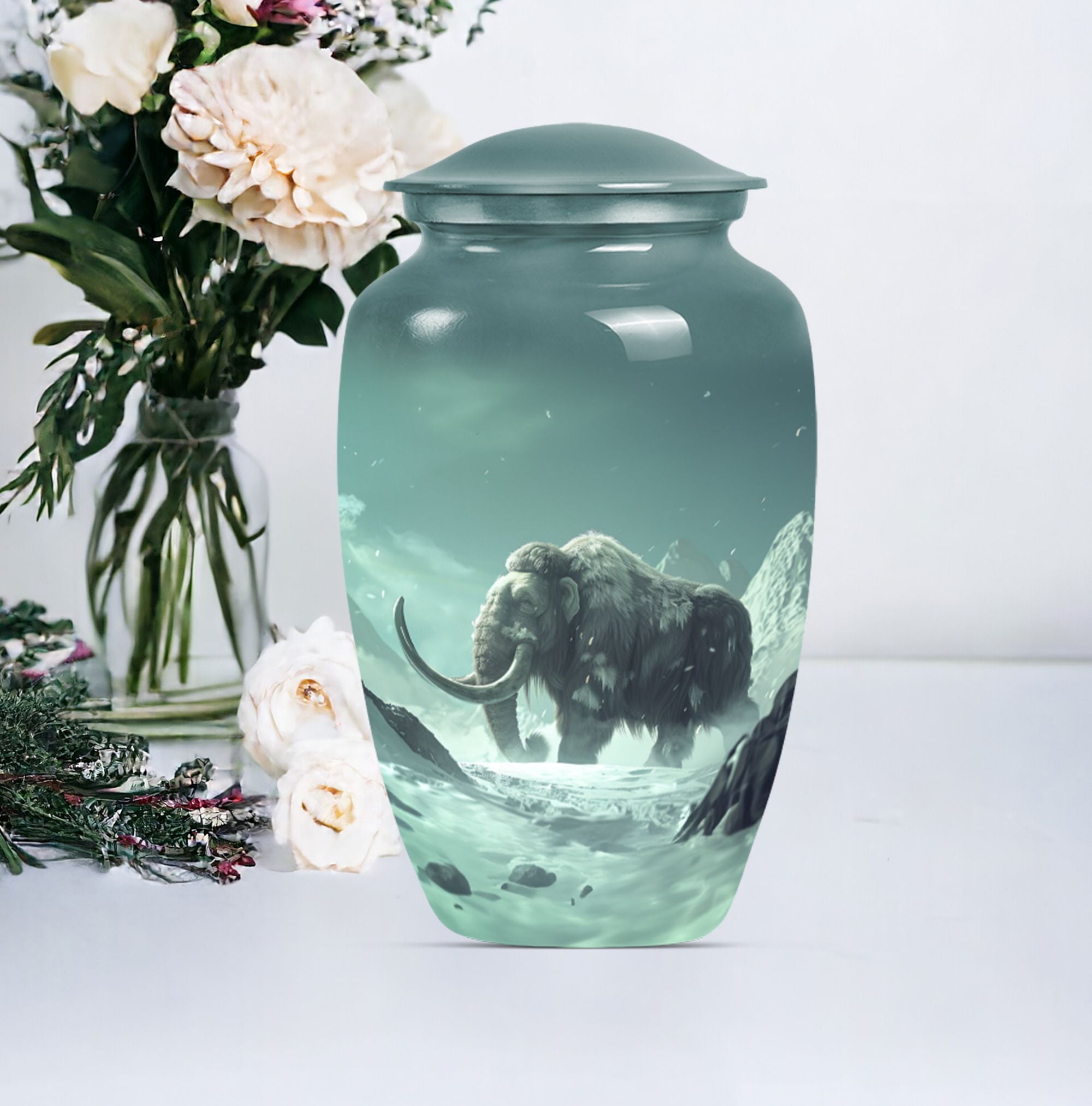 Pay tribute and honor your departed loved one with our exquisite Mammoth Urn. This 10-inch urn is a prime selection under the Memorial Ceremony Supplies. It's not merely an urn - it's a large, delicate butterfly-themed shrine intricately crafted from enduring aluminium, capable of holding up to 200 cubic inches of ashes. Weighing a sturdy 3.3 pounds, this cremation urn is constructed with scrupulous attention to details and quality. Your purchase includes a sophisticated velvet pouch providing containment and added security for your loved one's ashes. Personalized engravings offer character to the urn, making it more than just a ceremonial item but a cherished keepsake. Reflect on their unending spirit and keep their memory alive with our cremation medium urns. Highly regarded amongst burial urns for adult human ashes, it is a fitting homage for adult female or male and can also serve as companion cremation urns. Remember, it's not just about the goodbye but about cherishing their lingering presence. Place your order today for this unique butterfly-themed mammoth urn.