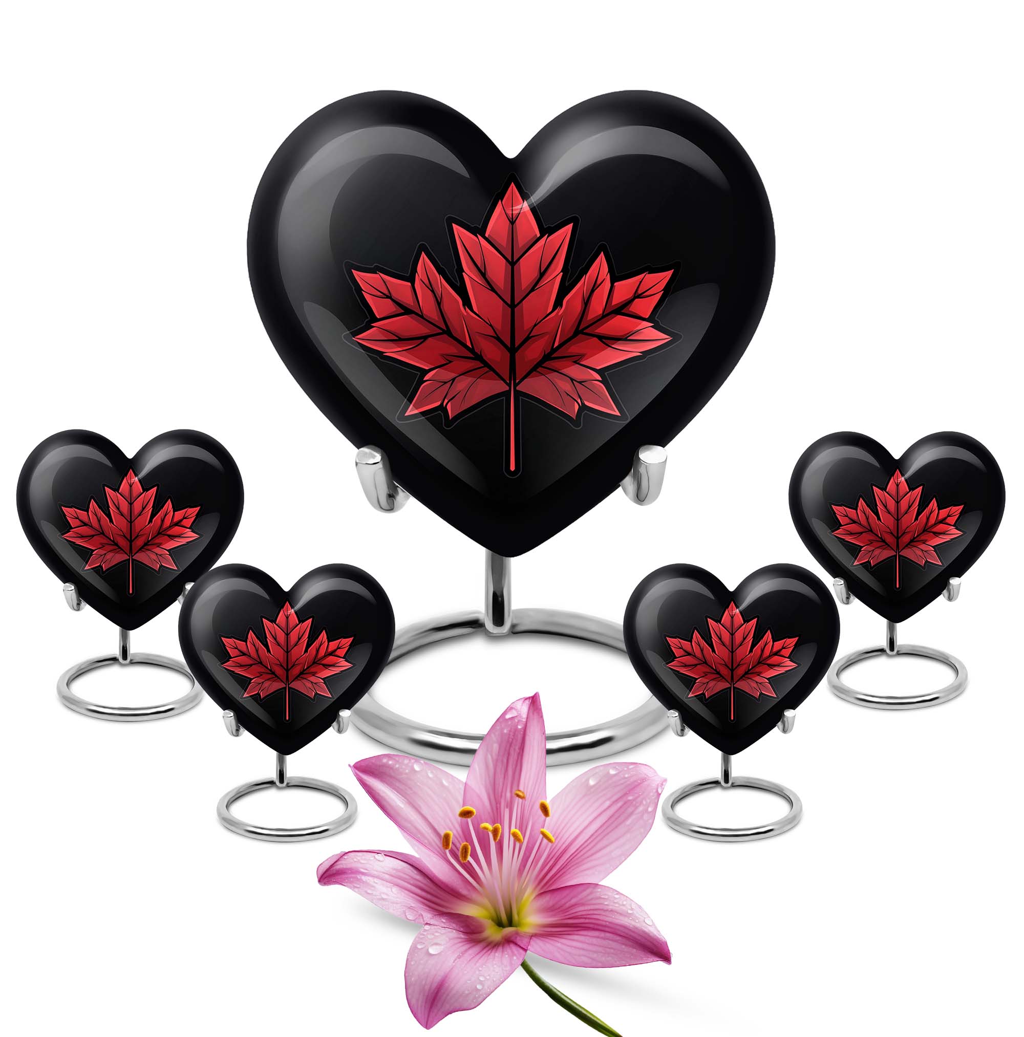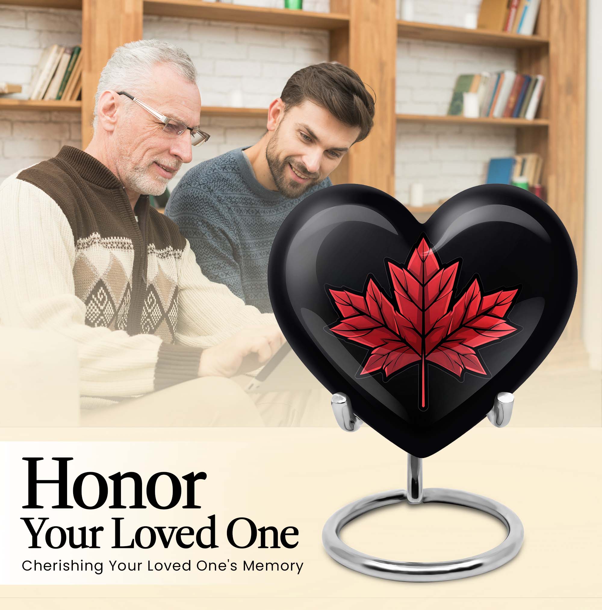 Immerse yourself in the beauty of our mapple leaf Urn, a tribute to your departed loved ones. Ideal for memorial burial, its heart-shaped form embodies warmth and love that transcends dimensions. Housed within a 10-inch frame, this Large Urn can store up to 200 cubic inches of ashes, making it suitable for most adults. Our cremation ashes urn is crafted from long-lasting aluminium, ensuring its durability without compromising its aesthetic appeal. The product comes with a velvet pouch for containment of the remnants, preserving your sentiments in the best manner possible. Additionally, we offer customization options, where you can personalize the urn with engraved names, transmuting it from a mere memorial urn to a deeply personal keepsake. With its floral theme, not only does it make an appropriate funeral burial selection, but also a subtle addition to your home décor. Its weight is manageable at 3.3 pounds, promising ease of transport during ceremonial occasions. Anticipate an ethereal union of sentimentality and elegance with our funeral urns for adult ashes.