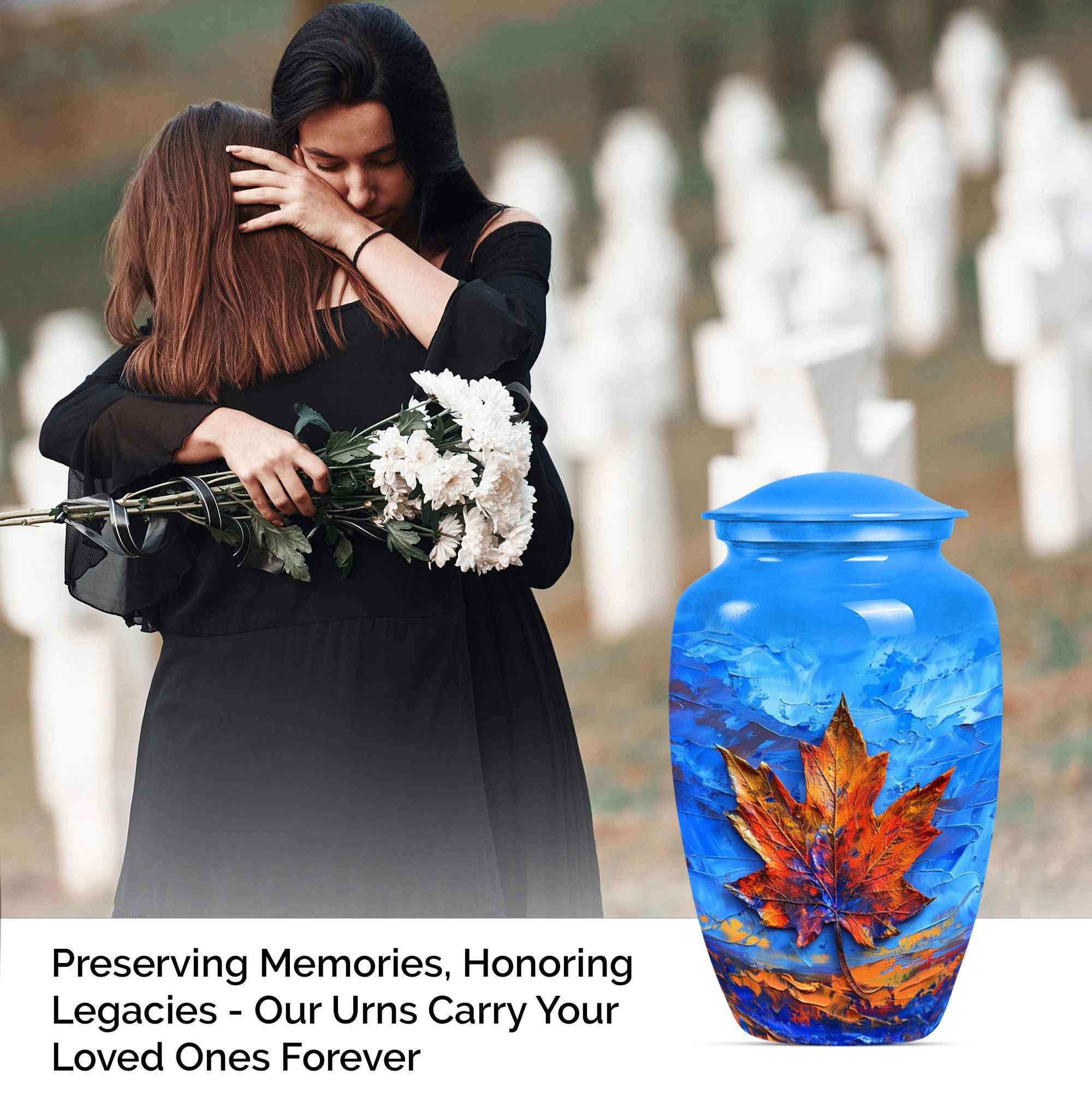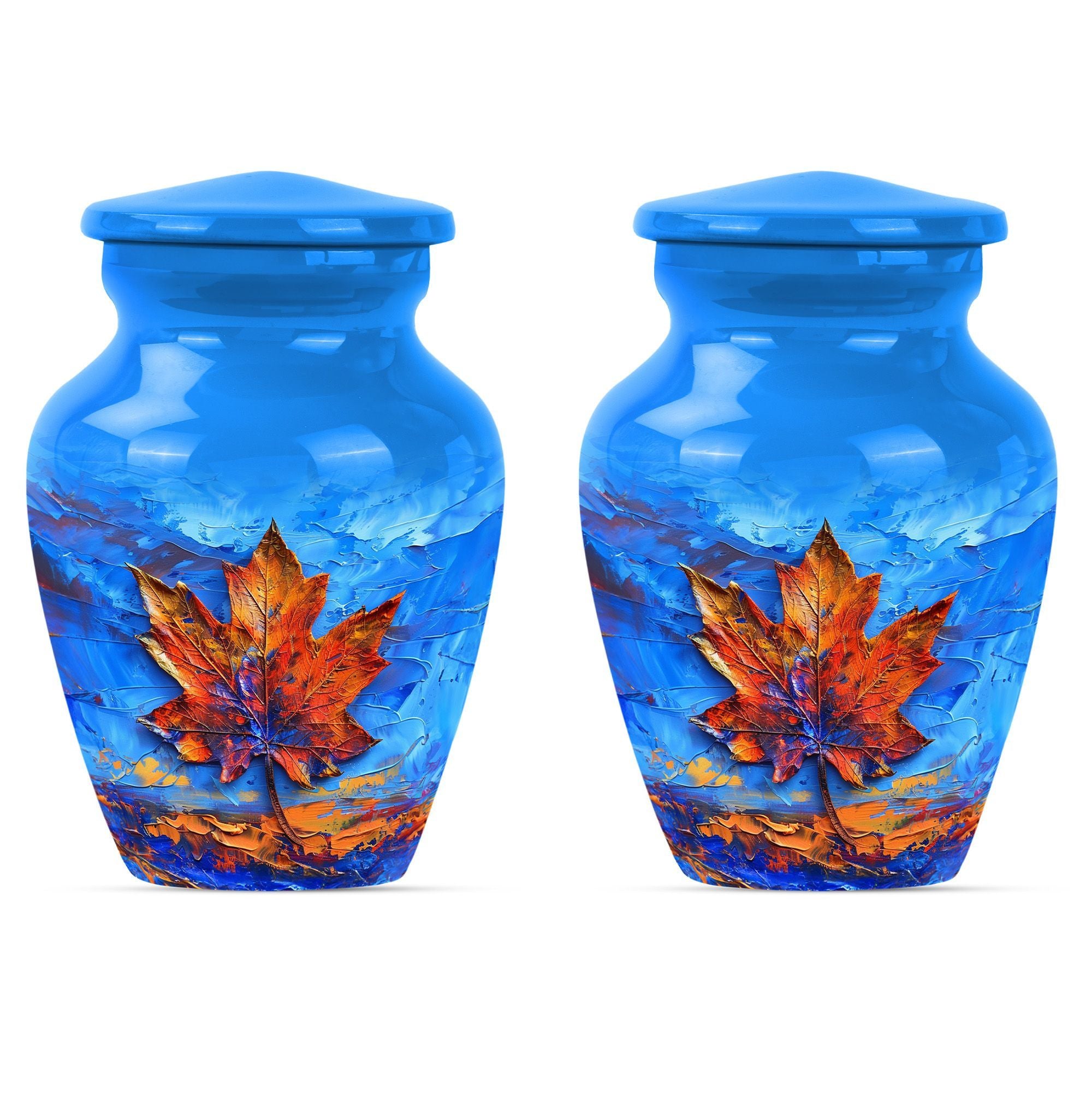 Express your love and memory with our profound 'Maple leaf Urn', a unique choice in memorial urns. This large-sized urn, standing at an imposing 10 inches in height and accommodating an impressive 200 cubic inches, is just the right item for a dignified, lasting remembrance. Crafted meticulously from high-grade aluminium, the urn weighs in at 3.3 pounds, symbolizing the weight and importance of the memories it holds. Functionality meets aesthetics as the urn comes with a theme of exquisitely designed flowers - a linguistic portrayal of eternal purity and the cycle of life. The package includes a velvet pouch, ensuring secure containment of ashes and the possibility to personalize with engraved names, adding an intimate touch to your tribute. Serving as a fitting memorial for women's ashes, this choice works well for ground burial. Furthermore, constructed with premium aluminium, this urn radiates a sense of permanence, just like your deep-seated love and memories. Perfectly suited for your needs, the search for 'metal urns for human ashes adult female' ends here with our classic urn.