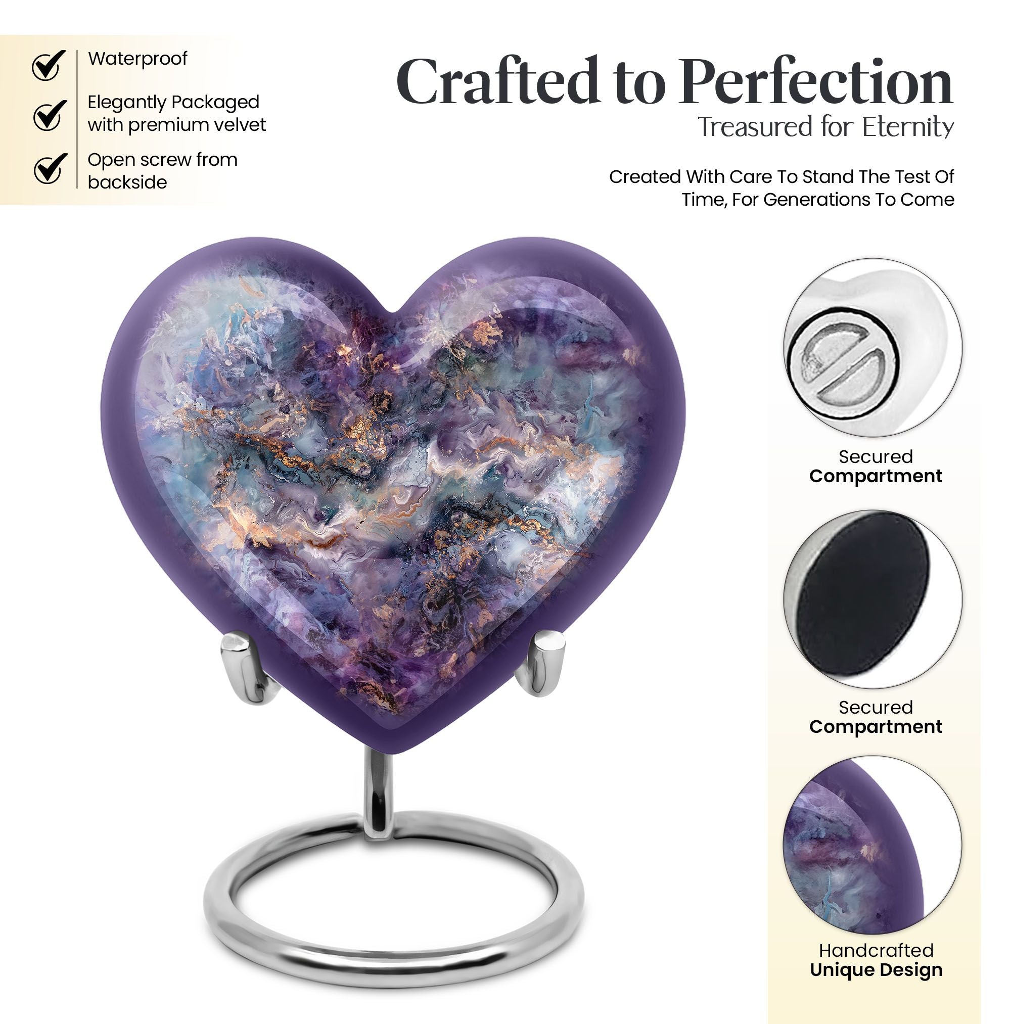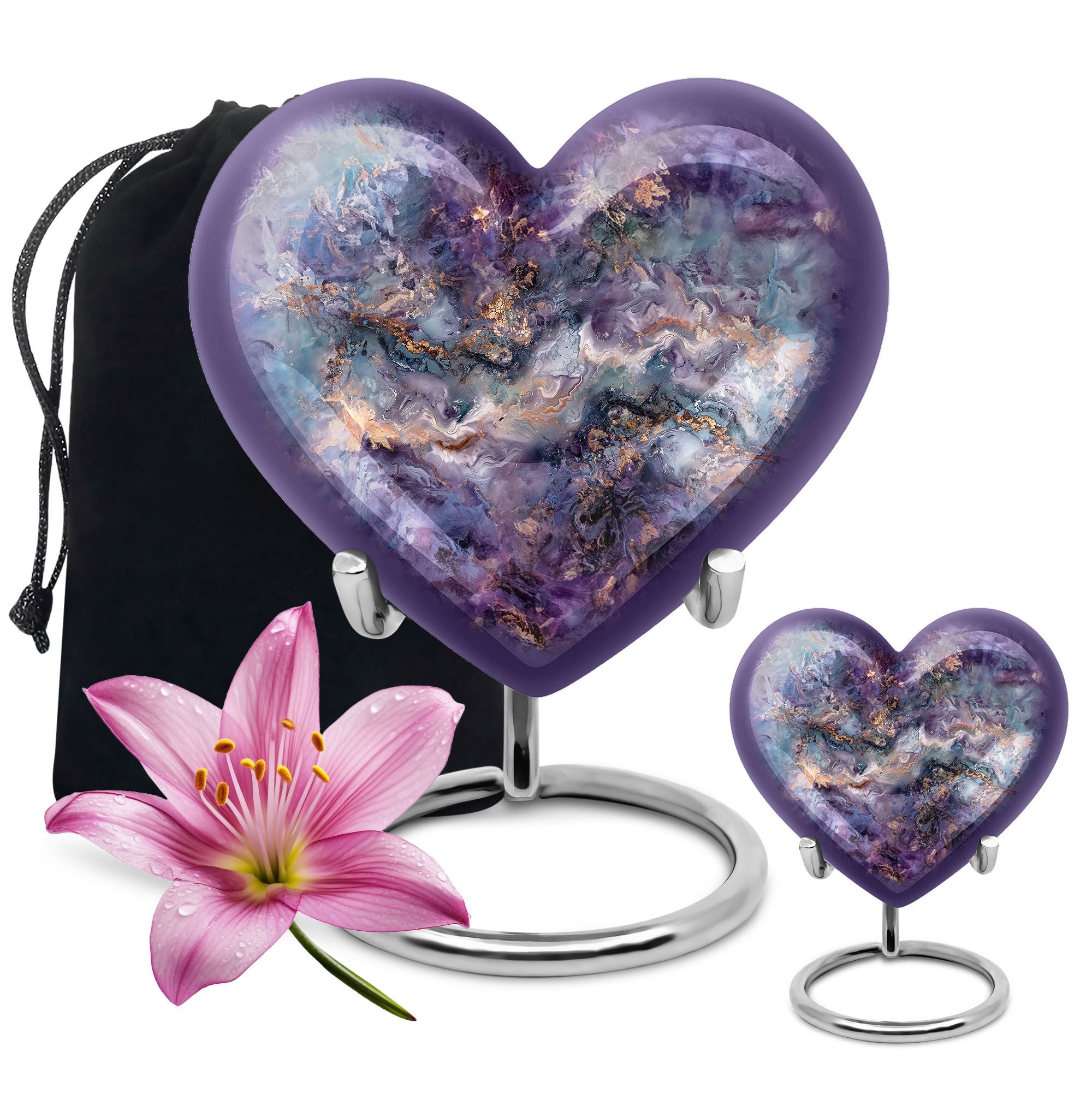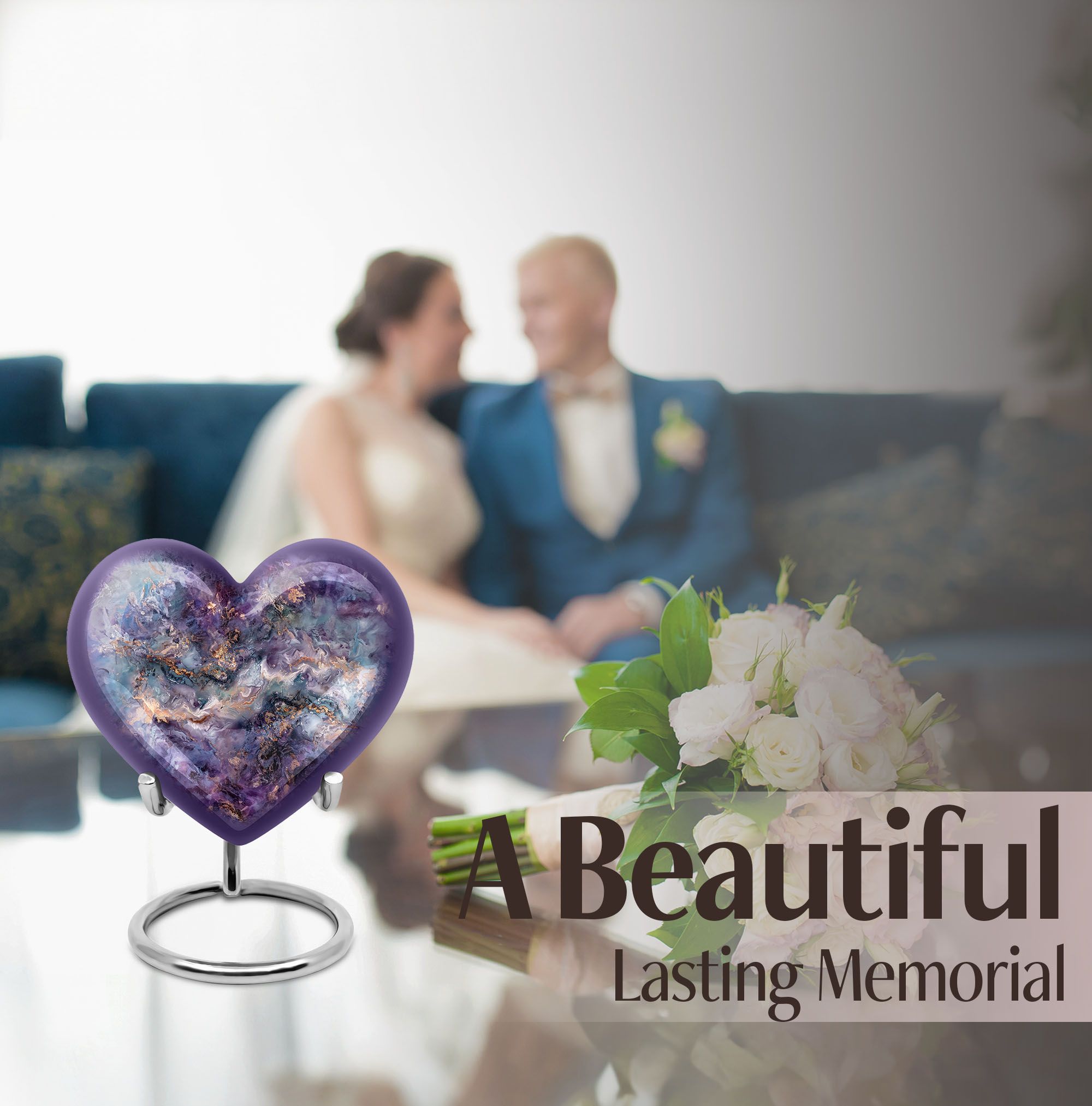 Honour the memory of your loved one with our 10 inches 'Abstract' Theme 'Heart Urn'. This Colourful Swirl Urn is more than mere memorial ceremony supply; it's a piece of art crafted from durable aluminium, weighing at just 3.3 pounds. Not just an aesthetic accessory, this adult-sized urn is designed to securely hold 200 cubic inches worth of ashes safely and discretely in a specially provided velvet pouch. This 'Large Urns' type product displays fine craftsmanship, making it an ideal choice for cremation urns for human ashes of adult males and even funeral urns for adult ashes of women. Adding an intimate touch, it offers the option to personalize with engraved names. Bring home this unique item and let it help you remember, reflect, and celebrate a life well-lived. Bear in mind, this is not your regular 'memorial urns'. It is a symbol of love, remembrance and respect.