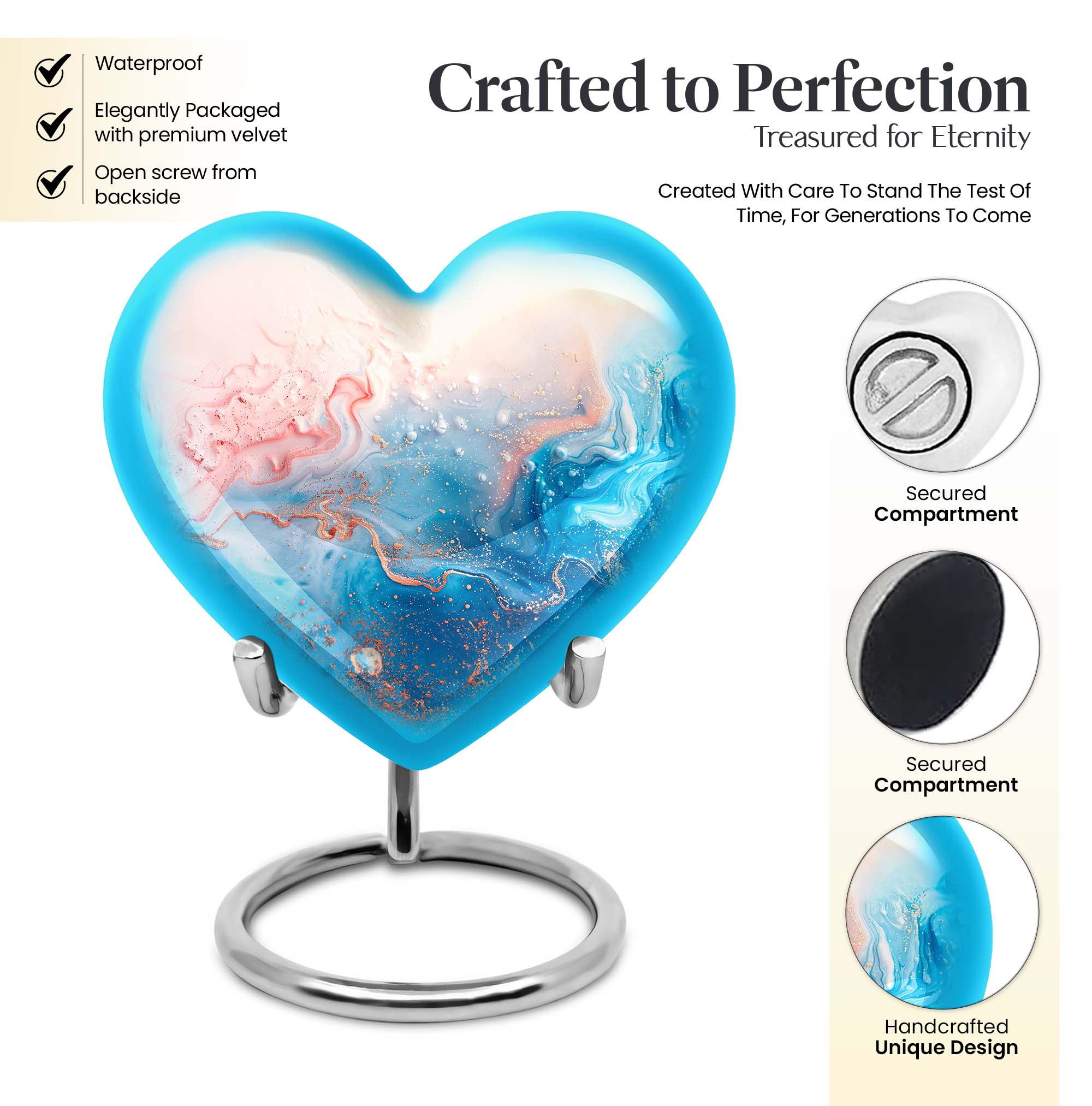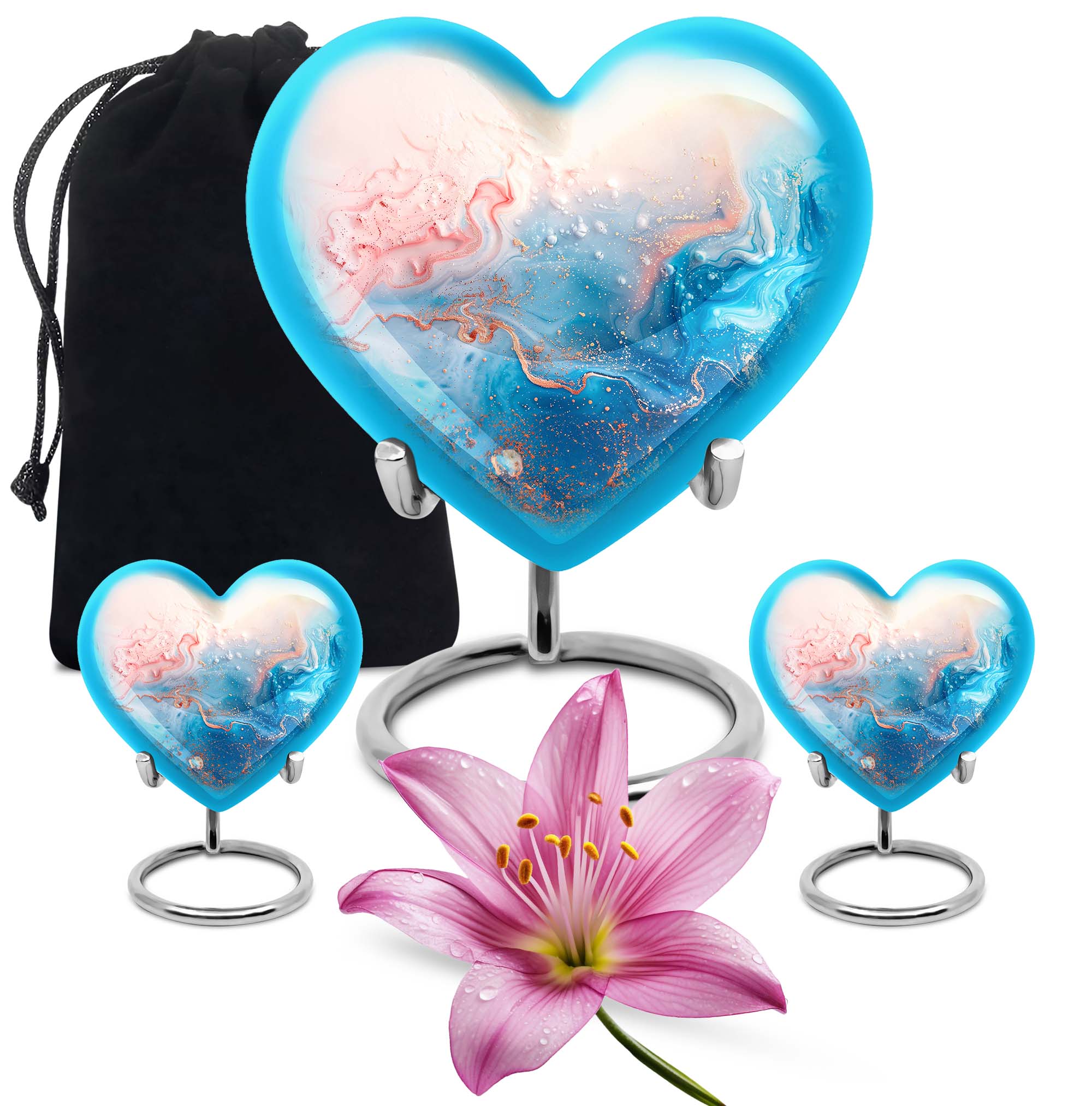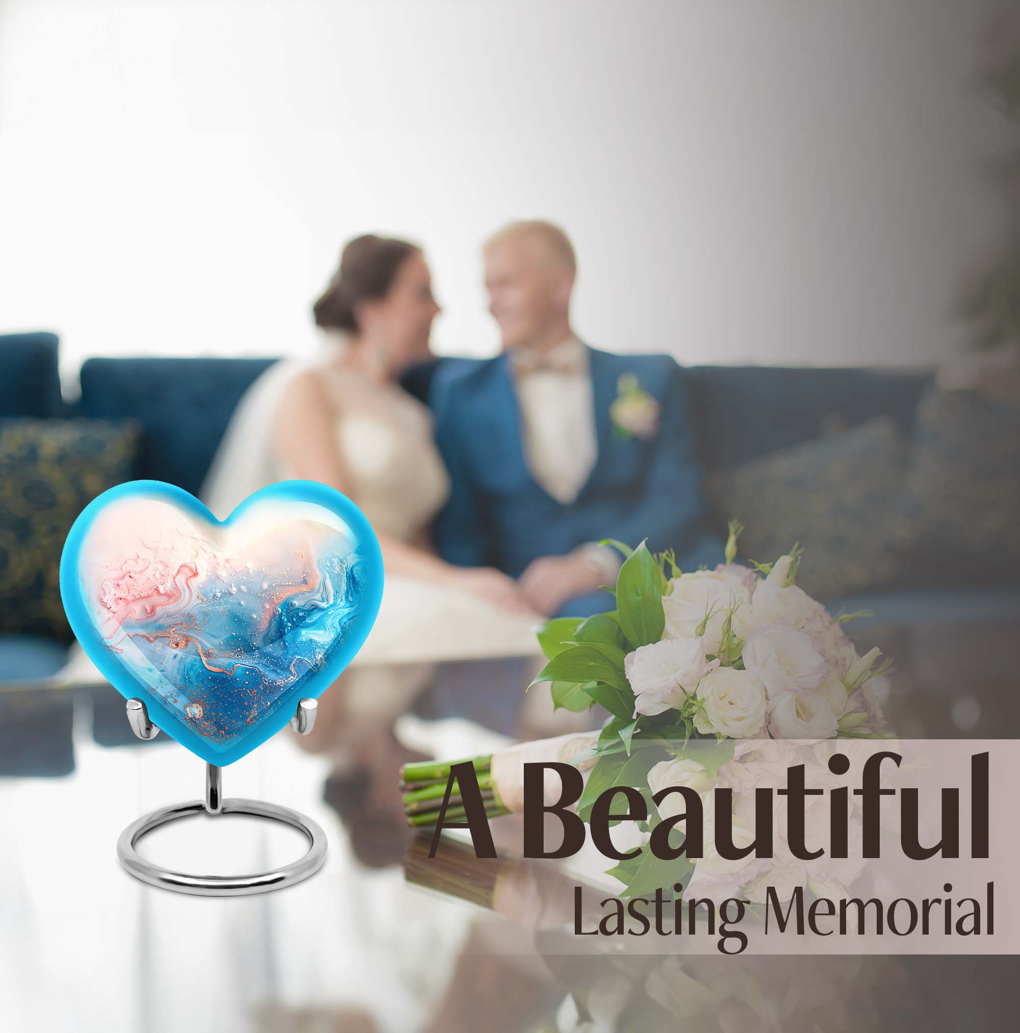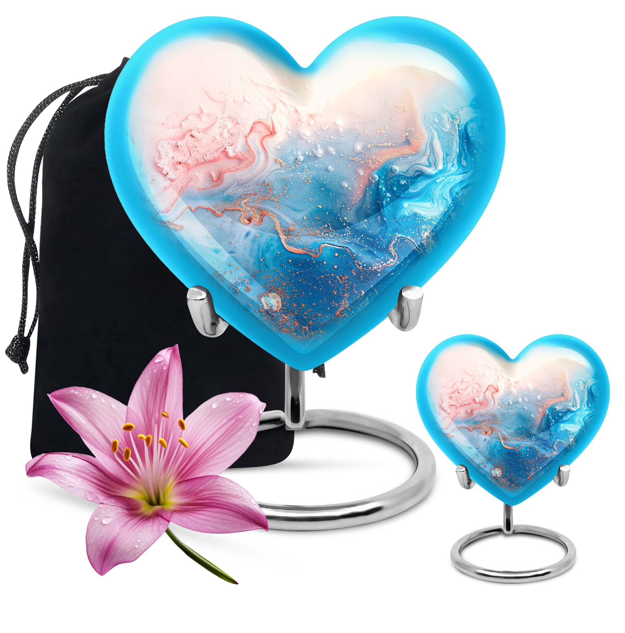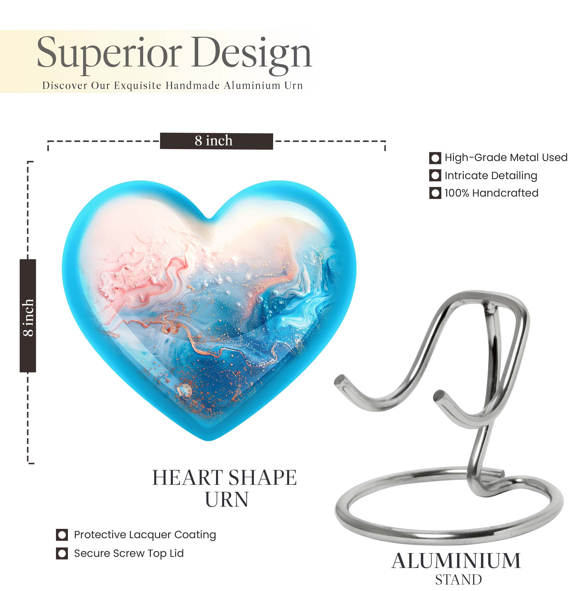 Gracefully remember your loved one with our unique Abstract Urn. Each 10-inch heart urn, delicately made from robust aluminium, exudes an eloquent simplicity, presenting an abstract theme that signifies eternal love. Weighing 3.3 pounds, this large memorial burial urn comfortably accommodates 200 cubic inches, ensuring ample space for human ashes. We provide a soft velvet pouch for secure containment of ashes, adding a tasteful touch to this important gesture. Make your tribute even more special by personalizing it. You can engrave names onto the urn, adding a heartfelt layer of intimacy. Never forgetting the significance of your remembrance, we've created a timeless piece to honor those who hold a special place in your heart. A universally appealing design, sought by adults and seniors alike, our memorial urns subtly voice a poignant message of longing and respect. Practical yet meaningful, this work of art is the perfect tribute to celebrate the immeasurable life lived.