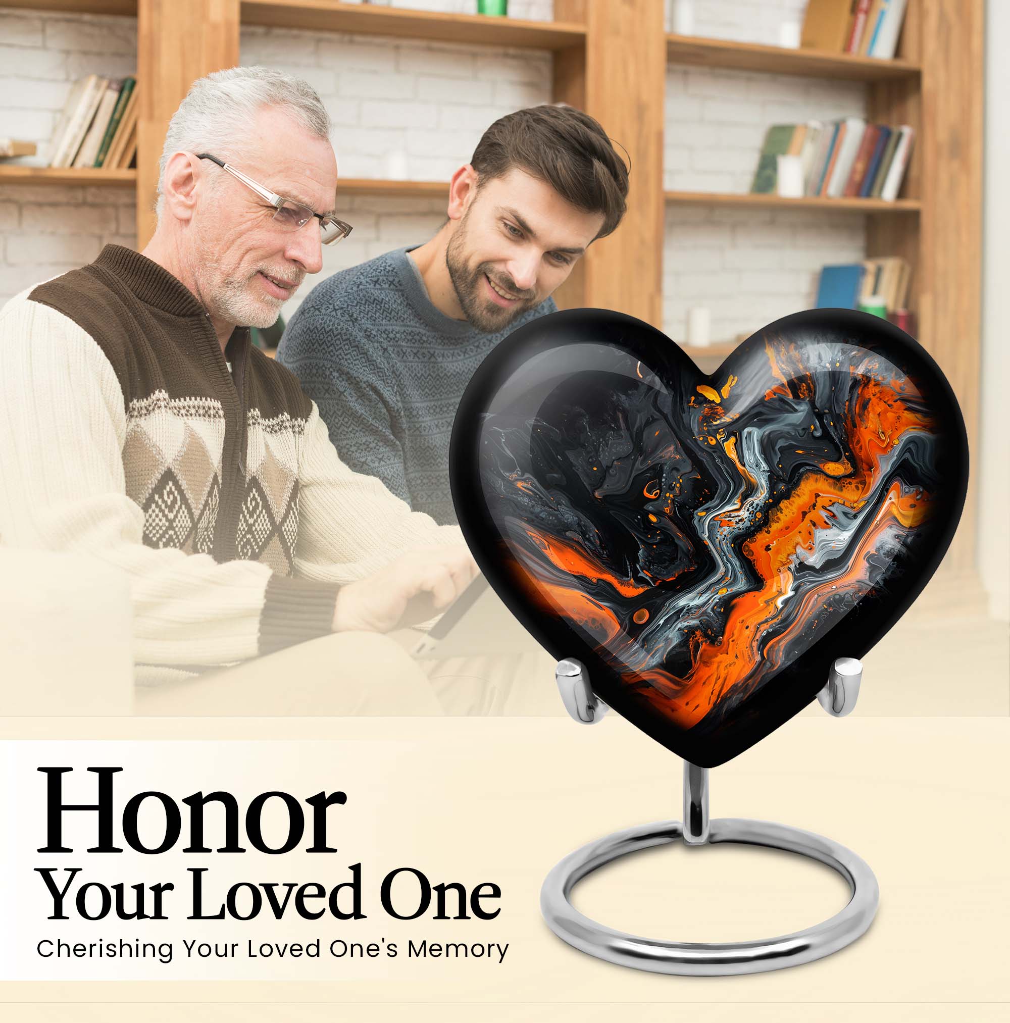 Beautifully crafted, the Abstract Urn can be an honorable tribute during memorial ceremonies. A large urn with a ten-inch height, it is capable of storing up to 200 cubic inches of ashes. This burial funeral urn for adult ashes is composed of high-quality aluminum, ensuring durability that will withstand time. The standout design features a wolf howling, providing a sense of solitude and majesty amidst evolving life. The urn comes with a velvet pouch for the secure containment of ashes. It also offers a customizable feature where names can be engraved, providing a personalized touch to this significant memento. Weighing just 3.3 pounds, this urn is not only visually appealing but also practical for transportation. Serving as an ideal choice for cremation memorial urns, this product embodies dignity and respect during these emotional times. Uncompromising in its quality, the heart urn tends to be suitable for all, particularly for women. The search for ideal 'memorial urns' for your loved one ends here.