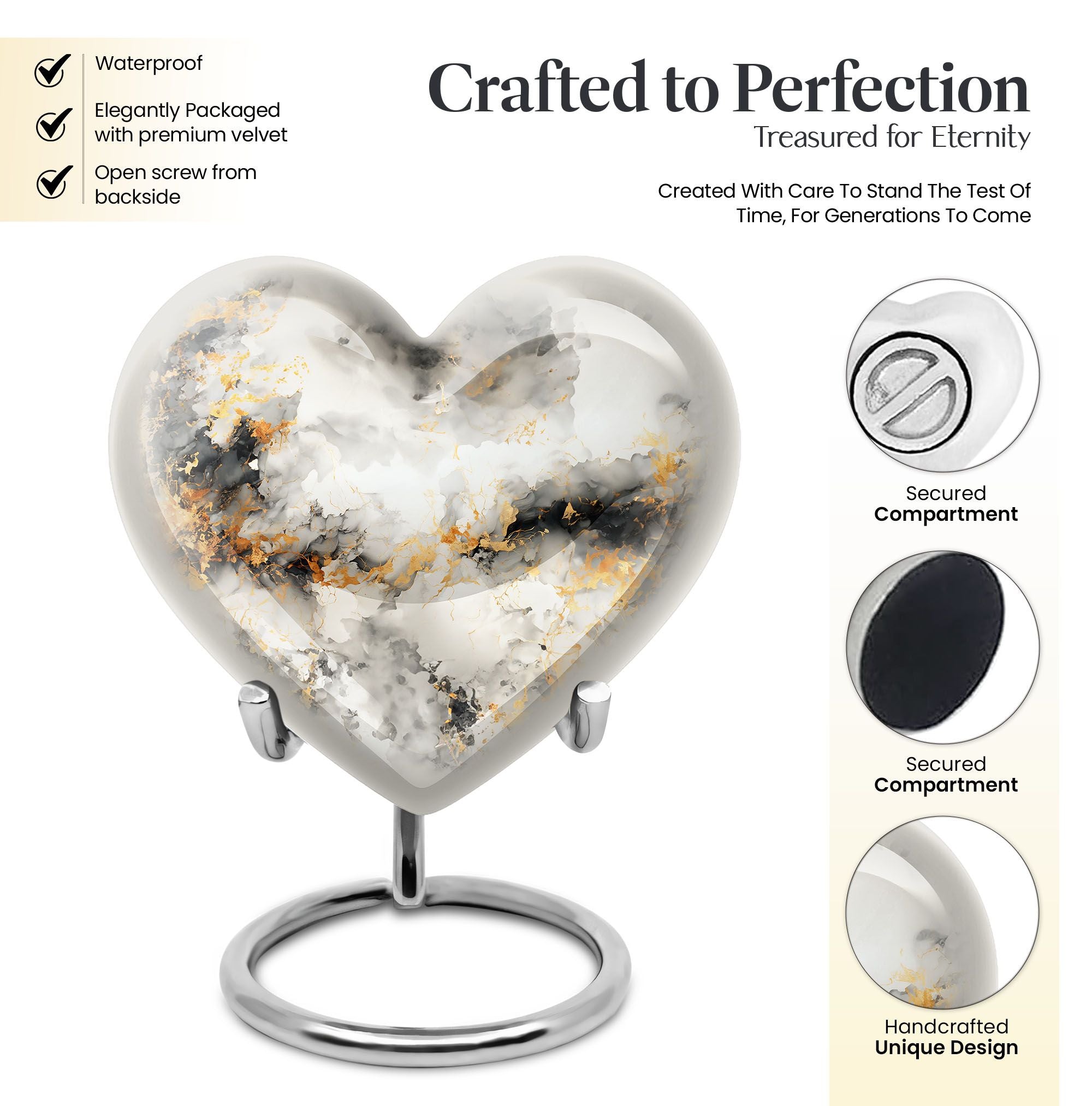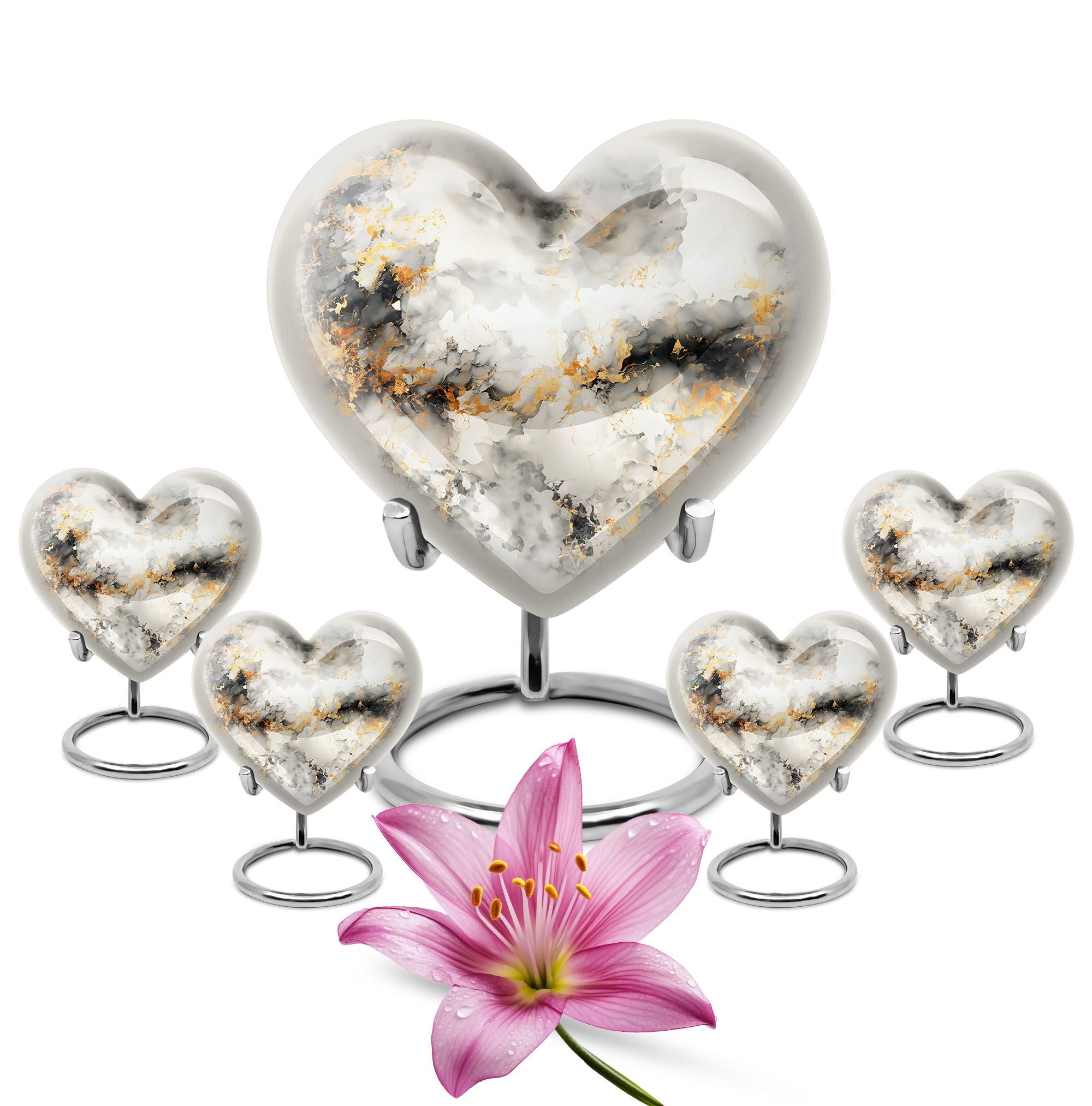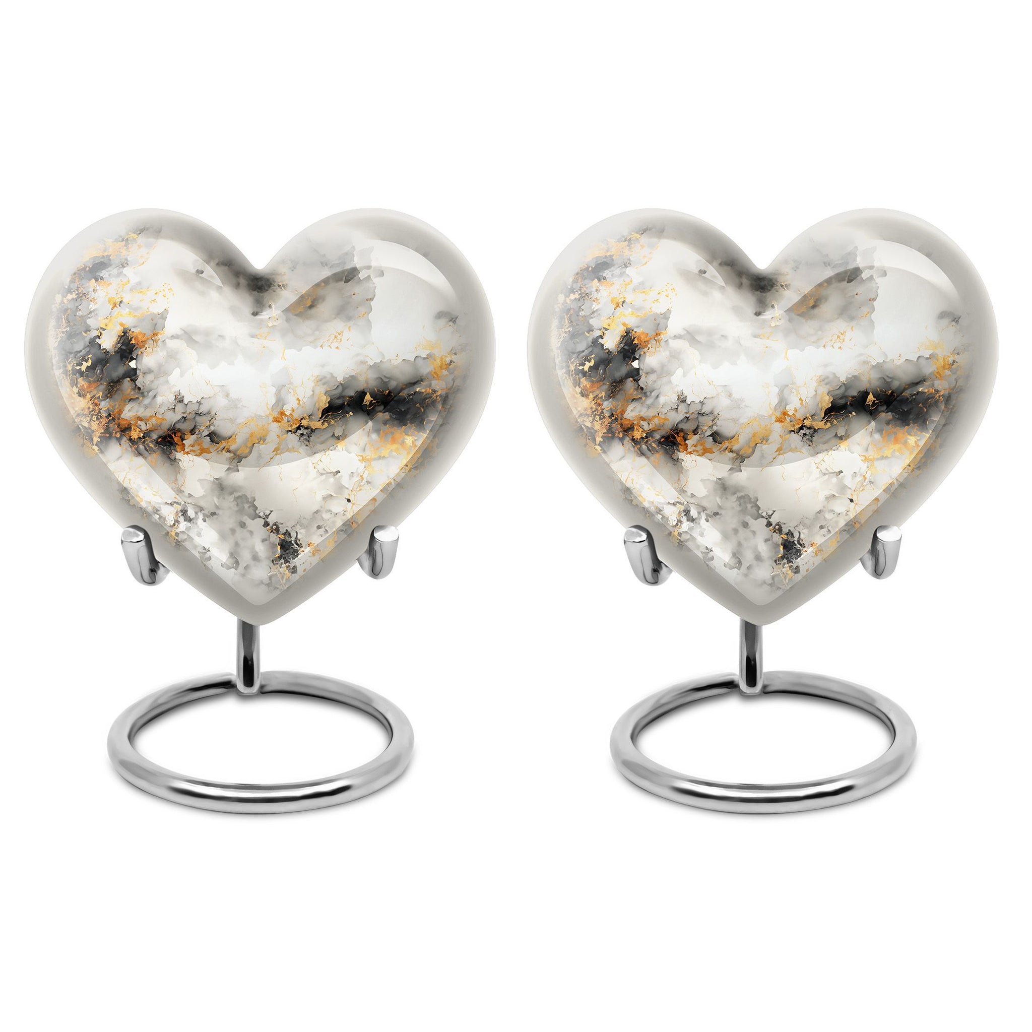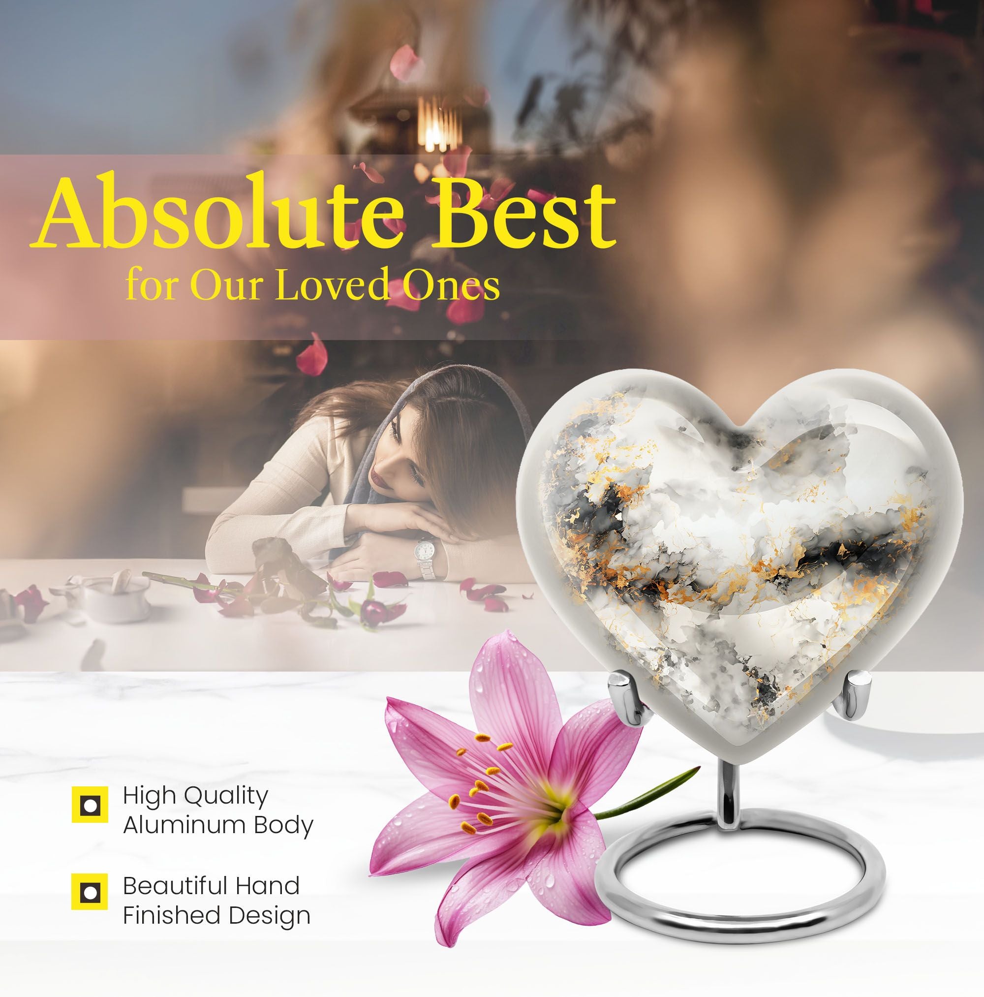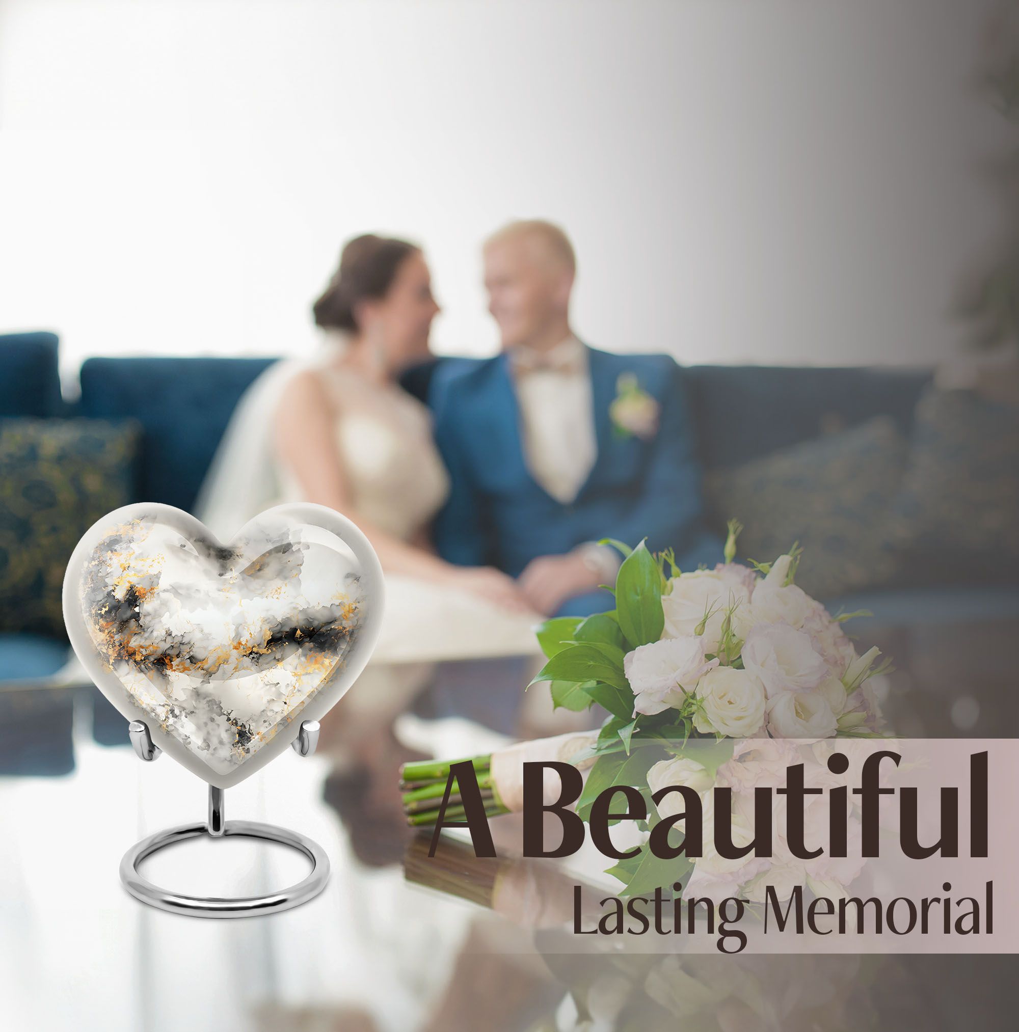 Discover the distinct elegance of the Vibrant Swirl Urn, an exquisite memorial urn for an adult male. This large-sized urn, standing 10 inches in height, offers you a dignified and heartfelt way to commemorate a loved one's life. Constructed from high-quality aluminum, our urn is stout-weighted at 3.3 pounds with a capacity of 200 cubic inches. This sizeable urn is an excellent choice for an adult's ashes. Each urn comes nestled in a velvety pouch to ensure safe containment of the ashes. What sets this urn apart is its abstract theme and heart design, reflecting the love and memories shared with the departed soul. Personalize this vibrant urn with engraved names to emphasize its uniqueness. Perfectly suited for those seeking Funeral medium size urns for human ashes, human urn adult, or companion cremation urns for 2 adults. This urn is a blend of value, craftsmanship, and love that goes beyond the typical memorial urns.