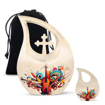 Crafted from durable aluminium, this urn features expressive violin-inspired artwork symbolizing harmony, remembrance, and emotional depth. The polished finish and secure screw-top lid ensure long-lasting protection. Its 10-inch size provides ample capacity for those looking for human urns for ashes adult male, human urns for ashes adult female, or refined pieces suited for ash urns for humans male. Families needing small urns for ashes adult male, small urns for human ashes adult male, or urns for human ashes adult female small size will also appreciate this design's availability in coordinating keepsake sizes.