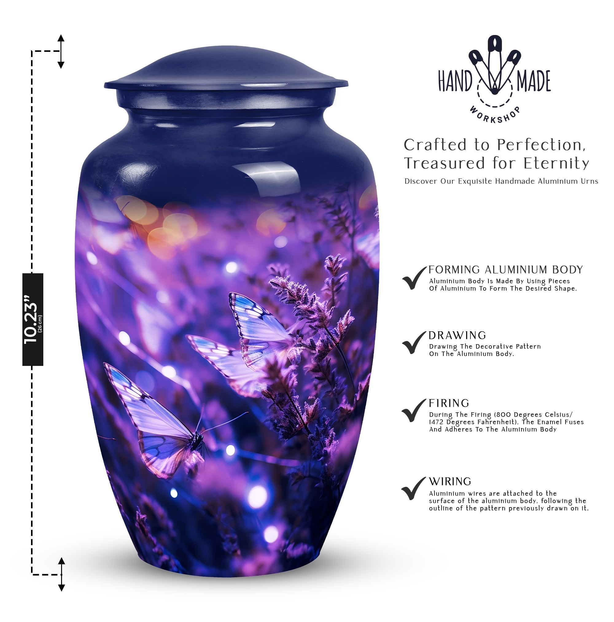 Our exclusive collection of Purple Butterfly urns embodies elegance, remembrance, and the precious memories of your loved ones. Crafted with care, each 10-inch urn is a unique tribute to celebrate their life and legacy.