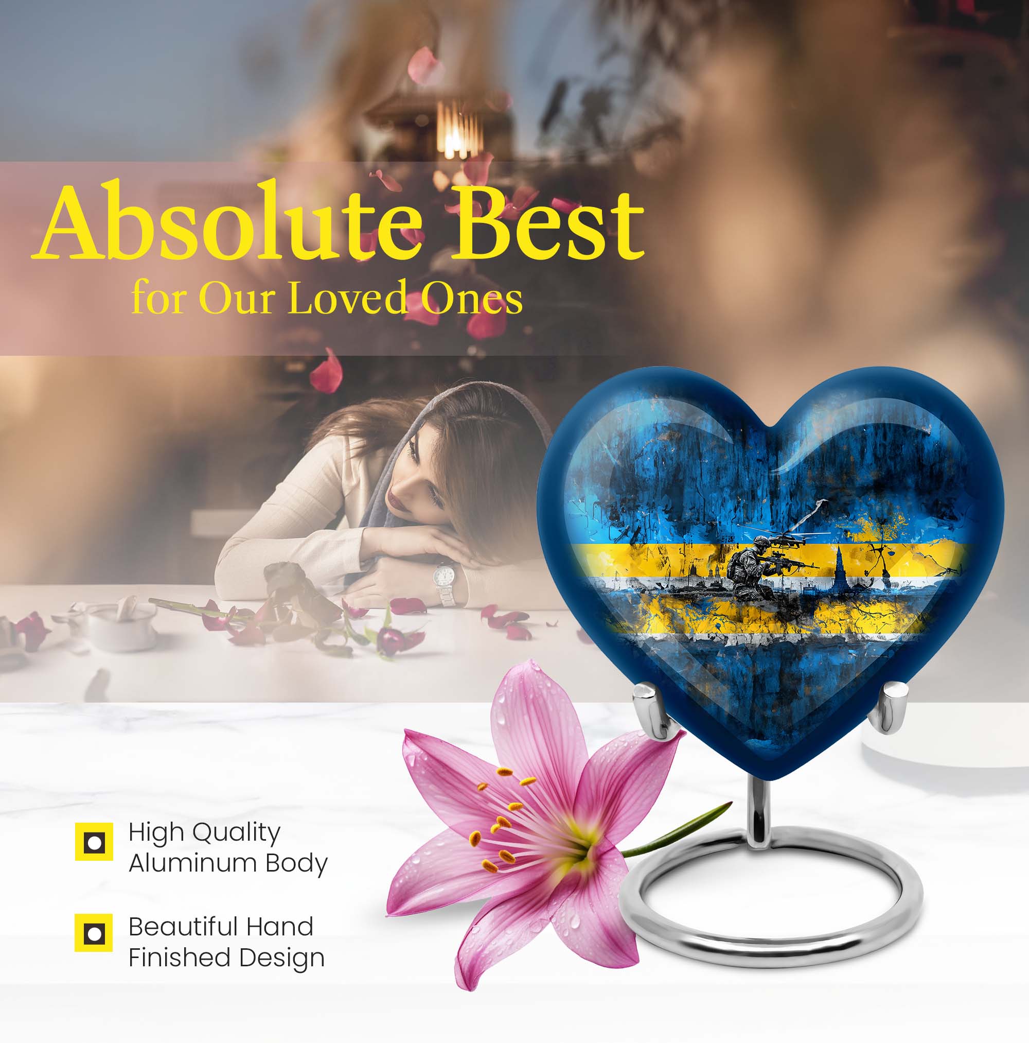 Discover an enduring token of remembrance in this uniquely designed, heart-themed, large-sized funeral urn. Our Abstract Heart Urn stands 10 inches in height - embodying a delicate blend of love and honor suitable for the most poignant occasions. Crafted meticulously from high-quality aluminium, the urn weighs a substantial 3.3 pounds and bears a sizeable capacity of 200 cubic inches. This item comes exquisitely finished, ready to house the cremation ashes within its cavernous interior. The urn also provides the option for personalization, allowing you to engrave the names of your loved ones as a cherished keepsake. Ensuring the utmost respect and protection, the urn is packaged with a velvet pouch for careful containment of the ashes. As people often search for military urn, funeral urns for burial, cremation urn for dad, human adult urns, and burial urns for cremation ashes, our urn ensures profound solace and continued remembrance for departed loved ones.