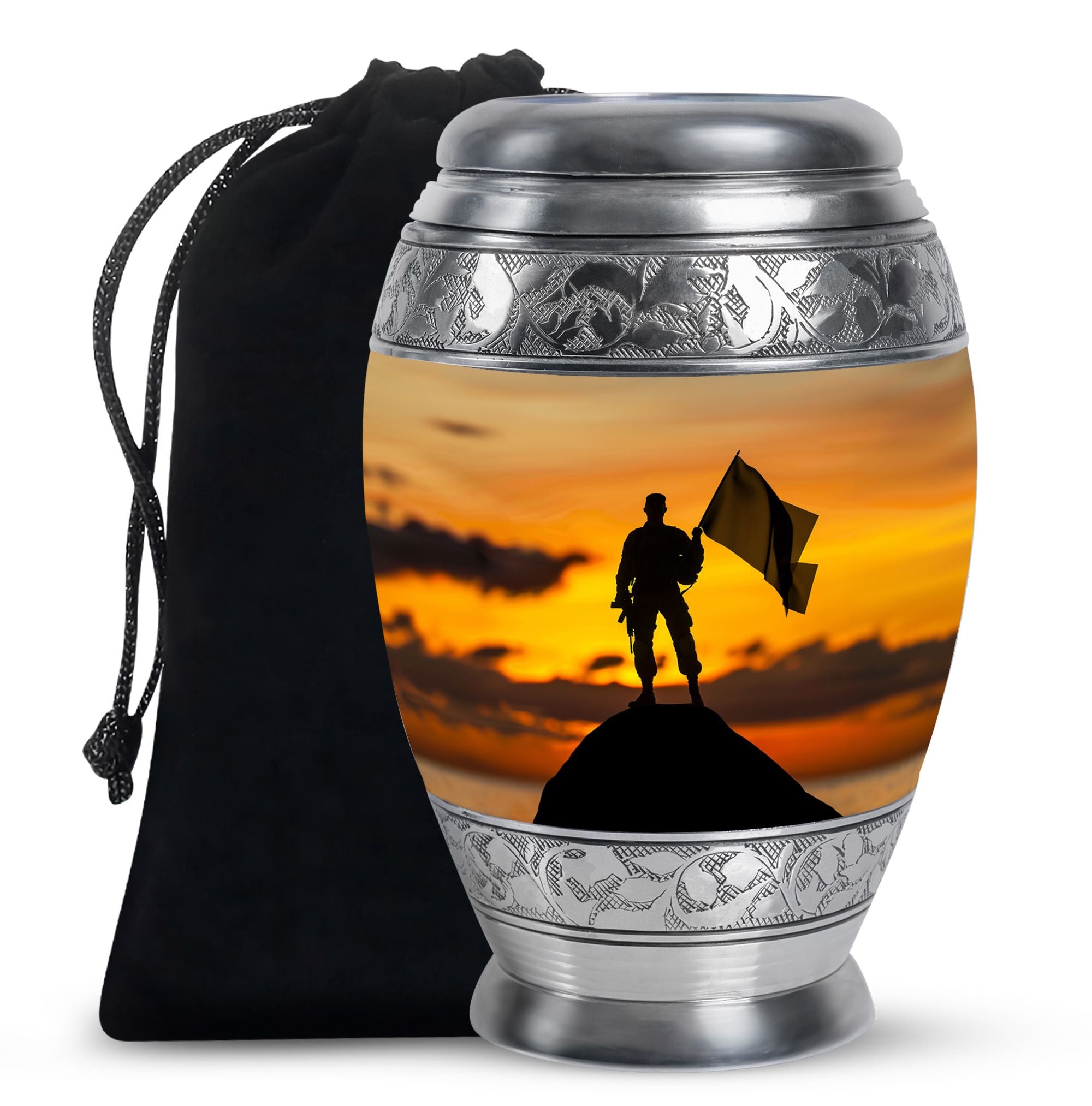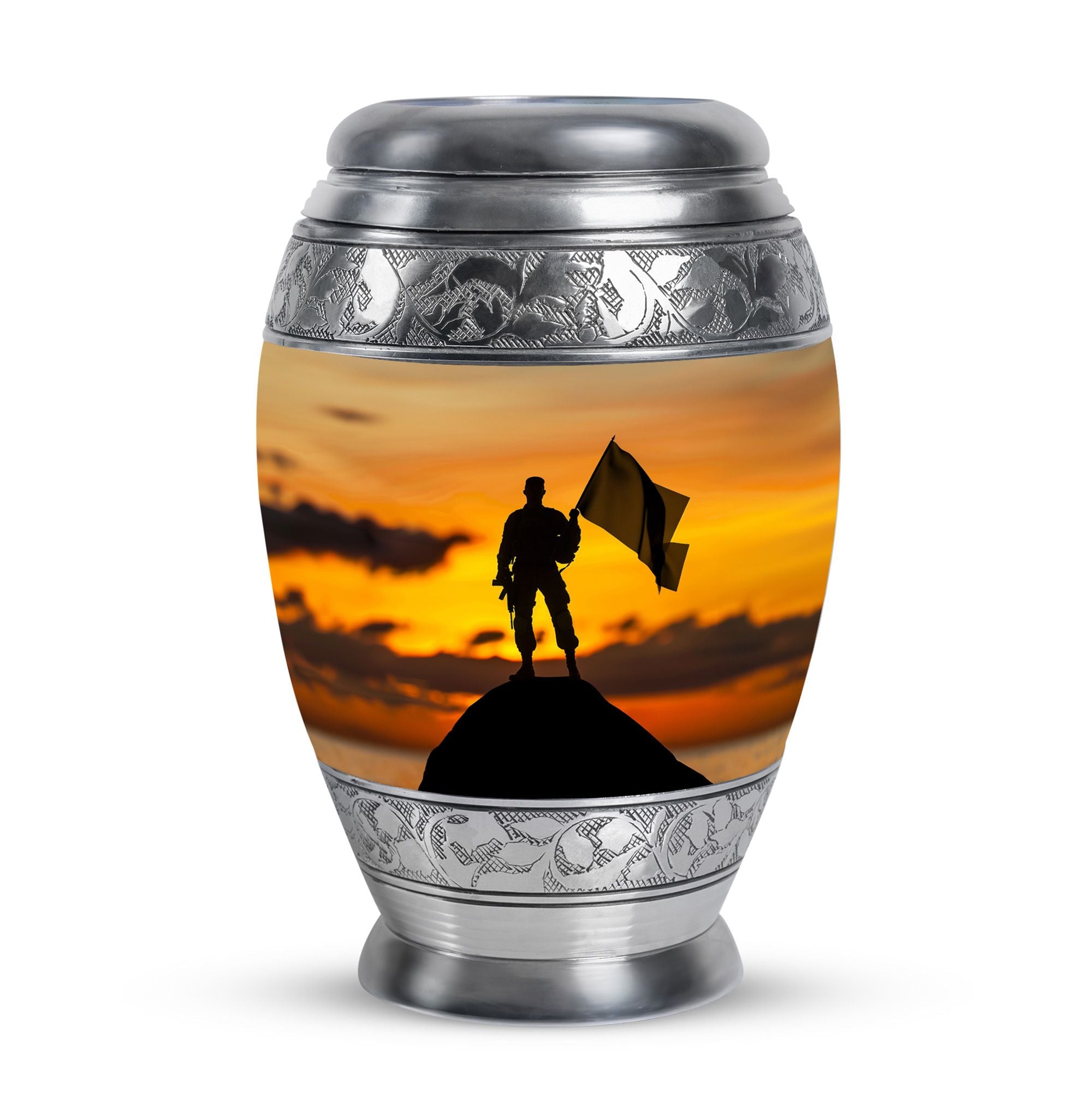 This **cremation urn for human ashes** **honors the memory of a courageous individual with elegance and dignity**.