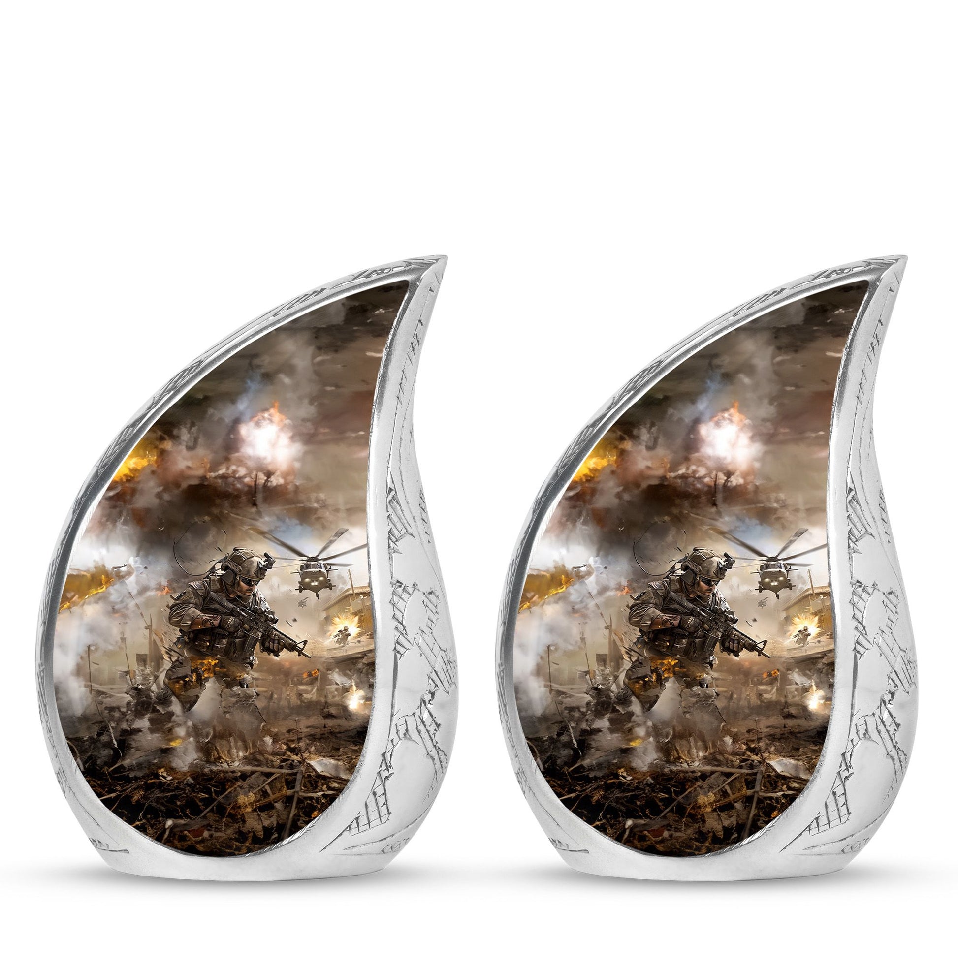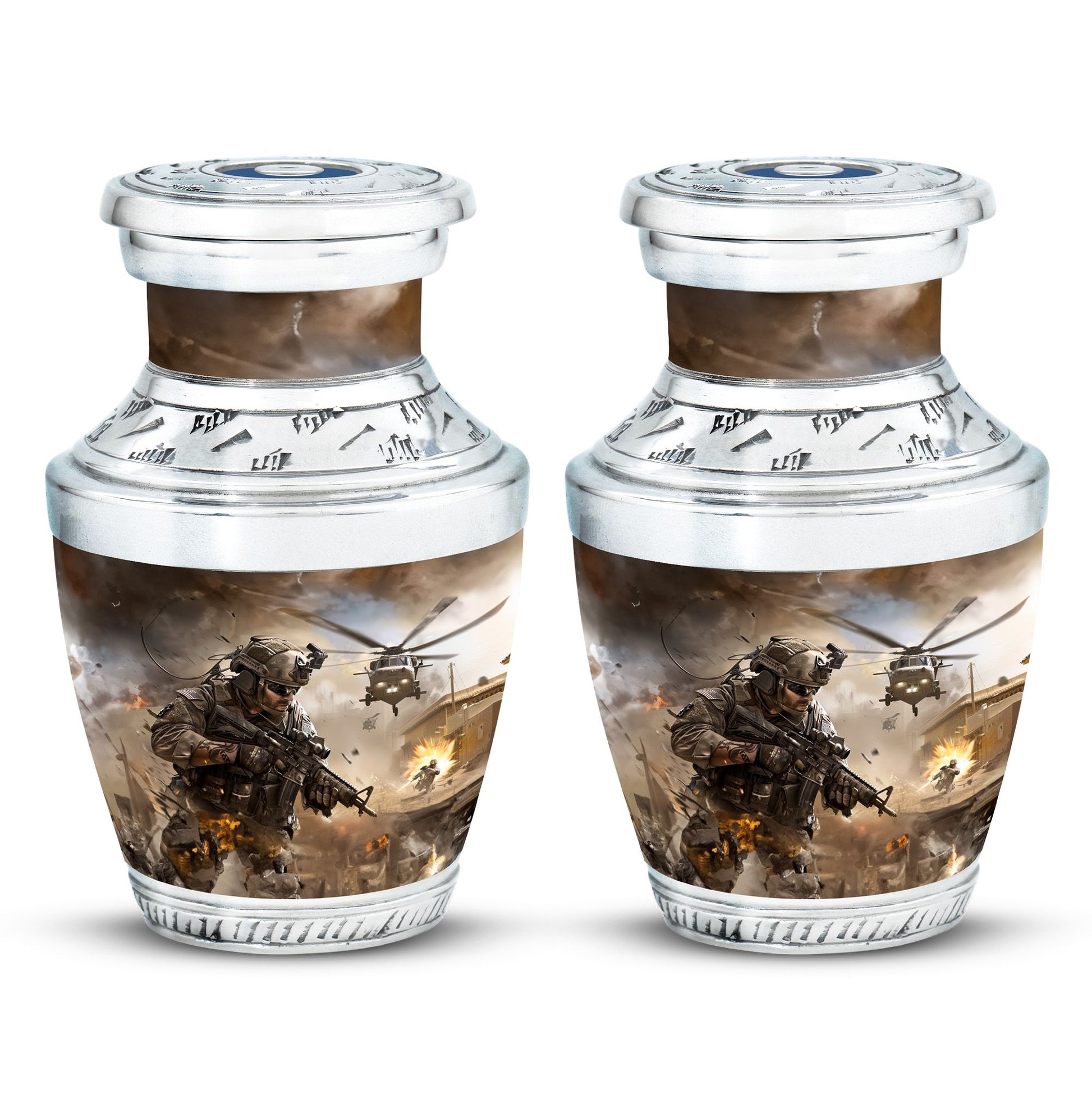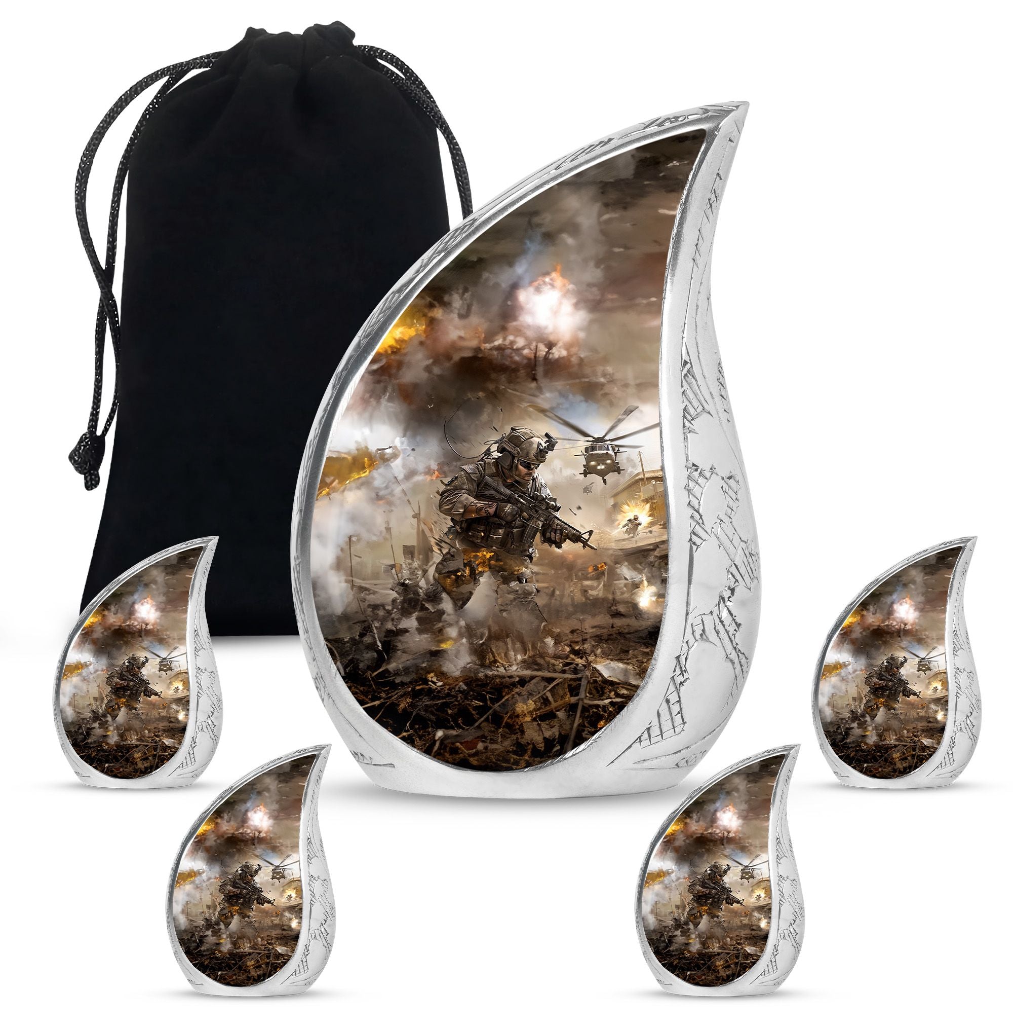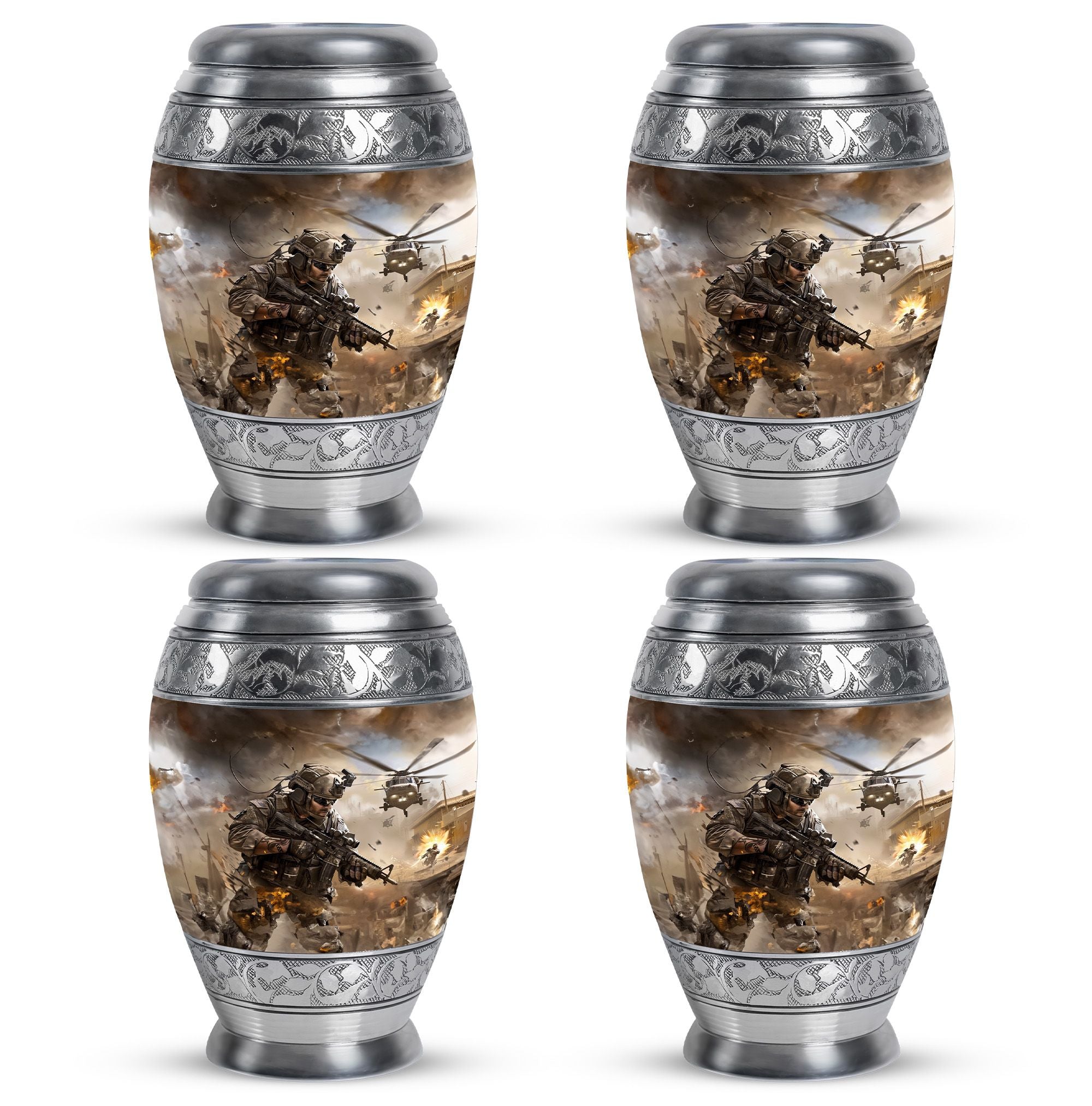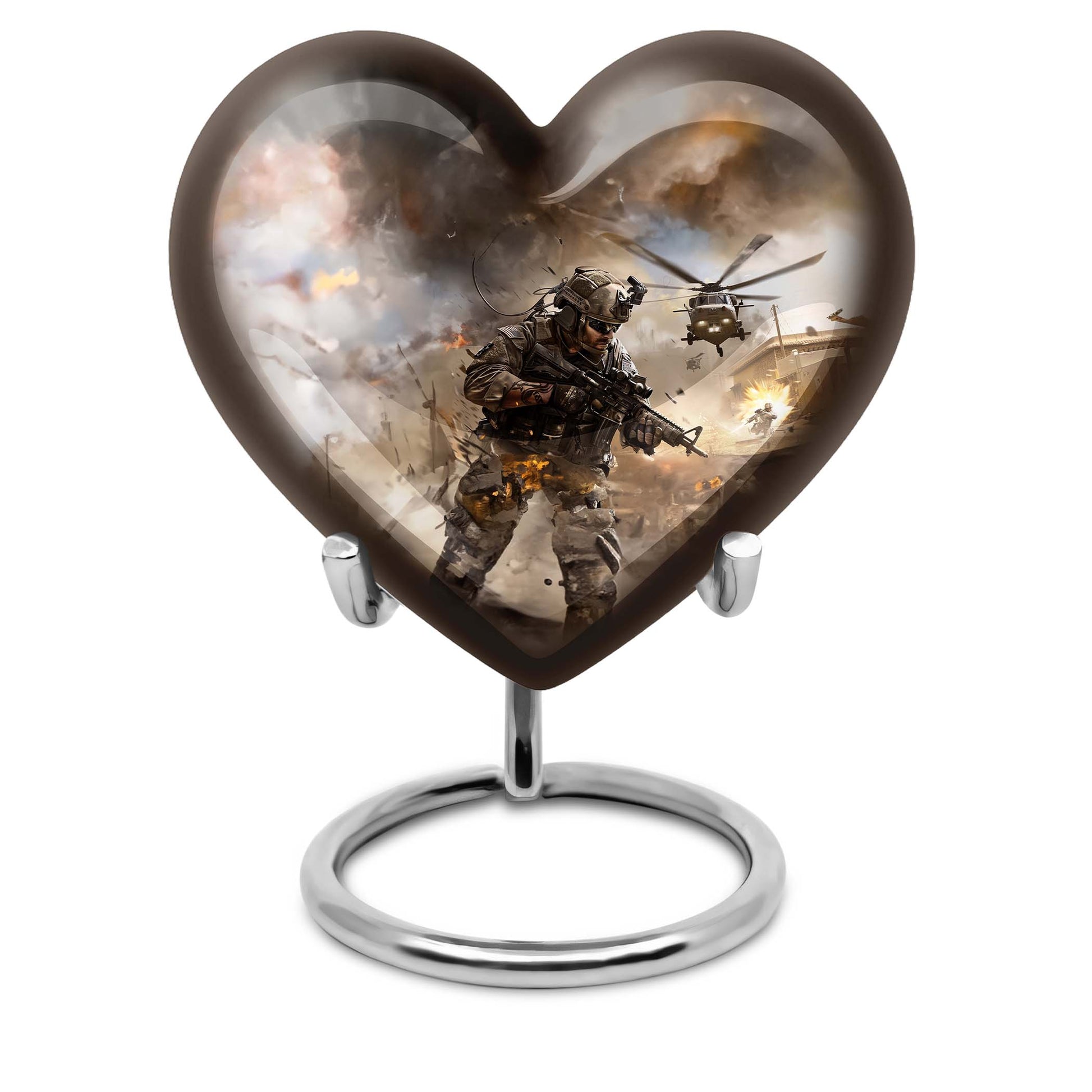 This **cremation urn for human ashes** **is designed to represent the honor and sacrifice of a devoted soldier, ensuring their memory is preserved with dignity**.