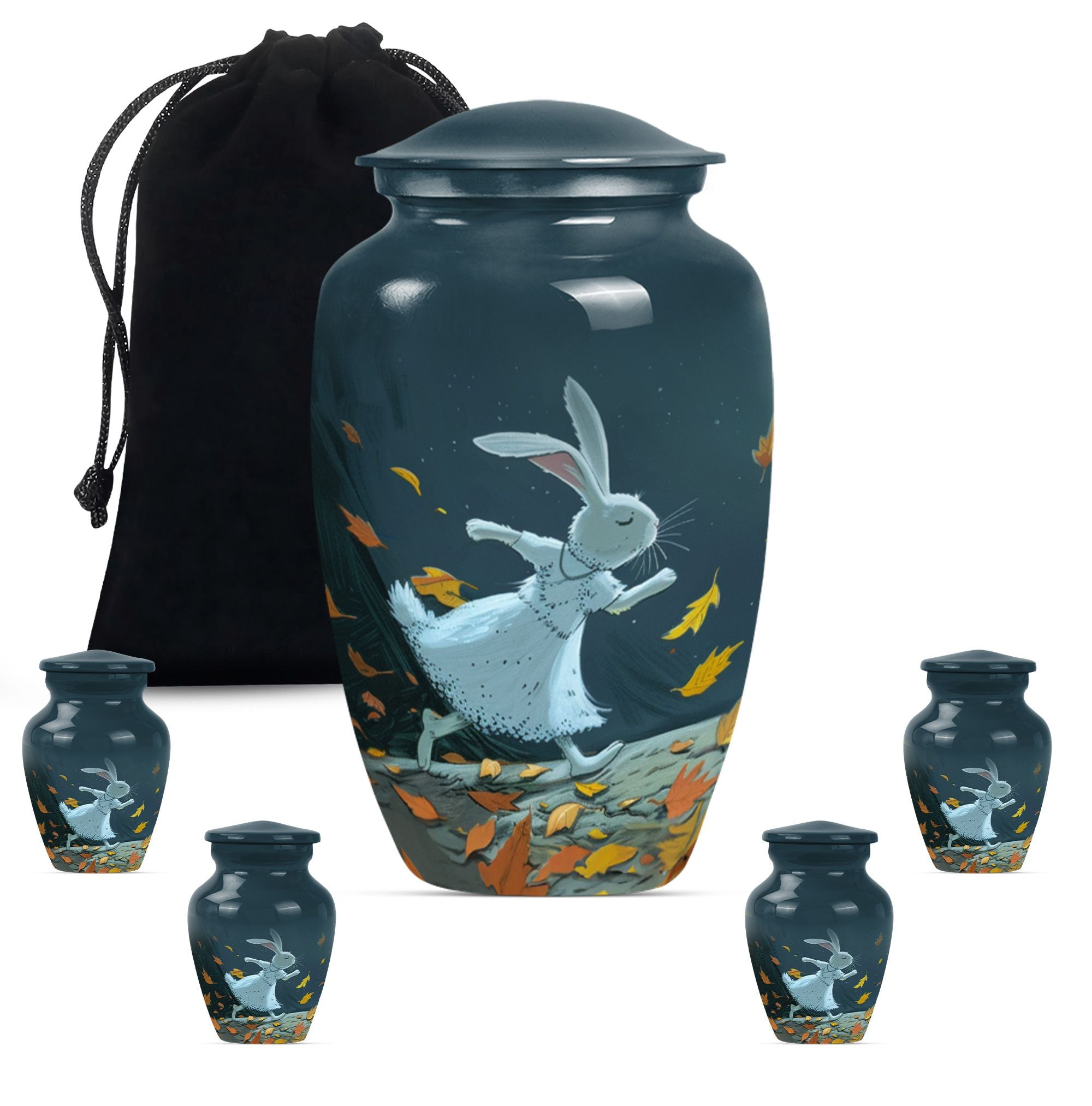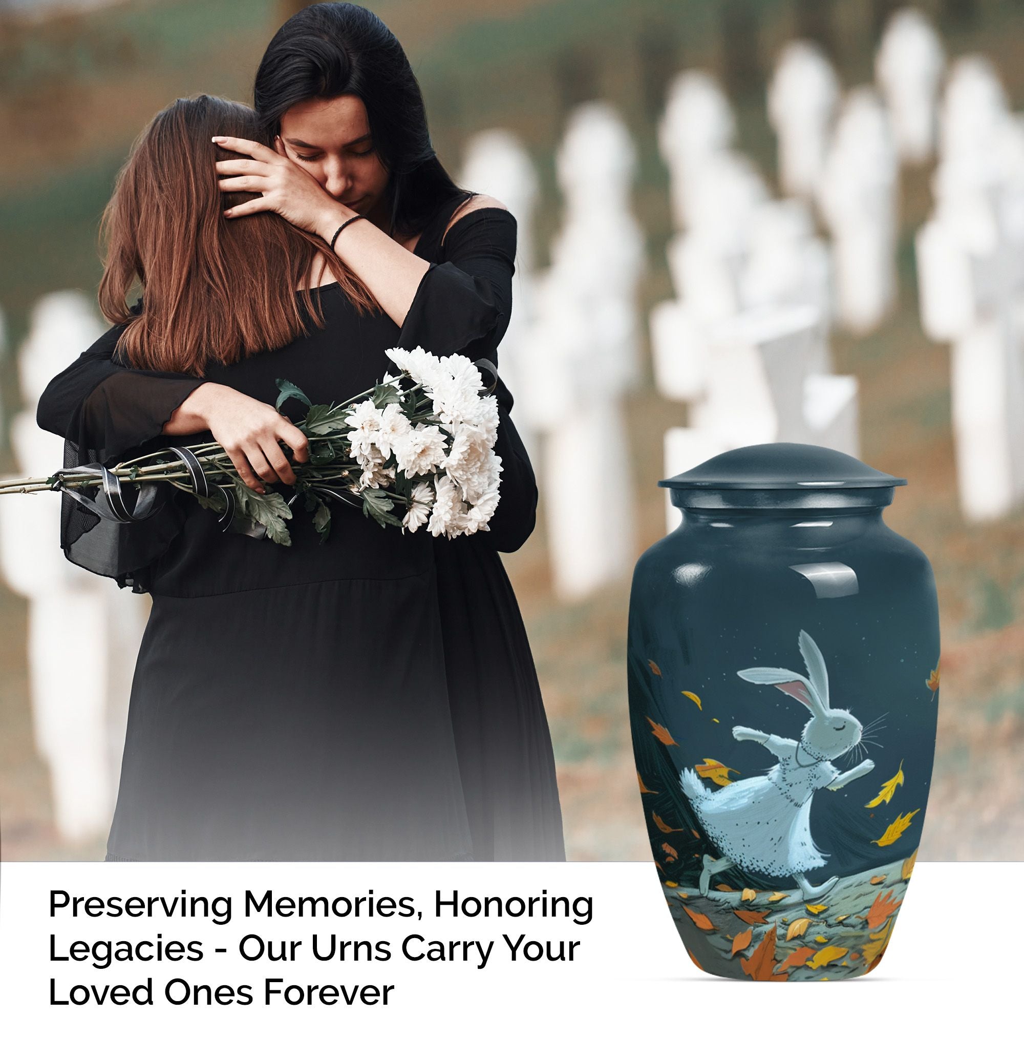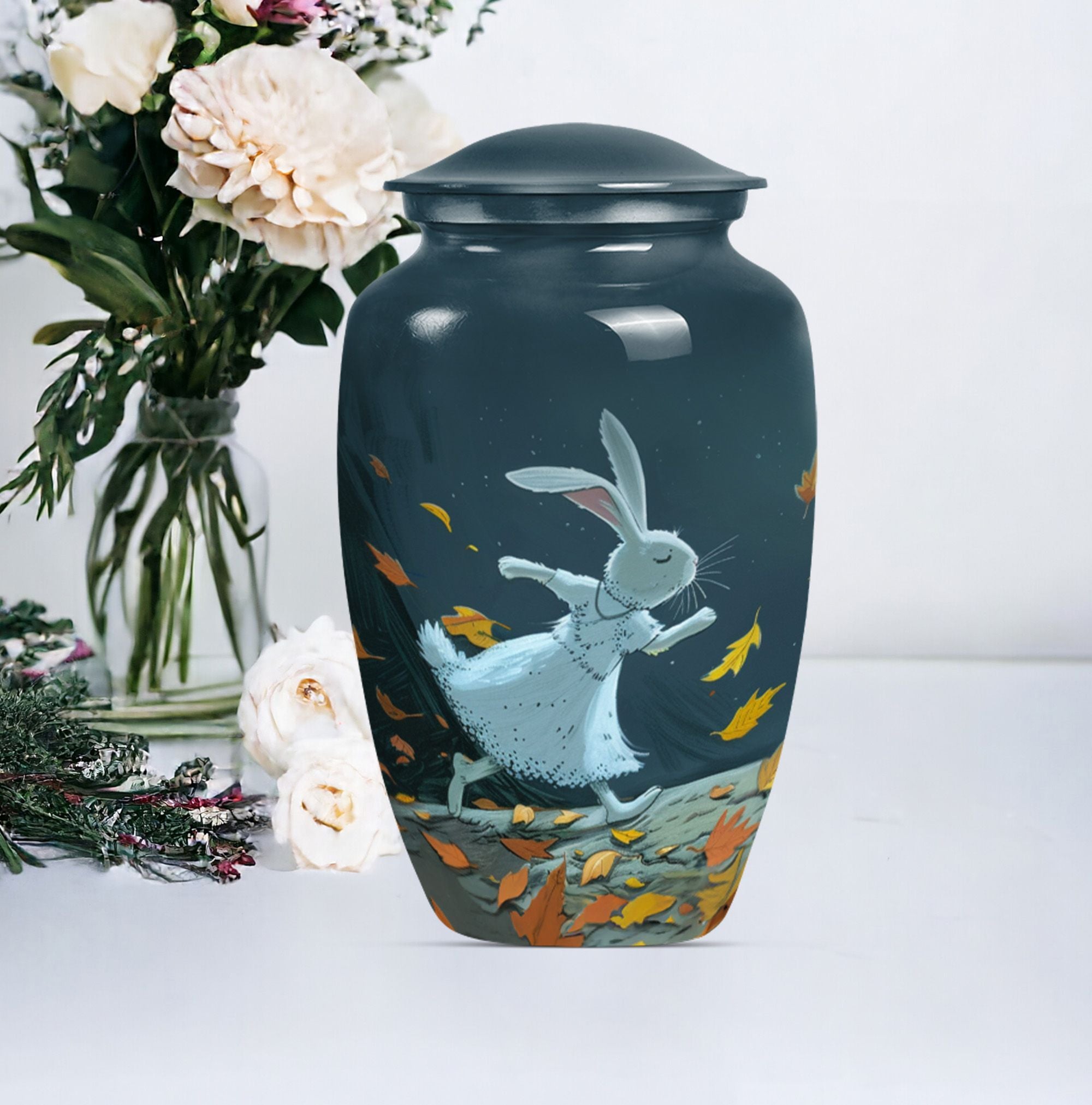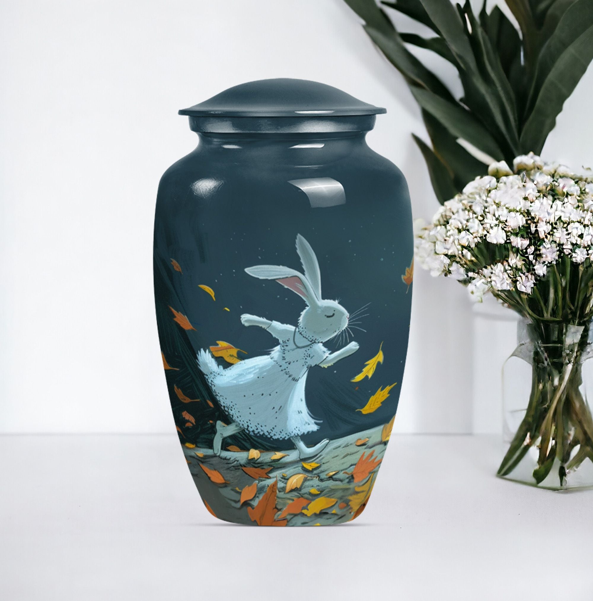 Discover the intimate detail and exceptional craftsmanship of this 'White Bunny Moon Urn'. Handcrafted using high-quality aluminium, this large urn is expertly designed with an abstract theme for a timeless appeal. Measuring 10 inches in height and weighing 3.3 pounds, it creates a classic and eternal resting place for your loved one. This 'cremation urn' can safely accommodate up to 200 cubic inches of ashes, ideal for adult females or humans. The urn offers personalization for an added touch; you can get names engraved on it. It also comes with a velvet pouch to securely contain the ashes. Whether you are searching for 'cremation urns for ashes,' 'burial urns for adult female ashes,' or 'modern urns,' this piece is not just an object but a symbol of respect, love, and remembrance. Find solace and peace in its uniquely minimalist design that brings comfort in its enduring presence.