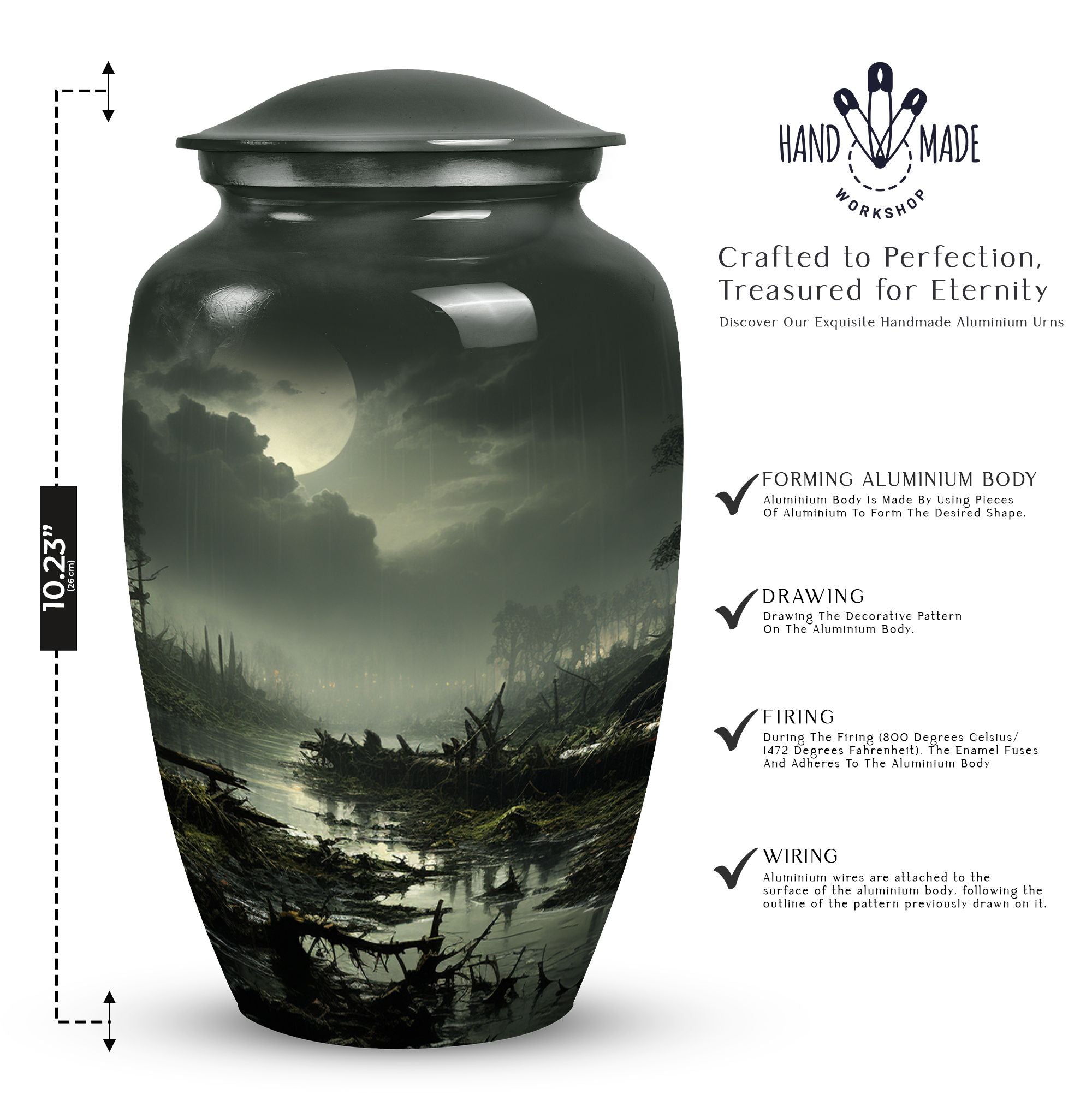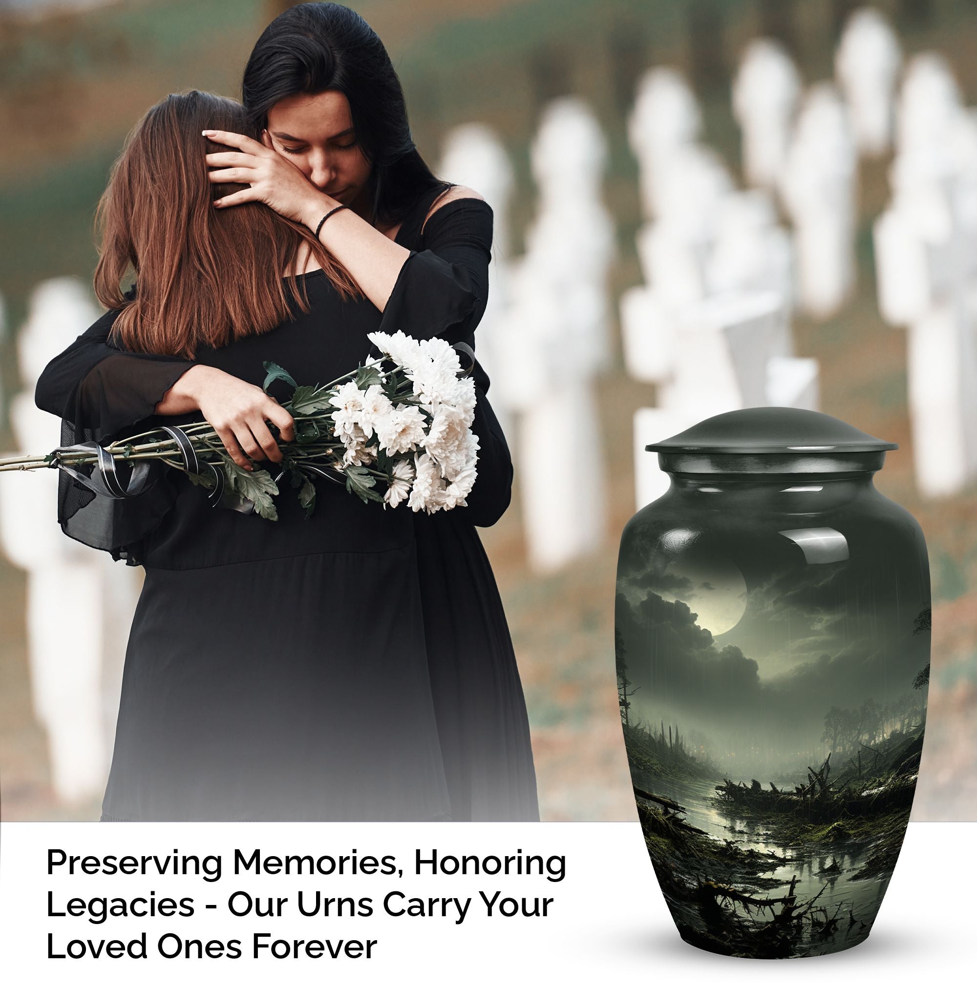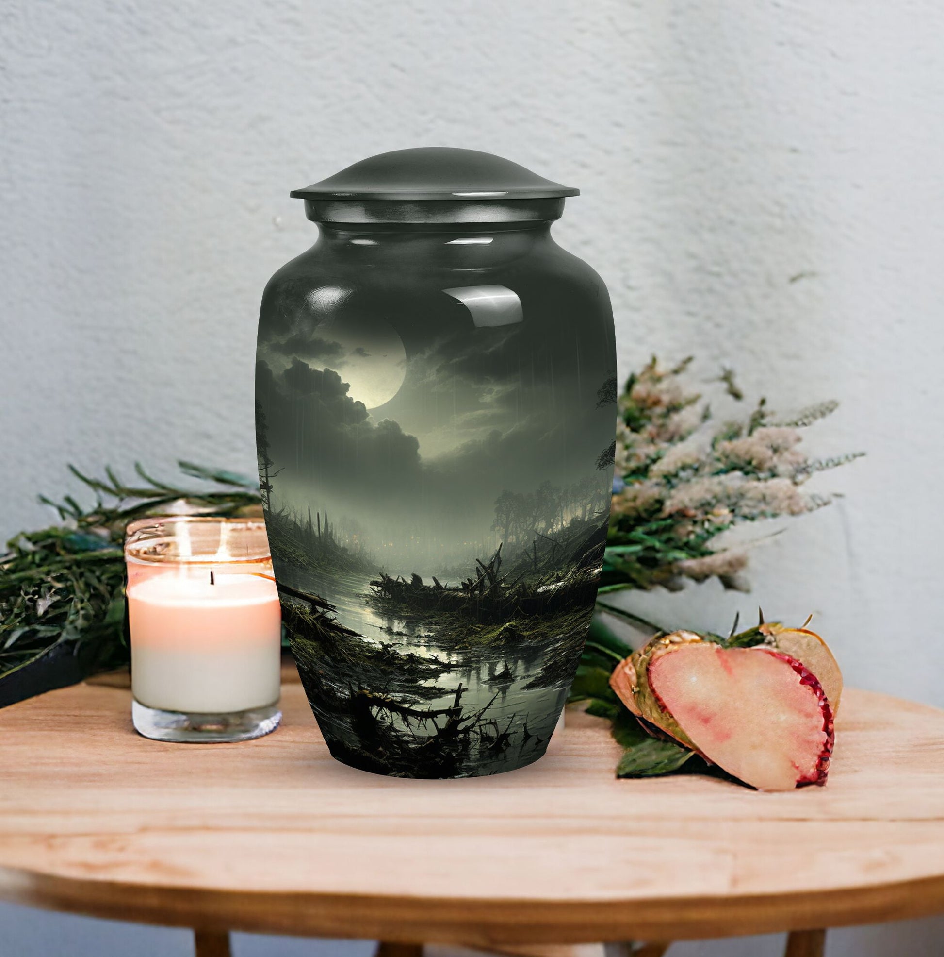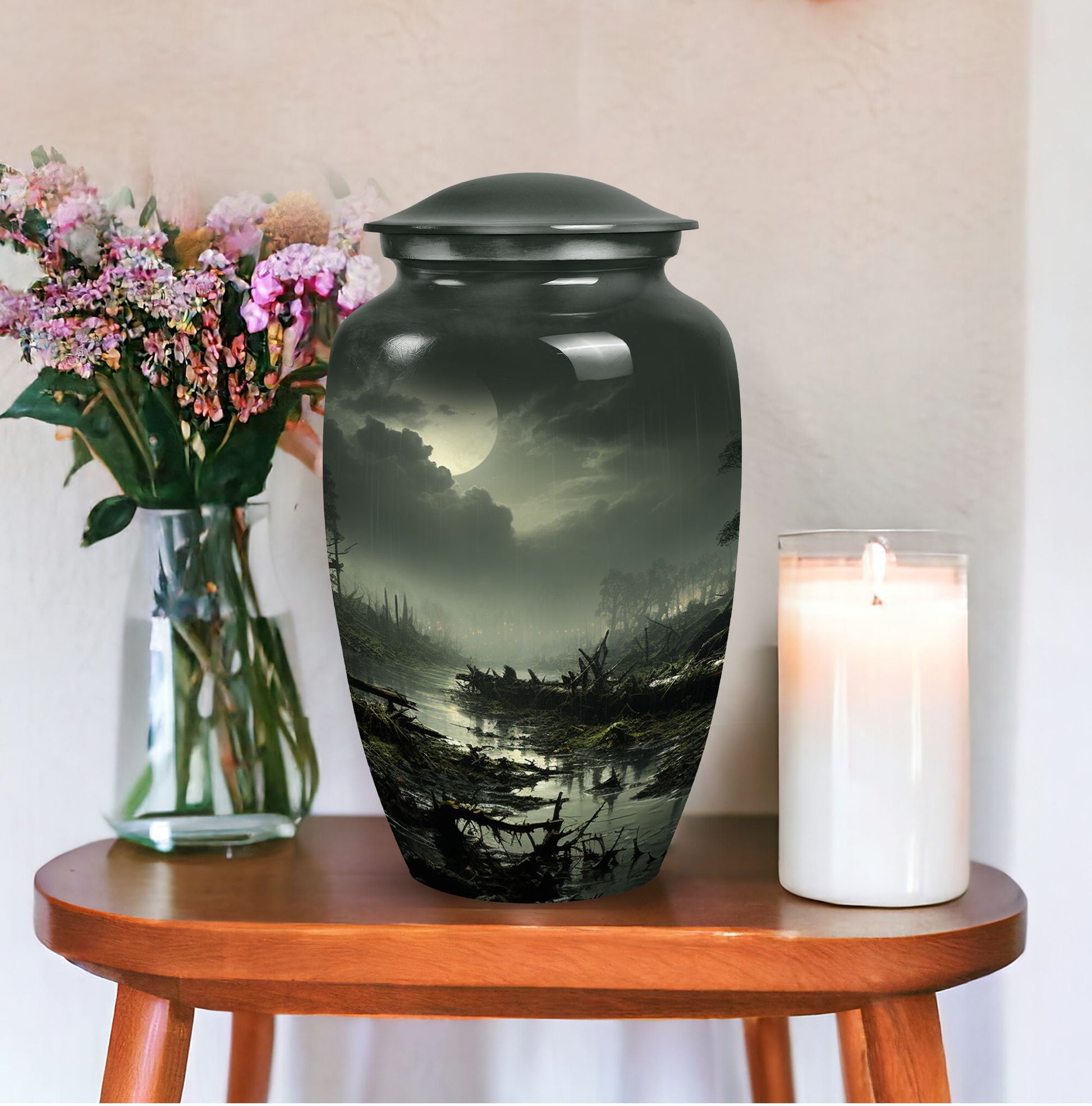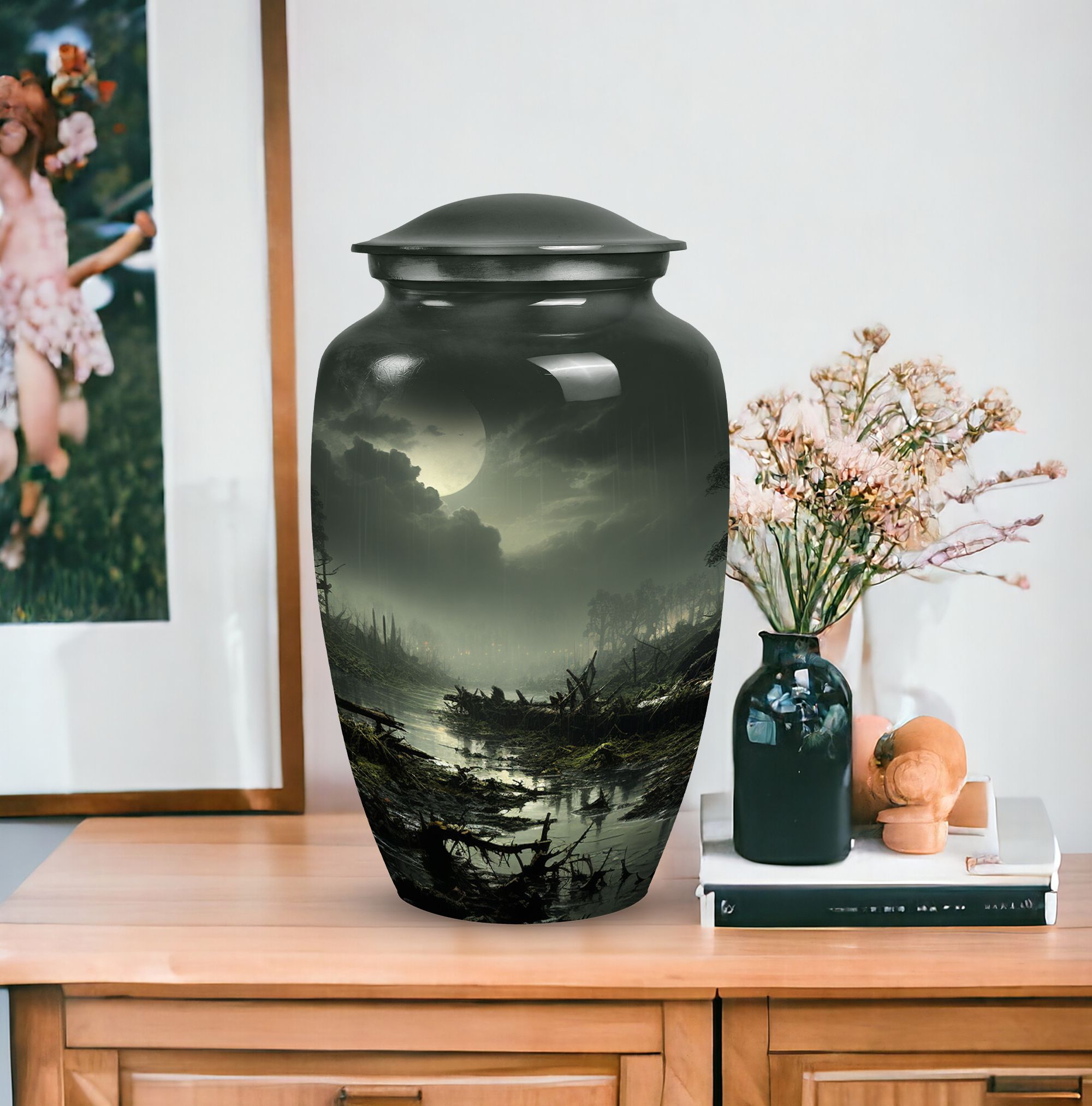 Elevate your remembrance with our Moonlit Urn, a distinguished selection in Urns for Cremation Ashes, specifically designed for the love of a mother. This sizeable urn has a serene, green tint, reflecting tranquillity and peace. Versatile in its use, the urn could act as a companion piece commemorating cherished memories of adults. Crafted with a meticulous touch and an artistic finesse, this especially impressive model signifies depth and respect. The design embodies modest beauty and spiritual connection, making it more than just a resting place. Our urns gently encompass life’s fleeting moments while expressing an unspoken bond that lingers beyond the mortal coil. Let the moonlit glow of our urn be a beacon of comfort as you traverse the path of remembrance. Remember; it’s not just an urn, it’s a heartfelt ode to love and the indivisible bond between you and the departed.