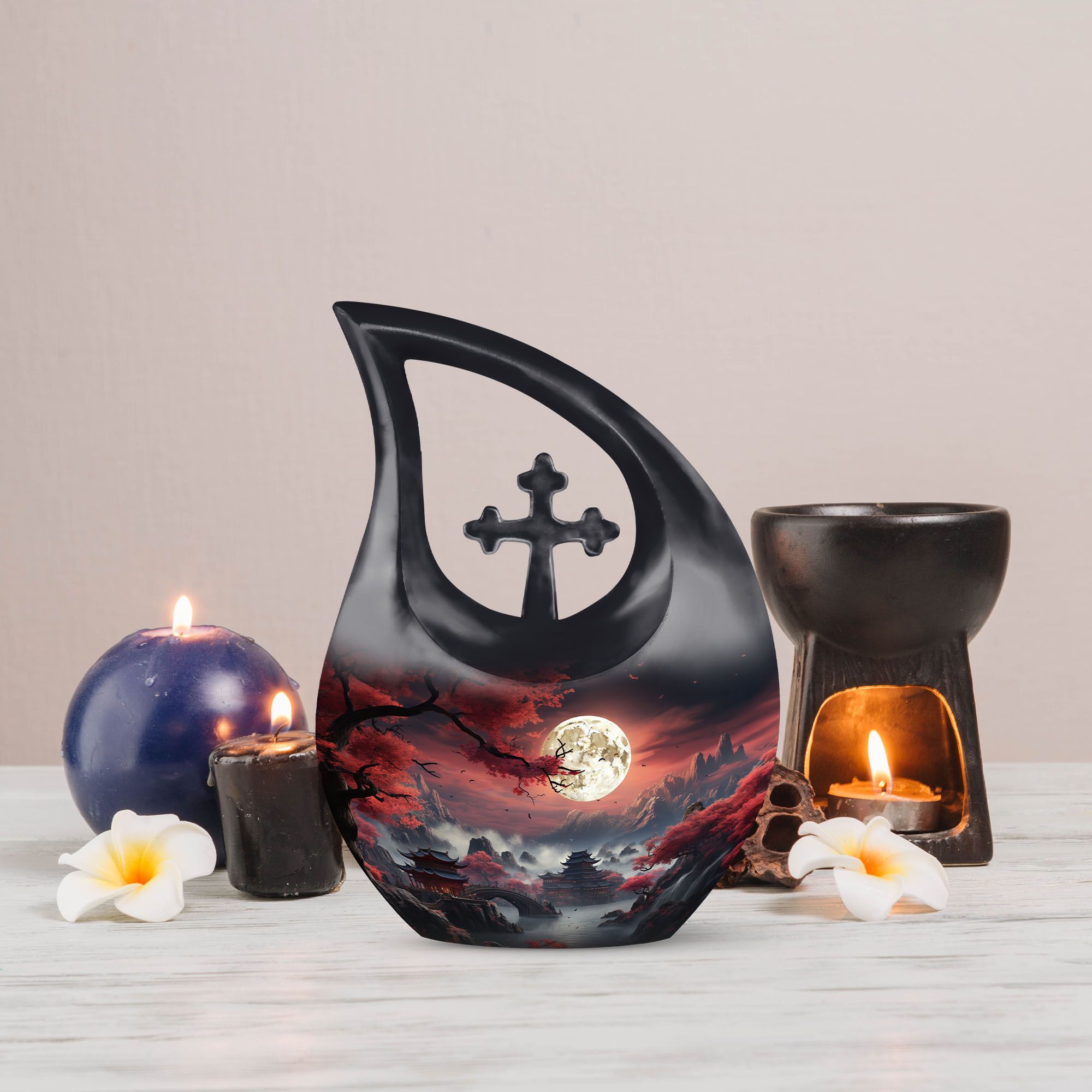 Honoring a loved one’s journey becomes truly meaningful with the Elegant Moonlight Japanese Landscape Funeral Urn. This exquisite piece symbolizes serenity, peace, and eternal love under the calm glow of moonlight. Designed to celebrate precious memories, it serves as a heartfelt choice among funeral urns for ashes adult, offering a dignified resting place that reflects beauty and respect.