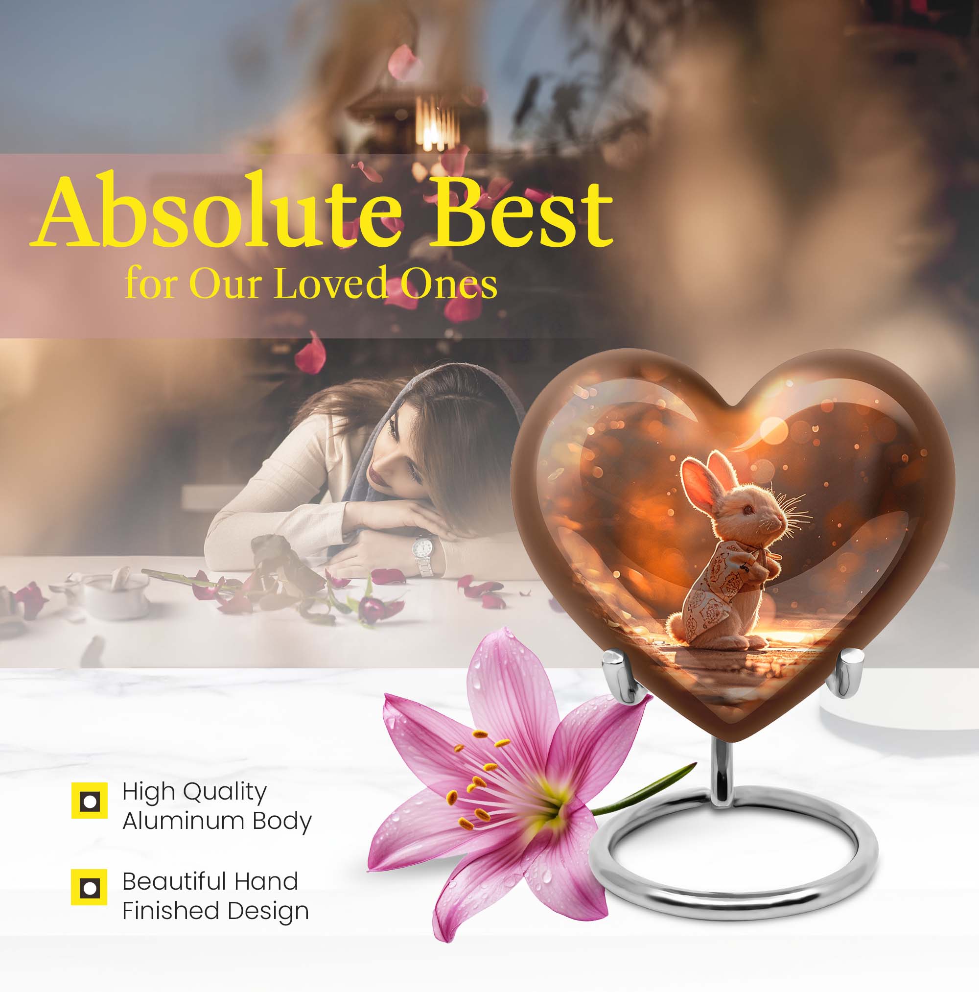 Dignify the memory of a beloved one with our White Bunny Moon Urn. This large urn, a notable addition to our memorial urns collection, holds a capacity of 200 cubic inches. Crafted from durable aluminium, the urn weighs 3.3 pounds and stands proudly at 10 inches in height. Its abstract theme captures the essence of eternal love, presenting a symbolic remembrance of life's fleeting nature. Personalize this urn with engraved names to carry your dear one's memory with you at all times. This cremation dad urn comes with an exquisite velvet pouch for containment of ashes, signifying eternal tranquility. The significant size meets the requirements for burial urns for adult men ashes. It's more than a human urn, embodying the love shared and the memories created. Mingle with the moon's serenity as you cherish memories of your lost loved ones. Affordability meets elegance with this white bunny moon urn, an iridescent memorial that speaks volumes of love and peace. Its timeless appeal and tasteful touch makes it a precious keepsake. An extraordinary alternative to traditional urns, let this be an intimate tribute to your cherished ones.