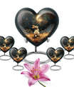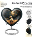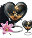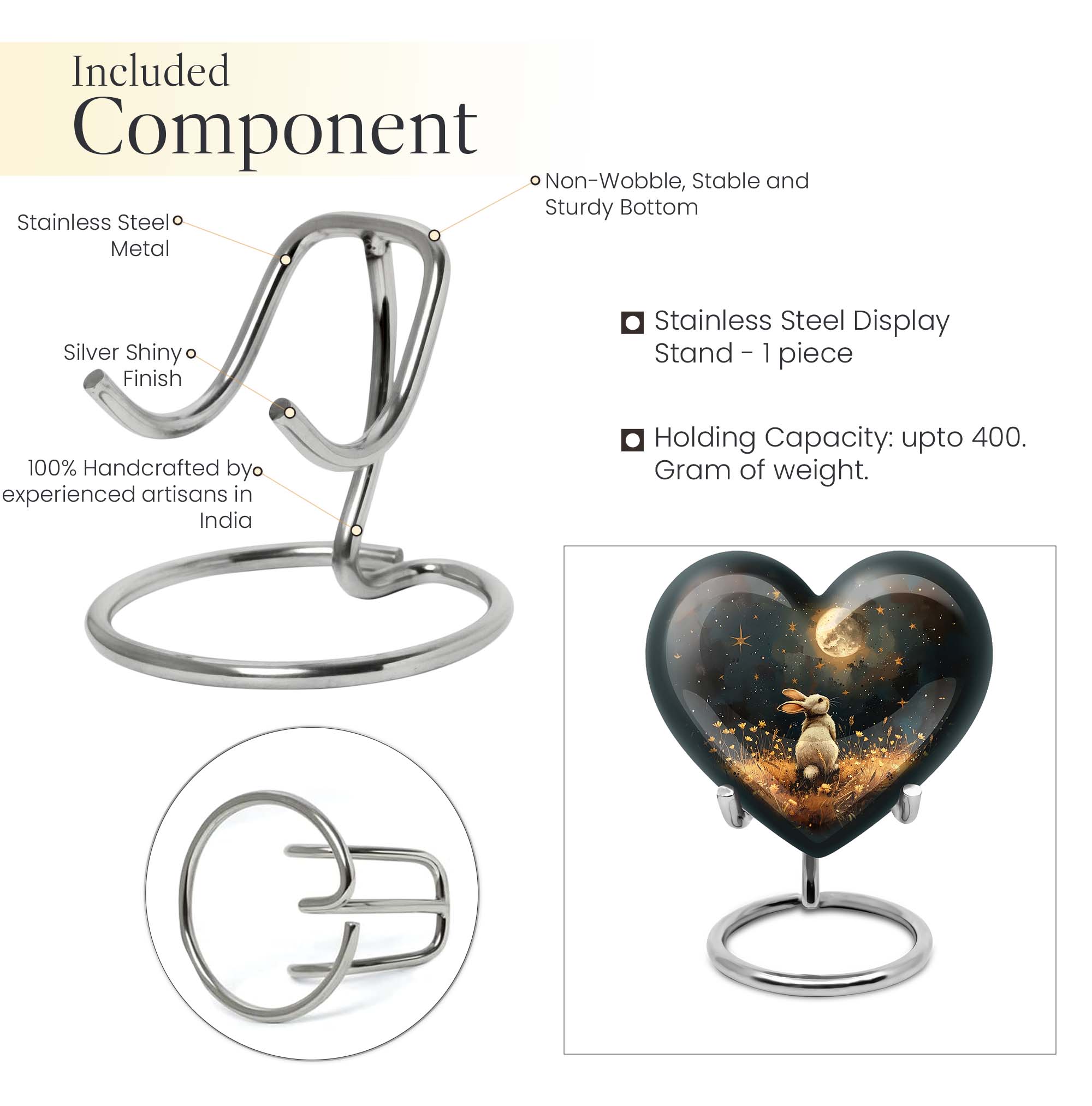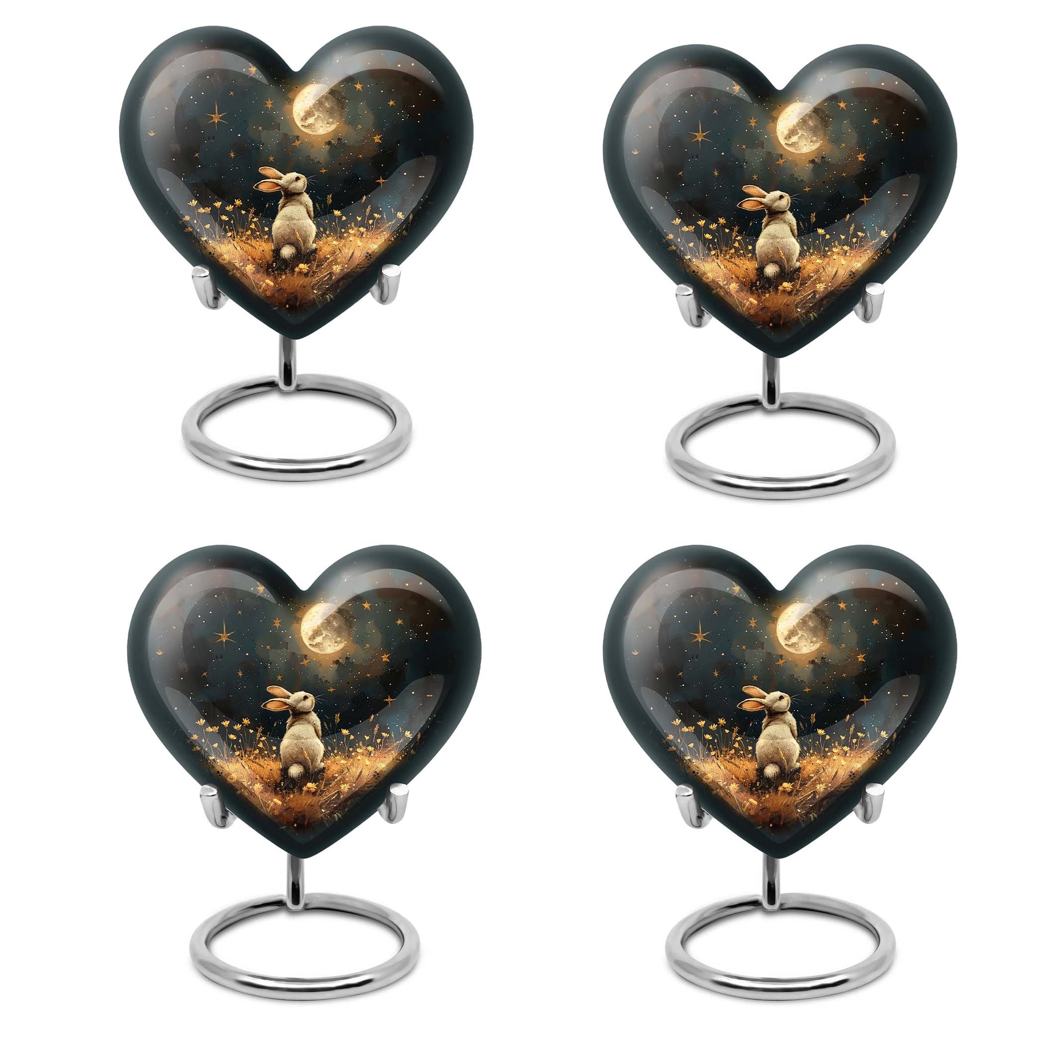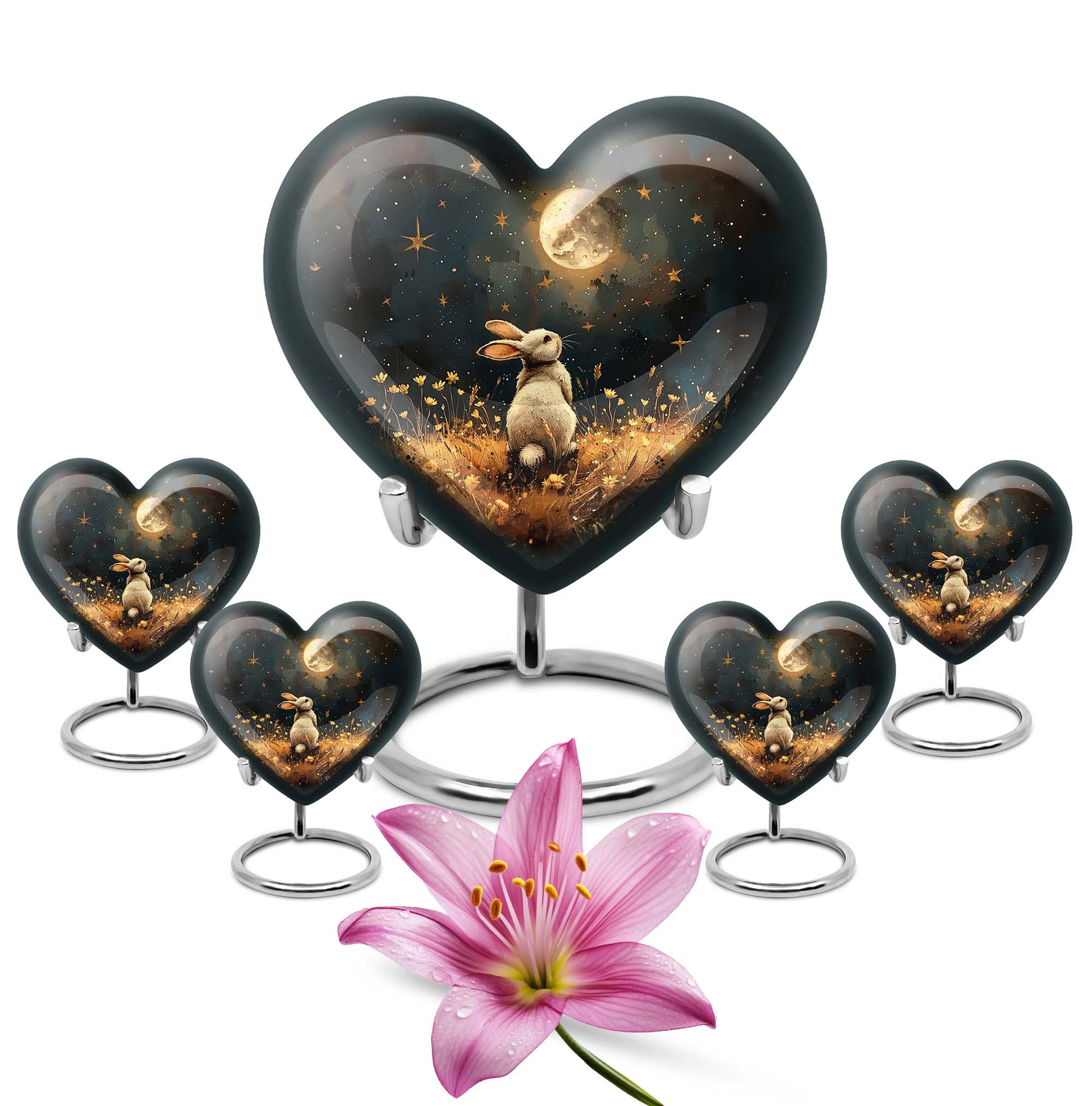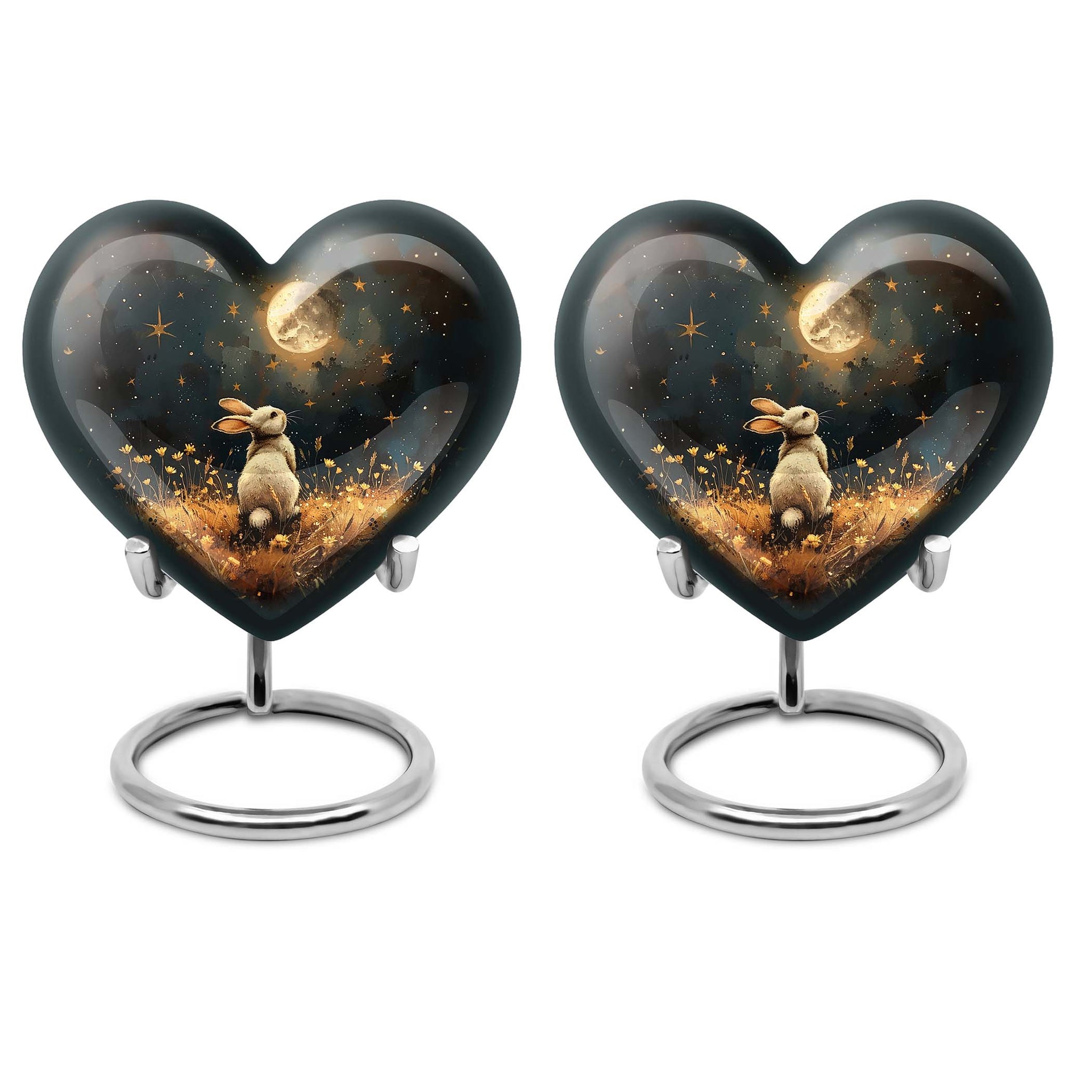 Discover a revered remembrance for your dearly departed one with the White Bunny Moon Urn. This large, 10-inch masterpiece pays homage to the celestial beauty, in an abstract theme, entirely crafted from sturdy aluminium. With a weight of just 3.3 pounds, the urn is both durable and has a thoughtful capacity of 200 cubic inches, permitting you to respectfully preserve the ashes of an adult. Harmoniously blend this memorial urn into your home decor, its unique heart design echoing a timeless connection. The urn additionally comes with a velvet pouch, providing a dignified containment for the treasured remains. Personalize this burial funeral cremation urn with an engraved name, enhancing its sentimental value. Its magnificent appeal positions it as an exquisite choice for man metal cremation or as an urn for human ashes for an adult woman. Cherish the beauty of memory with this distinctive urn.
