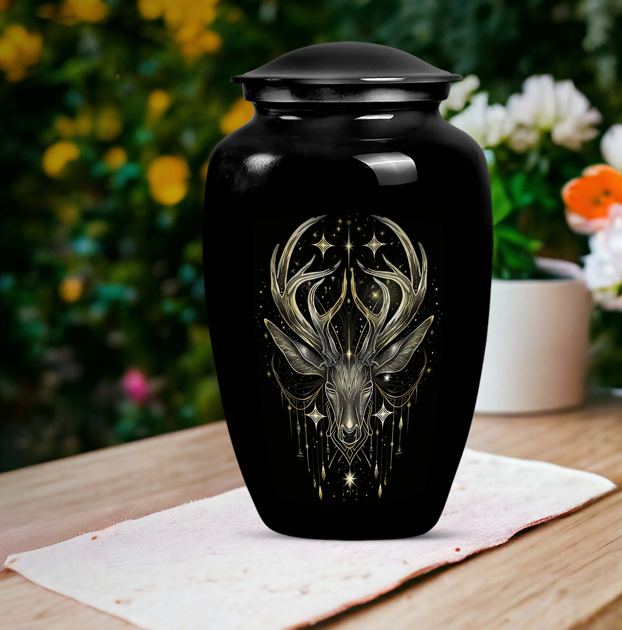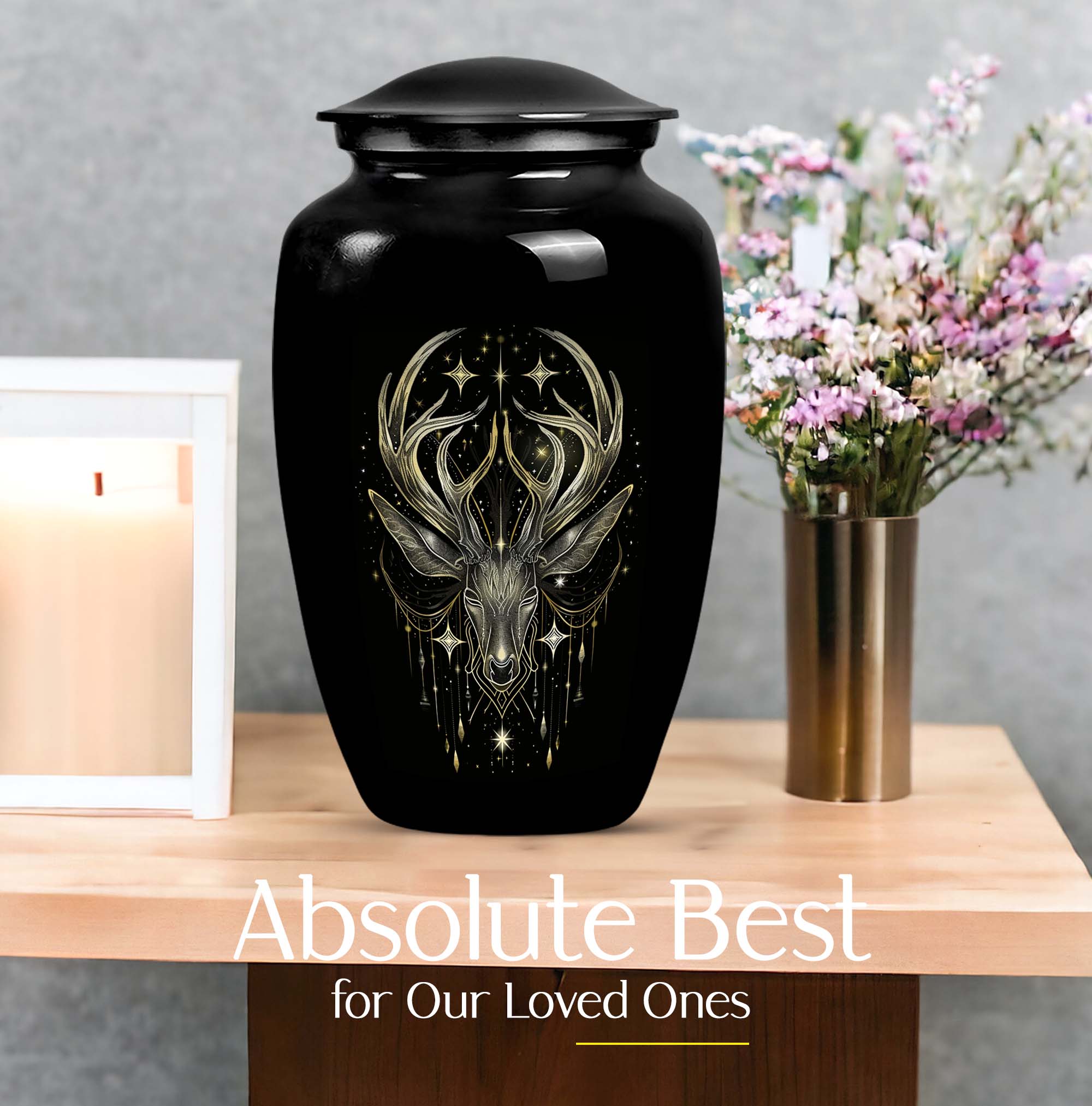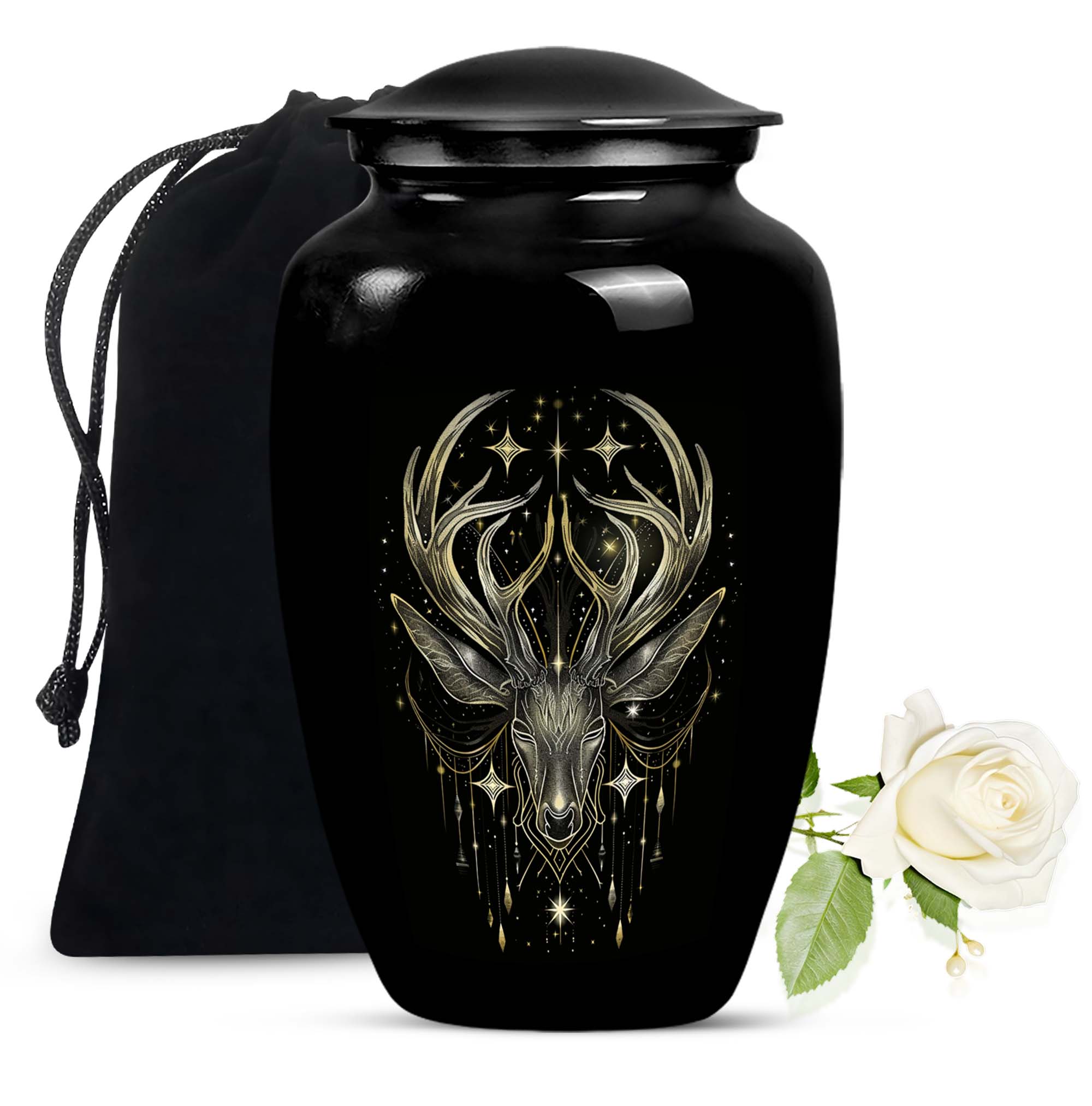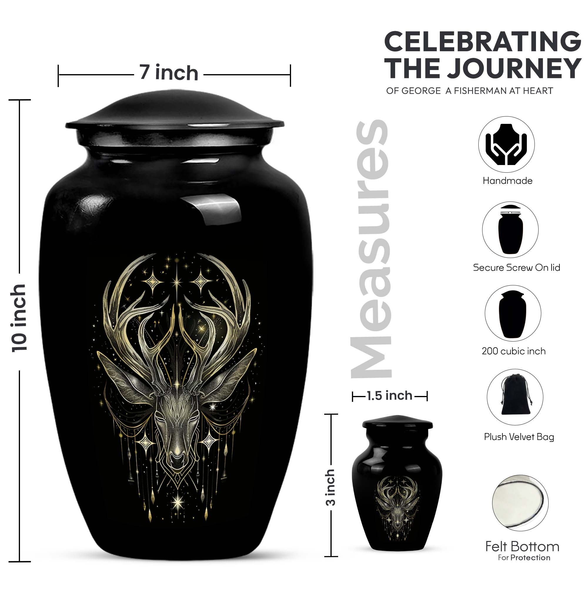Discover the timeless sophistication of our 10-inch Classic Urn, part of our large urns collection for those seeking memorial urns with remarkable design. Crafted from high-quality aluminium, this urn weighs a sturdy 3.3 pounds and possesses a capacity of 200 cubic inches, adeptly containing your cherished one's ashes. Not only is it designed with exquisite precision, but it also carries an abstract theme that relishes in its distinctiveness, separating itself from typical adult burial urns. As a special touch, we offer personalization services for engraved names, ensuring this urn carries deeper meaning as a sacred memorial. Each purchase comes with a velvet pouch, adding an extra layer of protection when housing ashes. Whether you find comfort in the 'moose walking Urn' concept or you're pursuing 'cremation urns for dad', this heirloom-worthy piece serves as a fitting tribute. Note: Design elements of the urn are not included in the description due to the emphasis on other valuable attributes.