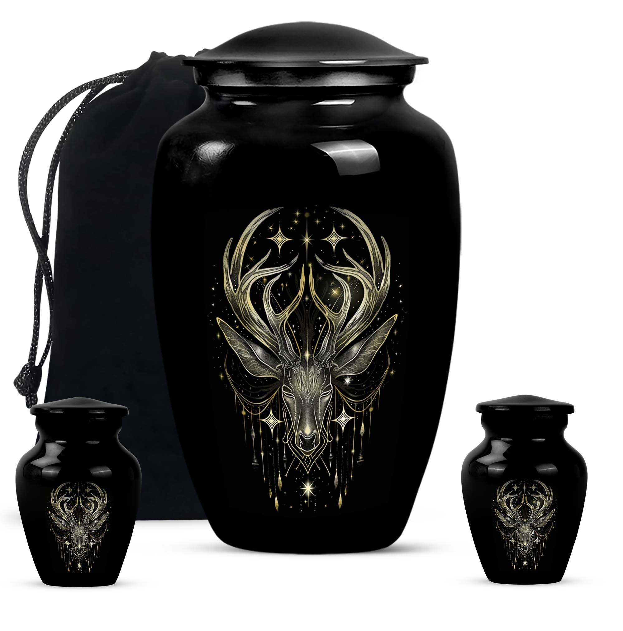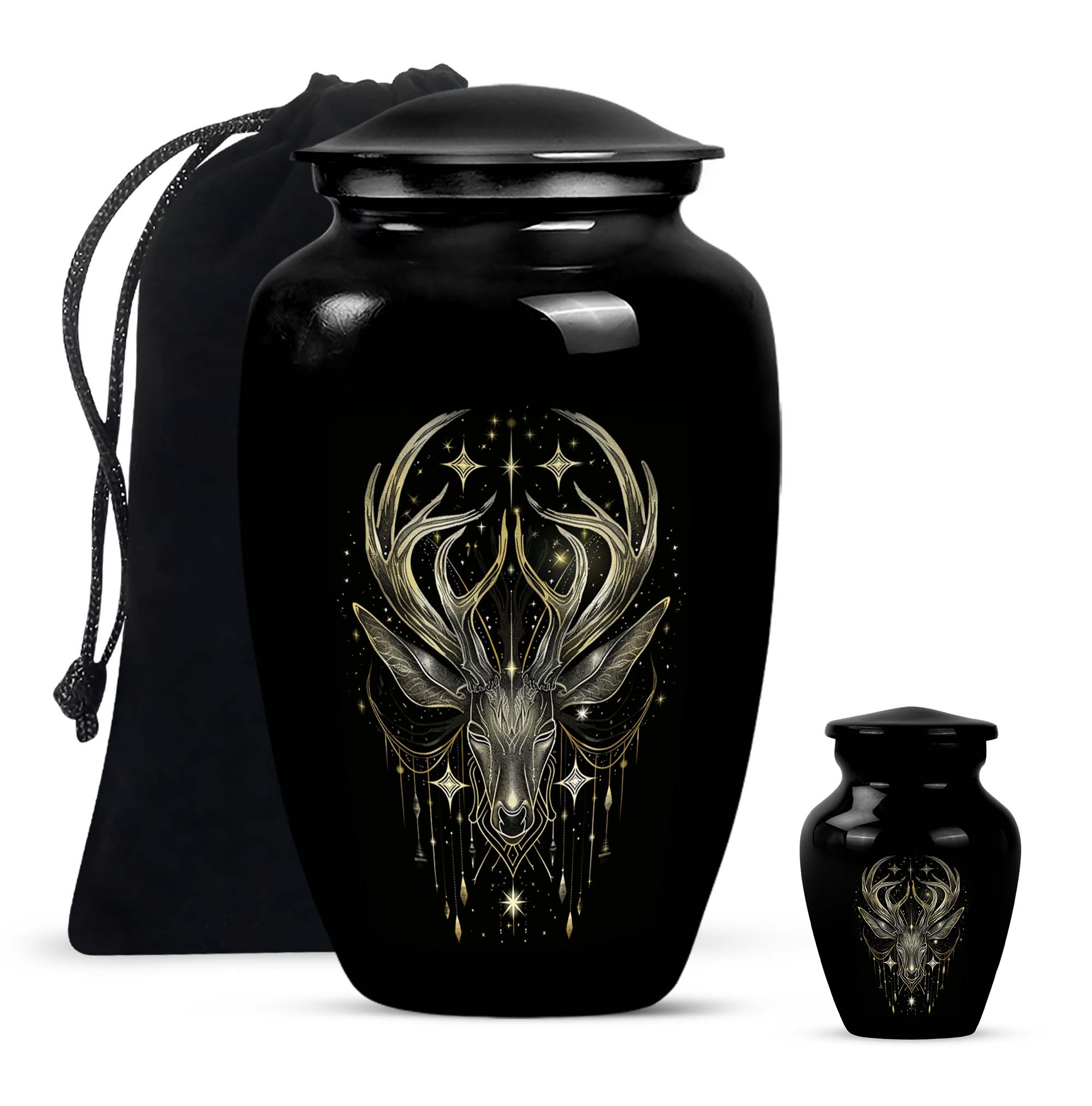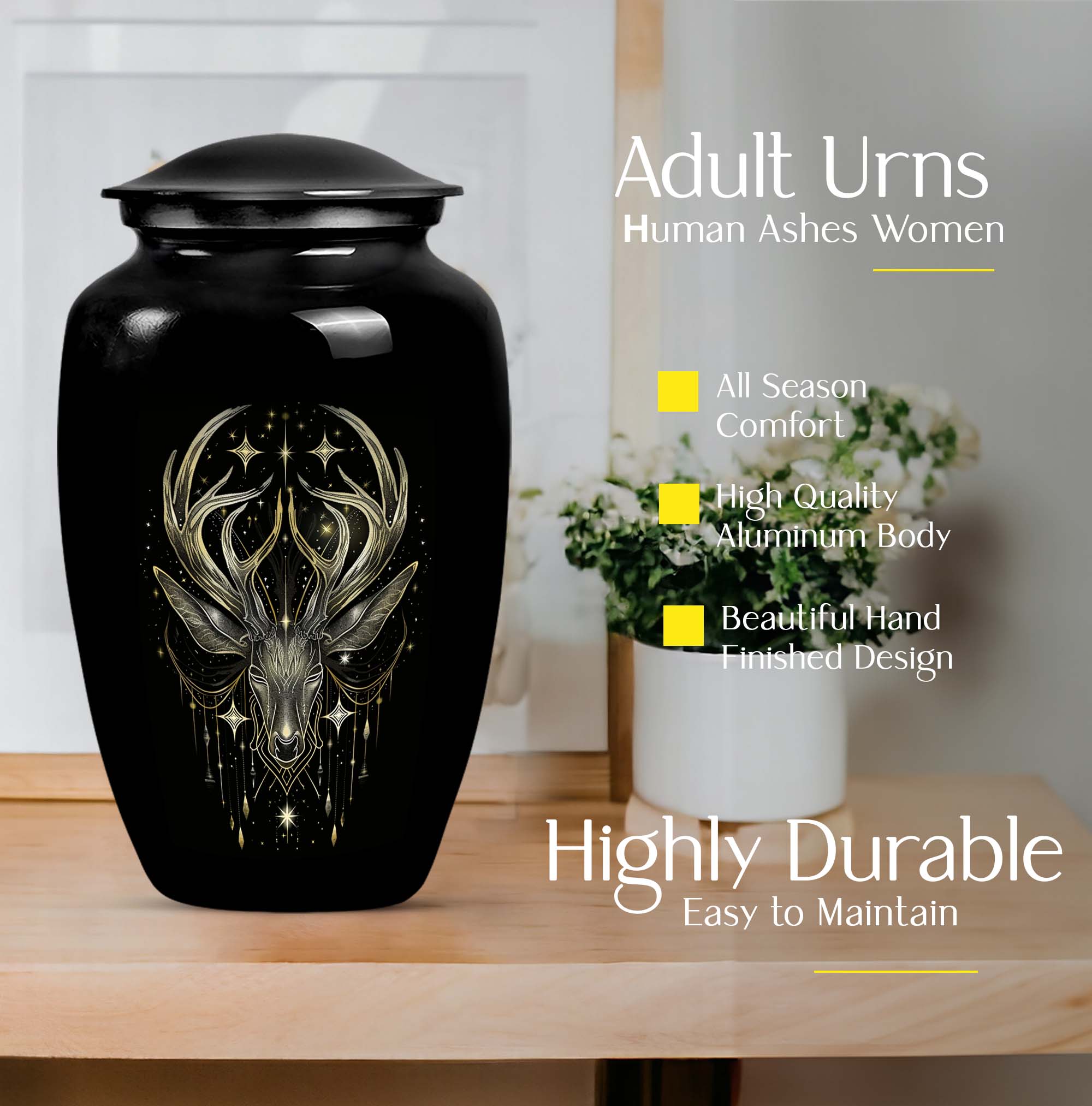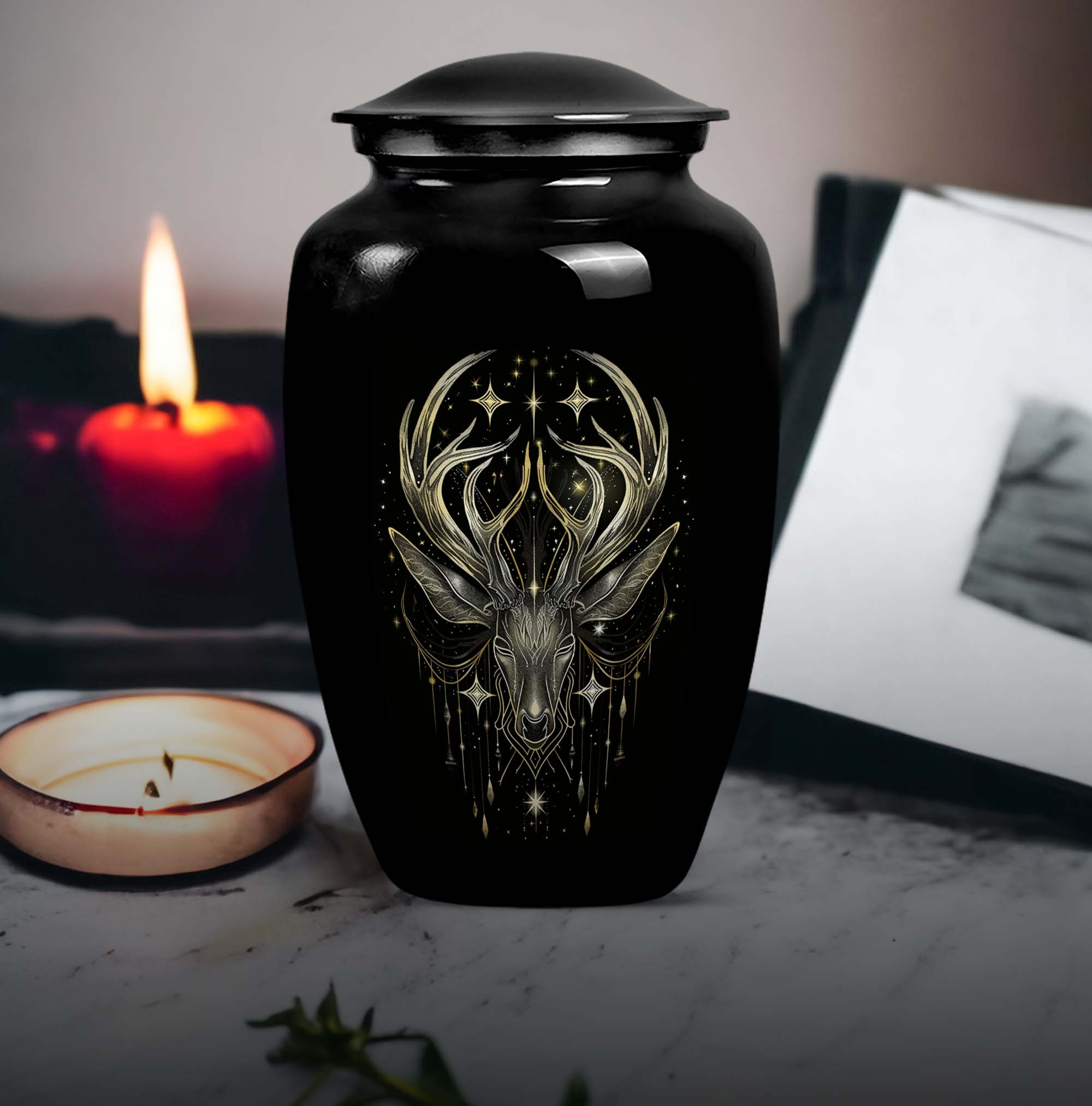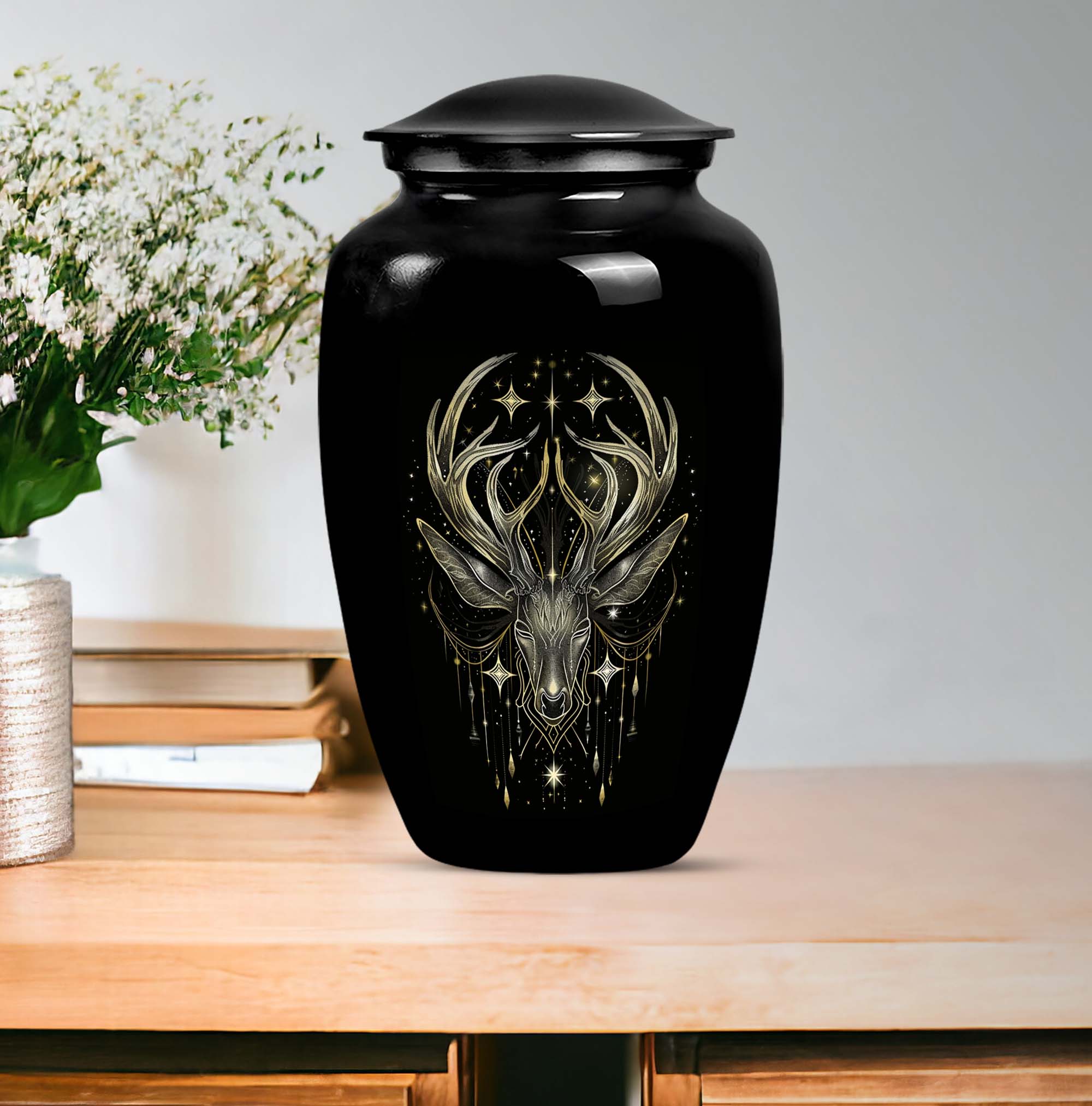Discover the timeless sophistication of our 10-inch Classic Urn, part of our large urns collection for those seeking memorial urns with remarkable design. Crafted from high-quality aluminium, this urn weighs a sturdy 3.3 pounds and possesses a capacity of 200 cubic inches, adeptly containing your cherished one's ashes. Not only is it designed with exquisite precision, but it also carries an abstract theme that relishes in its distinctiveness, separating itself from typical adult burial urns. As a special touch, we offer personalization services for engraved names, ensuring this urn carries deeper meaning as a sacred memorial. Each purchase comes with a velvet pouch, adding an extra layer of protection when housing ashes. Whether you find comfort in the 'moose walking Urn' concept or you're pursuing 'cremation urns for dad', this heirloom-worthy piece serves as a fitting tribute. Note: Design elements of the urn are not included in the description due to the emphasis on other valuable attributes.