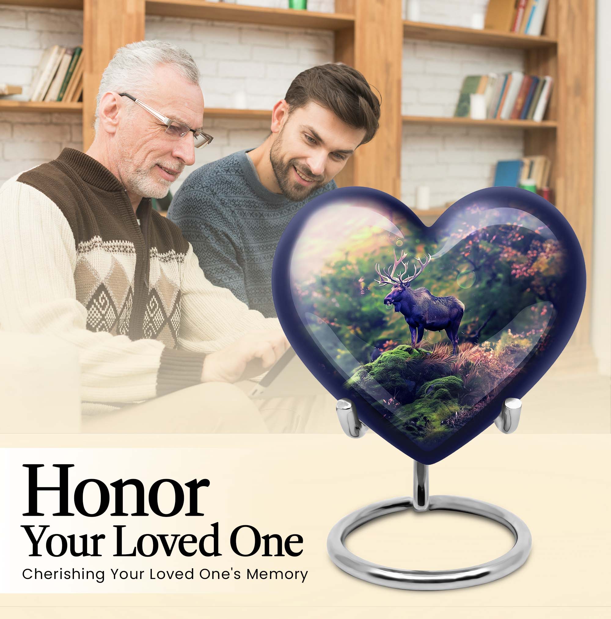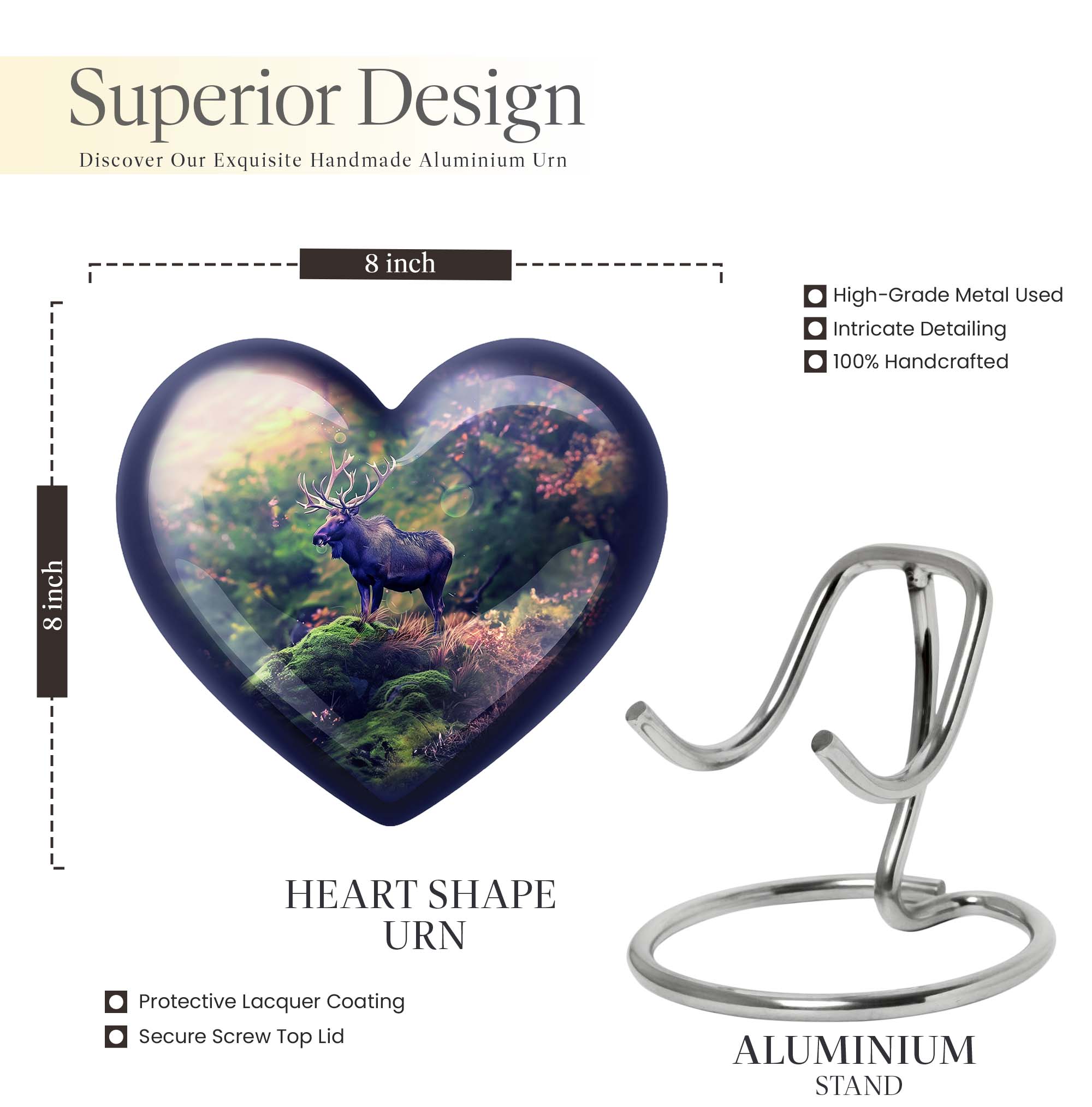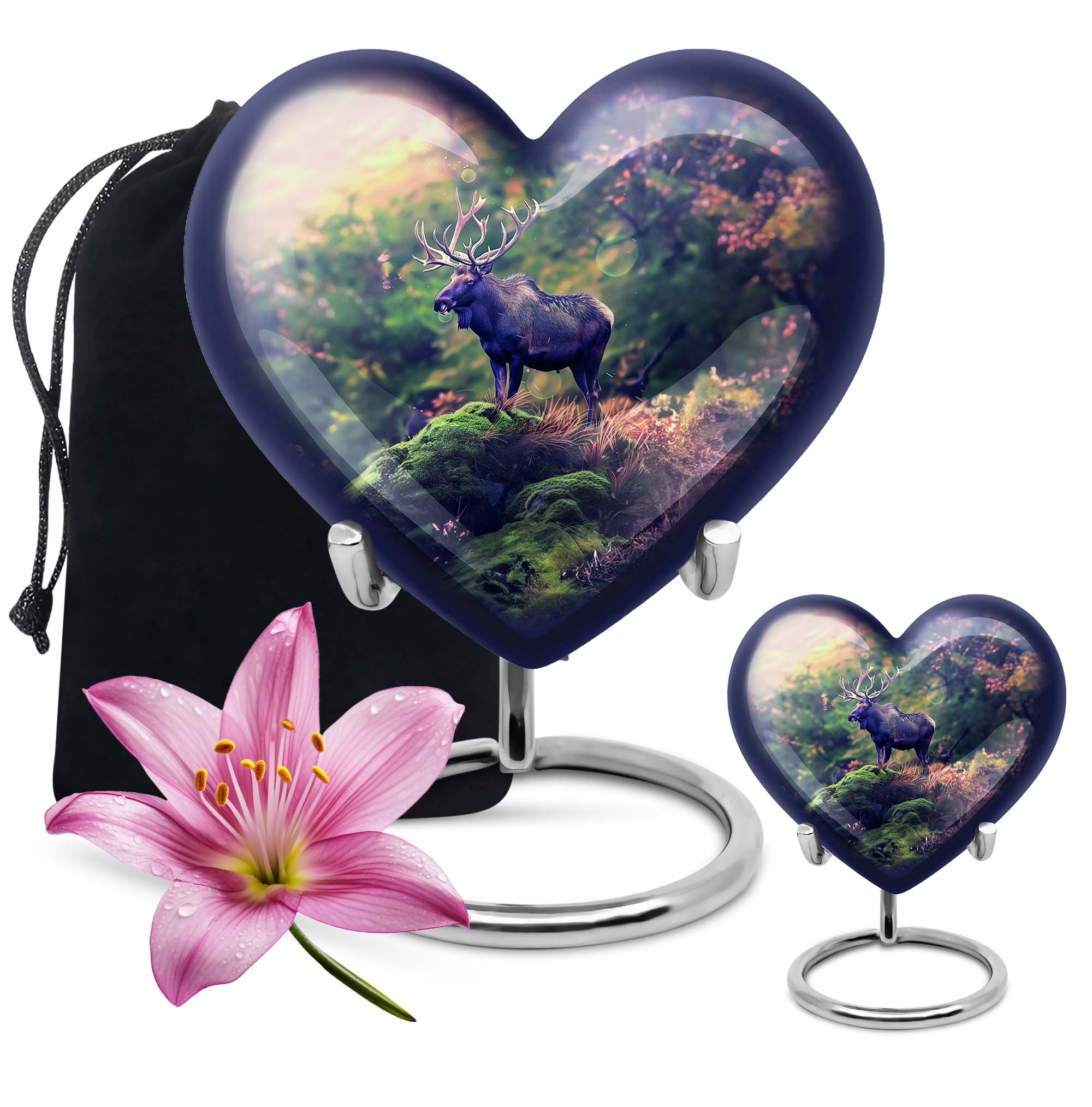 Preserve the memories of your loved ones with this beautifully crafted Moose Walking Urn. Designed for the containment of human ashes, this large cremation memorial urn takes on an abstract theme, combining aesthetics with reverence. Standing a comfortable 10 inches in height and weighing a sturdy 3.3 pounds, this urn is spacious as it is deep - with the impressive capacity of 200 cubic inches. Personalization is an option, allowing you to have names engraved, giving a unique touch to this treasured item. Each cremation urn is thoughtfully accompanied by a soft velvet pouch ensuring secure containment. Made from robust aluminium, the longevity of this urn is unmatched. This urn strikes the perfect balance between style and solemnity, making it the ultimate way to honor and remember departed loved ones. Keywords: Burial urn for human ashes, cremation urn man, urn for ashes for women, cremation urns large.