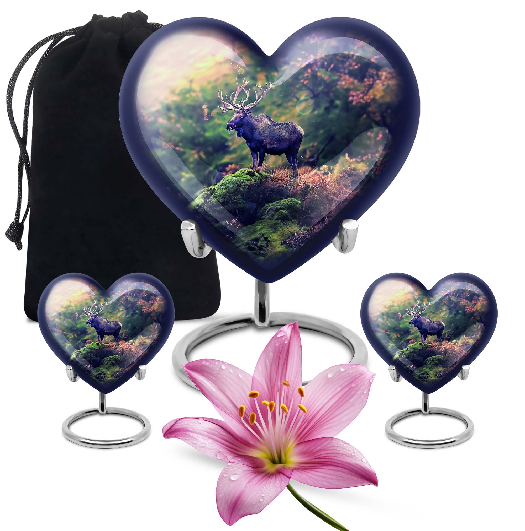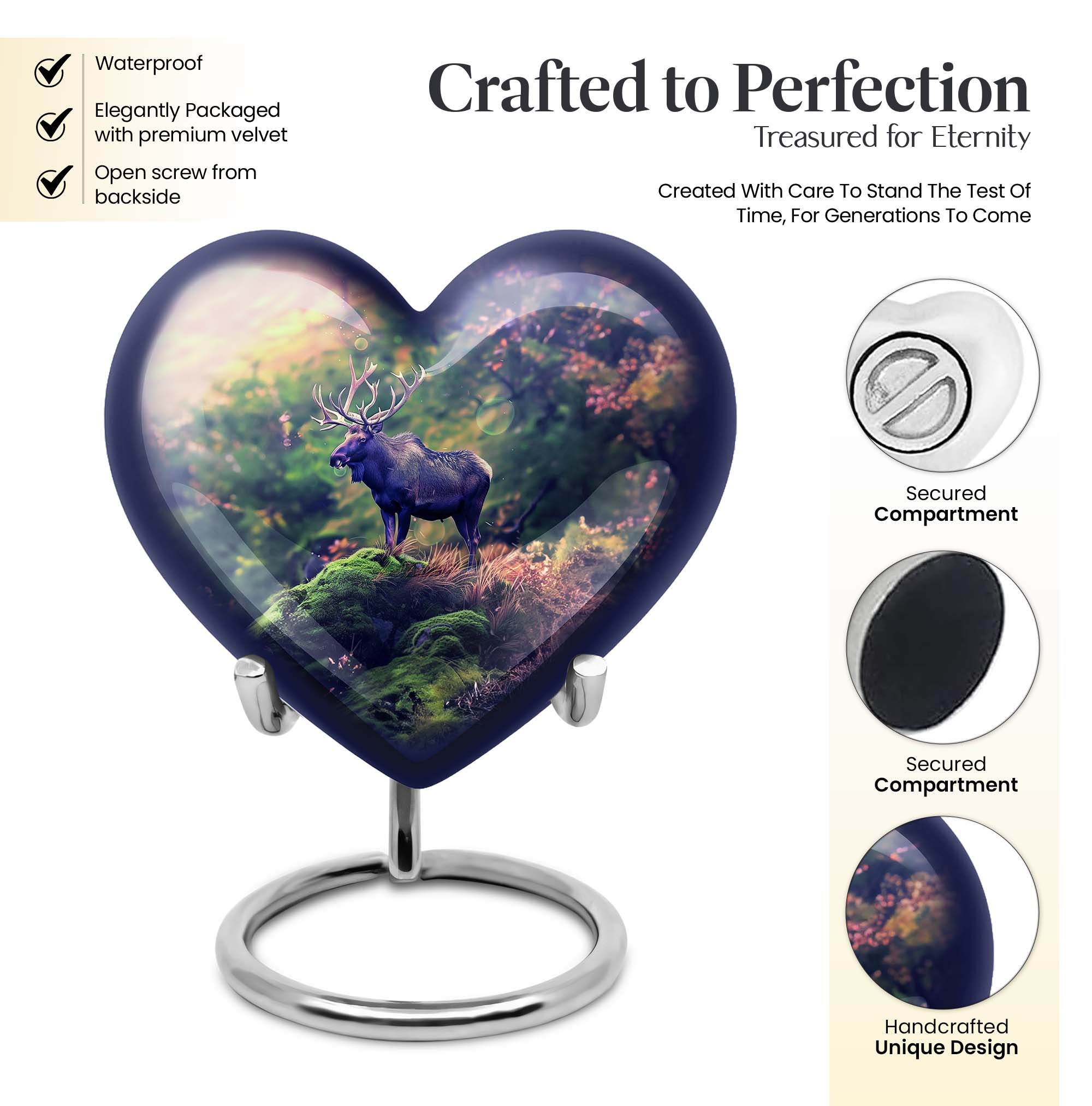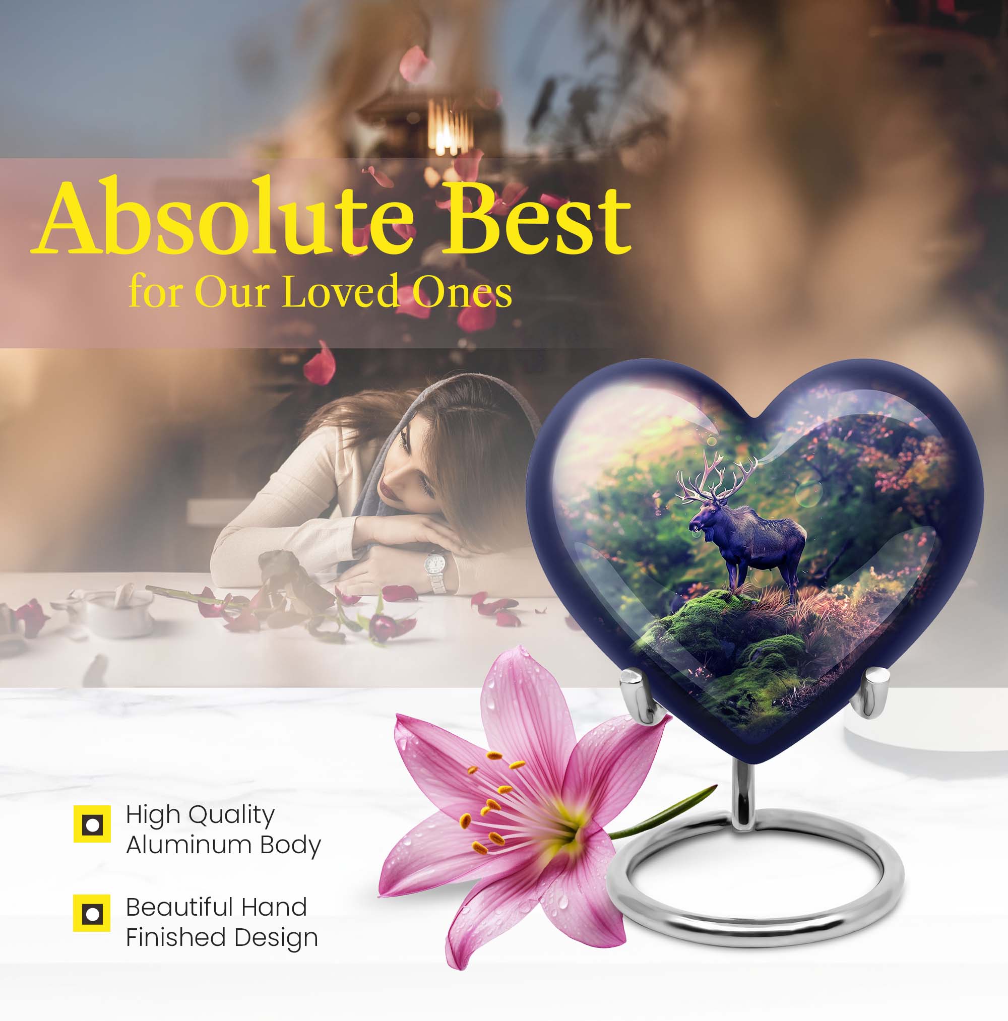 Preserve the memories of your loved ones with this beautifully crafted Moose Walking Urn. Designed for the containment of human ashes, this large cremation memorial urn takes on an abstract theme, combining aesthetics with reverence. Standing a comfortable 10 inches in height and weighing a sturdy 3.3 pounds, this urn is spacious as it is deep - with the impressive capacity of 200 cubic inches. Personalization is an option, allowing you to have names engraved, giving a unique touch to this treasured item. Each cremation urn is thoughtfully accompanied by a soft velvet pouch ensuring secure containment. Made from robust aluminium, the longevity of this urn is unmatched. This urn strikes the perfect balance between style and solemnity, making it the ultimate way to honor and remember departed loved ones. Keywords: Burial urn for human ashes, cremation urn man, urn for ashes for women, cremation urns large.