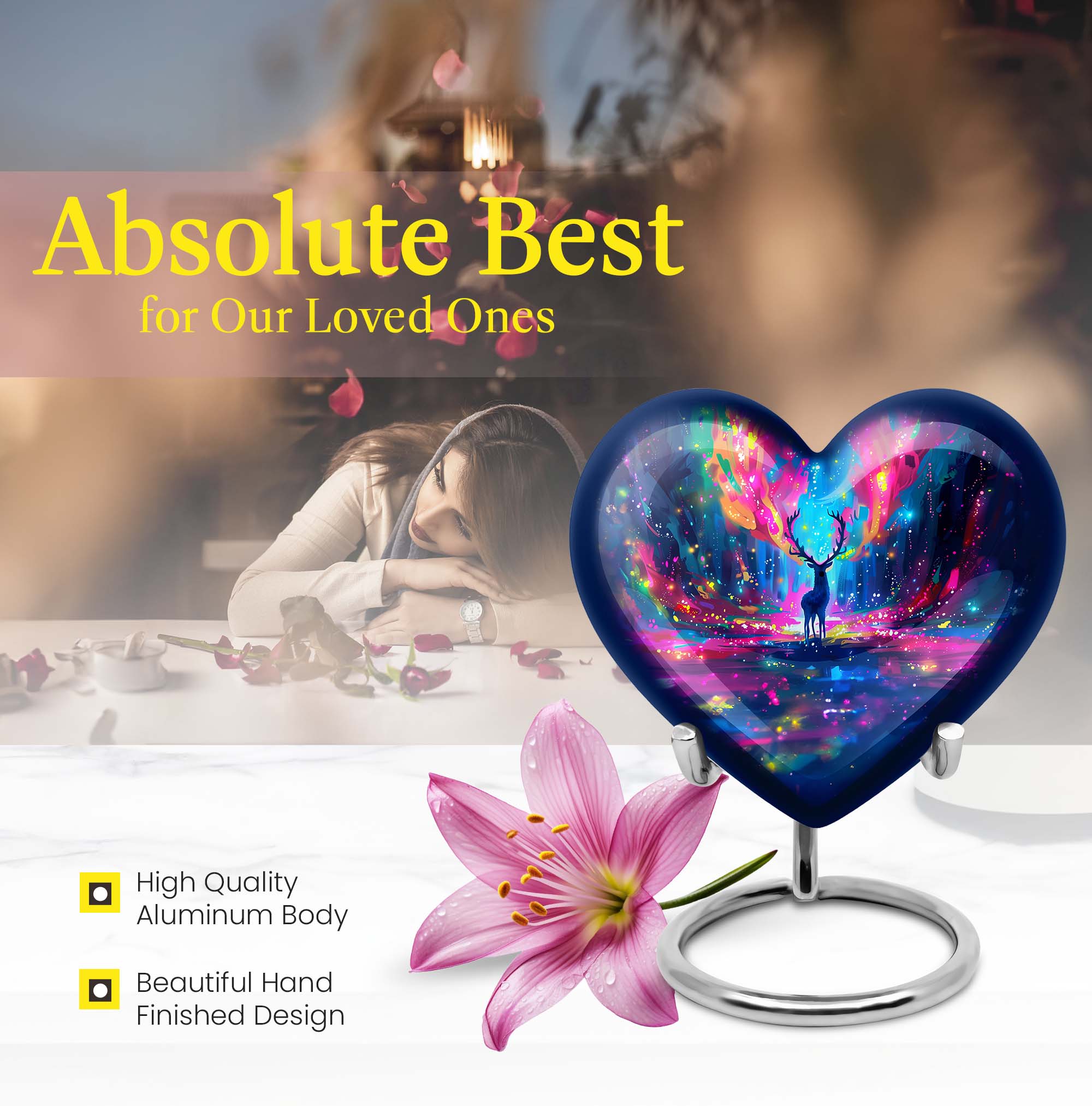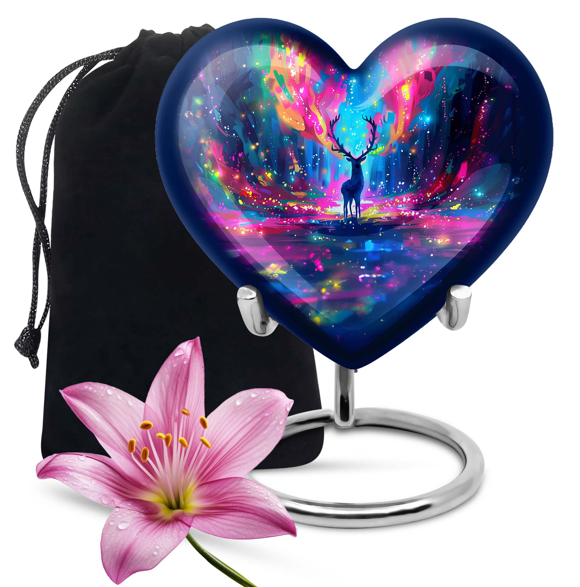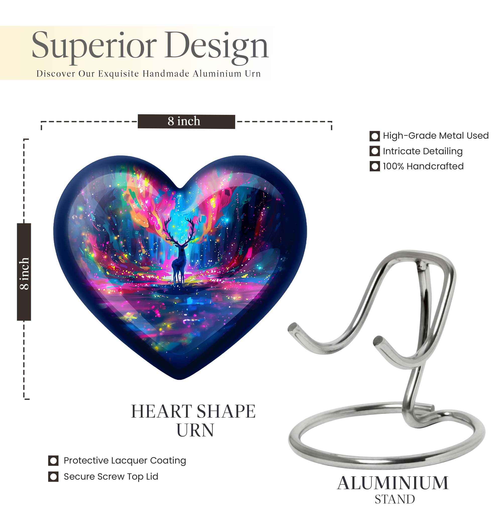 Illuminate the memory of a beloved with our 'Moose Walking Urn'. Constructed from top-quality aluminium, this large, 10-inch funeral urn is a stately and enduring vessel for human ashes, nuanced with an abstract theme that radiates timeless elegance. Weighing 3.3 pounds and with a substantial capacity of 200 cubic inches, it caters efficiently to storage needs. This urn is created with a depth of care and attention, offering a unique, personal touch with its customization feature that allows for engraved names. A velvet pouch is included in the package, offering a respectful enclosure for the treasured ashes. Break away from the ordinary with this unique funeral cremation urn. Ideal for those searching for 'memorial medium urns for ashes' or 'cremation urn burial', this distinct piece is a refined choice for commemorating loved ones. (Please note, urn design specifics other than material, size, and shape are proprietary and not disclosed in the description.)