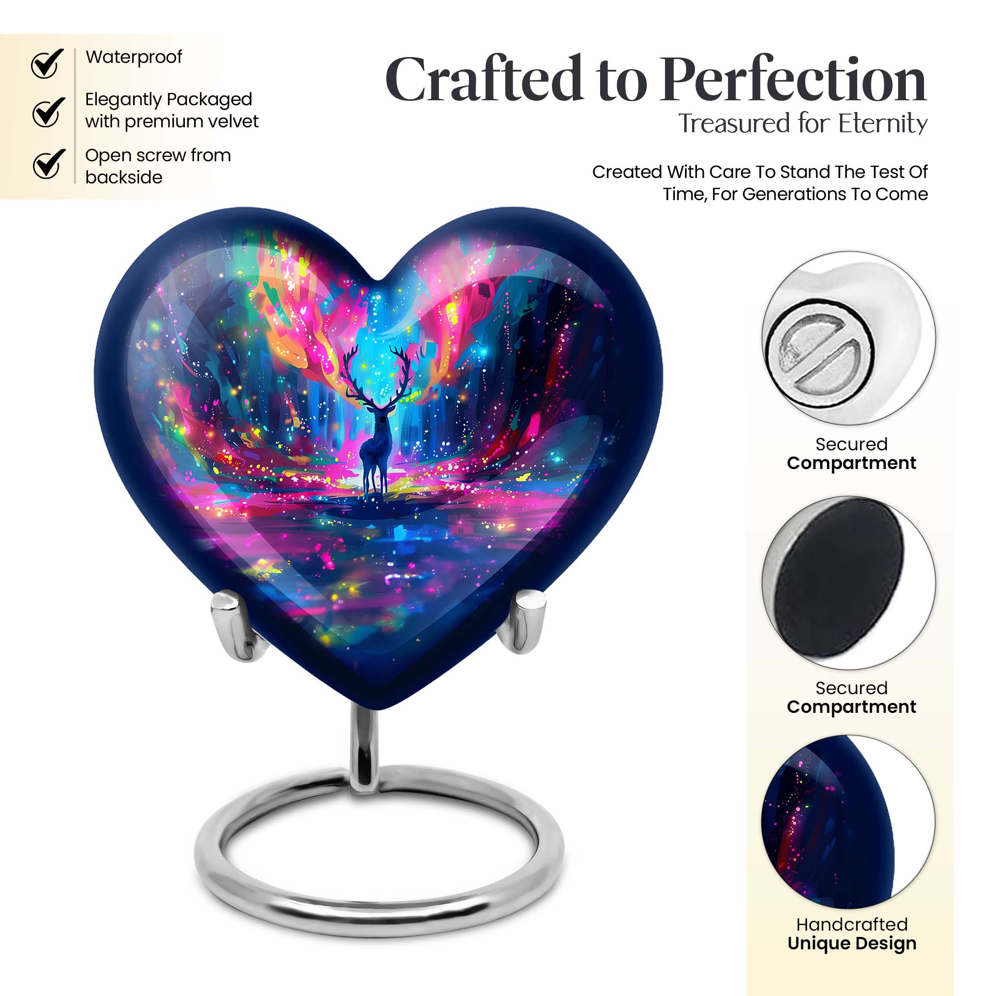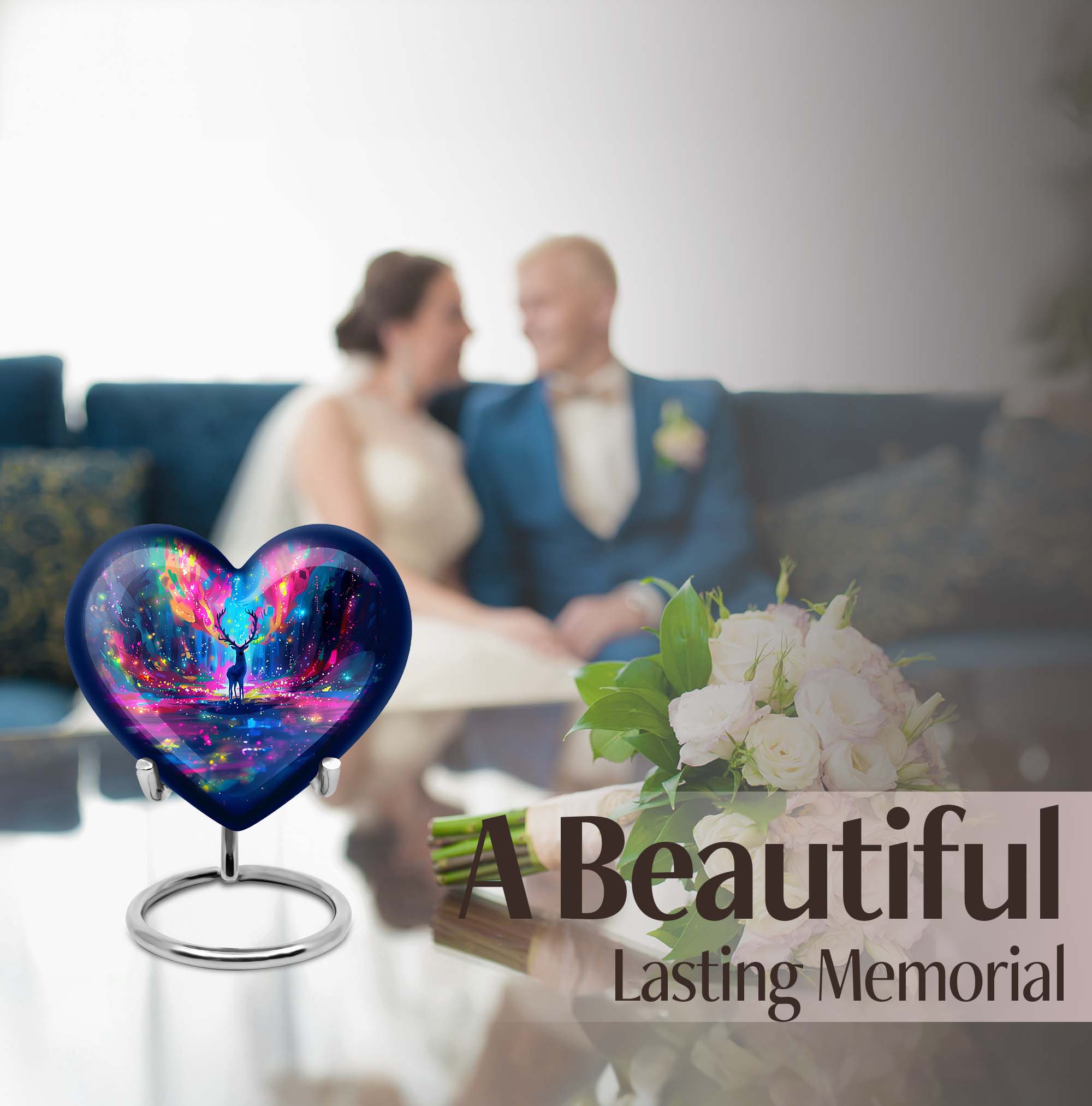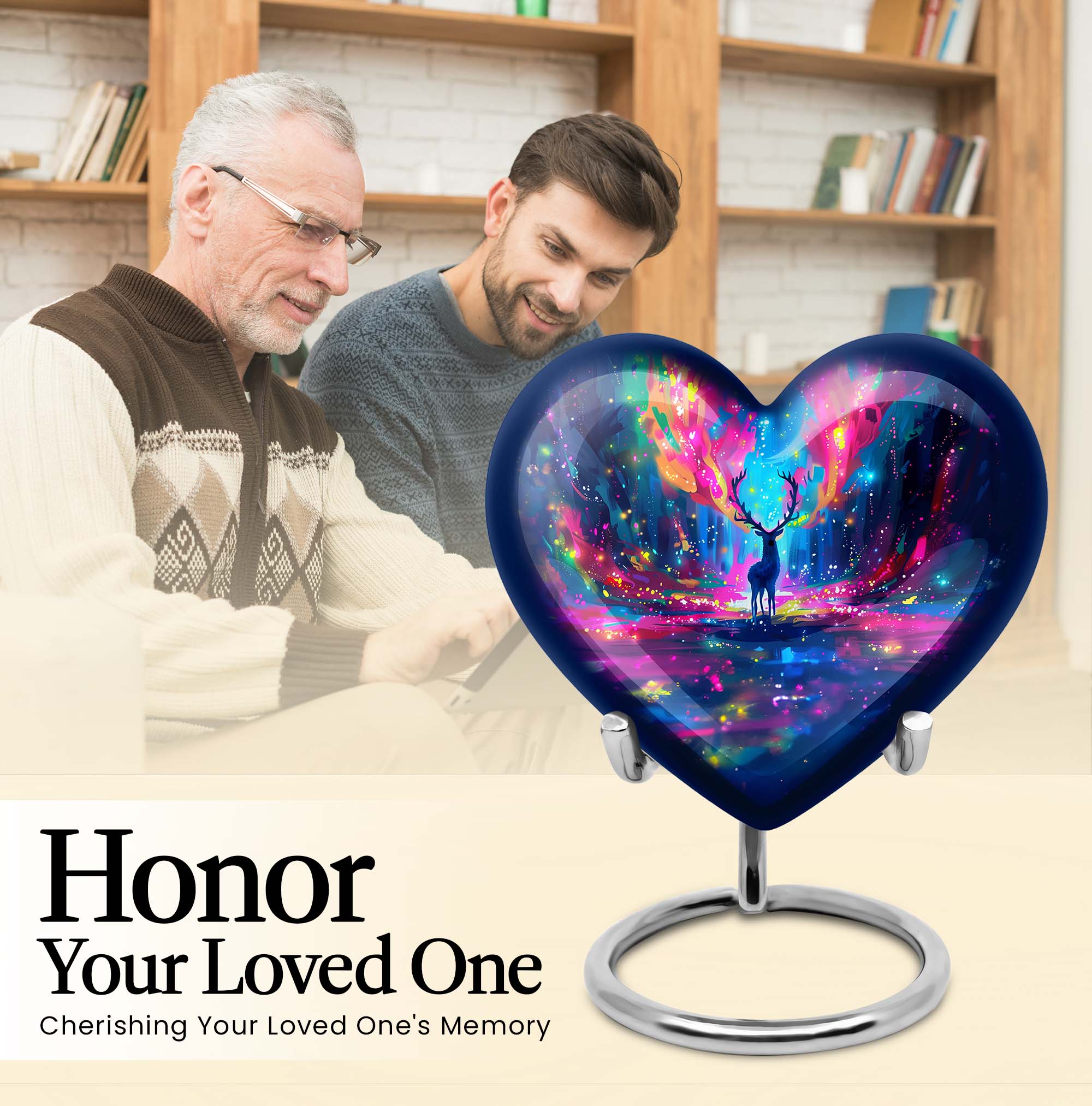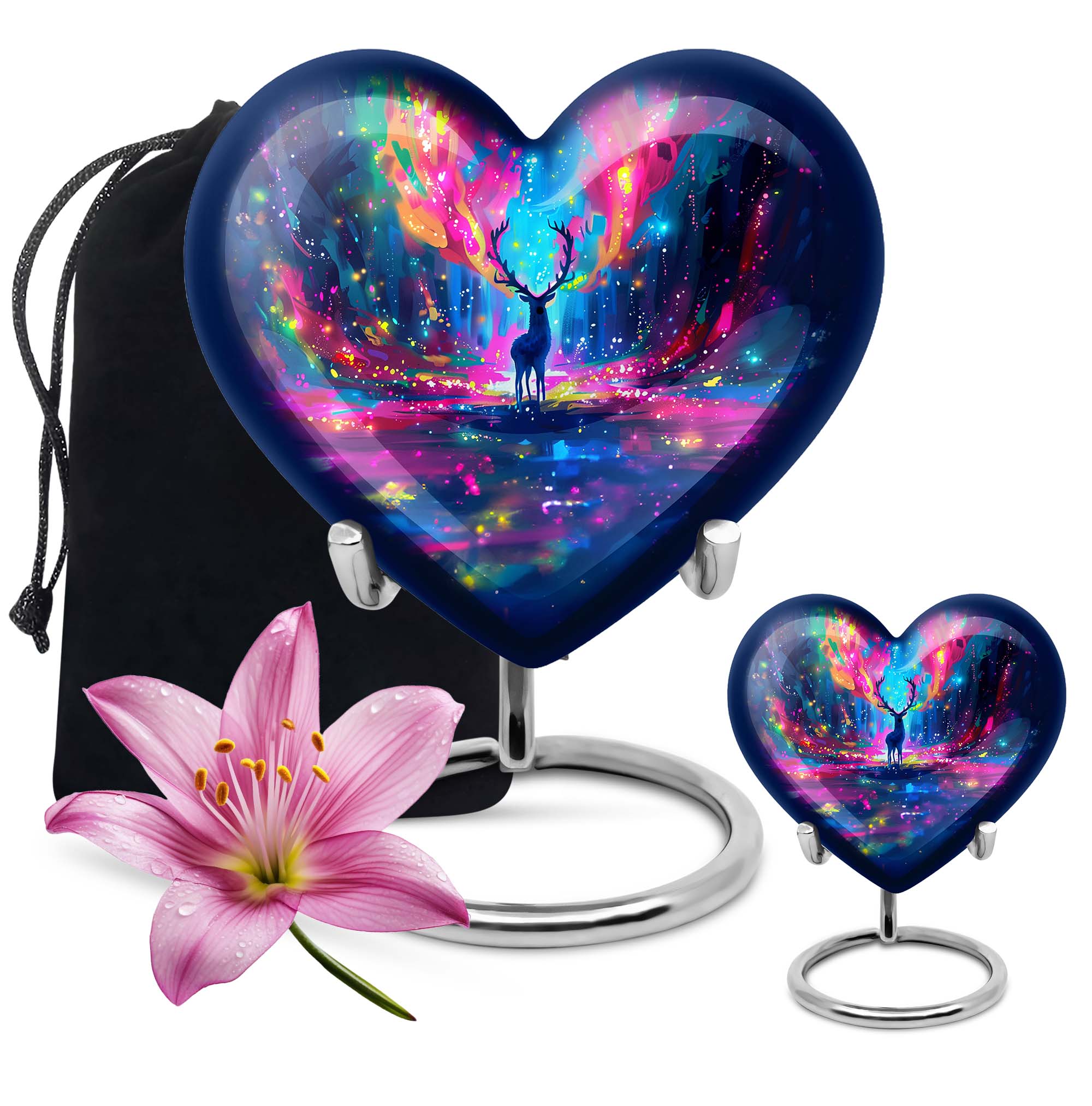 Illuminate the memory of a beloved with our 'Moose Walking Urn'. Constructed from top-quality aluminium, this large, 10-inch funeral urn is a stately and enduring vessel for human ashes, nuanced with an abstract theme that radiates timeless elegance. Weighing 3.3 pounds and with a substantial capacity of 200 cubic inches, it caters efficiently to storage needs. This urn is created with a depth of care and attention, offering a unique, personal touch with its customization feature that allows for engraved names. A velvet pouch is included in the package, offering a respectful enclosure for the treasured ashes. Break away from the ordinary with this unique funeral cremation urn. Ideal for those searching for 'memorial medium urns for ashes' or 'cremation urn burial', this distinct piece is a refined choice for commemorating loved ones. (Please note, urn design specifics other than material, size, and shape are proprietary and not disclosed in the description.)