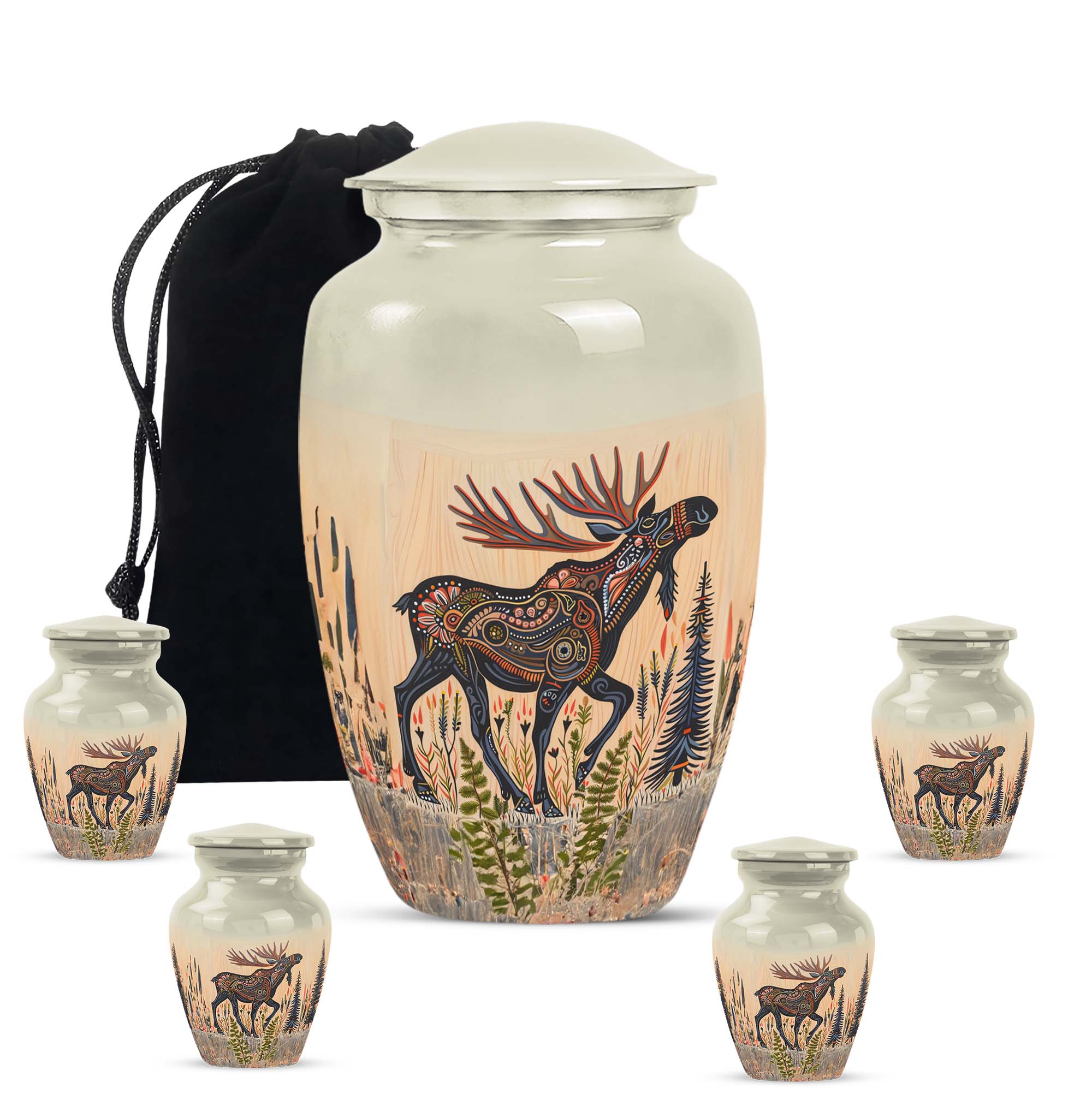 Discover a respectful and elegant final resting place for a loved one with the 'Moose Walking Urn'. This burial urn for human ashes is not only a memorial urn but also an object of endearing decor. The 10 Inch urn's size is substantial enough to hold up to 200 cubic inches of ashes, ensuring ample space for an adult's remains. Stitched from remarkable Aluminium, this weighs a modest 3.3 pounds, standing tall at 10 inches in height. This urn conveys a delicate blend of durability and aesthetic appeasement. The abstract theme of this large urn radiates a serene aura to honor and remember the departed. Each urn arrives with a velvet pouch for secure containment of ashes. It's not just an urn - it's a personalized token of remembrance; with the option to engrave names, adding a touch of a personal memento. Keywords such as 'funeral urn for mom, urn ash ashes adult, burial urns, cremation urn adult' subtly included to cater to specific searches. You don't just buy an urn, you secure a memory.