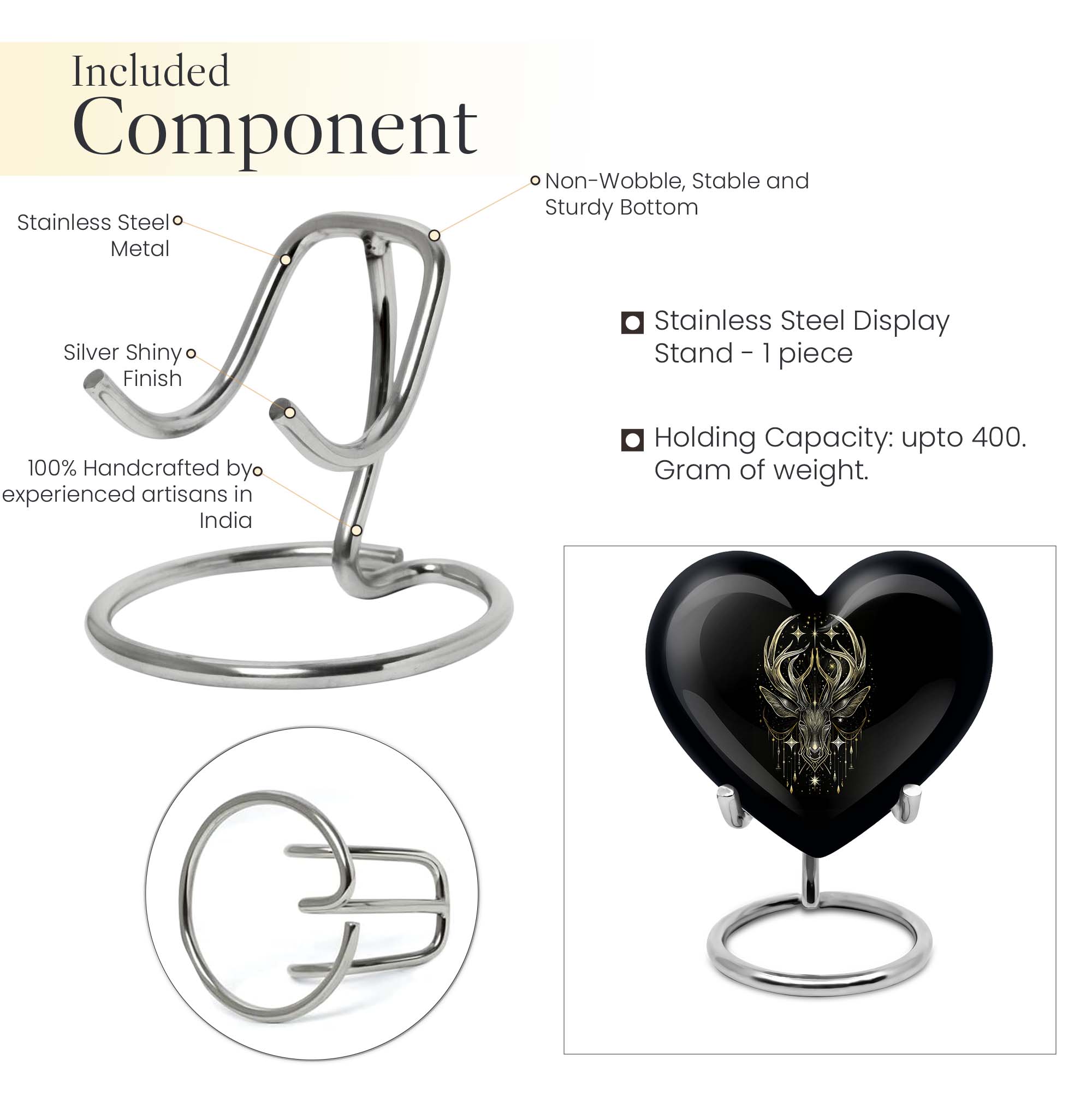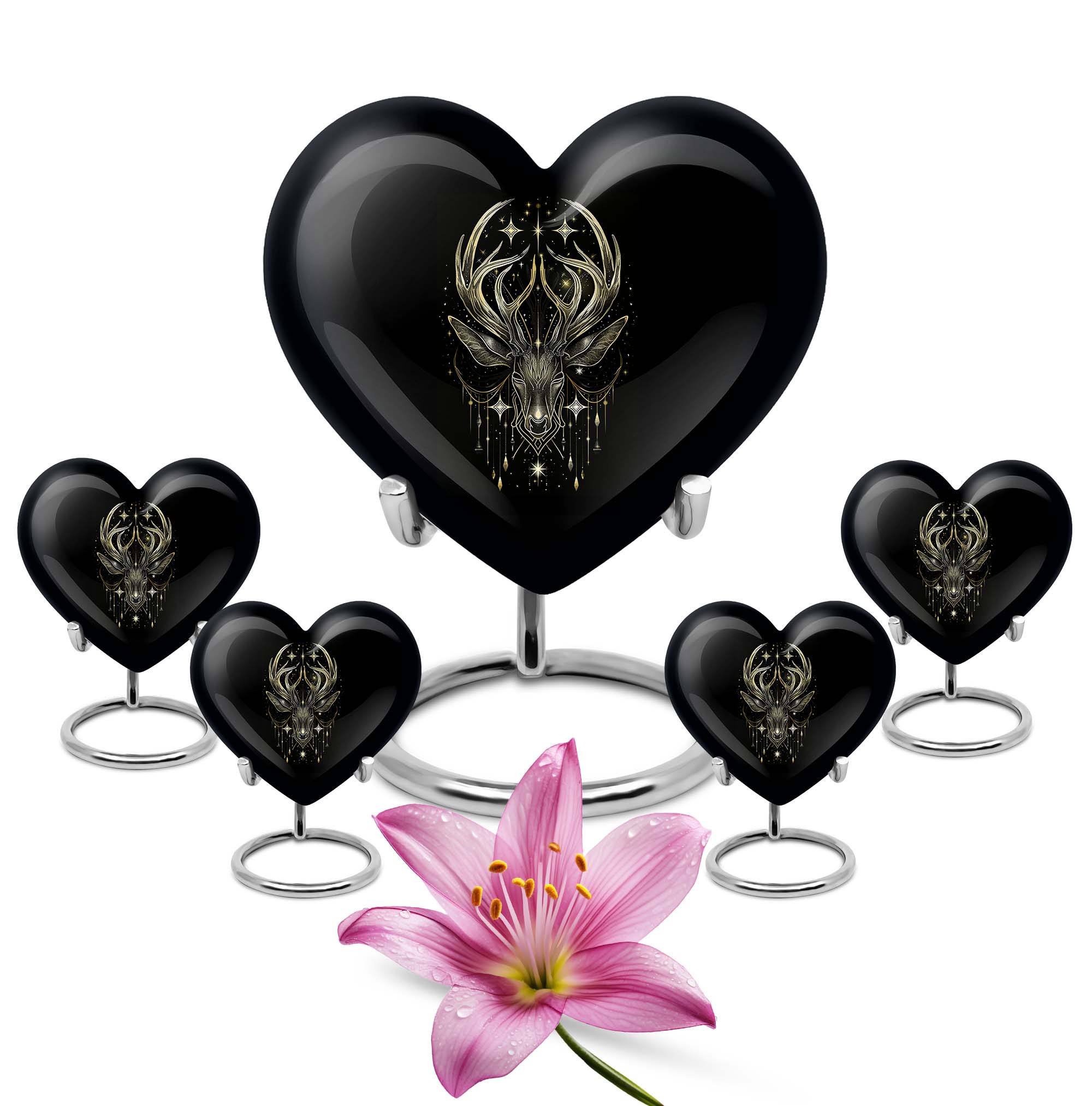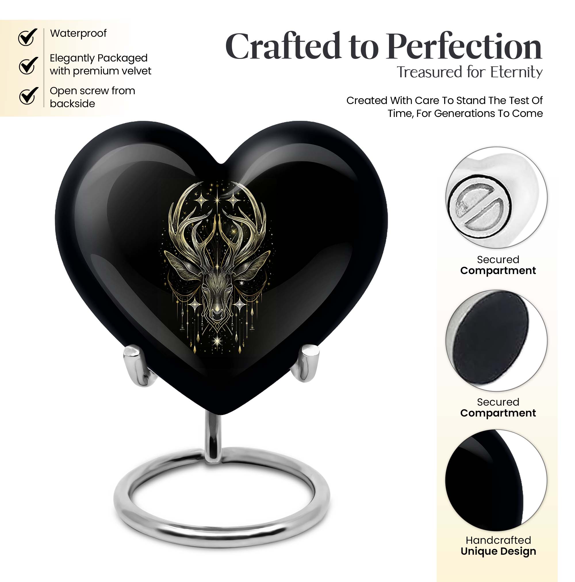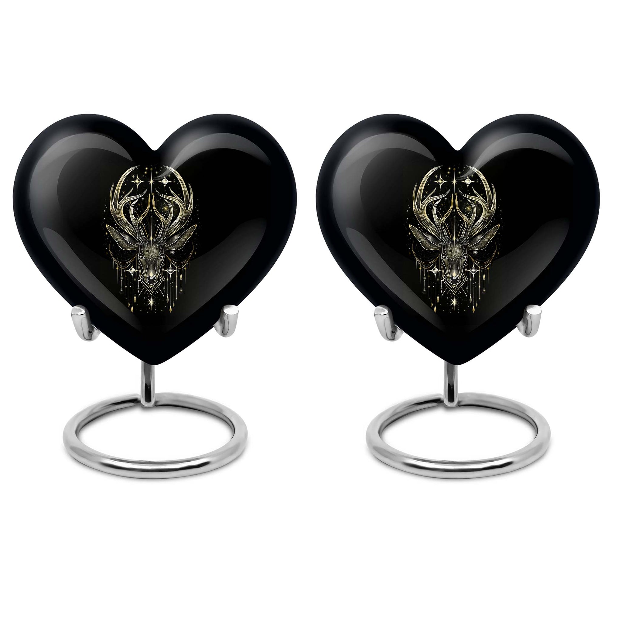 This exceptional moose walking urn creates a heartfelt tribute to your departed loved ones. Serving as a prominent burial urn for ashes for adults, it makes a poignant statement with its abstract theme and heart shaped design. A large urn measuring 10 inches in height, it has an ample capacity of 200 cubic inches making it perfectly suited for adult human ashes. The urn is crafted from superior material, aluminium, that ensures its durability and longevity. Weighing 3.3 pounds, it is stable and resilient. The urn also offers customization options where you can personalize it with engraved names, helping in creating a more bespoke memorial. One of the standout aspects of this piece is its intricacy in design that evokes memories and emotions. This cremation urn package includes a velvet pouch for containing the ashes securely. Ideal for those in search of memorial adult urns or cremation urns for dad. An uncommon, exquisite, and cherished choice for those commemorating their loved ones.