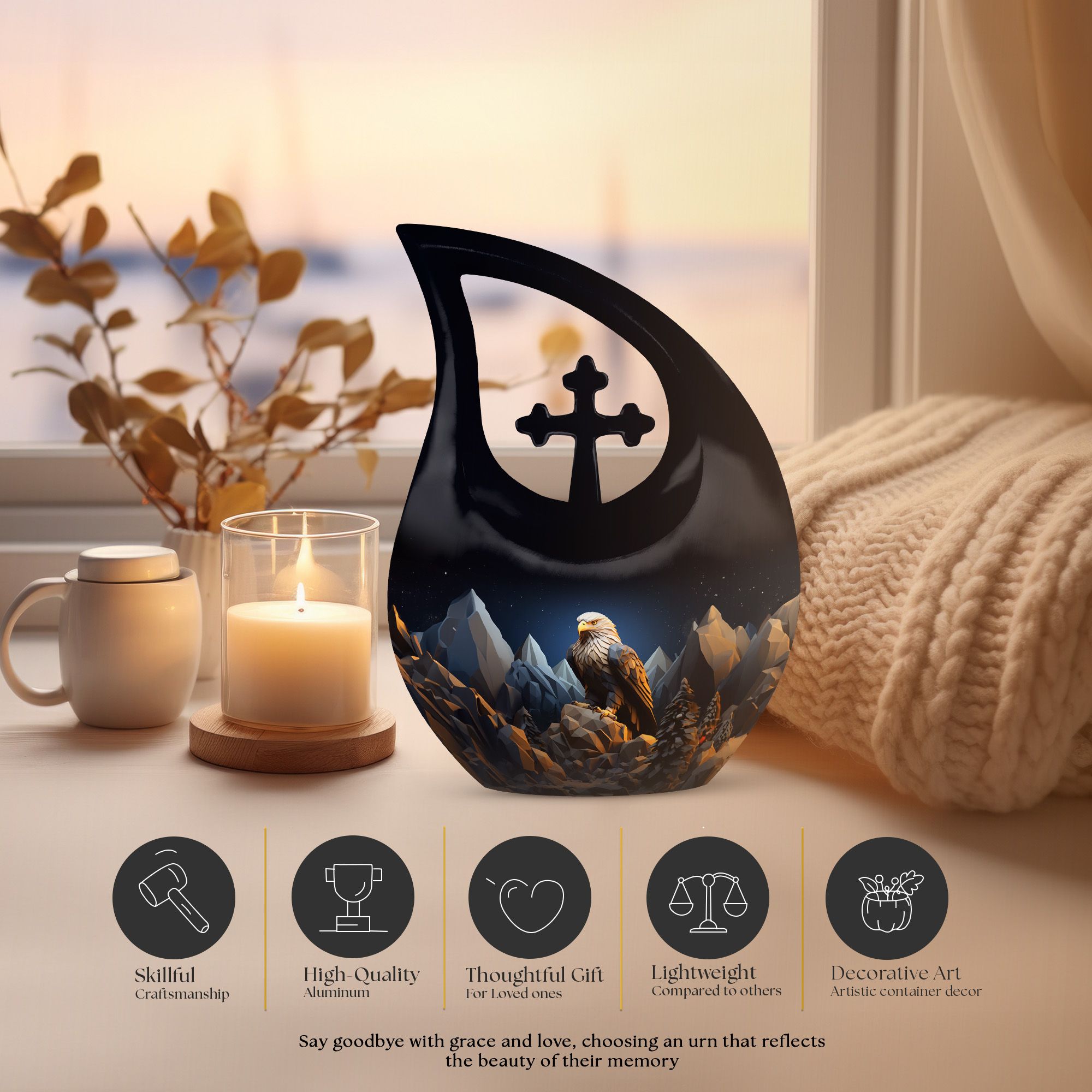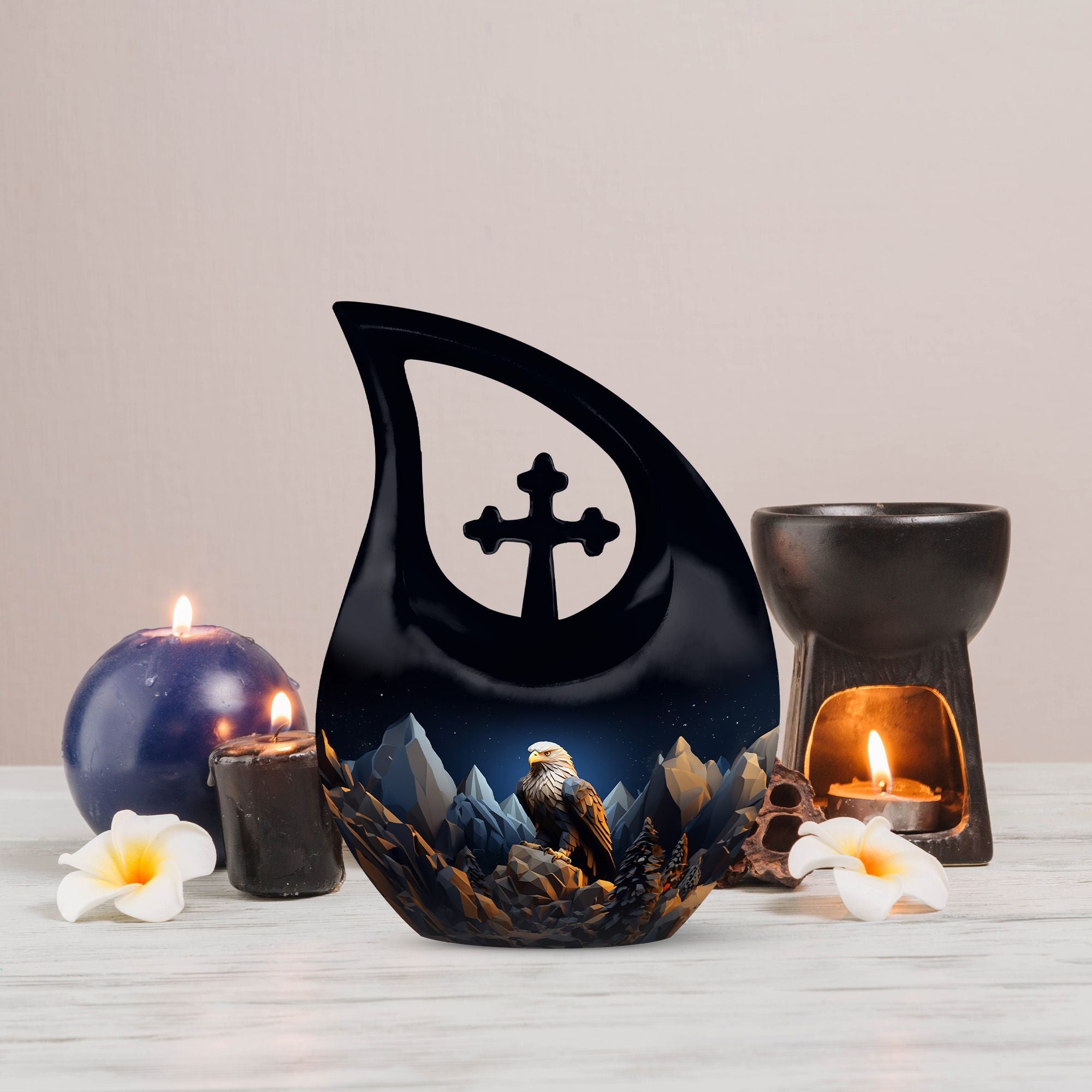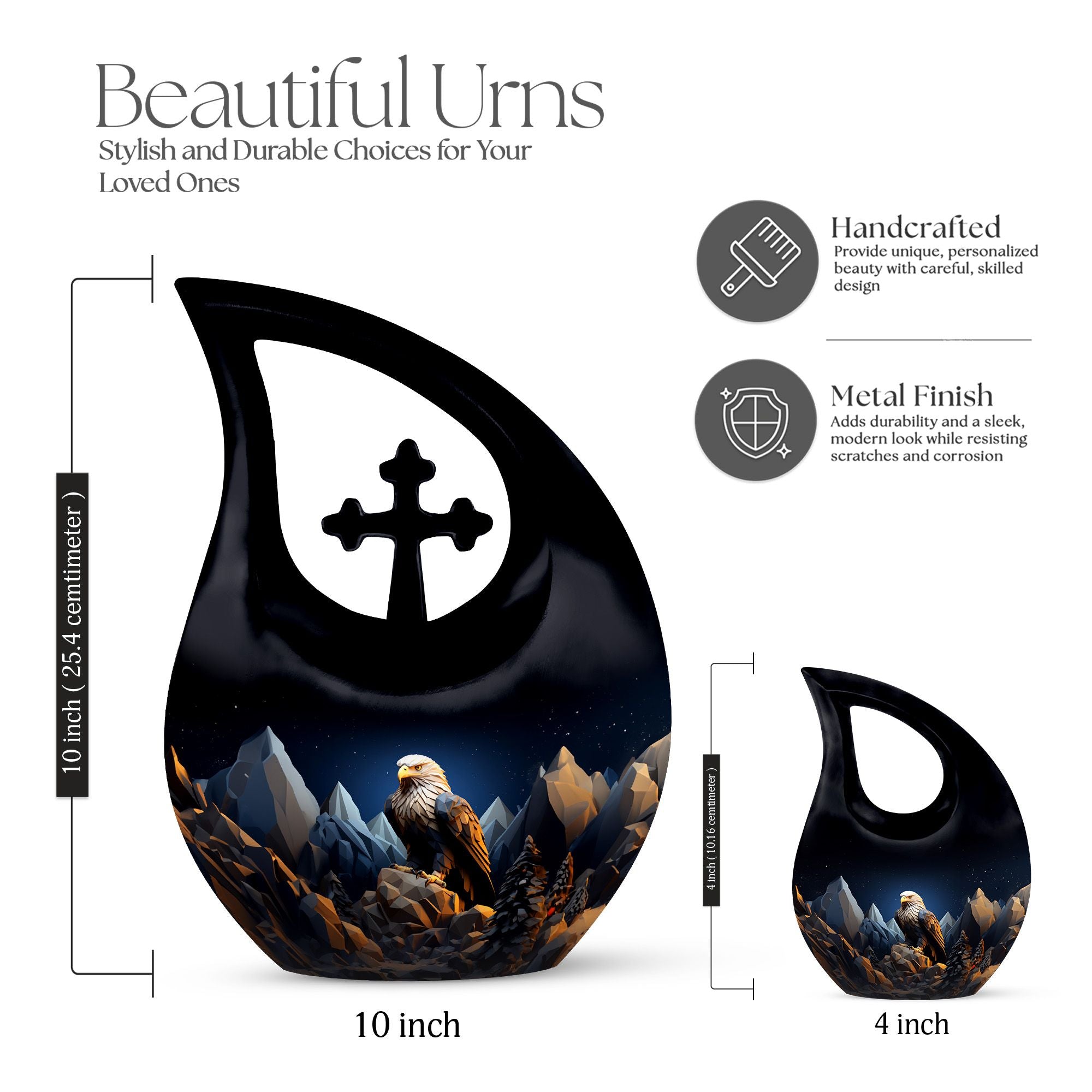 Honor a life of courage, wisdom, and strength with the Eagle Ruling Mountains Scenic Urn. This stunning memorial piece embodies the soaring spirit of an eagle above majestic peaks—an emblem of power, freedom, and peace. Designed with love and care, this urn for ashes adult male captures the essence of a life that ruled the heights with grace and purpose. Whether for a father, husband, or friend, it provides a dignified resting place for cherished memories.