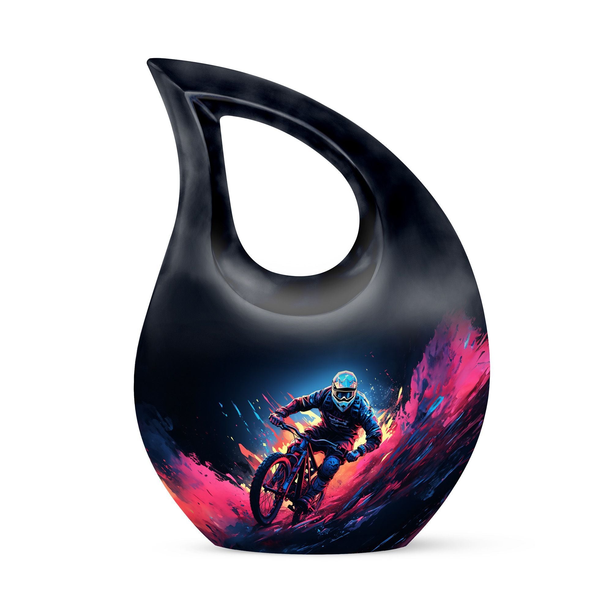 A meaningful, artistic, and adventure-inspired memorial, this mountain bike cremation urn honors your loved one with respect, beauty, and lasting remembrance.