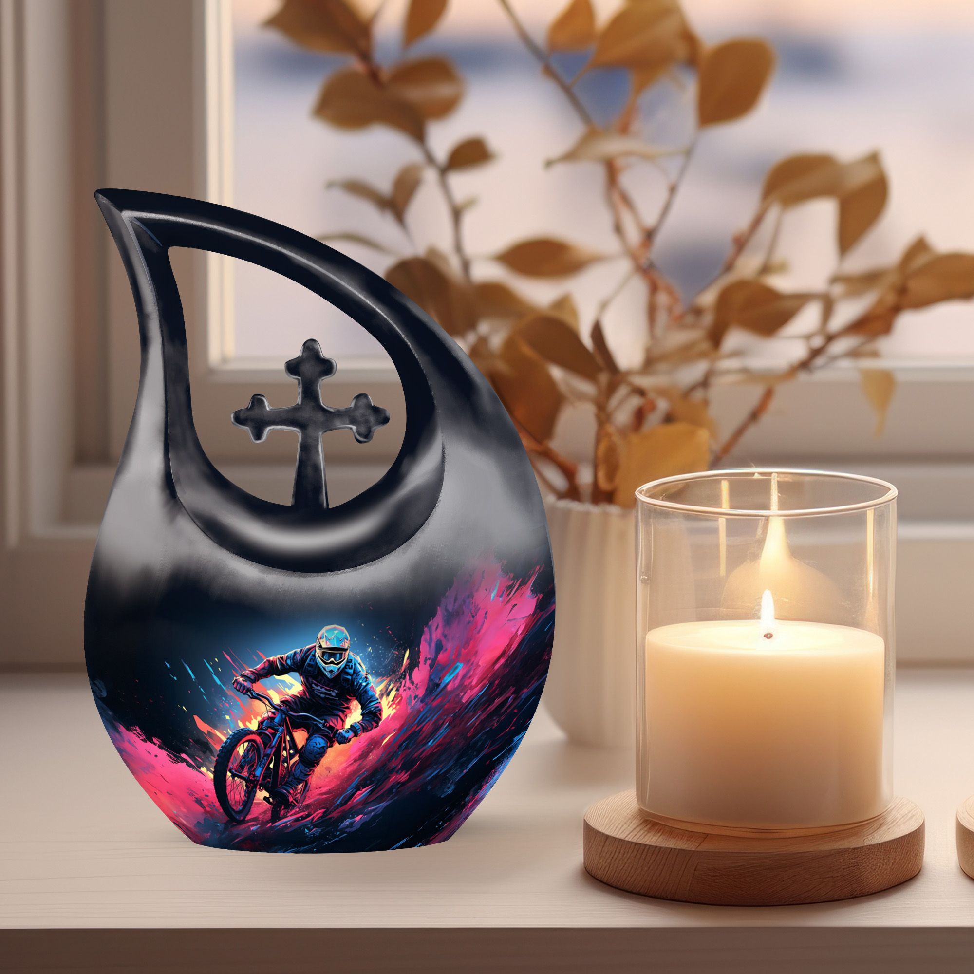 This Mountain Bike Cremation Urn for Ashes offers a heartfelt tribute to a loved one whose passion for riding, freedom, and the great outdoors shaped cherished memories. Designed for MTB enthusiasts, it provides a dignified and meaningful way to honor a life lived with adventure and courage. Families wishing to share remembrance can also pair this urn with mini keepsake urns for human ashes or mini urns for sharing ashes.