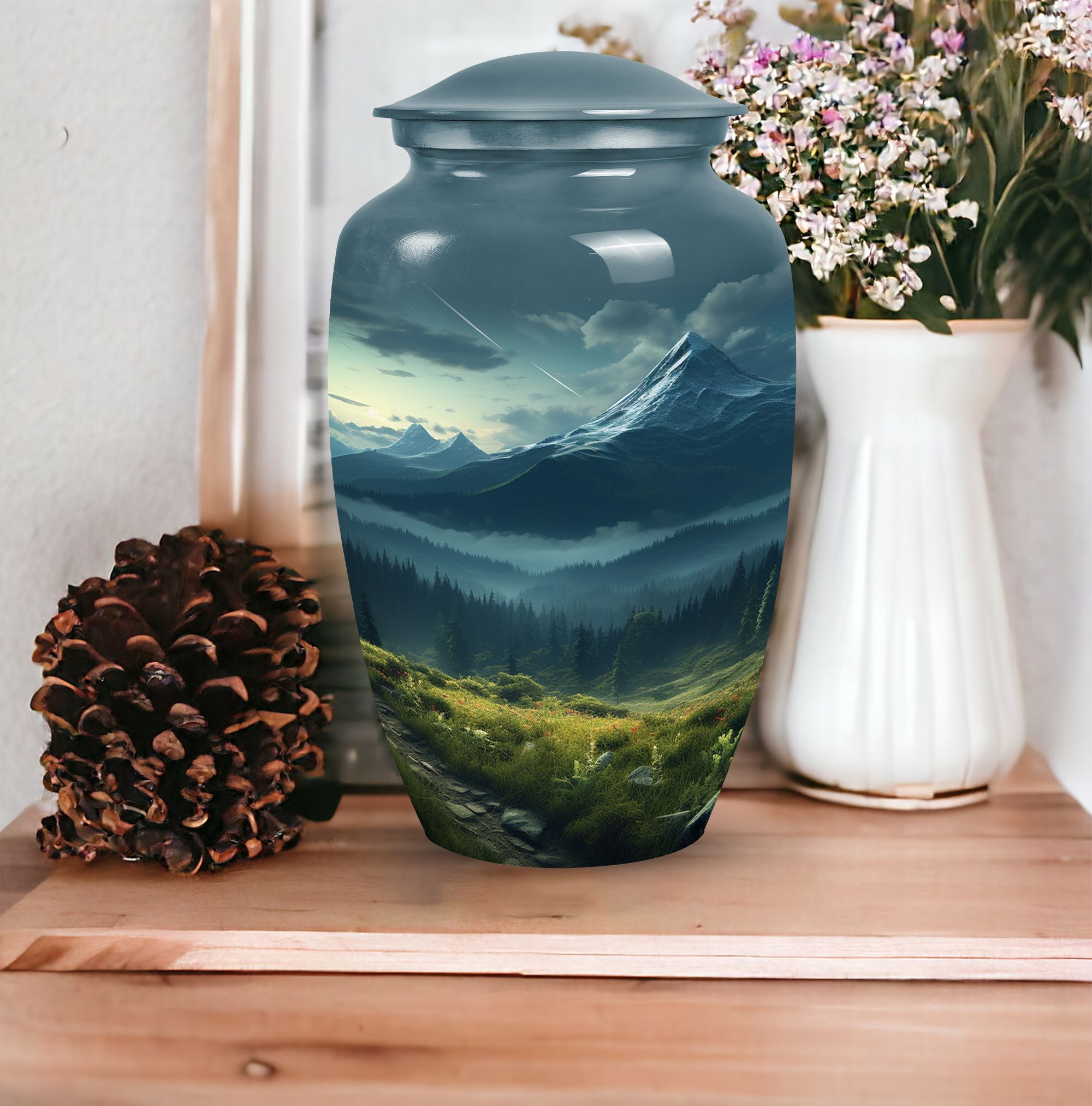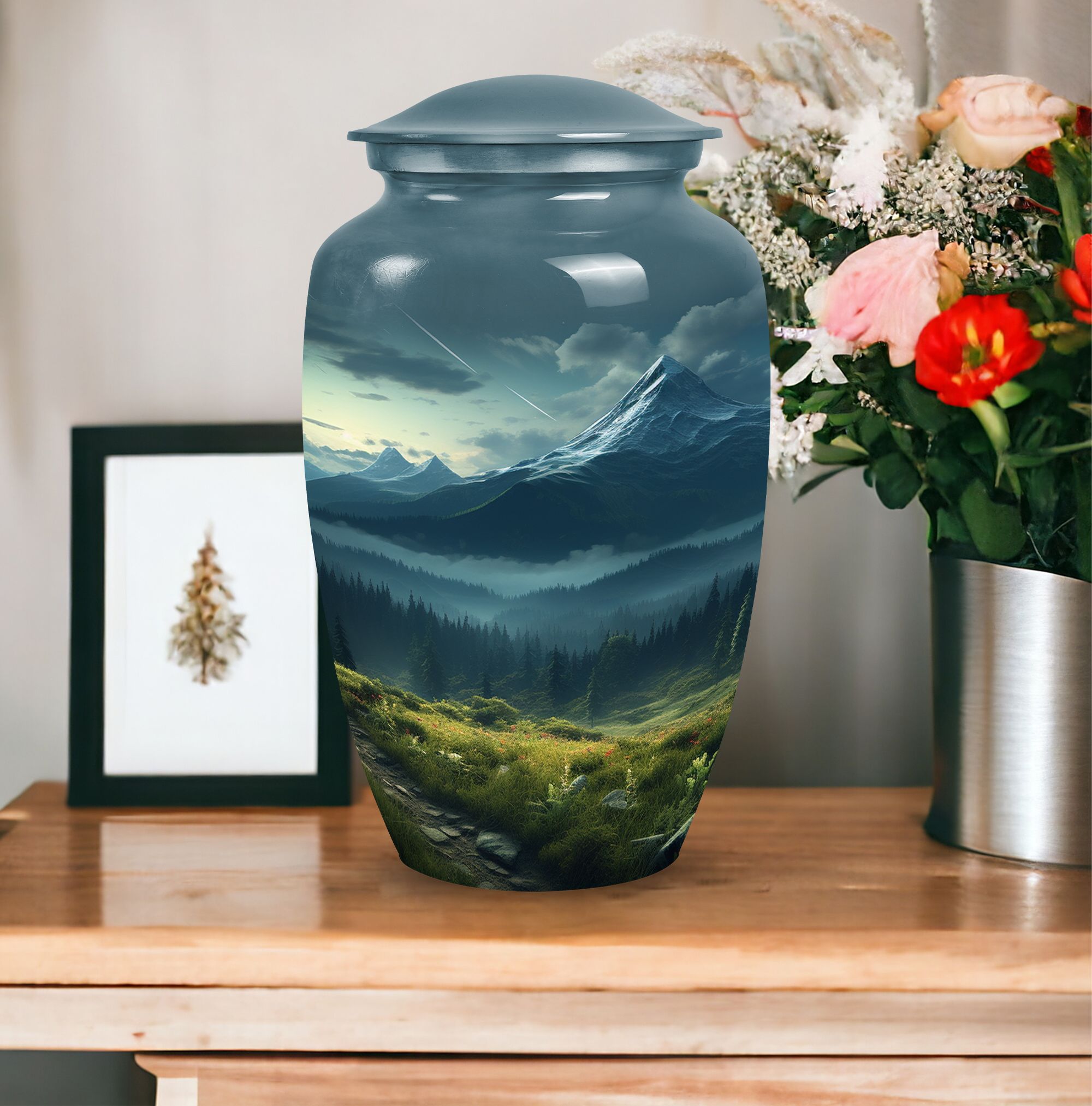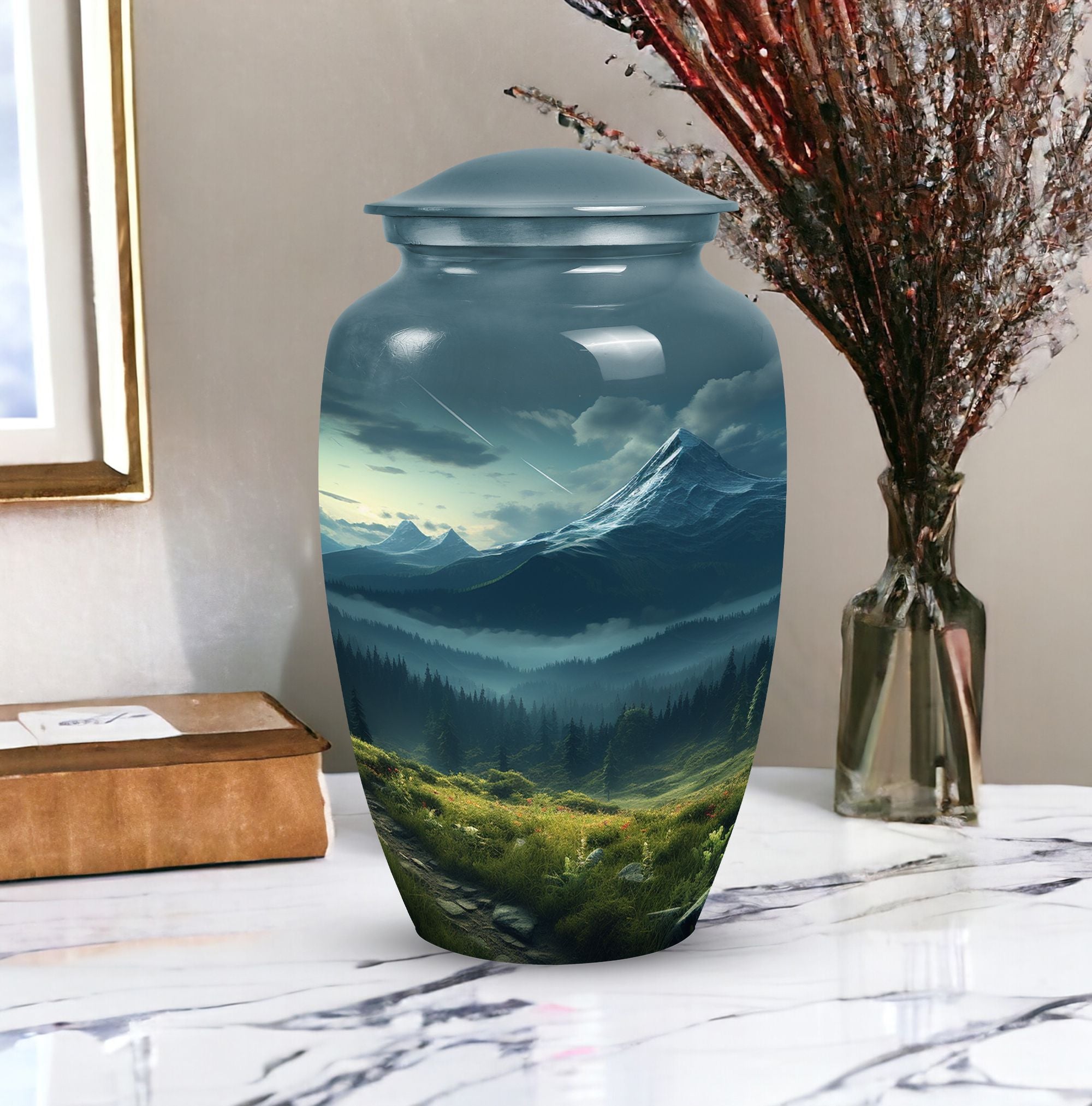 Capture the majesty of nature with our elegantly crafted Mountains Urn, created essentially for housing precious, small cremation keepsakes for ashes. This unique, artistic urn not only pays tribute to your dearly departed, but also commemorates their love for the great outdoors. Crafted with the intent of honoring adult male or female loved ones, our urn exhibits versatility, making it an ideal choice for anyone. Ingeniously designed to embody the grandeur of mighty mountains, our urn radiates tranquility and serenity, making it a quintessential choice among urns for ashes. Contrasting the morbidity often associated with burial urns, our Mountains Urn evokes a sense of life's continuous journey, manifesting as a truly comforting token for memorial ceremonies. Cherish dear memories and keep your loved ones close with this soulful urn, providing an eternal rest to your beloved while embracing an aesthetic appeal. A fitting homage, the Mountains Urn personifies a lasting remembrance.