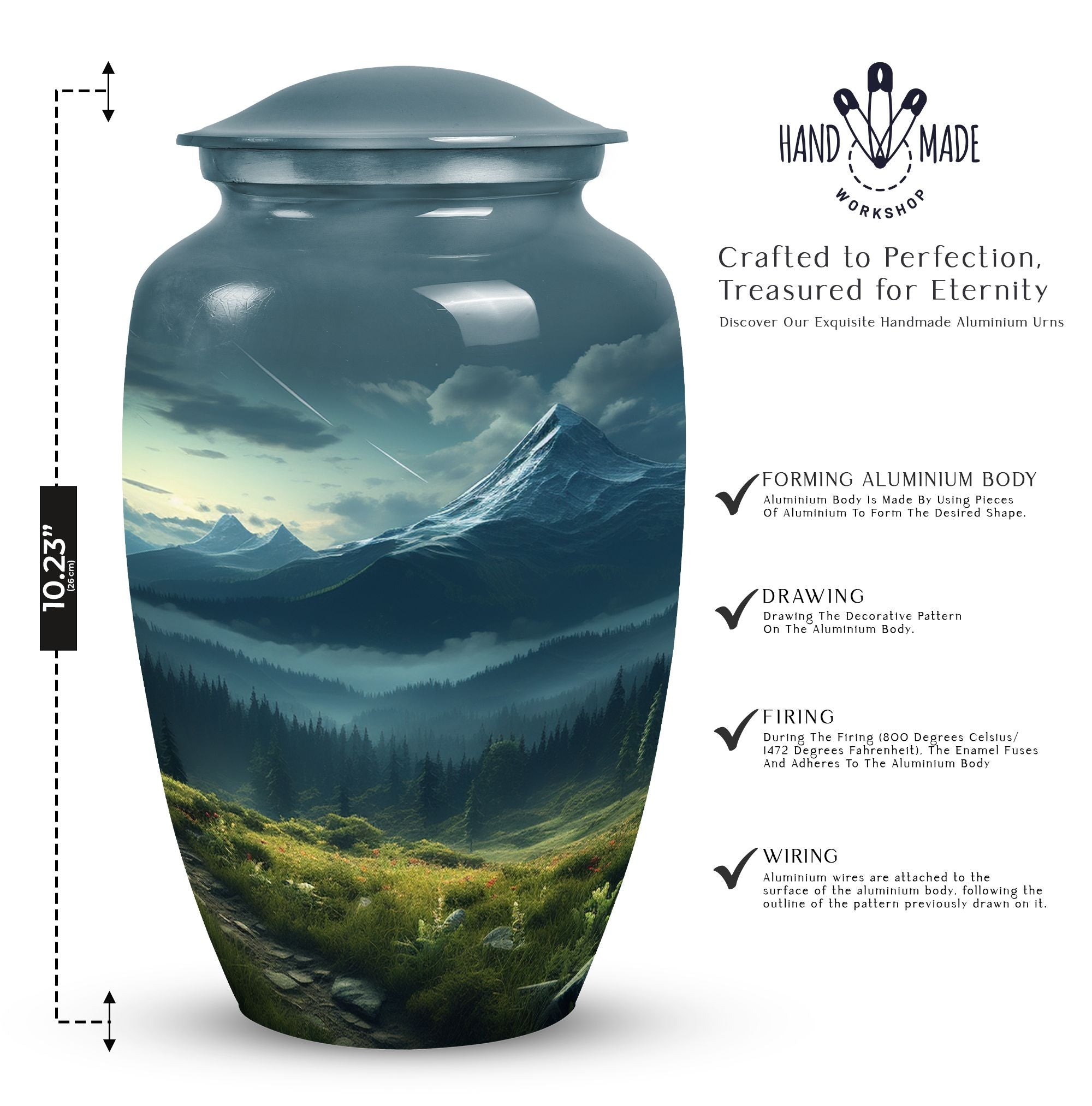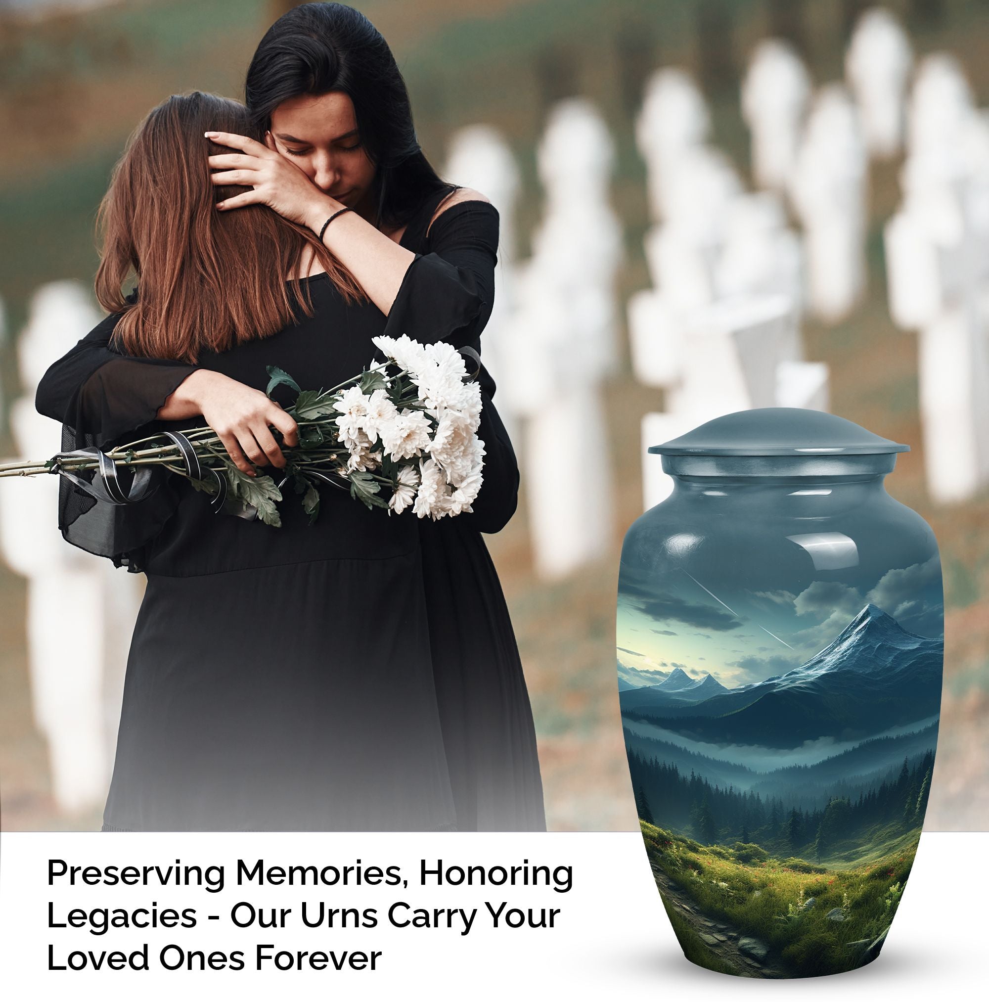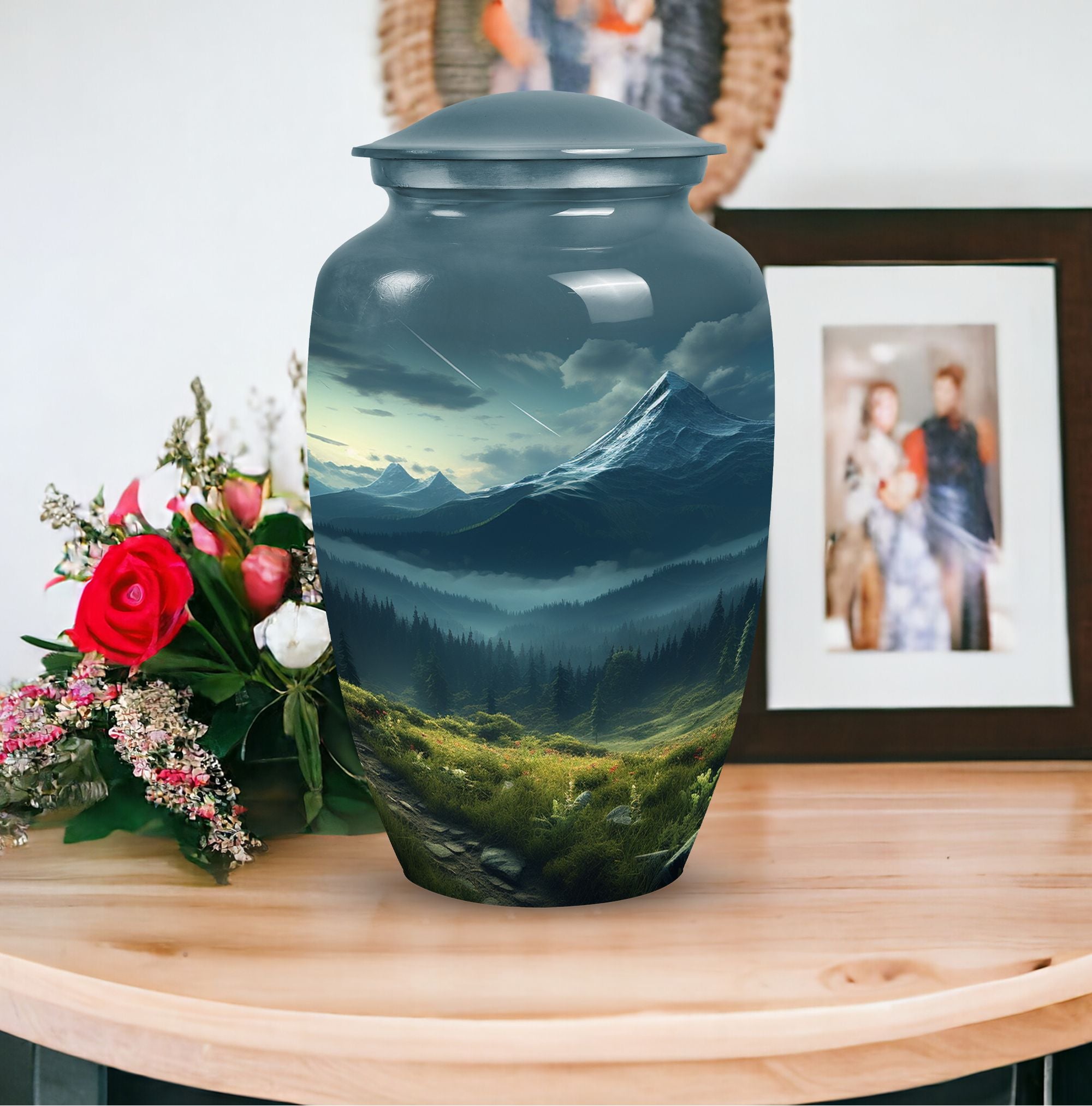 Capture the majesty of nature with our elegantly crafted Mountains Urn, created essentially for housing precious, small cremation keepsakes for ashes. This unique, artistic urn not only pays tribute to your dearly departed, but also commemorates their love for the great outdoors. Crafted with the intent of honoring adult male or female loved ones, our urn exhibits versatility, making it an ideal choice for anyone. Ingeniously designed to embody the grandeur of mighty mountains, our urn radiates tranquility and serenity, making it a quintessential choice among urns for ashes. Contrasting the morbidity often associated with burial urns, our Mountains Urn evokes a sense of life's continuous journey, manifesting as a truly comforting token for memorial ceremonies. Cherish dear memories and keep your loved ones close with this soulful urn, providing an eternal rest to your beloved while embracing an aesthetic appeal. A fitting homage, the Mountains Urn personifies a lasting remembrance.