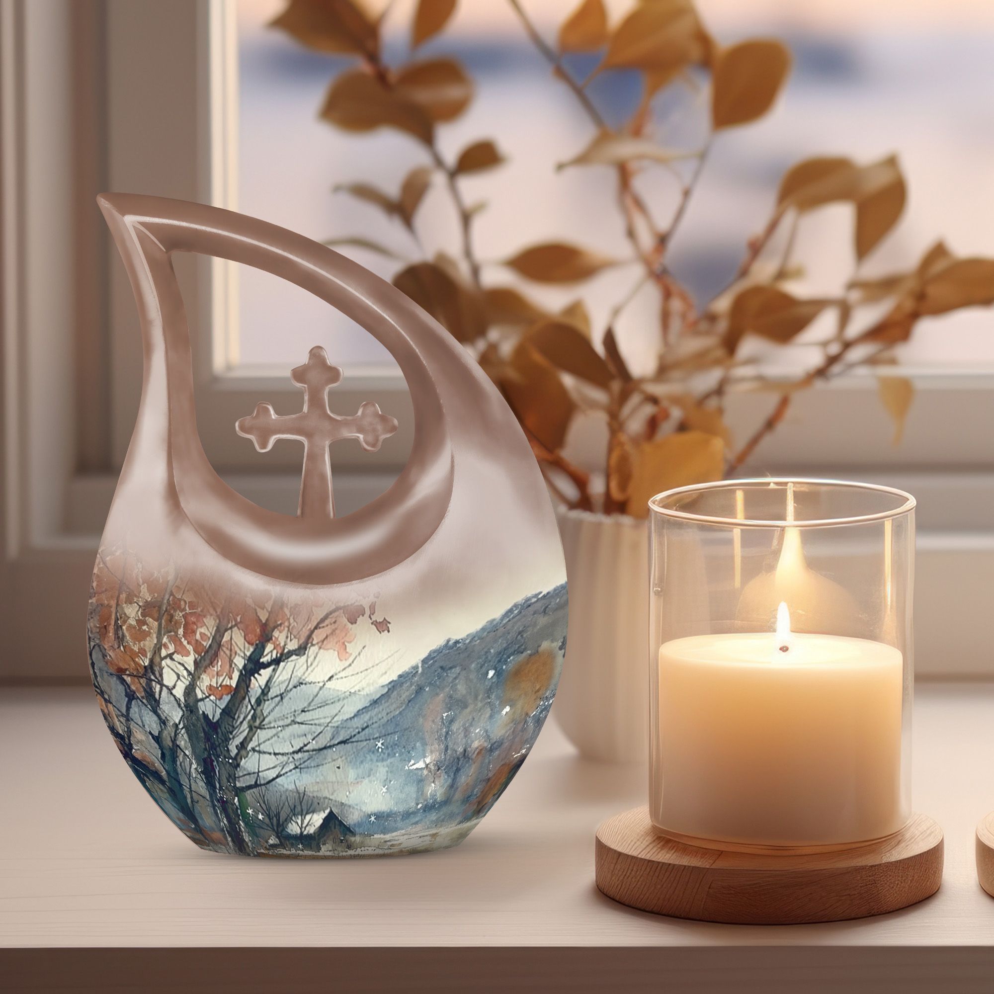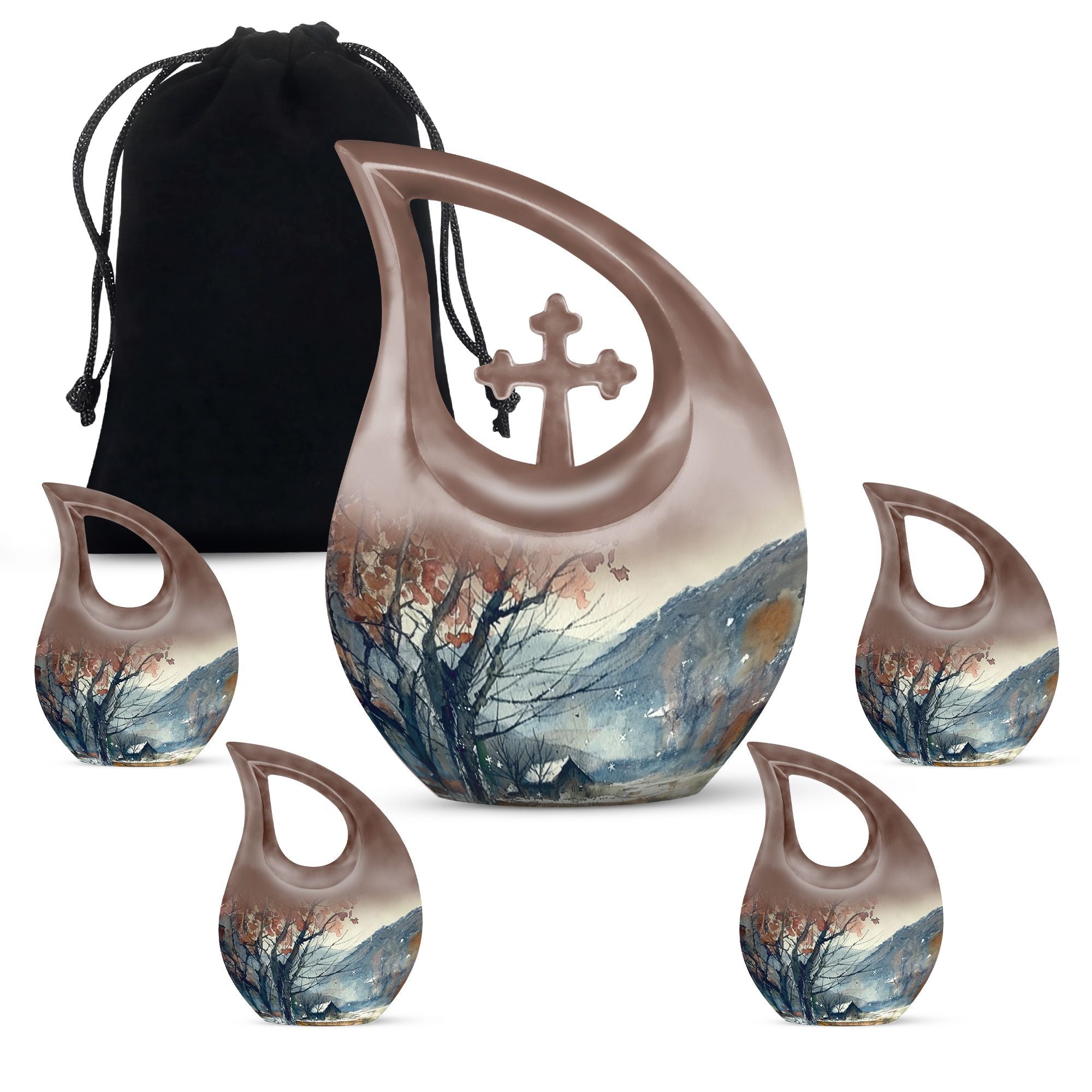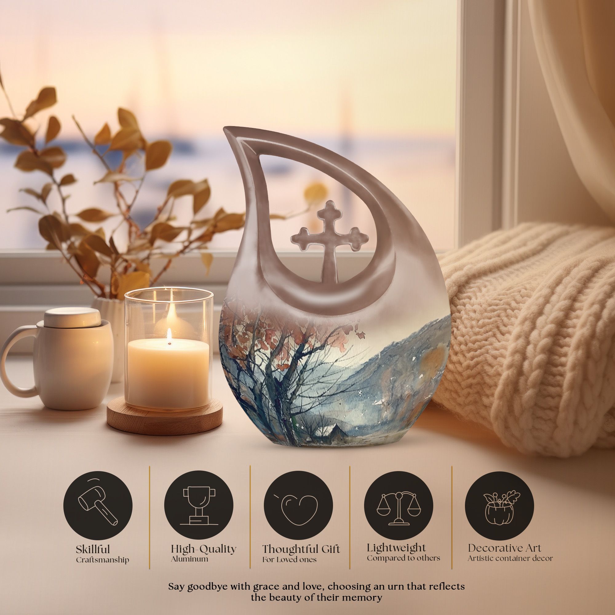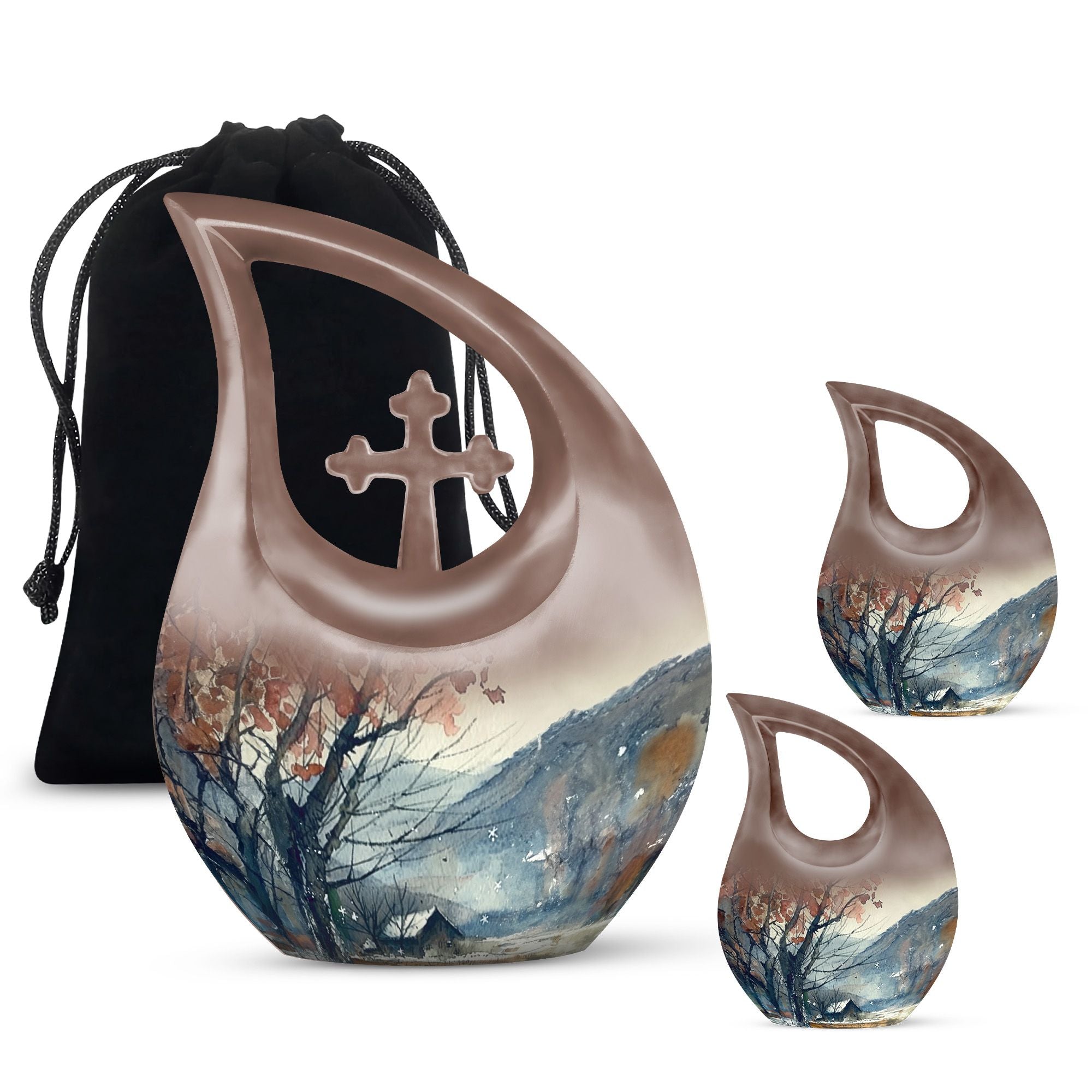 Handcrafted from durable aluminium, this urn reflects timeless craftsmanship and reliability. The mountain landscape symbolizes stability, peace, and eternal love, making it a meaningful large adult urn for remembrance. With generous capacity, it functions confidently as an urn large adult and an urn human ashes large, ideal for families choosing adult urns for human ashes large or large adult urns for human ashes. Its balanced form and smooth finish also place it among trusted large human urns and large urns human ashes for memorial display or burial.
