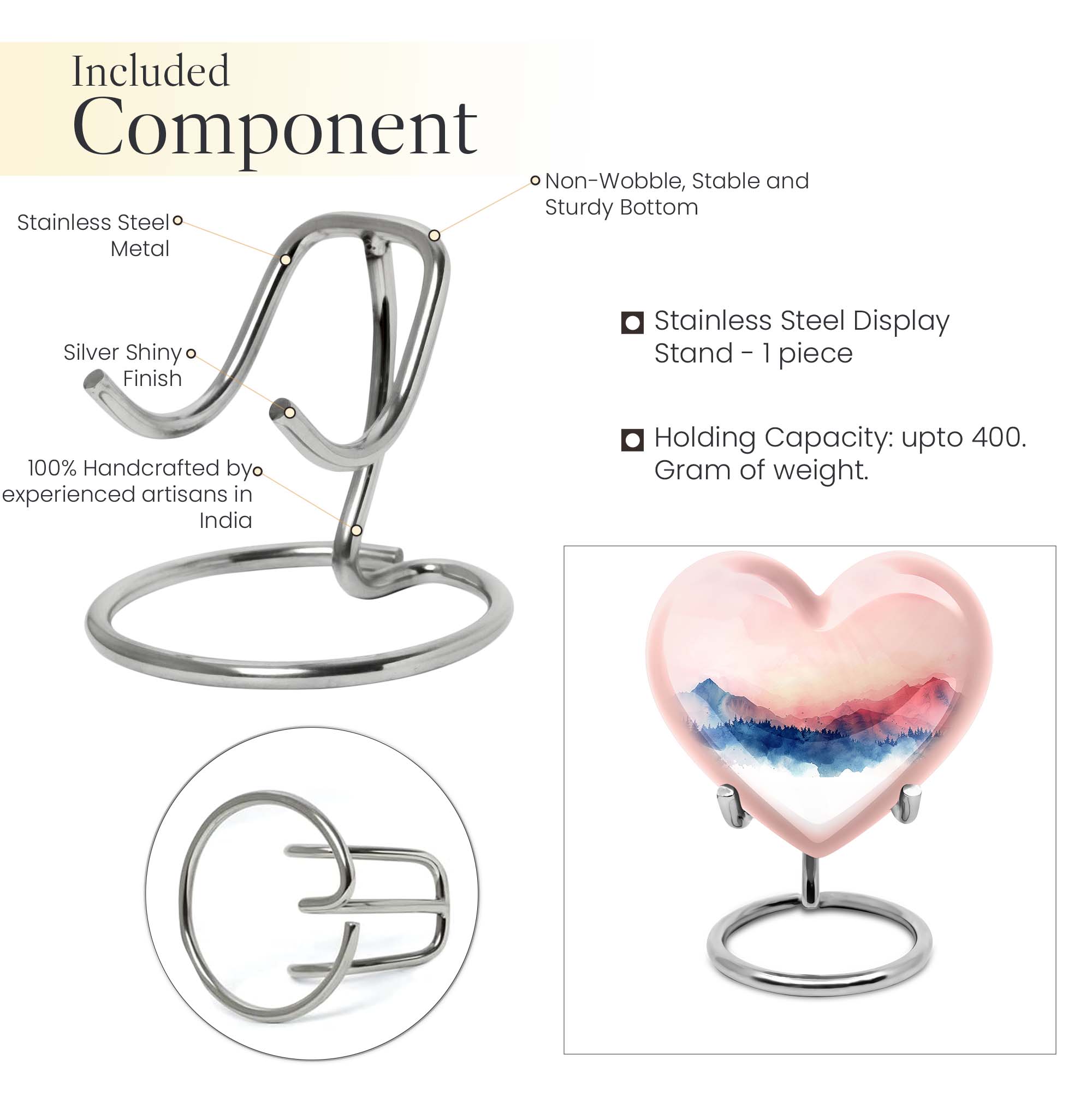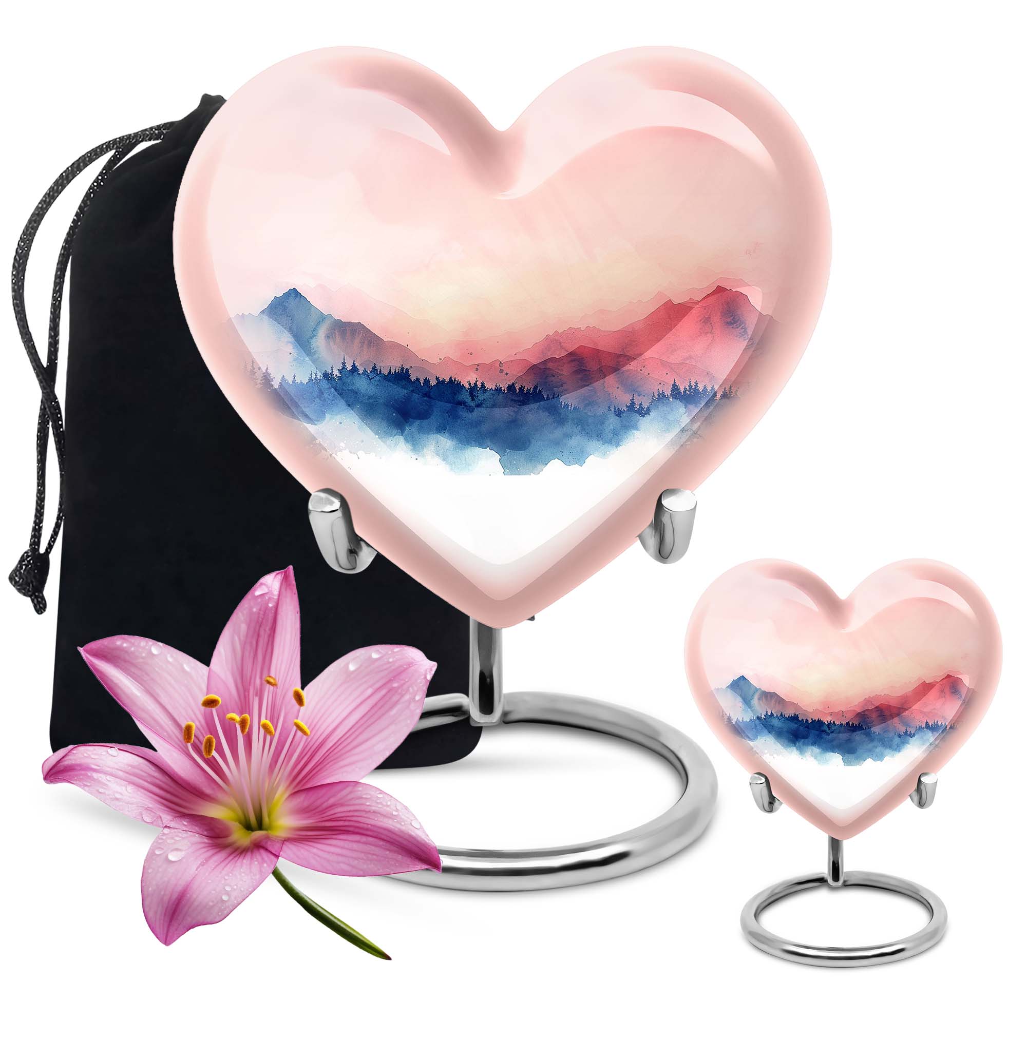 Ensure your loved one's memory stays close to your heart with our distinctive 10-inch Heart Urn, a thoughtful consignment for those cherished cremains. Comprising our large urn type, this burial urn offers a generous capacity of 200 cubic inches, and at 3.3 pounds, it's substantial yet manageable. Our urn subtly catches the eye with an abstract theme, delivering a timeless elegance without detracting from the primary focus - your loved one. It's made from high-grade aluminium, a material known for its resilience and longevity. For an added personal touch, make it uniquely yours by having names intricately engraved on it. Rest assured, your valued ashes will be safely contained within the urn even when mobile, thanks to the included velvet pouch. Ideal for adult ashes, this heart urn epitomizes the phrase 'memorial urns'. For those seeking cremation urns for human ashes men, funeral large, or adult urn use, our product makes a heartwarming choice.