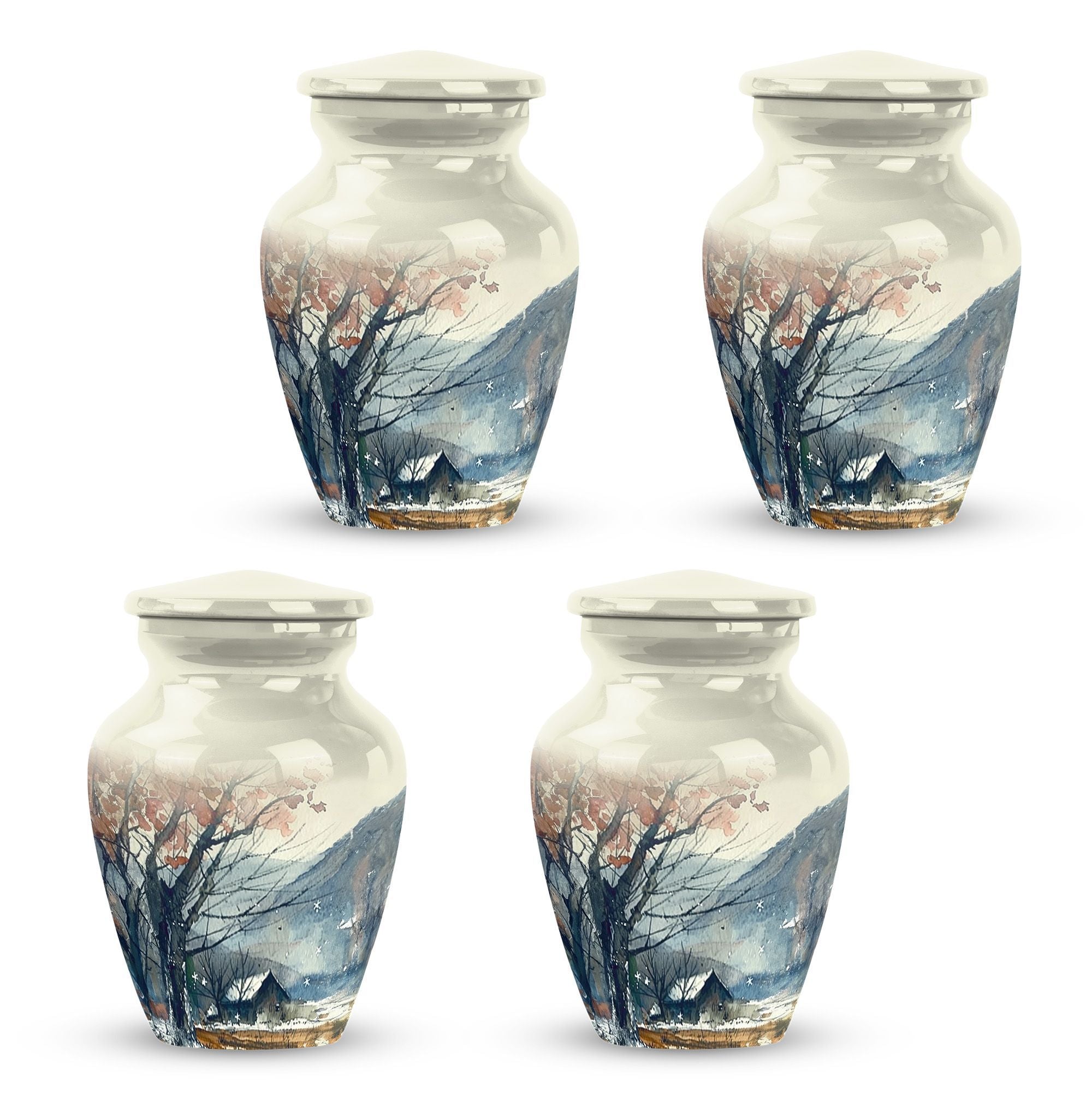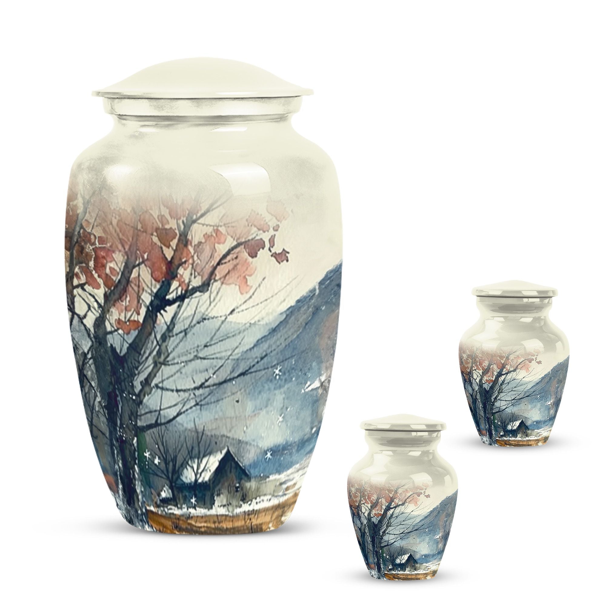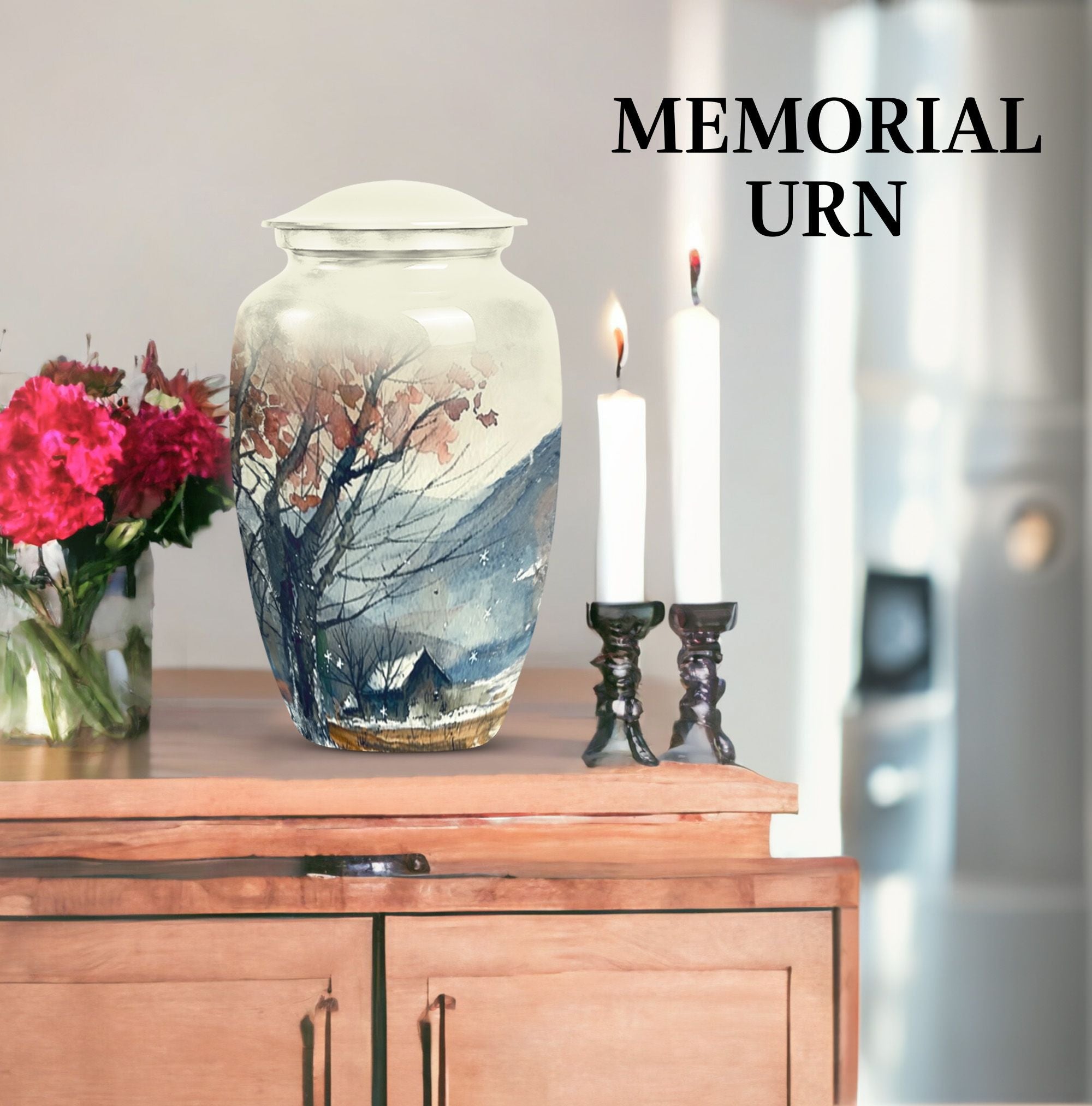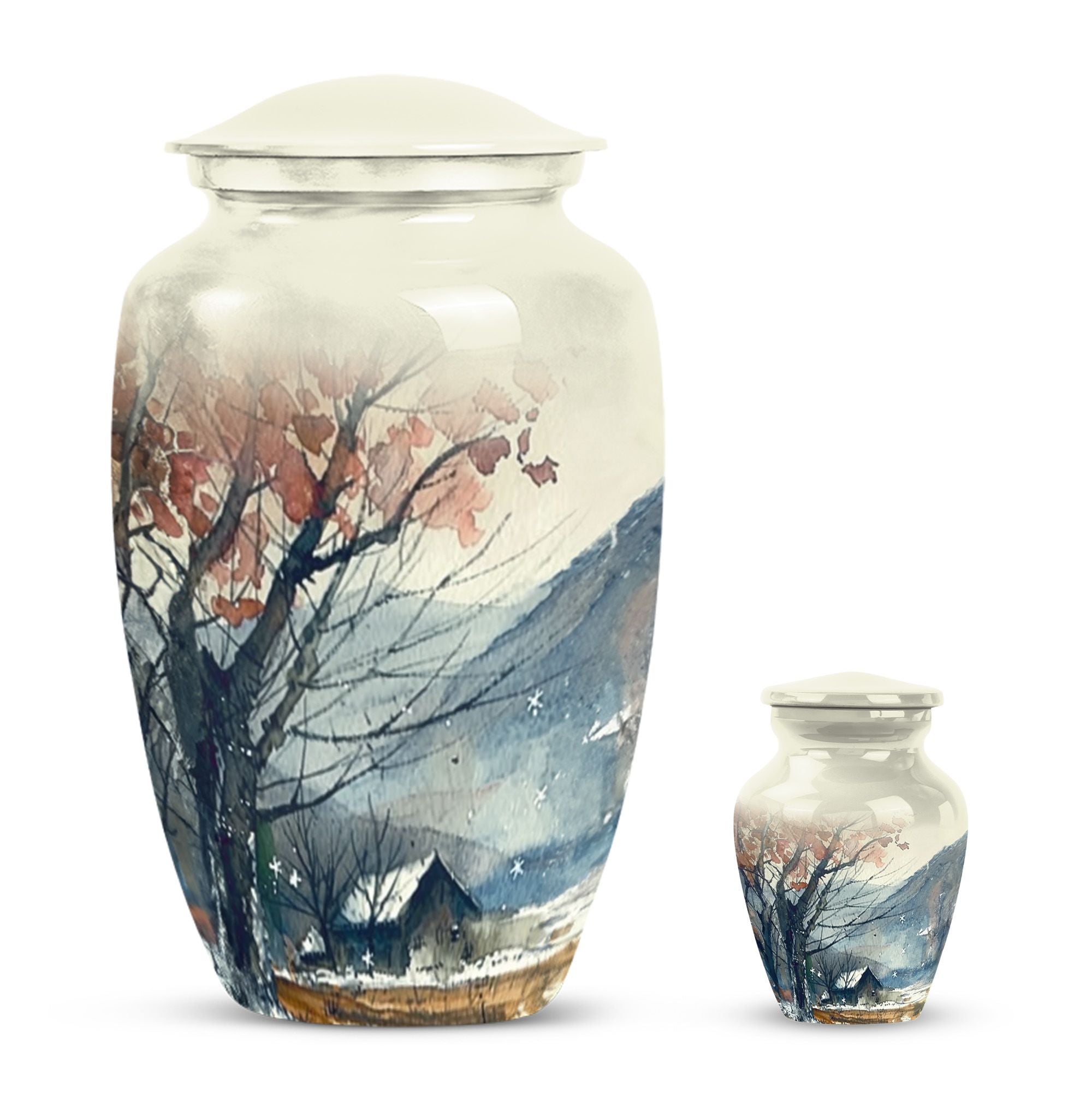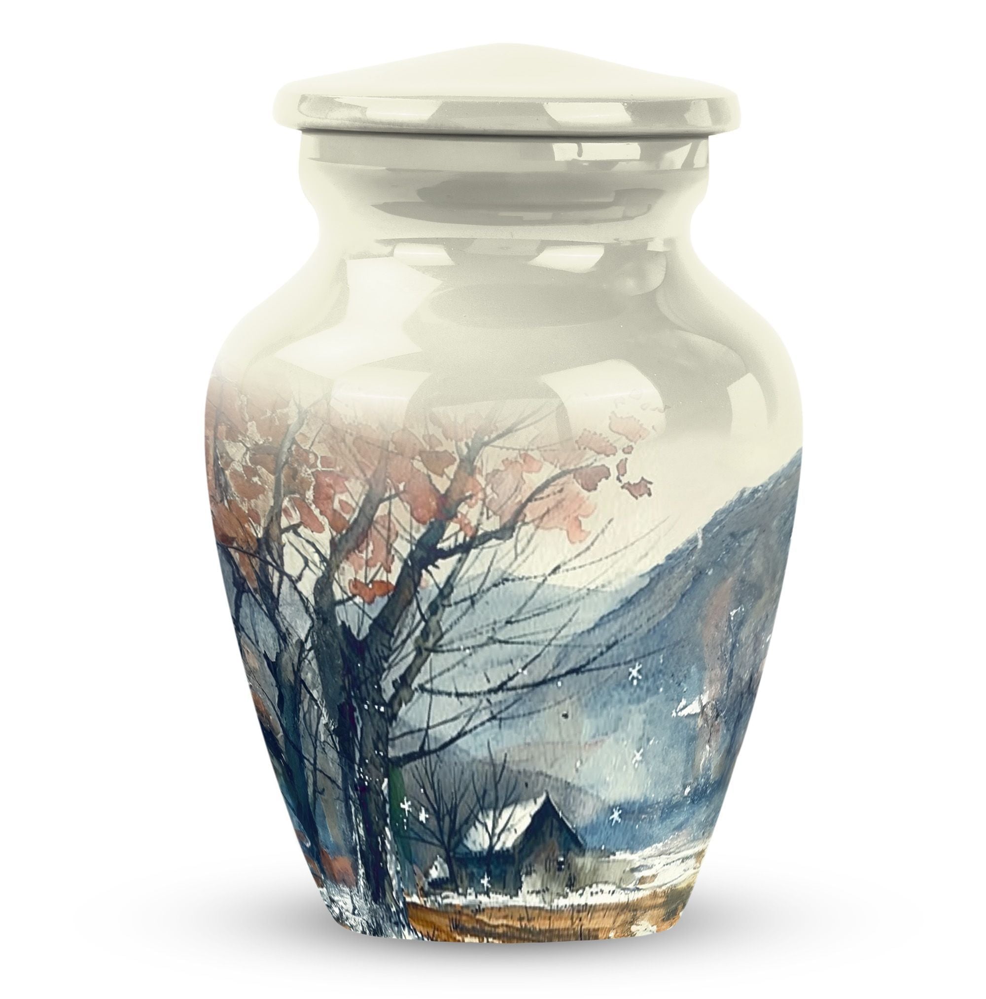 Experience a profound sense of peace with our meticulously crafted Mountains Urn. Made from premium quality aluminium, this urn is designed to hold up to 200 cubic inches of ashes, making it perfect for adults. This abstract-themed, large urn comes with the potential for customization - allowing you to personalize it with engraved names for that sentimental element. The classic 10-inch high urn is not just a burial funeral cremation urn, it also serves a decorative purpose, blending gracefully with your home decor. Weighing just 3.3 pounds, this urn isn't cumbersome, and its dimensions ensure it fits perfectly in various spaces. Each purchase includes a velvet pouch to securely hold the ashes. Whether you’re searching for 'cremation urns for human ashes adult male,' 'urn human ash urn adult ash woman,' or 'man metal cremation urn', our Mountains Urn is an ideal choice, carefully bridging the gap between memorial urns and aesthetics.
