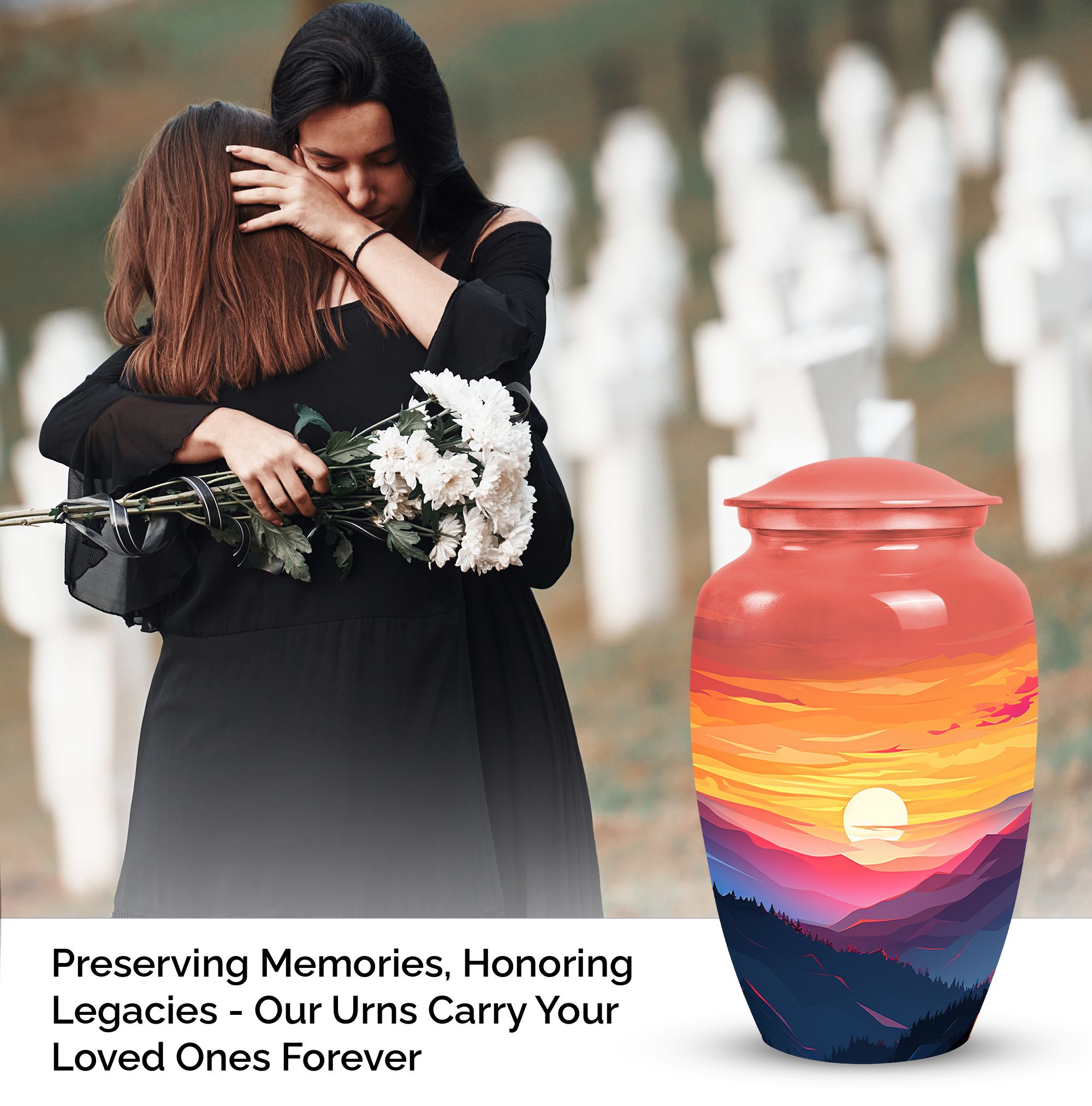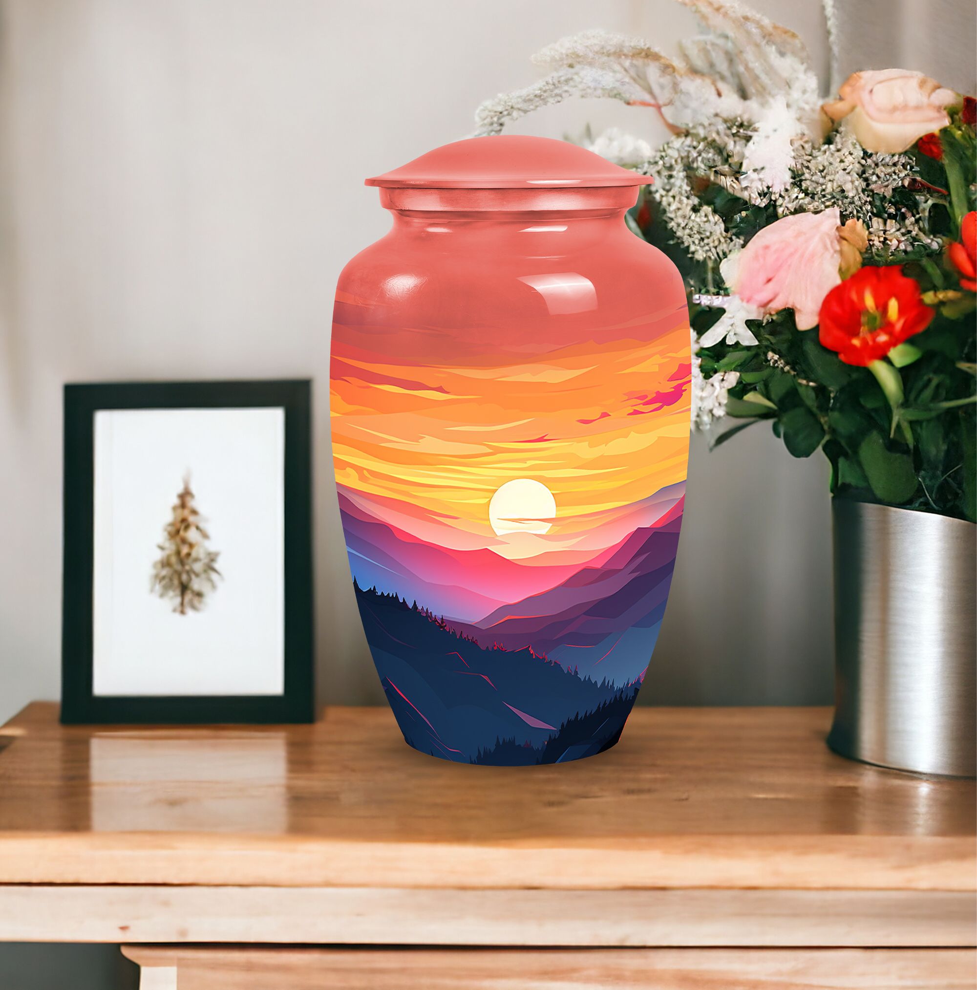 Experience the compassion and comfort you deserve during your time of need with our 'Mountains Urns For Ashes'. Capturing the majesty of a serene mountain range, this cremation urn serves as a respectful and affectionate memorial for your beloved. Distinguished from other funeral urns for human ashes adult, our box provides a peaceful final resting place with its intricate design. Constructed to stand the test of time, these large urns for human ashes take on an impressive form that suits the adult male. Each piece is created to inspire reflection and honor, giving it a unique position among memorial large urns for ashes. Feel close to your dearly departed every time you glance at the grandeur of the mountains. With this cremation urn, you keep their memory alive and right within the landscapes of your heart.