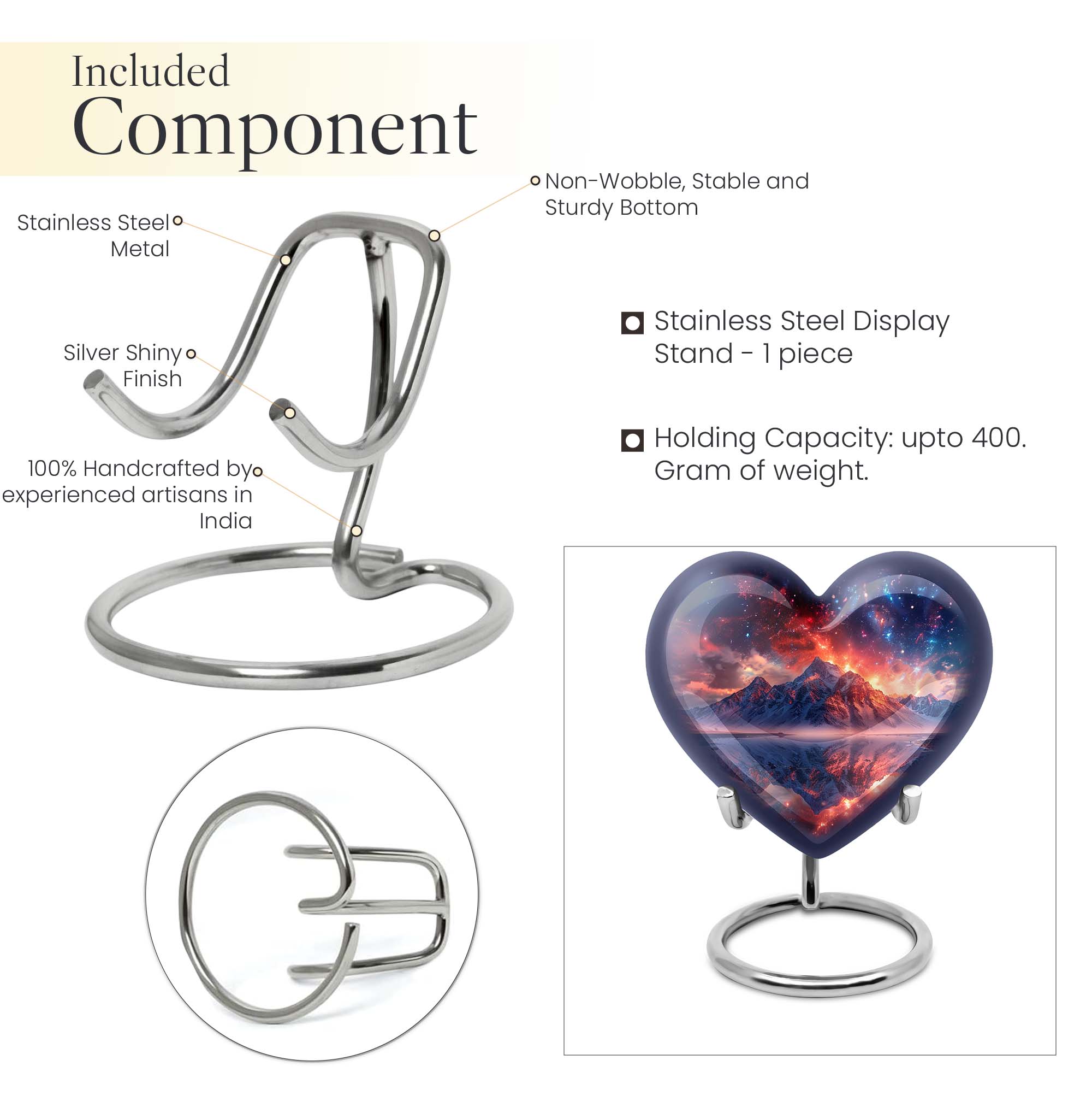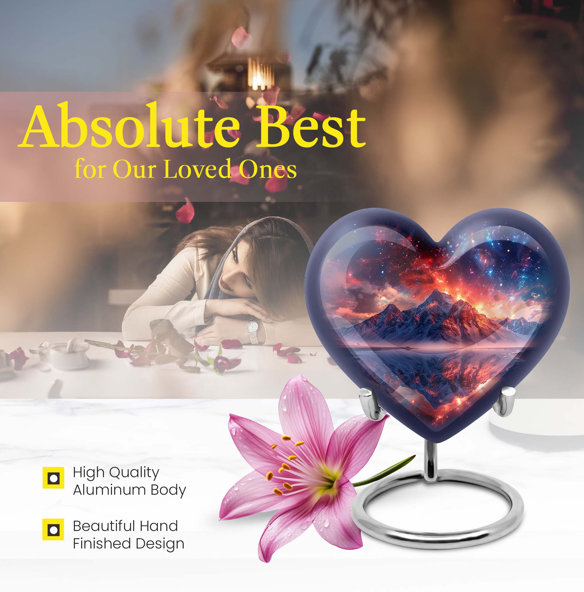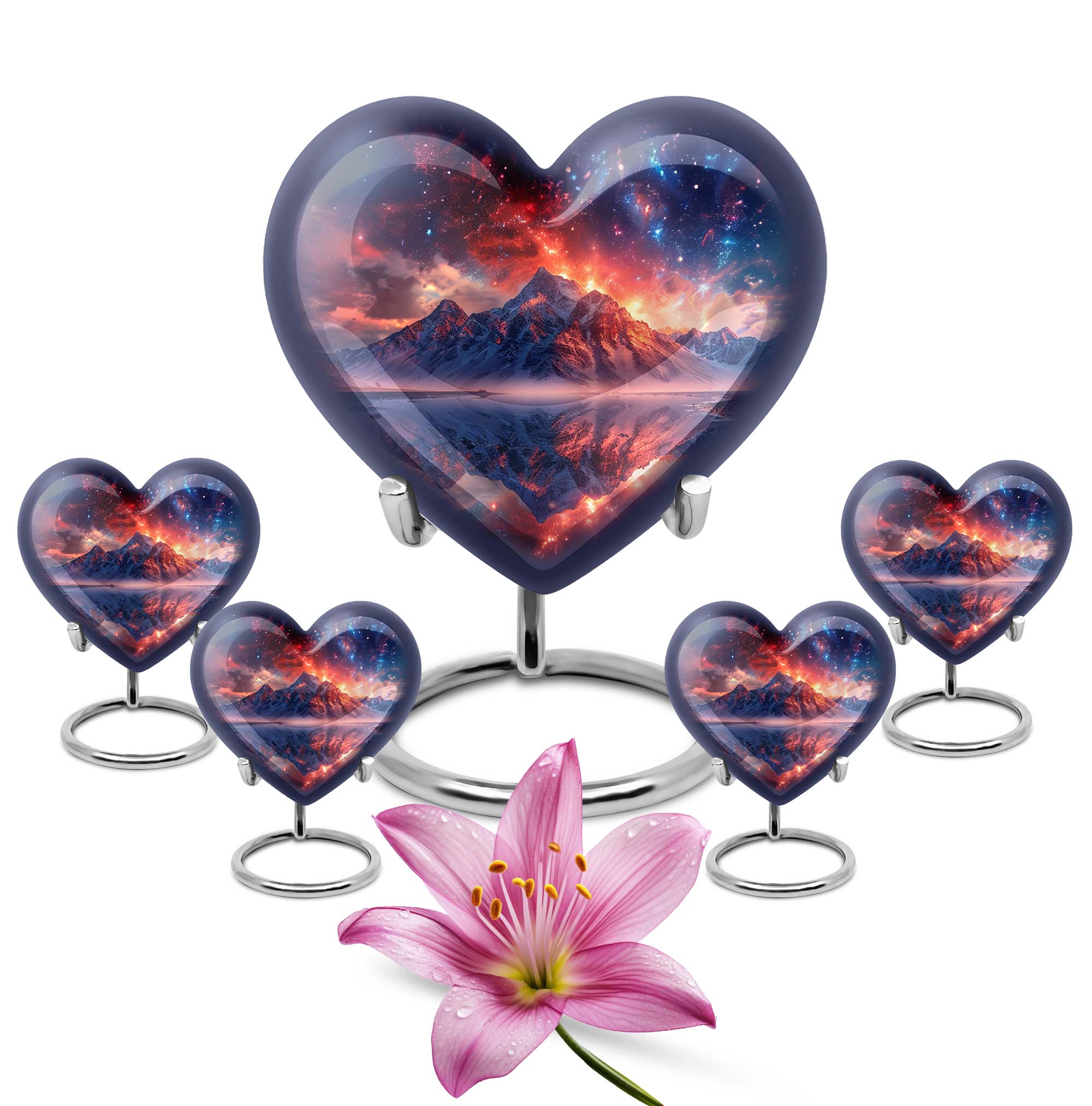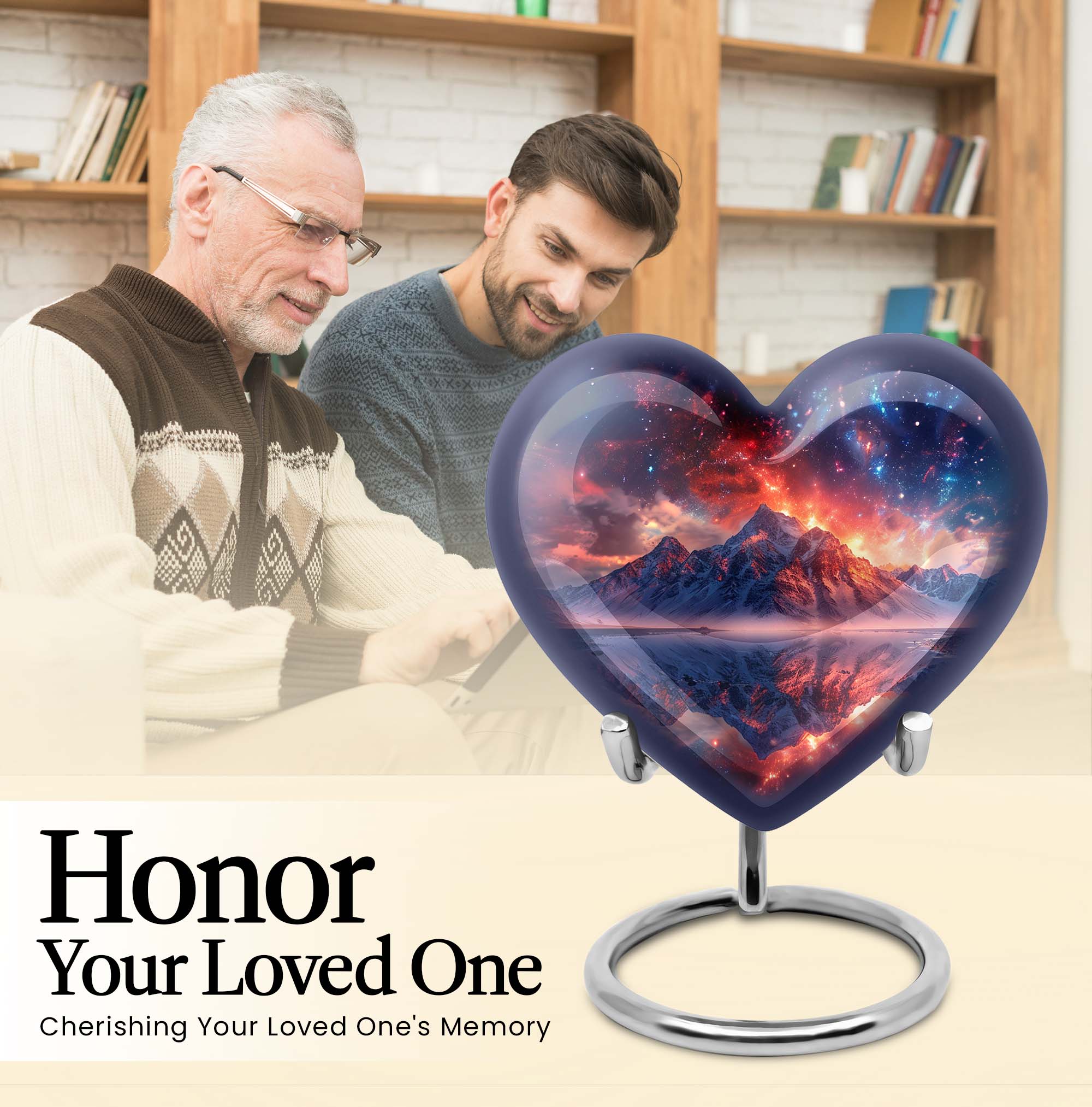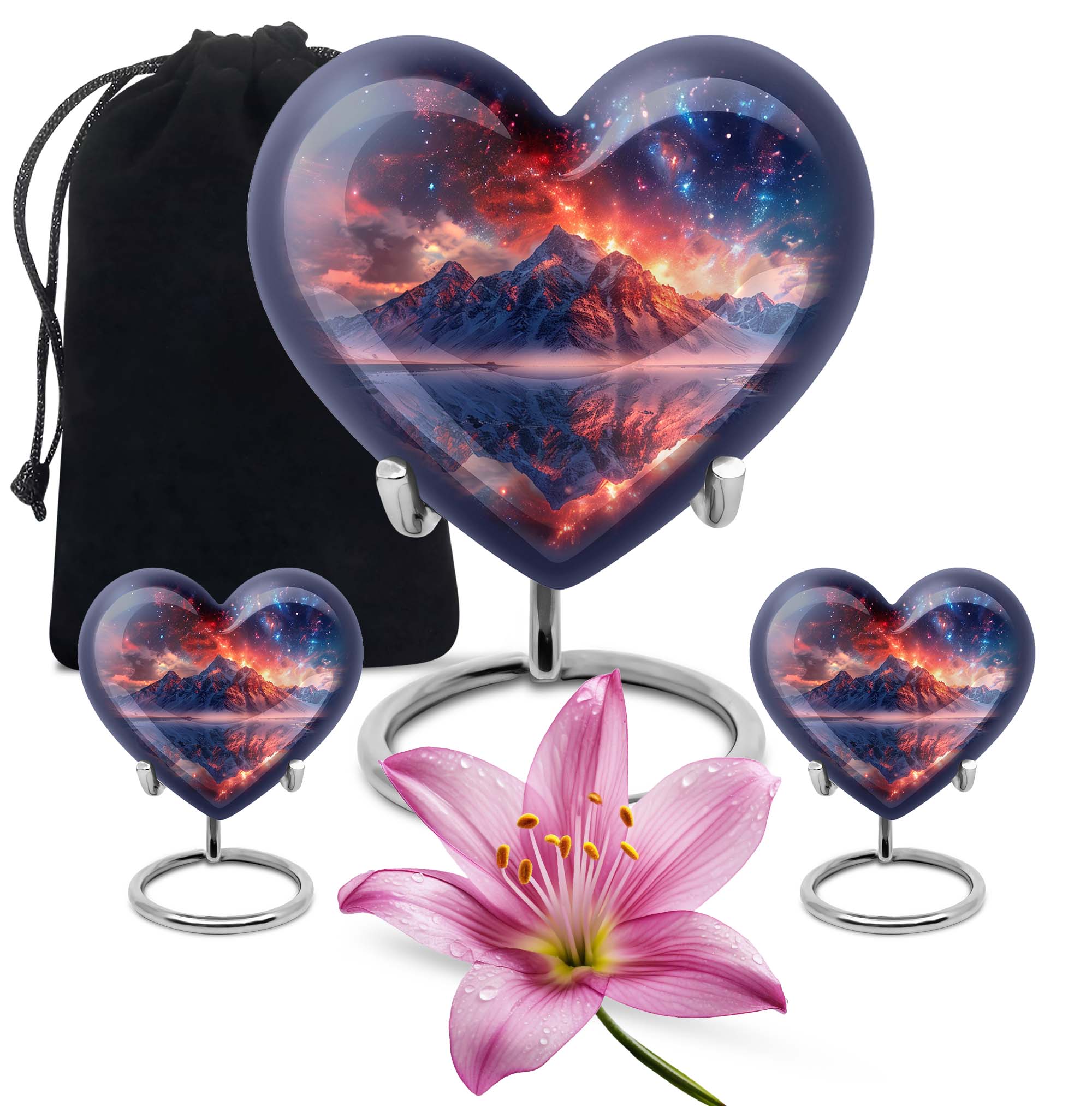 Preserve the memory of your loved ones with our beautifully crafted 10 Inch Heart Urn. Fashioned from quality Aluminium, this 'mountain urn' is a perfect memorial urn that displays the love and respect you have for the departed soul. Beyond simply a burial ash urn for humans, it's a symbol of reverence and everlasting bonding. The urn is sizeable with 200 cubic inches capacity, perfect for storing adult cremation ashes. Amid its abstract theme, lies a unique distinctiveness, setting it apart from the usual urns for adult cremation ashes. We understand the need for personal sincerity, and thus, offer you an option to customize this large urn with engraved names. The package includes a velvet pouch designed for secure containment of ashes. Weighing 3.3 pounds and 10 inches in height, it’s a tangible size, yet lightweight for mobility. Perfectly suited for both adult female ashes and urn human ash adult male. Break from the norm and celebrate in memoriam with this unique urn!
