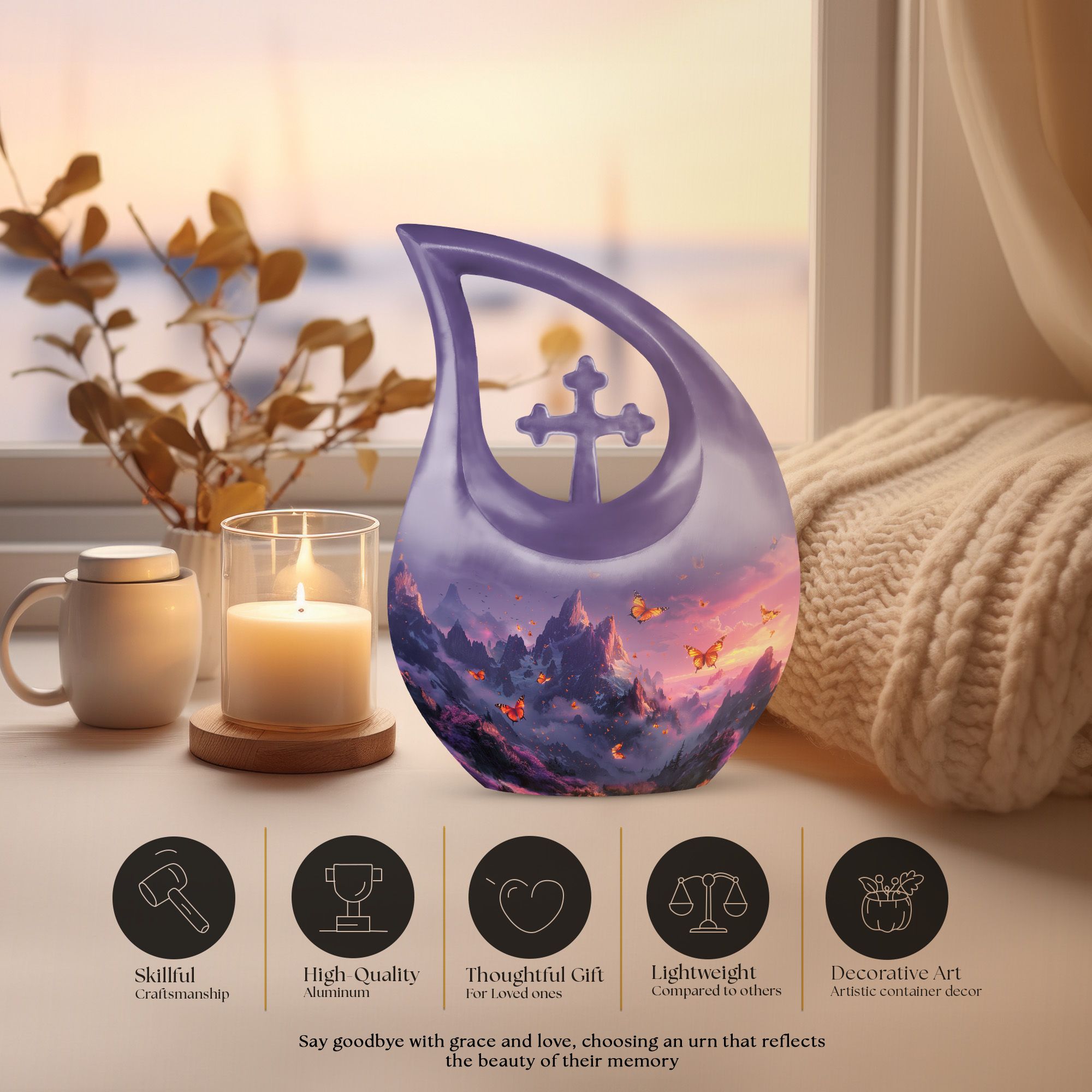 The Purple Mountain Valley Urn for Ashes – Butterfly Valley Cremation Ashes Urn is a graceful tribute designed to celebrate the beauty and tranquility of everlasting love. Inspired by peaceful mountain sunsets and the gentle flight of butterflies, this cremation urn for ashes serves as a comforting reminder that your loved one’s spirit continues to soar. Perfect for both men and women, it’s a timeless choice among cremation urns for ashes that honors life with serenity and dignity.