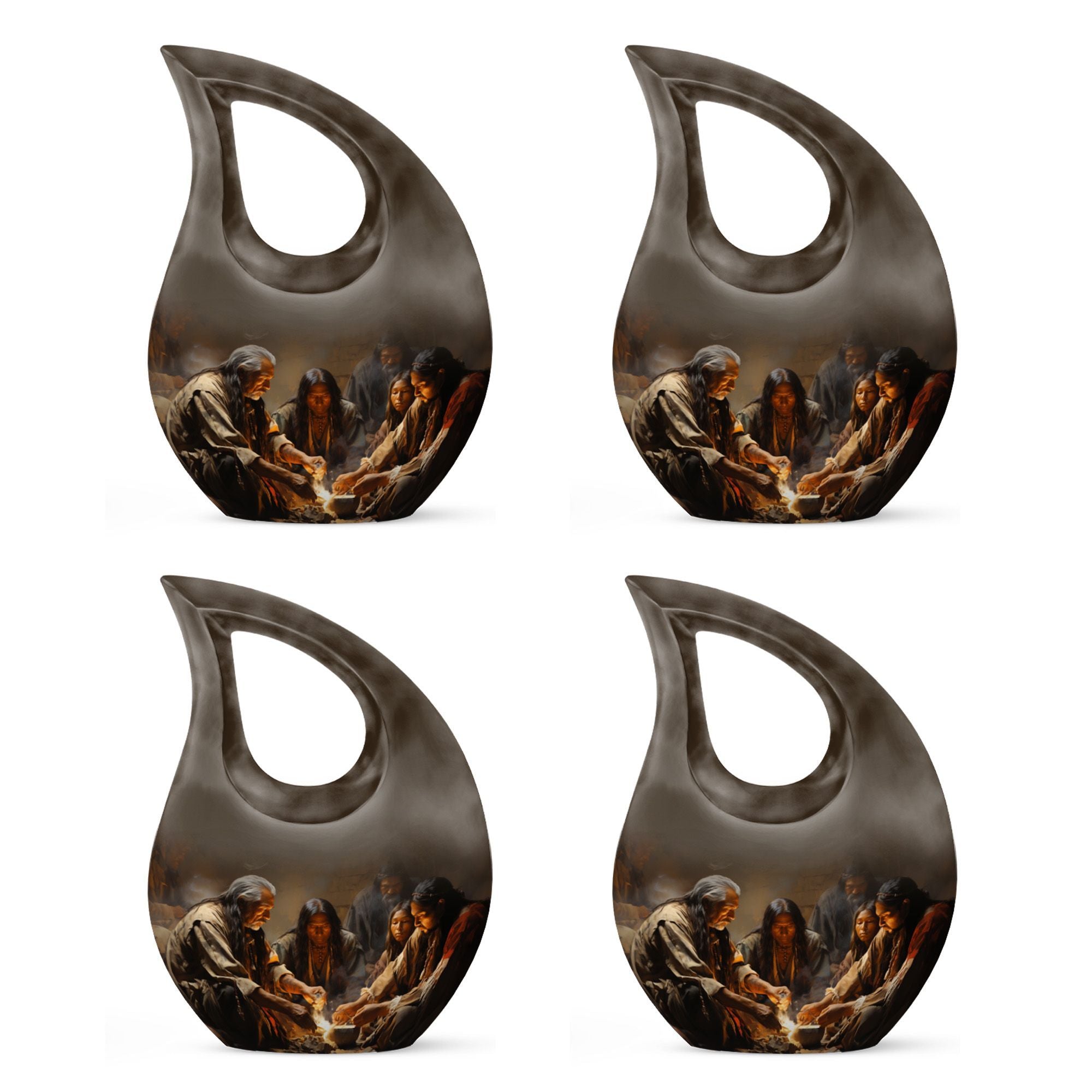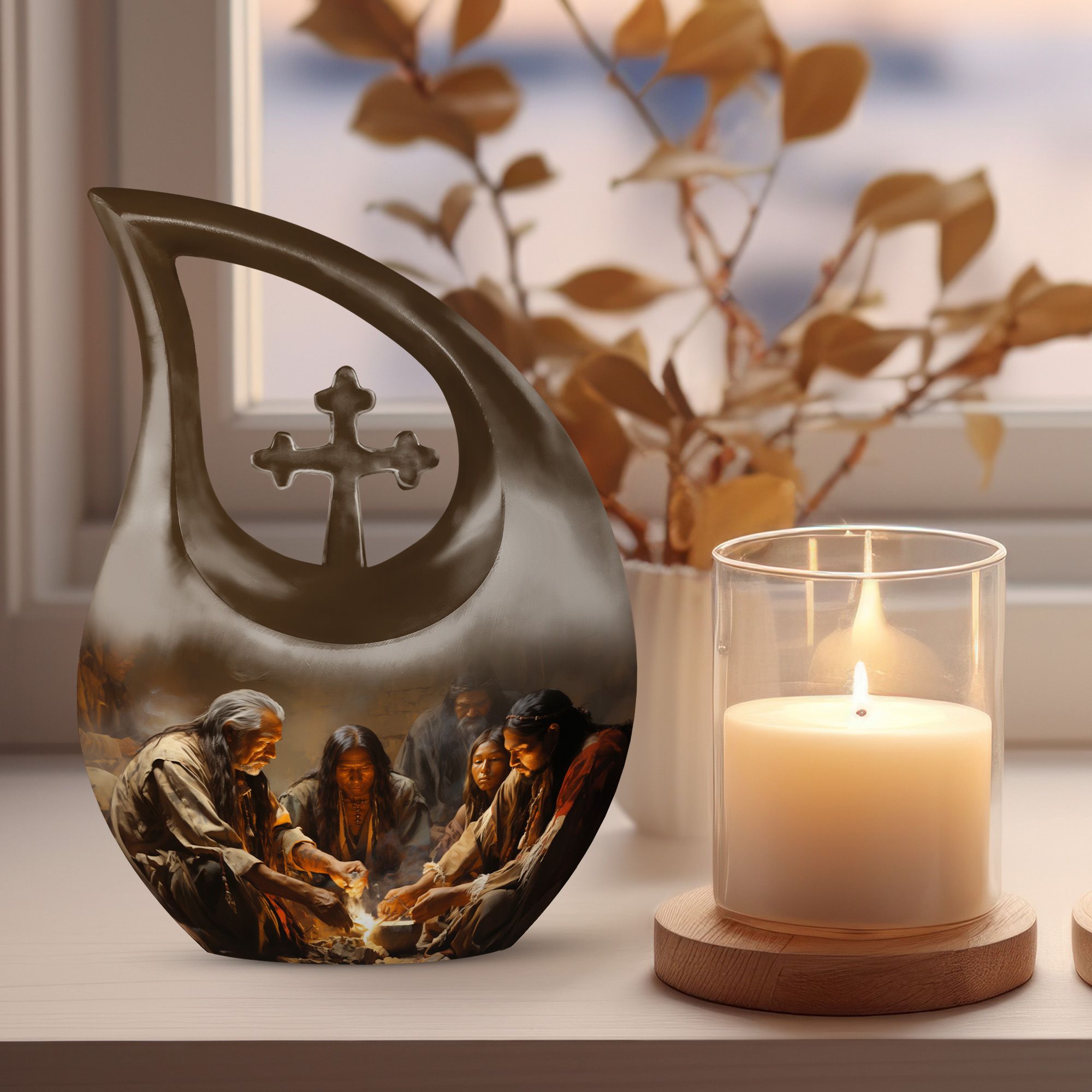 The Native American Family Themed Urn offers a heartfelt and symbolic way to honor a cherished life. Designed with respect and cultural inspiration, it provides a meaningful resting place for families seeking cremation urns for adult ashes women or urns for adults men that reflect unity, heritage, and spiritual connection.