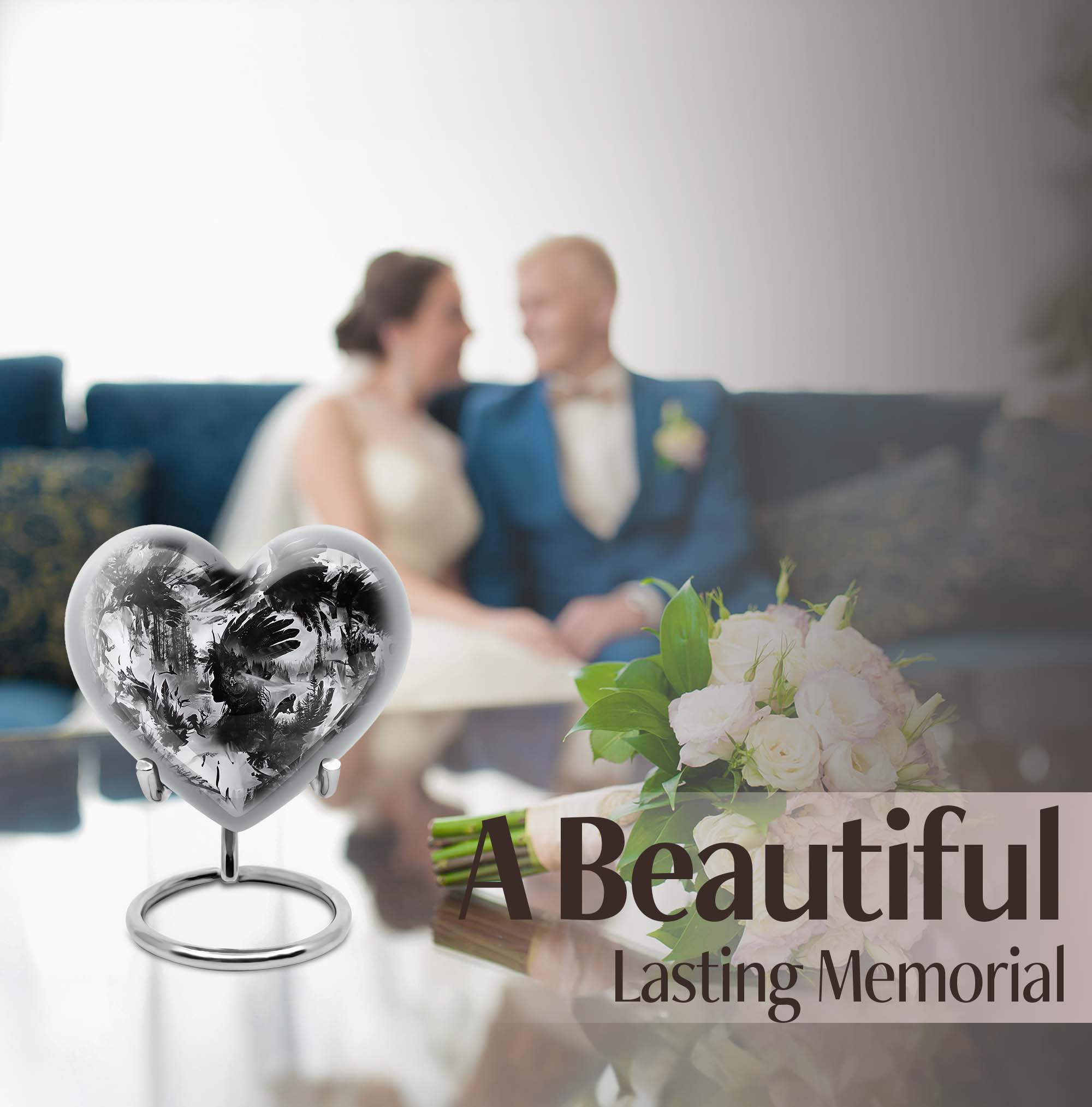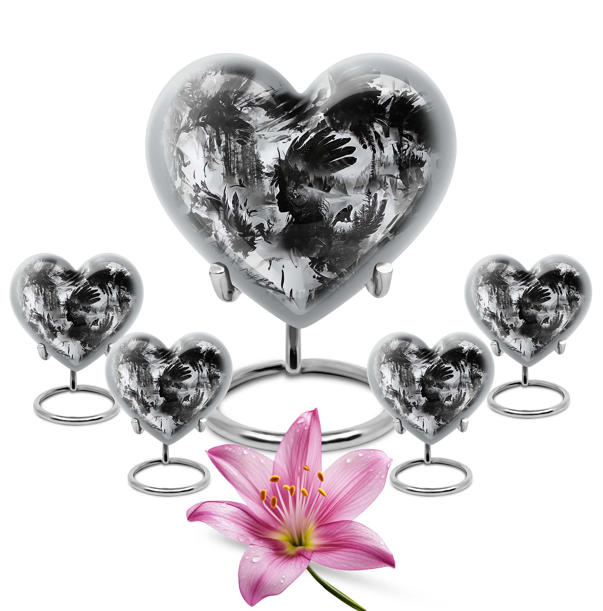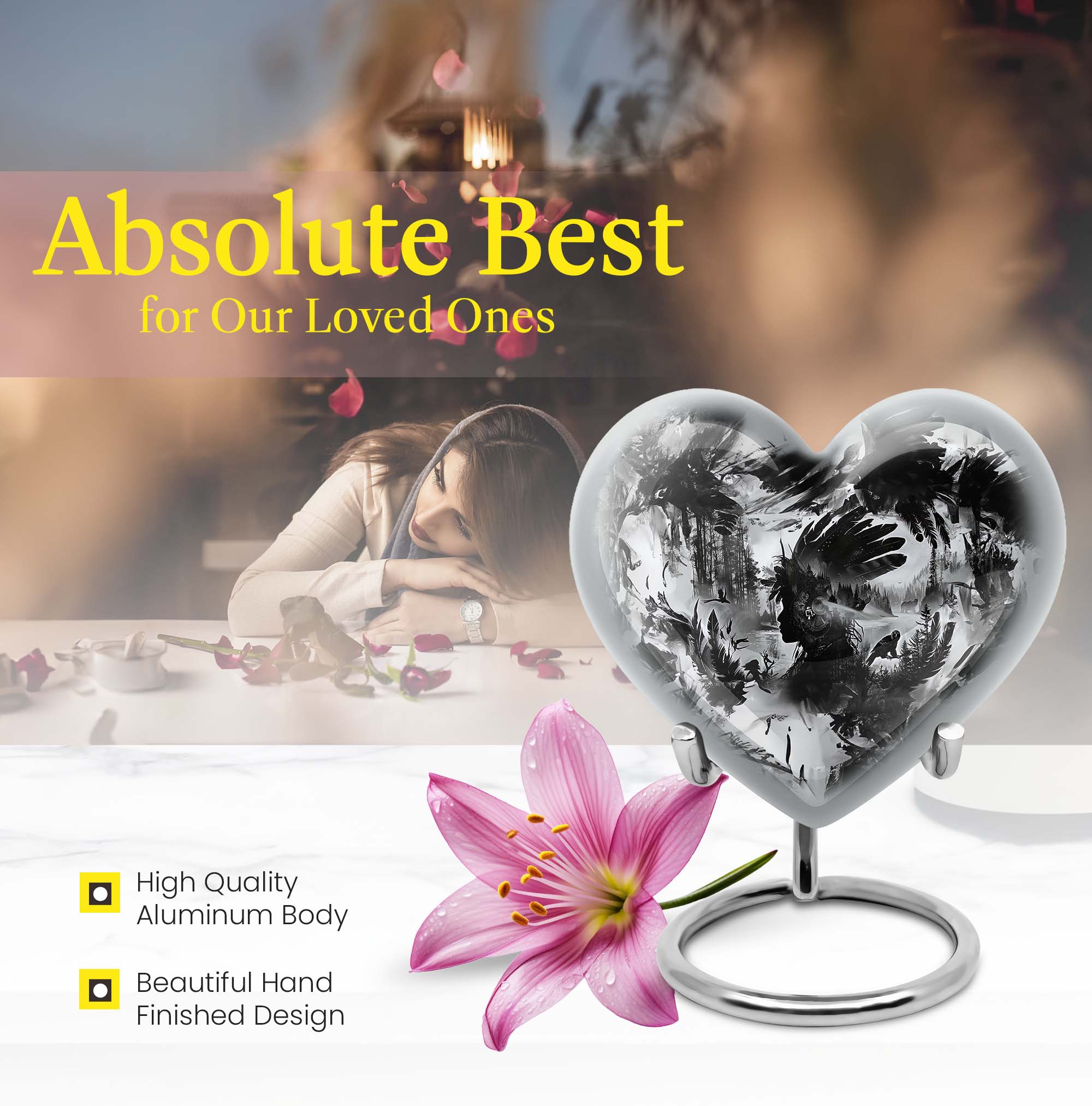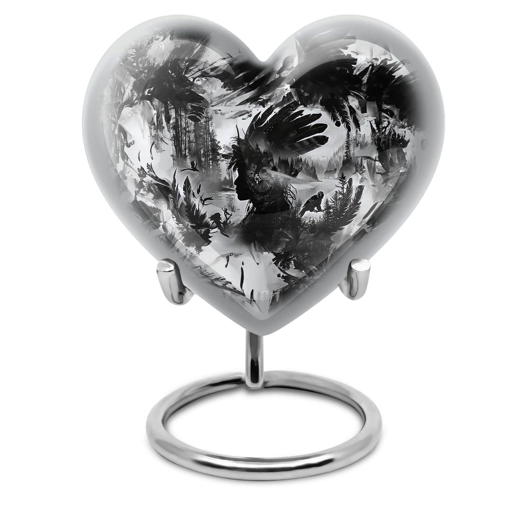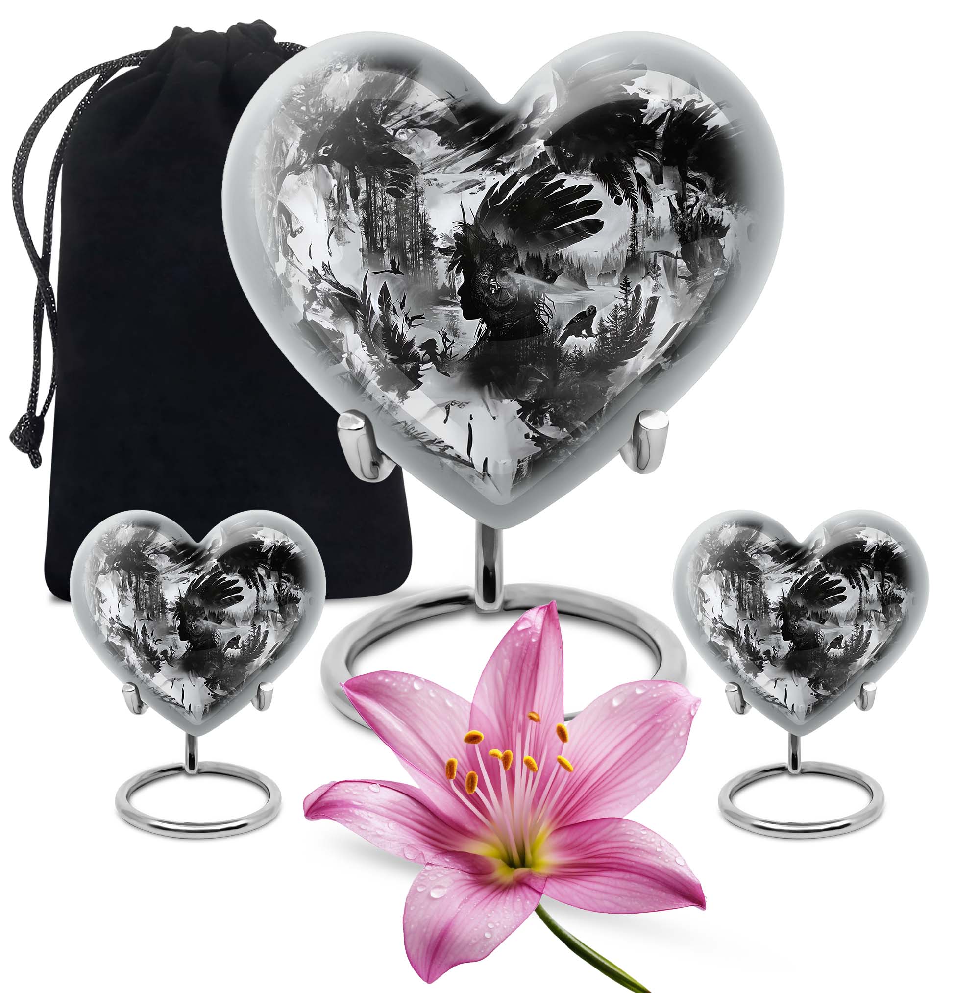 Crafted with meticulous attention to detail, the large, 10-inch Tribe Man Urn is a strong, visually-striking memorial urn designed to pay fitting homage to your dearly departed. The heart motif imbues a level of emotion and care into the product, while the wolf howling theme adds a unique and ethereal message of eternal companionship. Weighing 3.3 pounds, this aluminium urn is durable enough for both burial ceremonies or domestic display purposes. The urn capacity is ample, able to hold up to 200 cubic inches of ashes. Additionally, the package includes a velvet pouch, providing a respectful and secure containment for the ashes. If desired, customization offers the option to personalize the urn with engraved names, adding a further layer of tribute to a cherished life. From 'cremation urns for human ashes adult male' to 'funeral urns for adult ashes women', this piece embodies a universal appeal. Avoiding the ordinary, this urn provides a distinctive saying of farewell.
